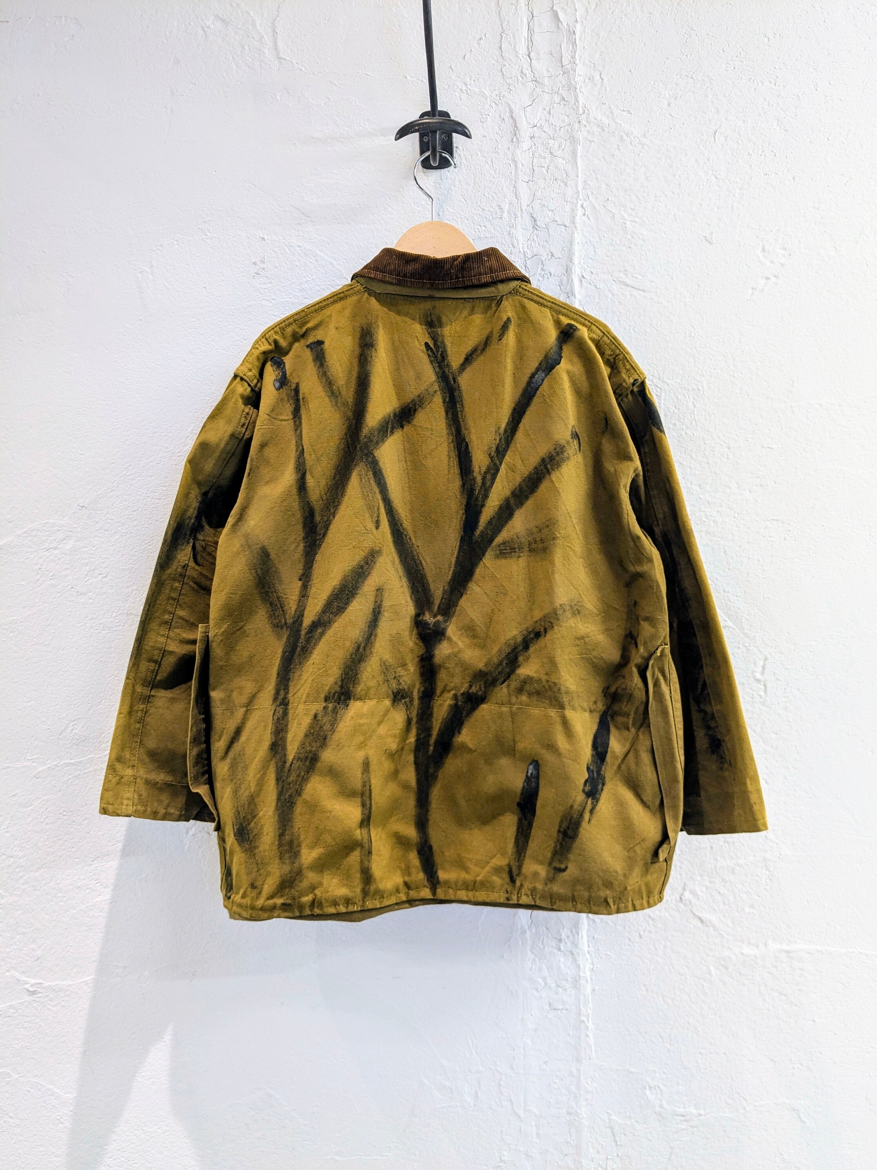 全体的に雰囲気良く、またサイズも短丈、ワイドとちょうどいいシルエット。プラスで前所有者が描いた木の枝?をモチーフとしたようなものが描かれています。そこも相まってより雰囲気が増し、ホントの1点物となっています。