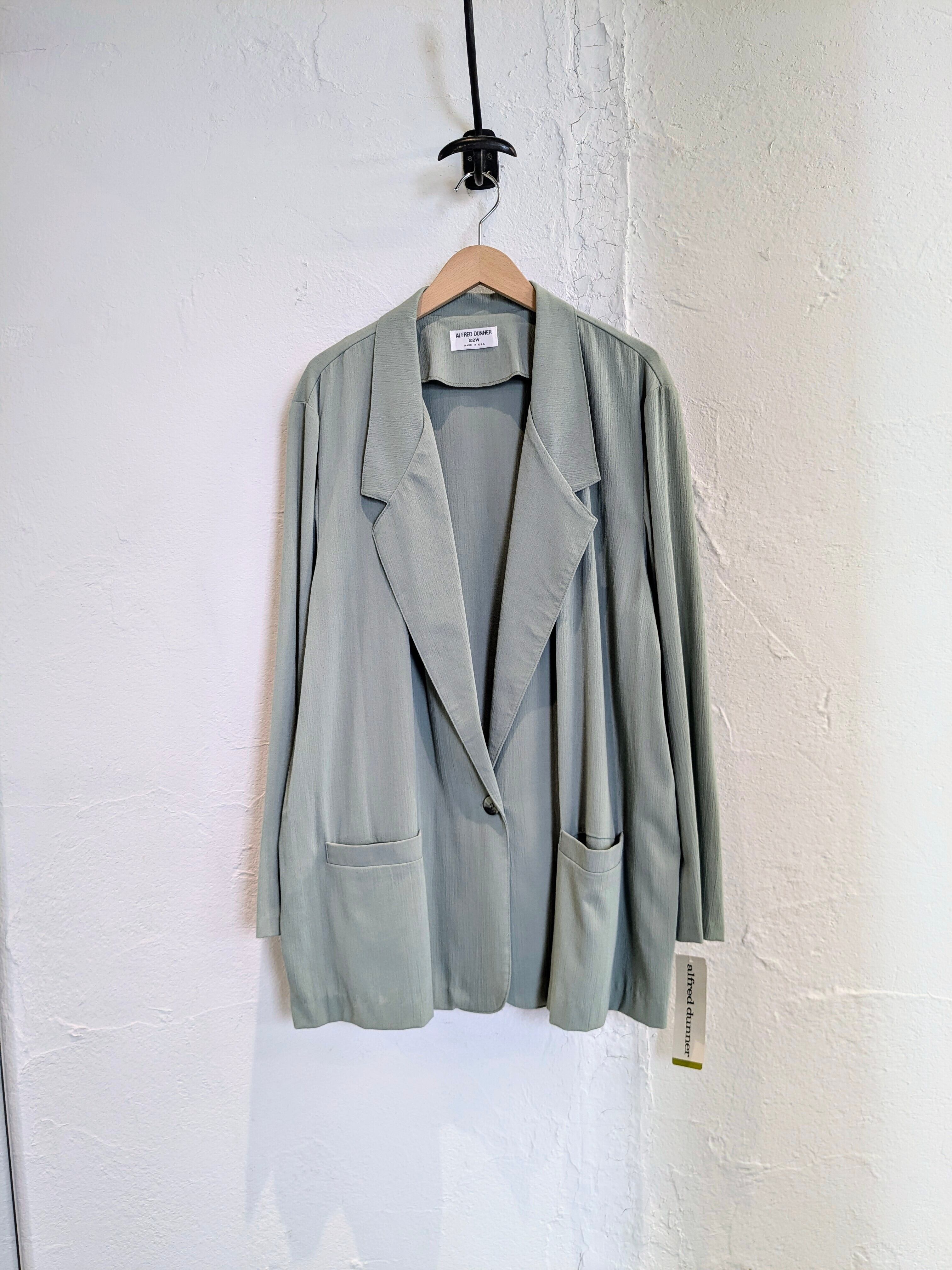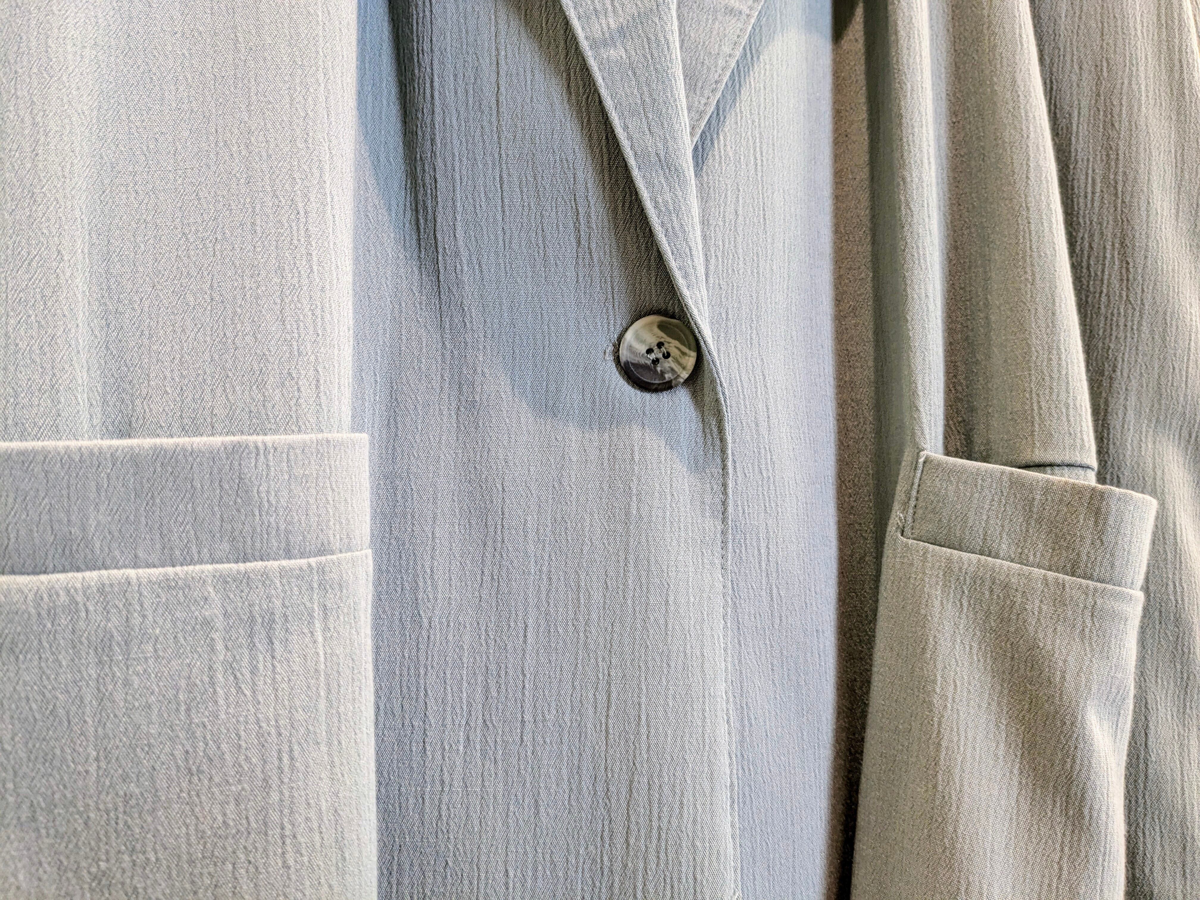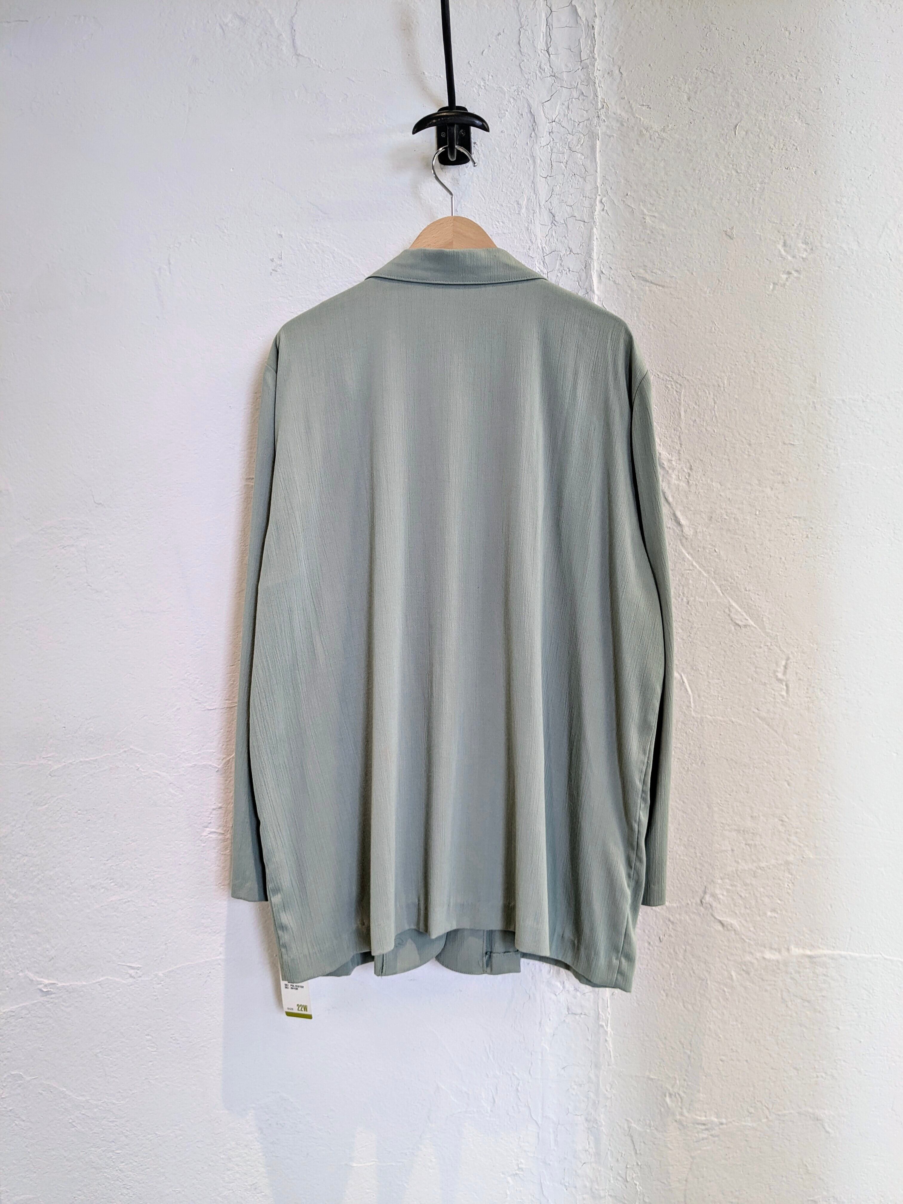 アメリカ製のワッシャー加工ジャケット。サイズ感はかなりゆったりめで、裏地無し、とても軽く着ていただけます。落ち感ら、揺れ感が強く上品かつオーバーサイズながらも、シルエットがめちゃくちゃ綺麗。ジャケットの形ですが、シャツのような用途でお使いいただけます。ワッシャー加工が施してあるので、表面ものっぺりしない動きのある見え面になっています。紙タグ付きでデッドストックになります。