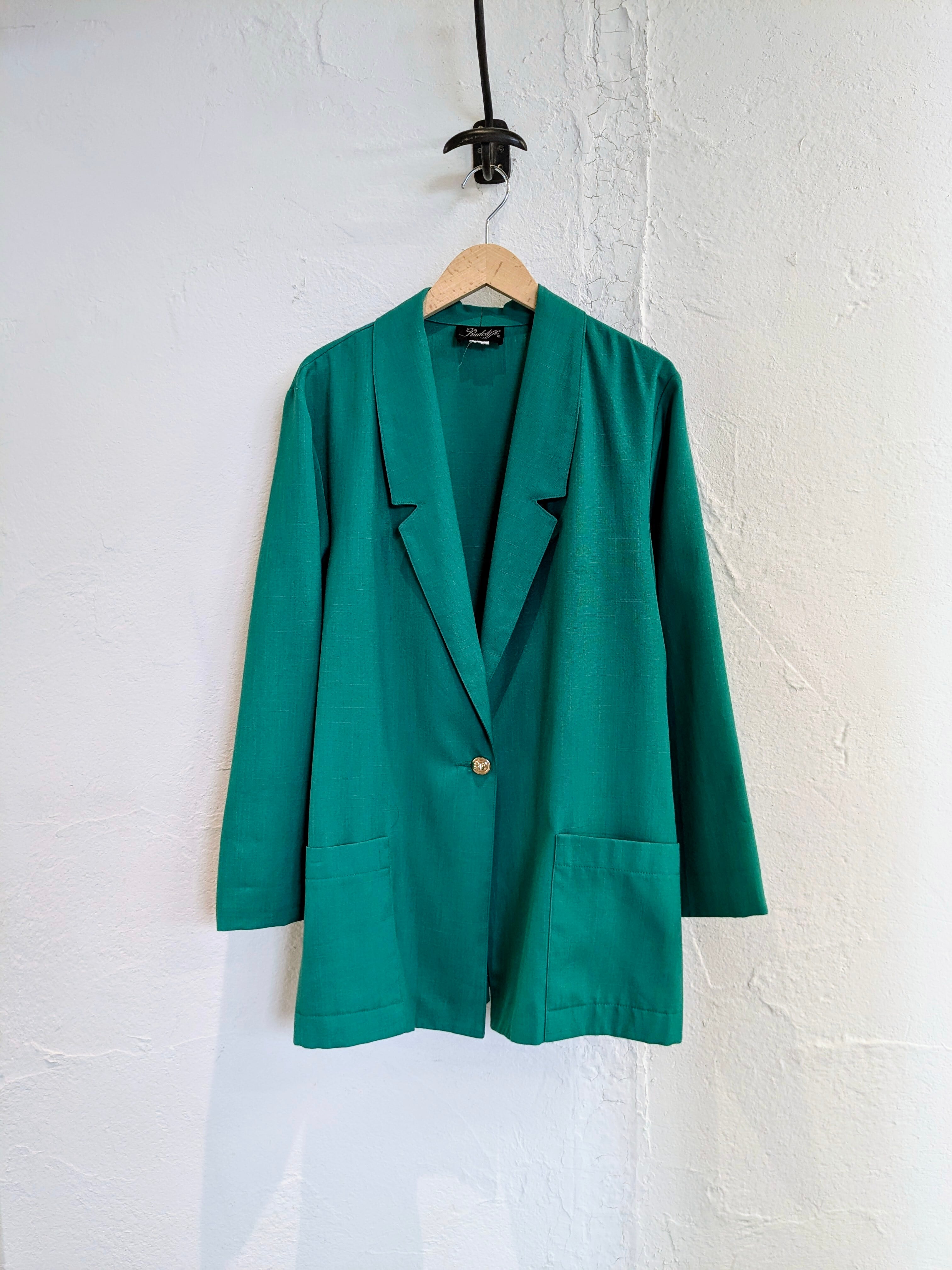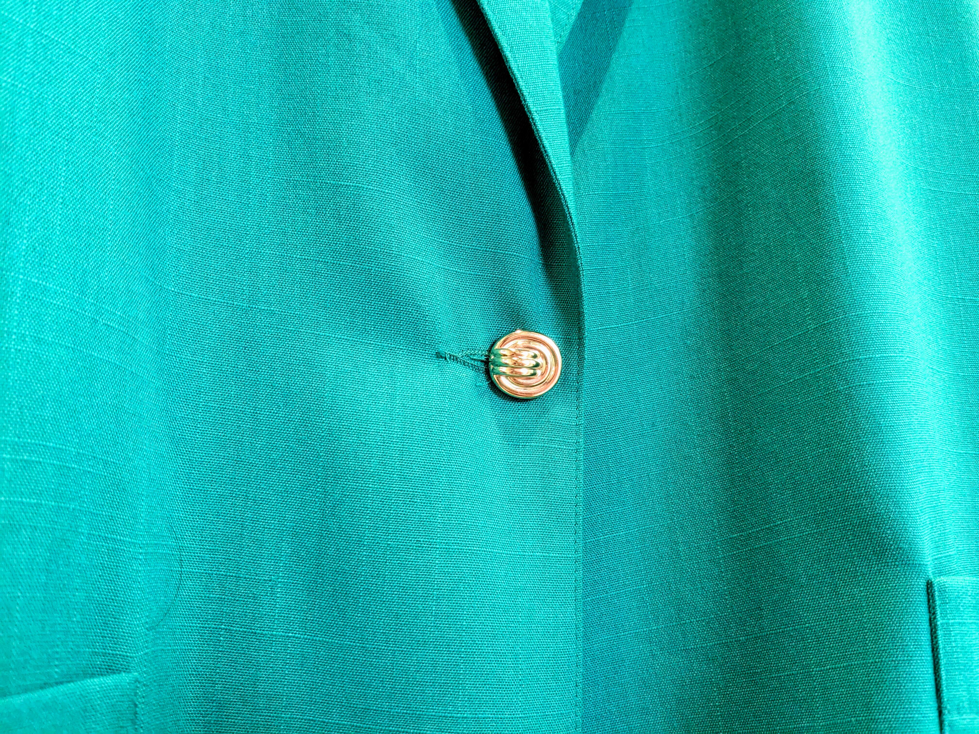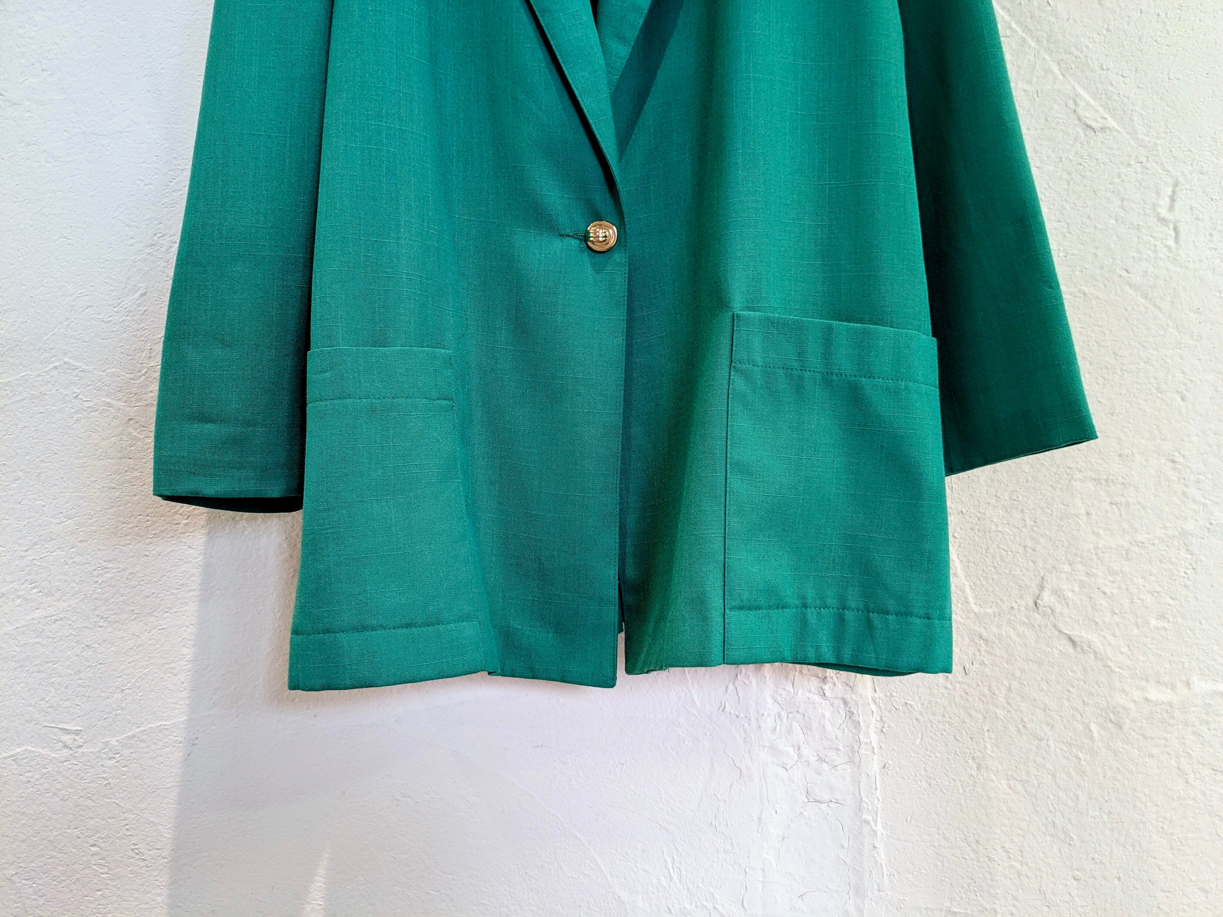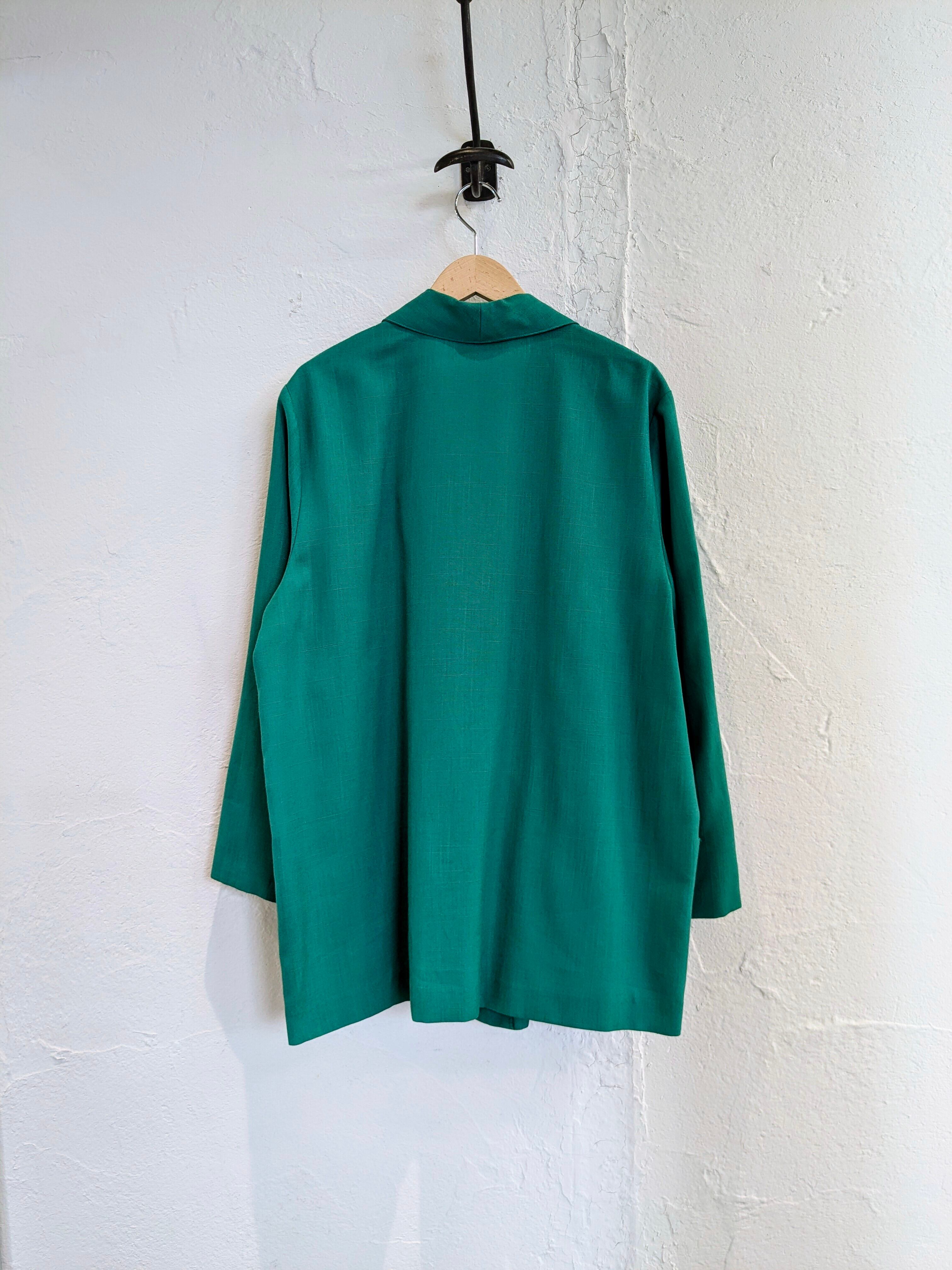 裏地無し、パッチポケットと軽い作り。ポリエステル、レーヨンと落ち感、揺れ感のある薄い素材感。シャツ以外の羽織としてこれからの時期に活躍してくれます。色味がパキッとしたグリーンでとても綺麗な色となっています。
