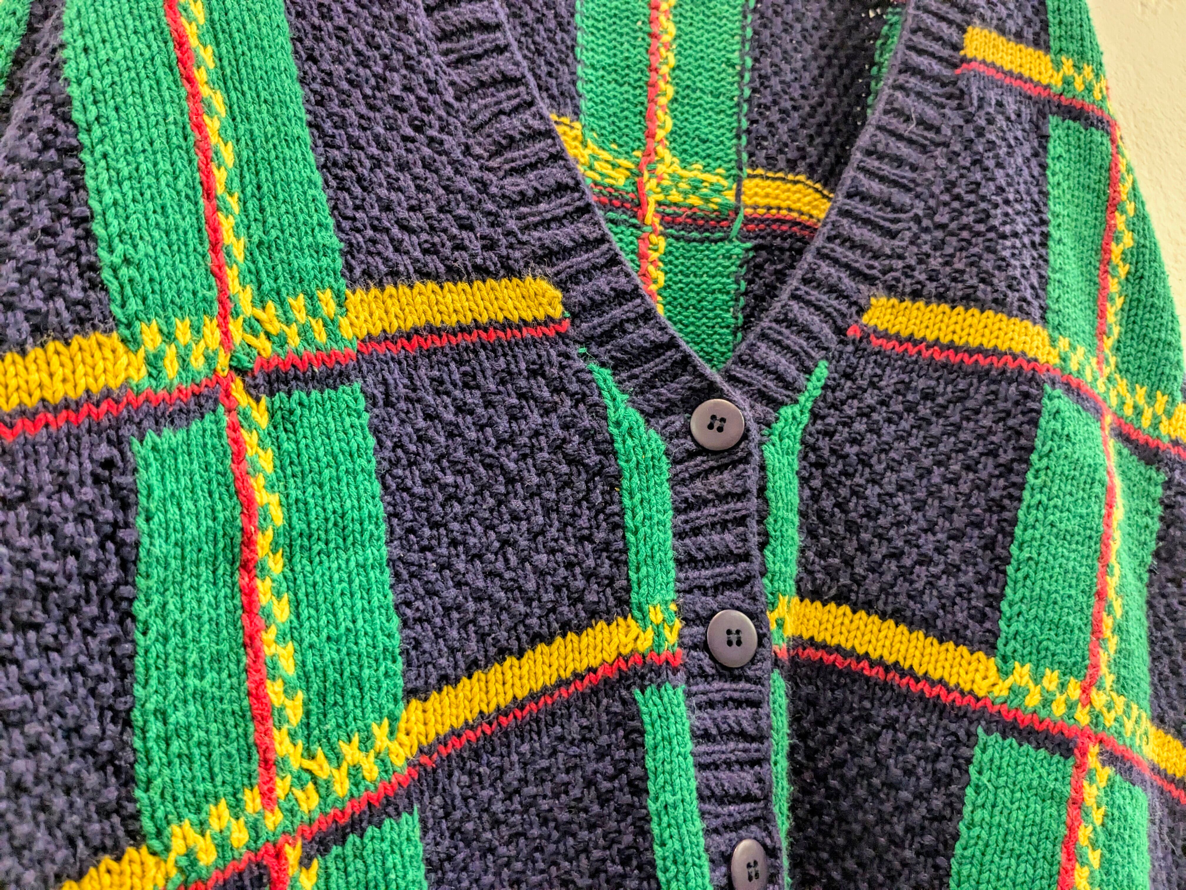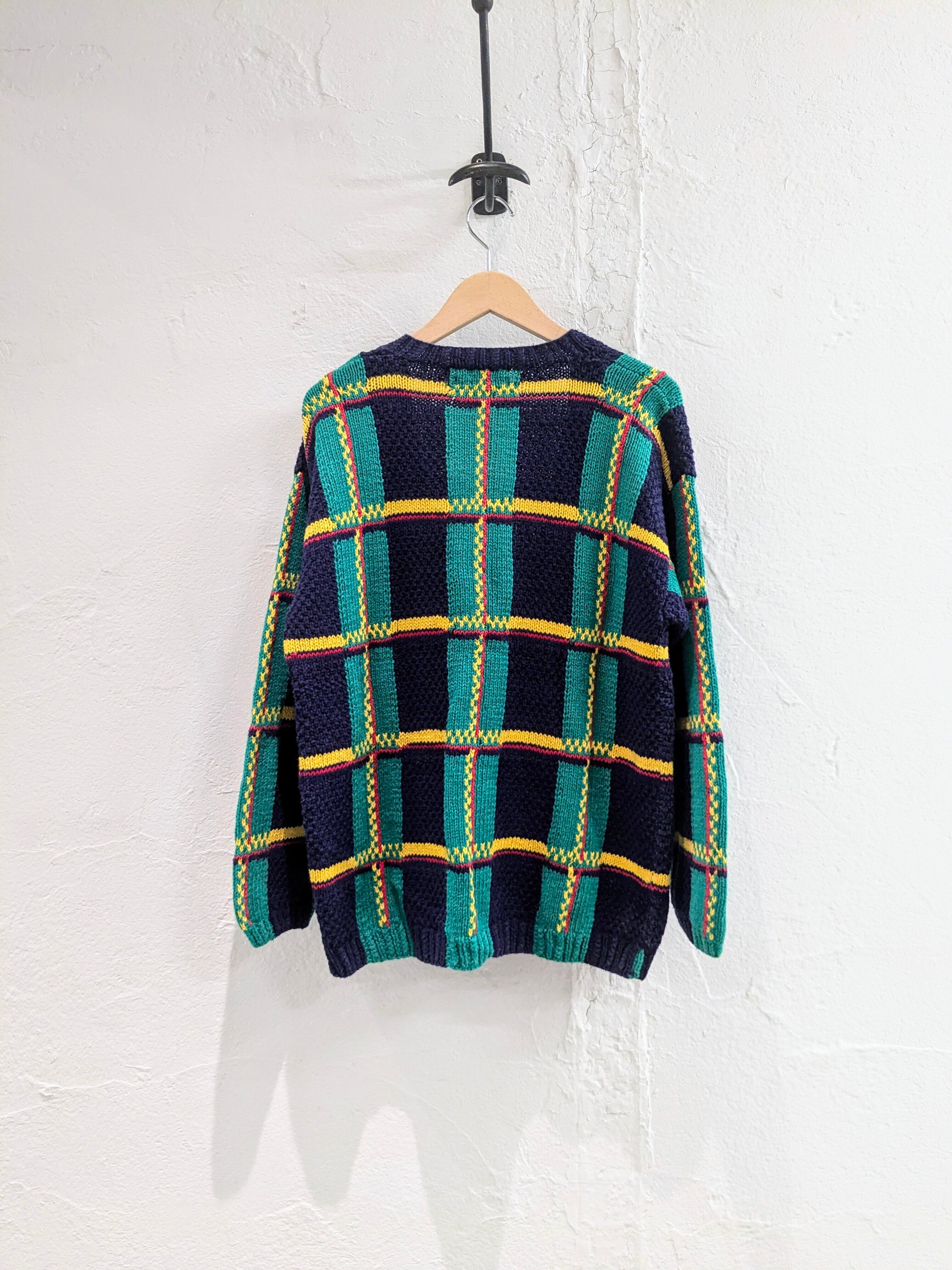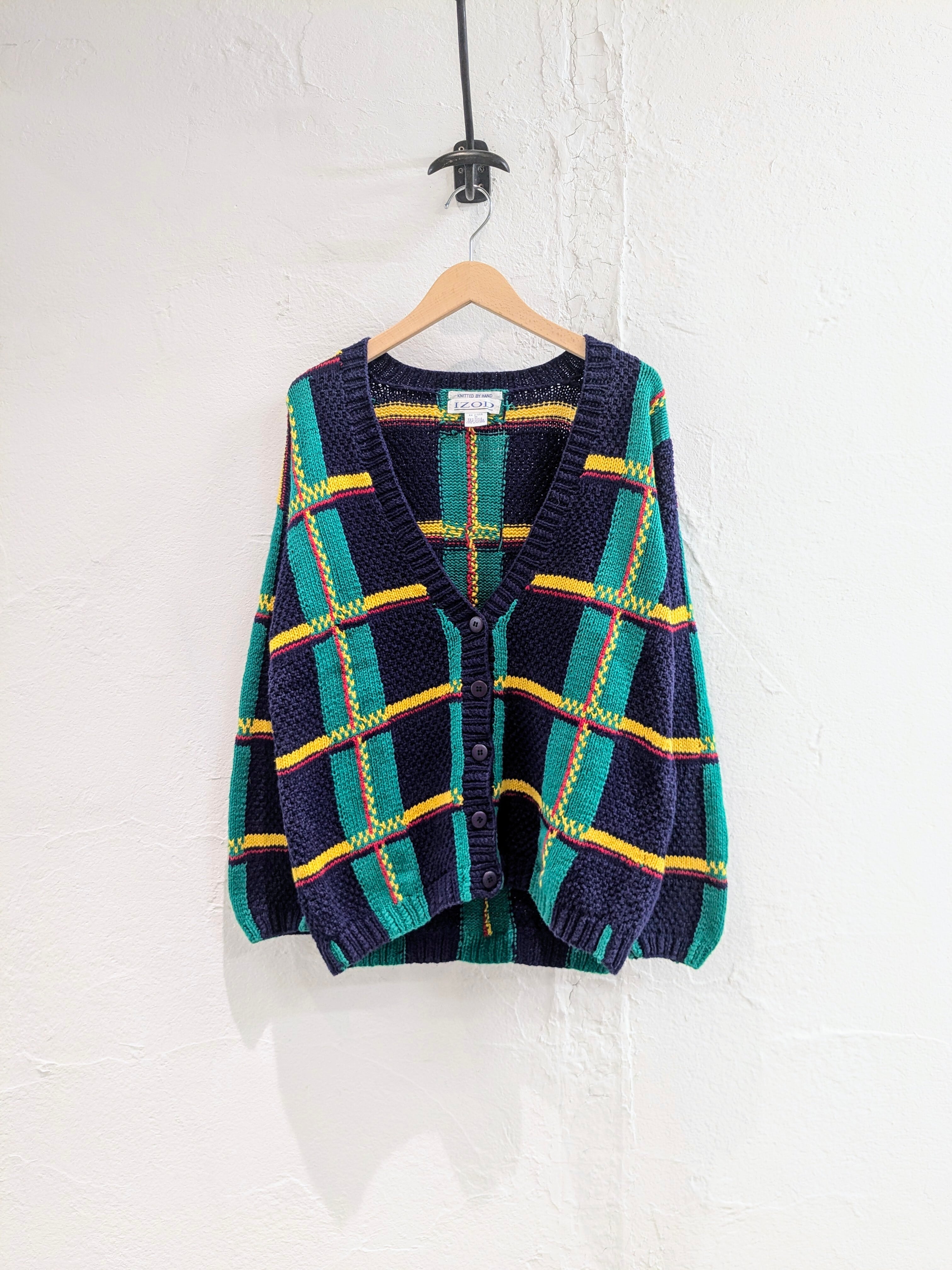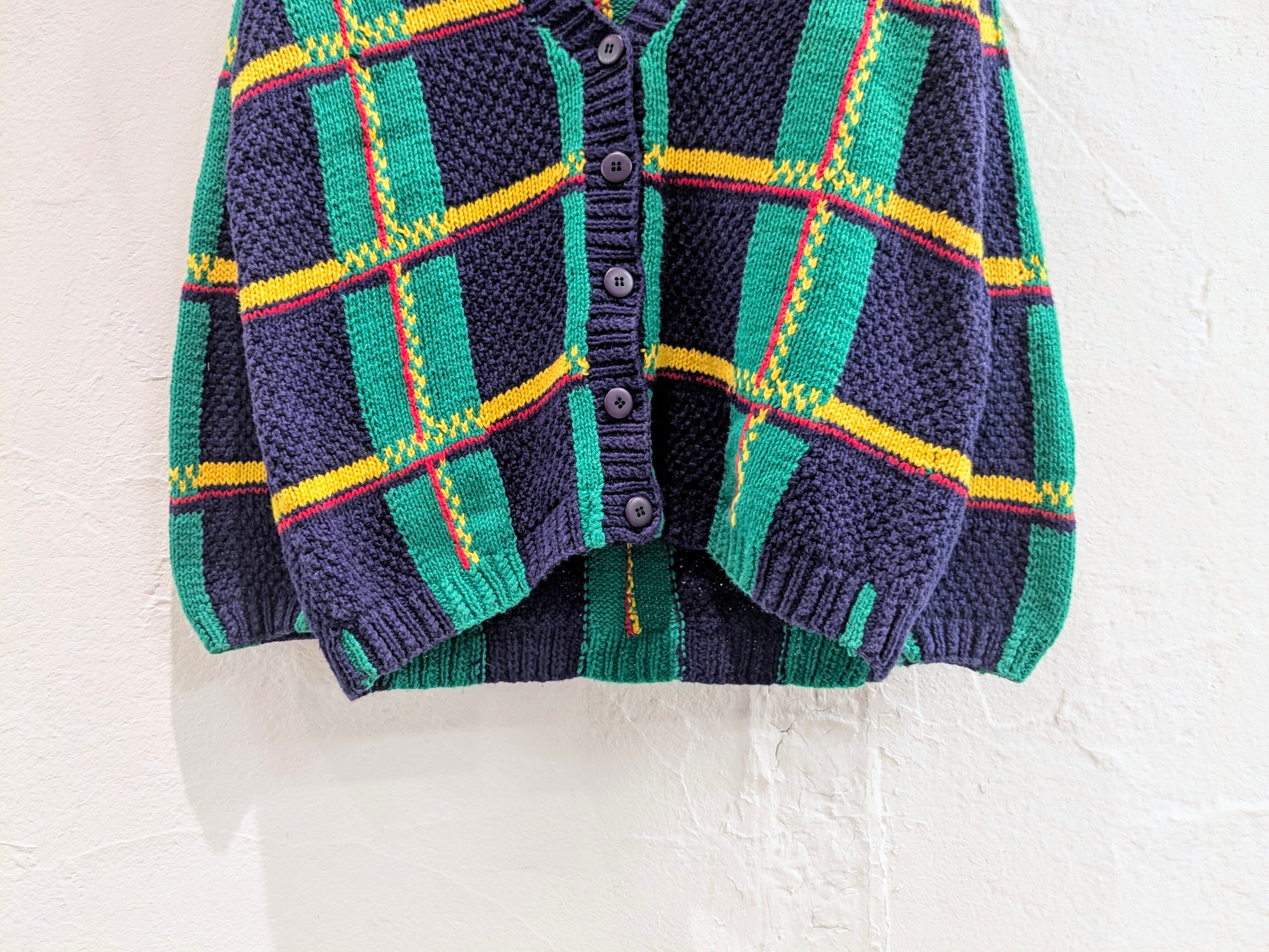 Knit By Hand Check Pattern Knit Cardigan