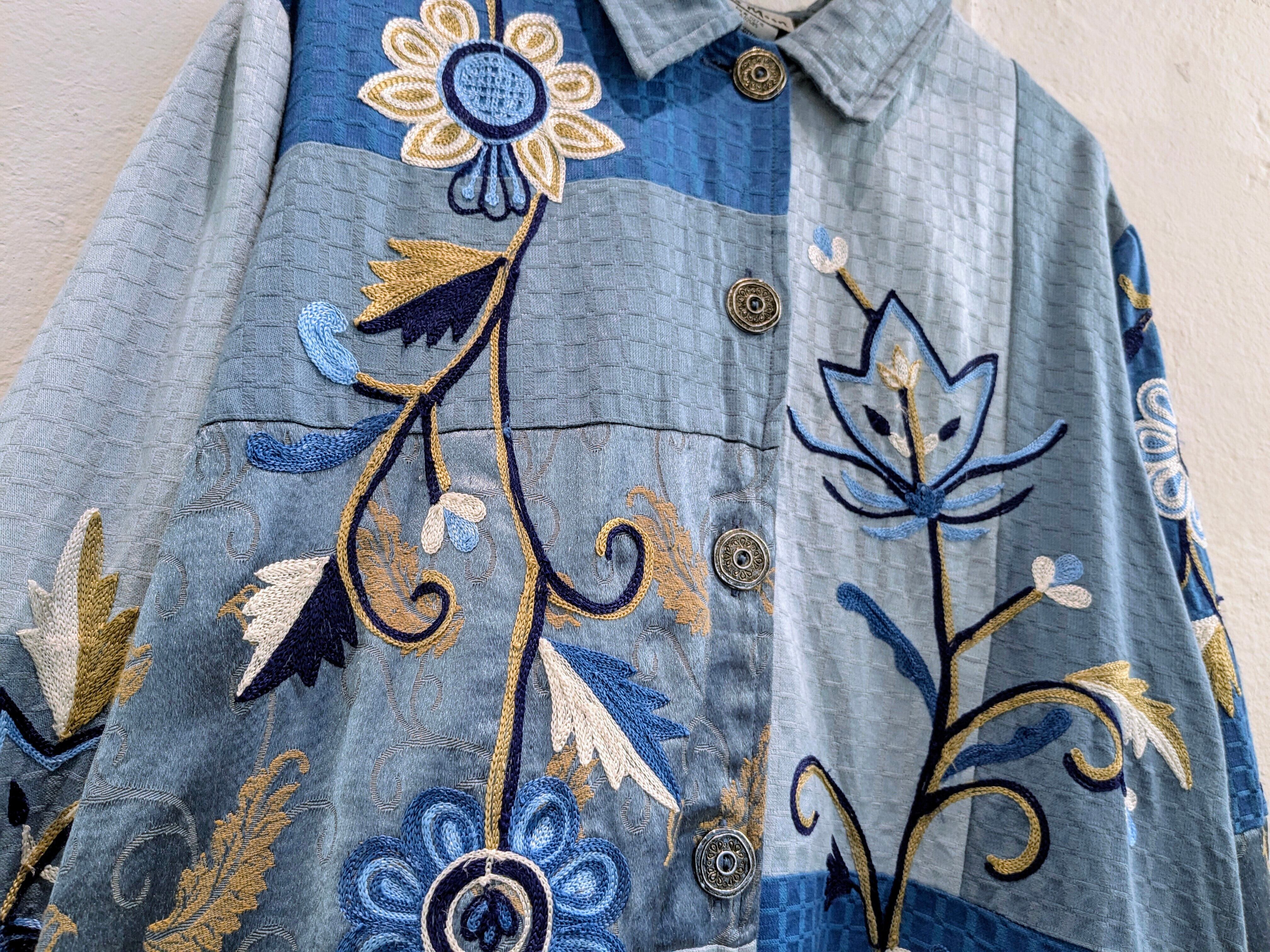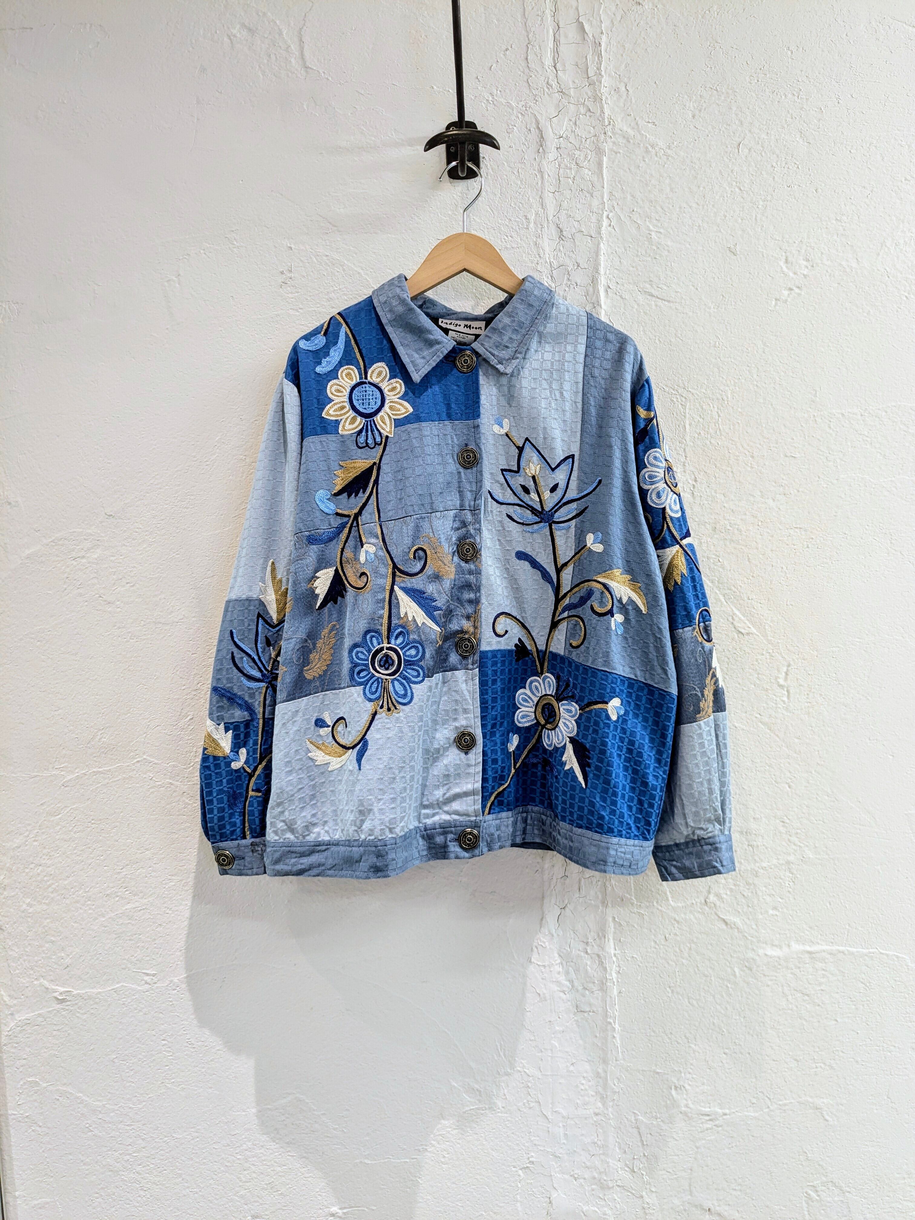フラワーデザイン刺繍の入ったパッチワークジャケット。