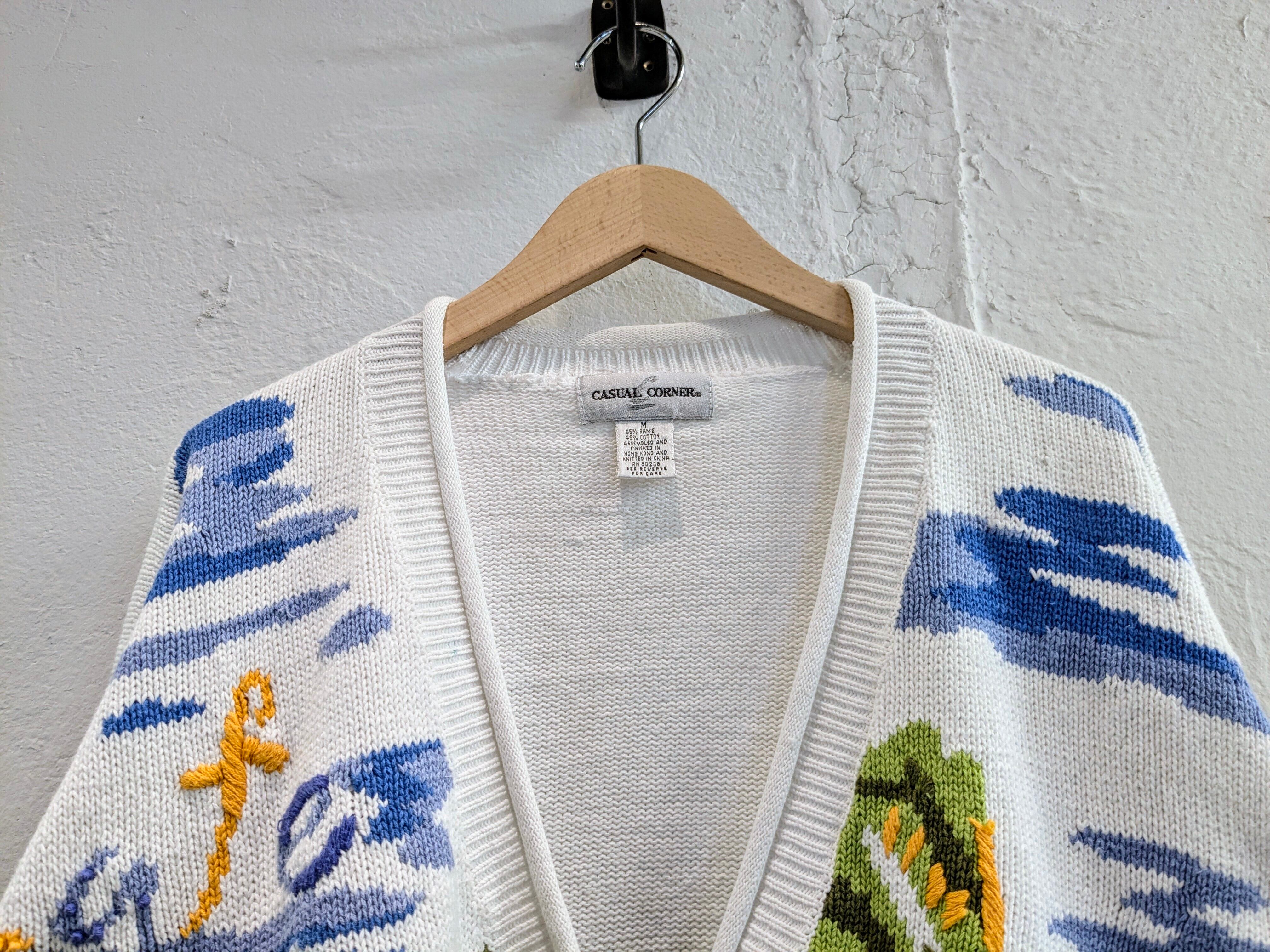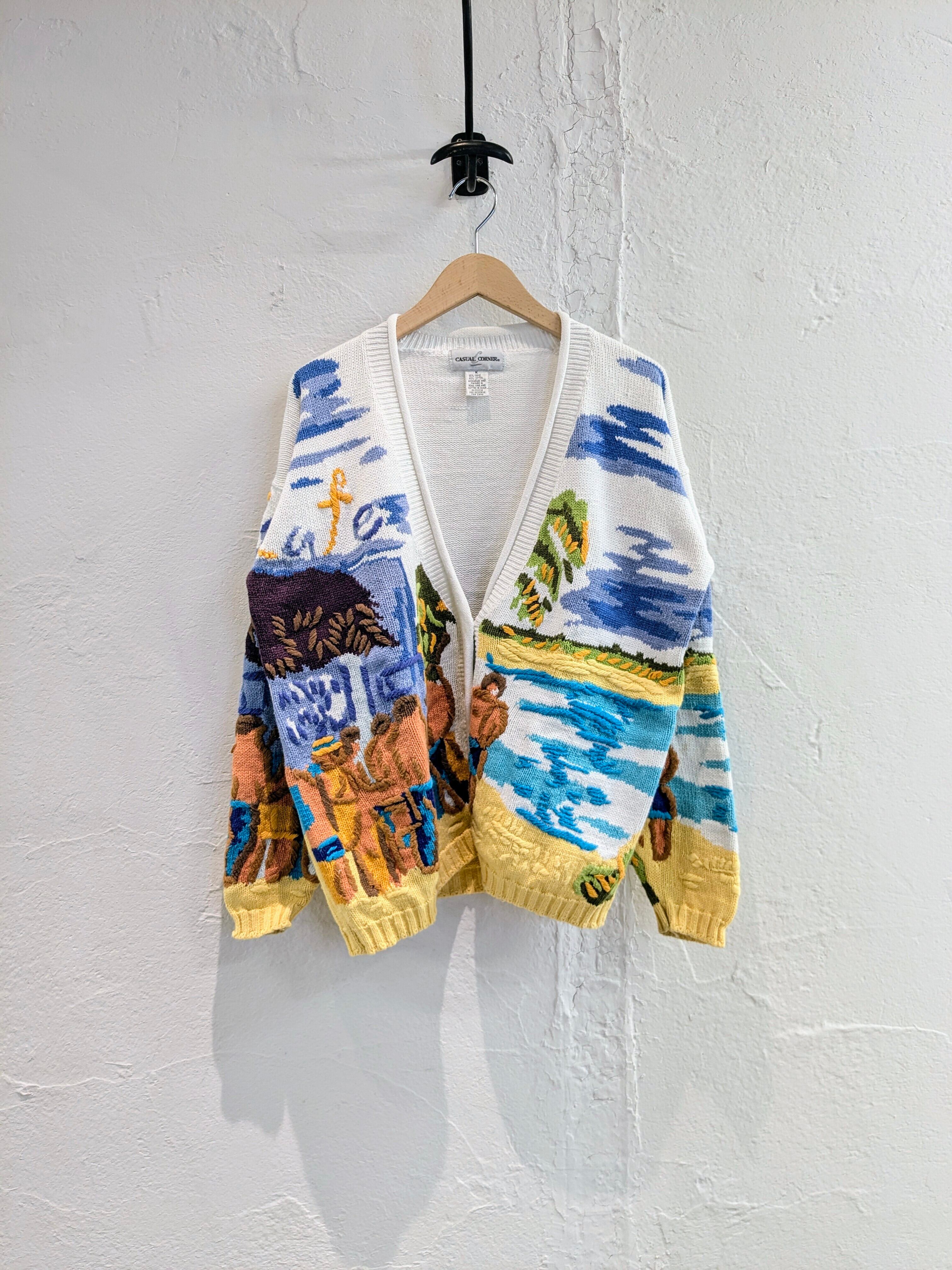 刺繍デザインのサマーニットカーディガン。