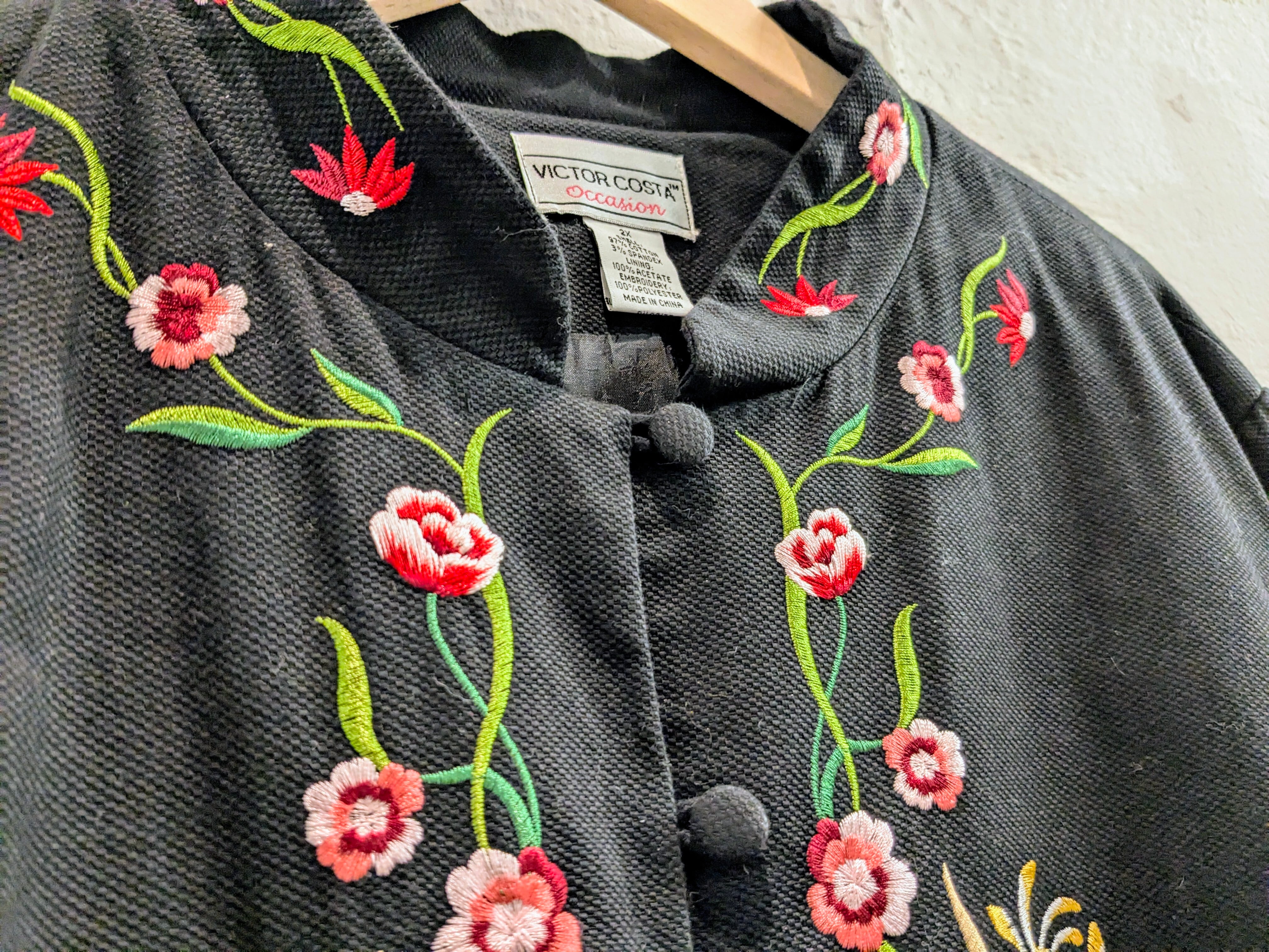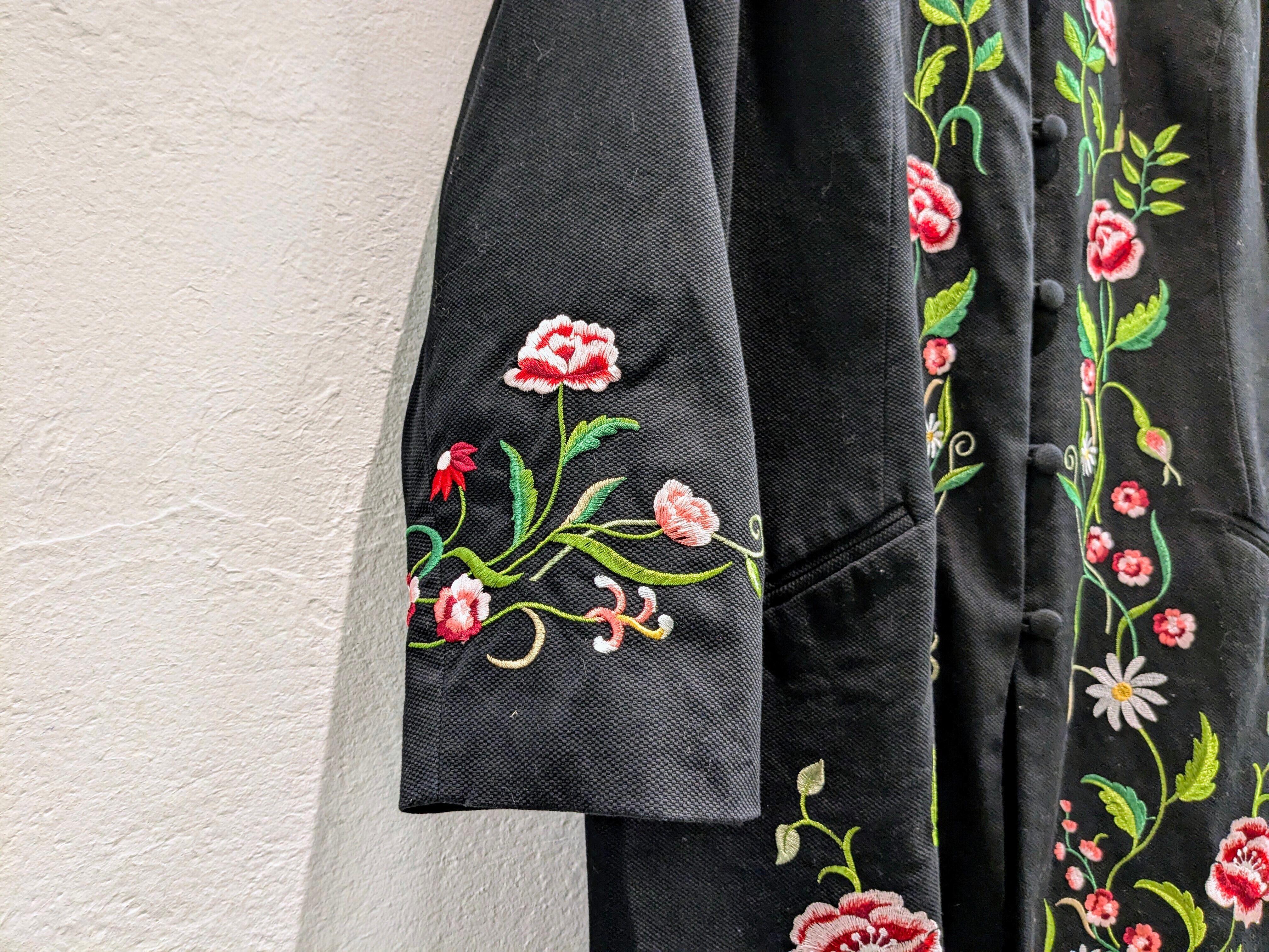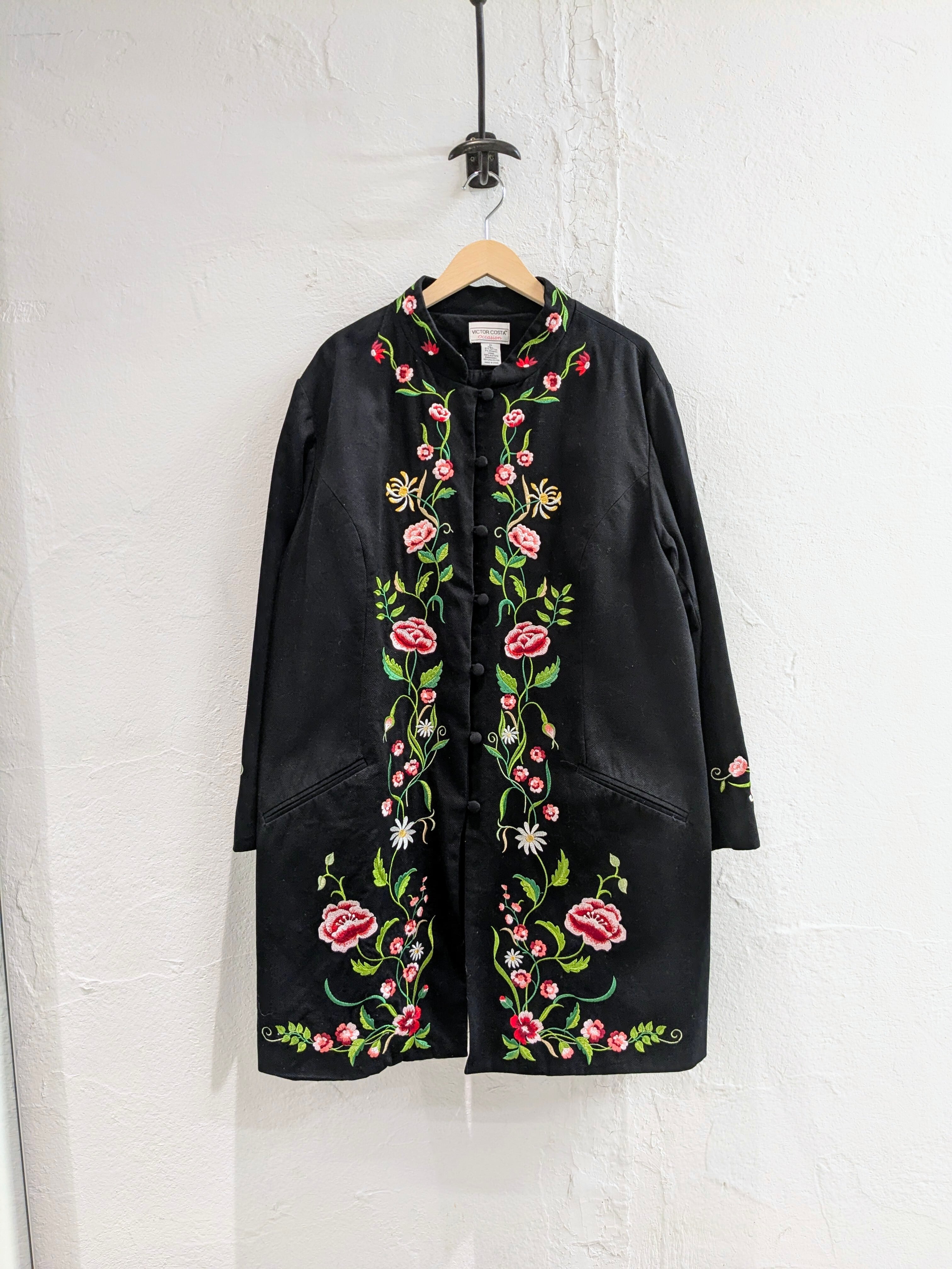 上品さとデザイン性を兼ね備えたアイテム。ボタンも相まって、少しチャイナドレスのような見え感もあります。身幅などしっかりとあるので、着込むこともできるので長いシーズンお使いいただけます。