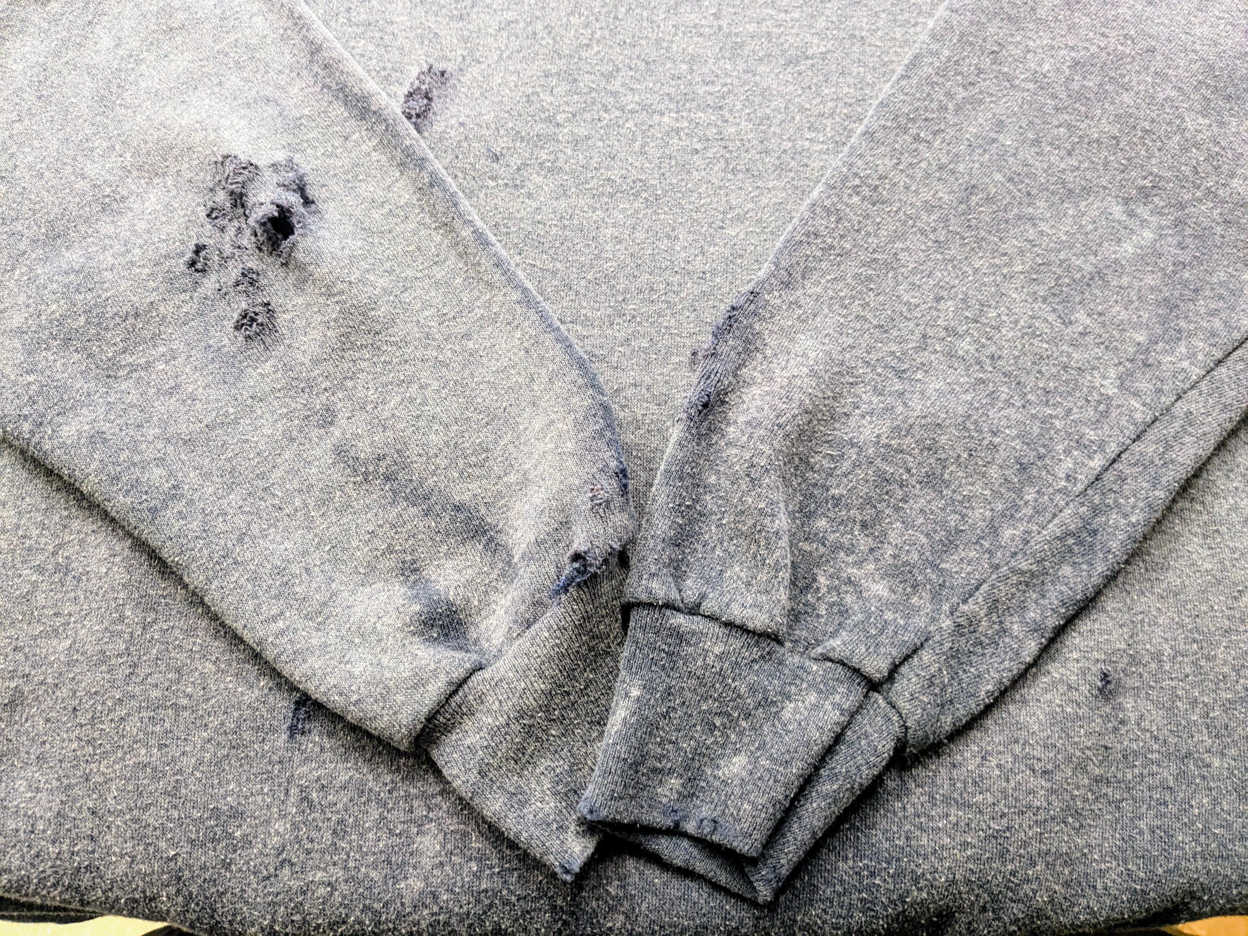 フェード、ダメージの加工をしております。とても雰囲気がよく、ヴィンテージスウェットのような味がでています。