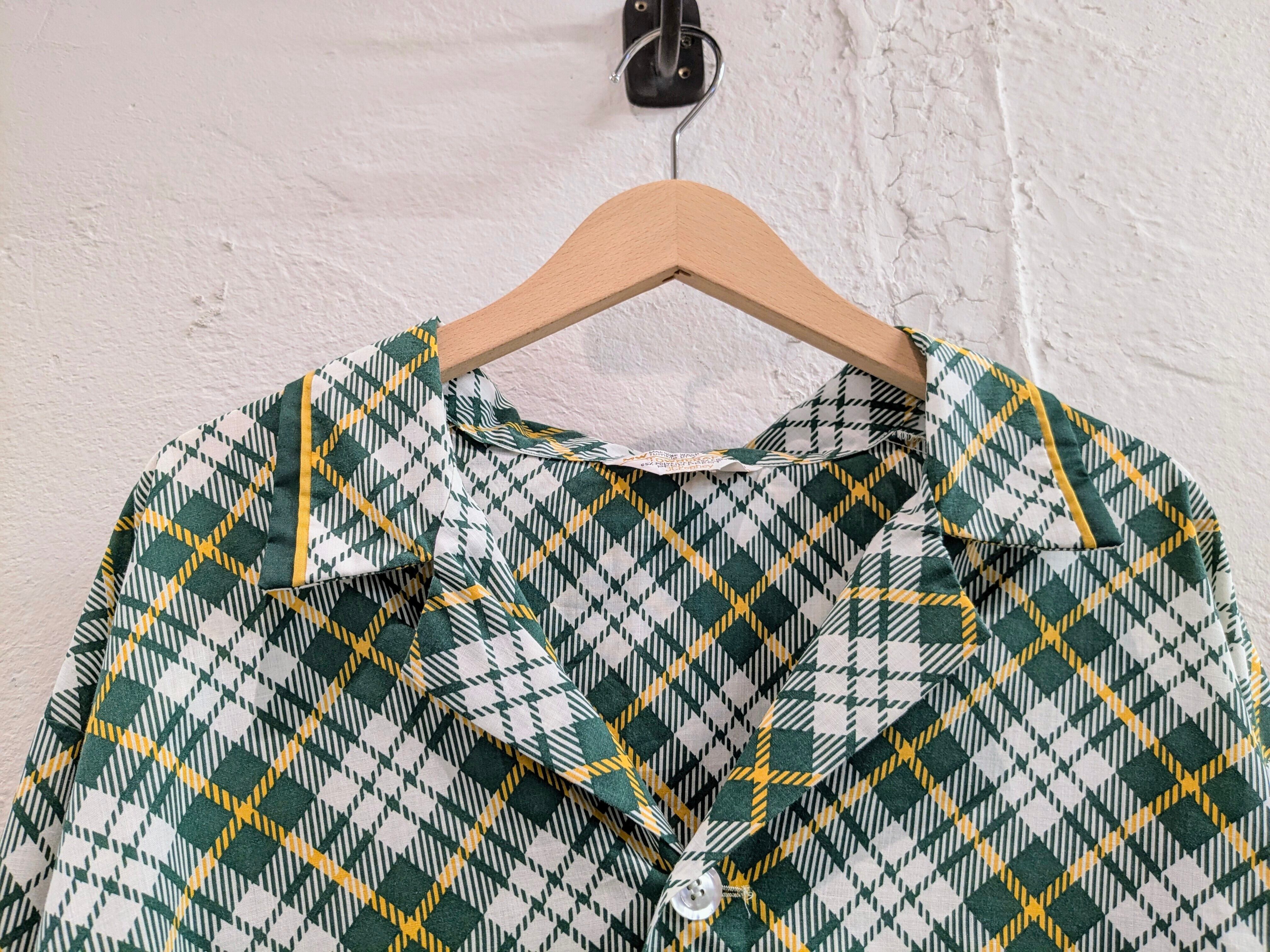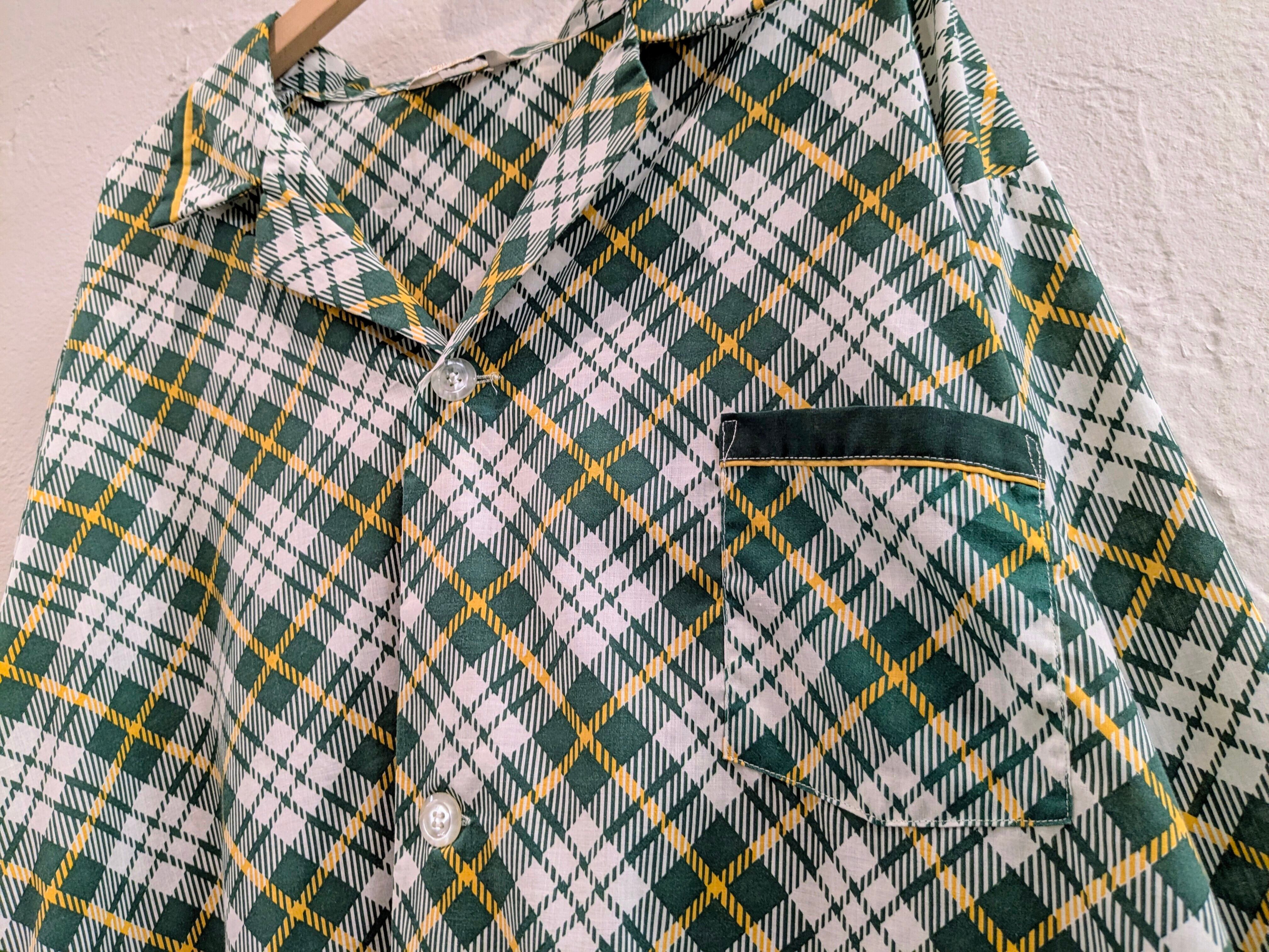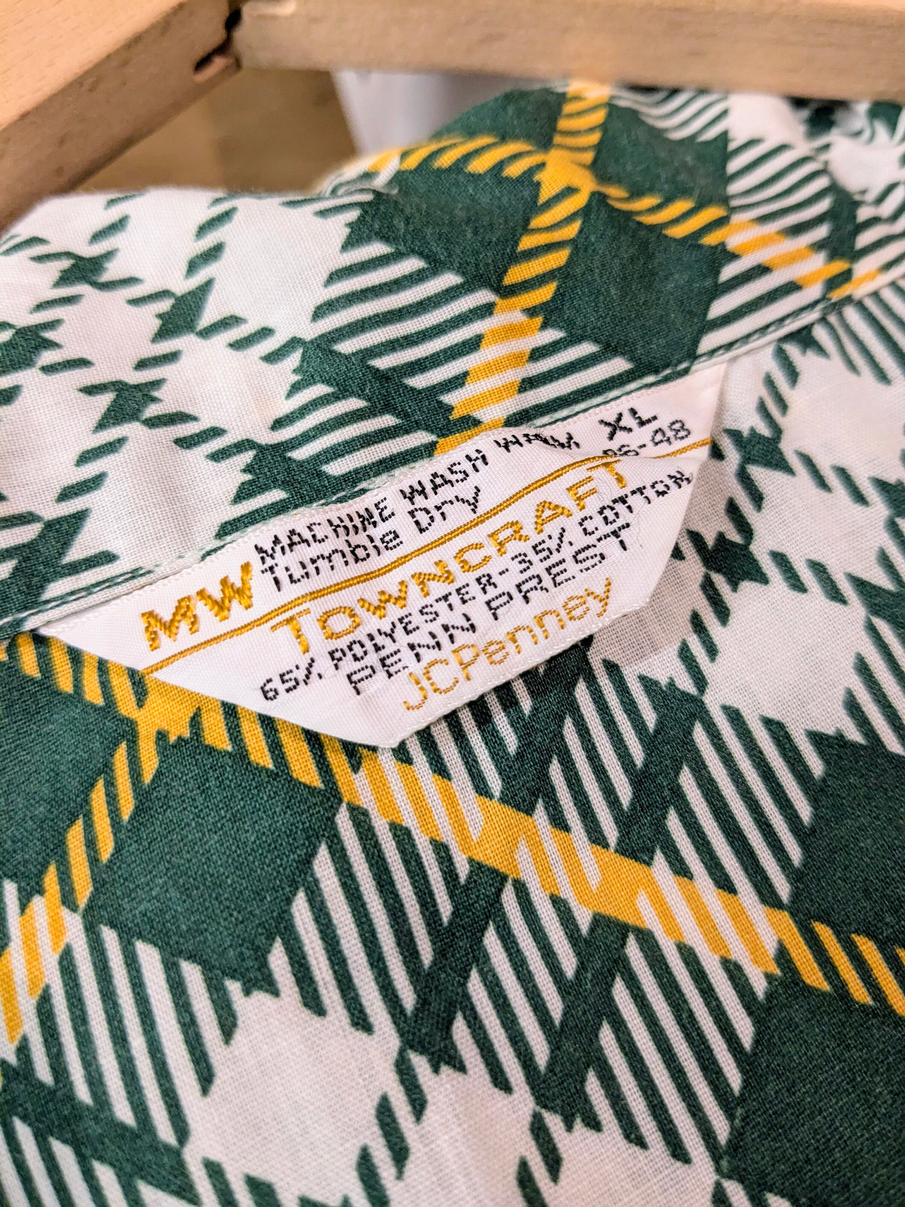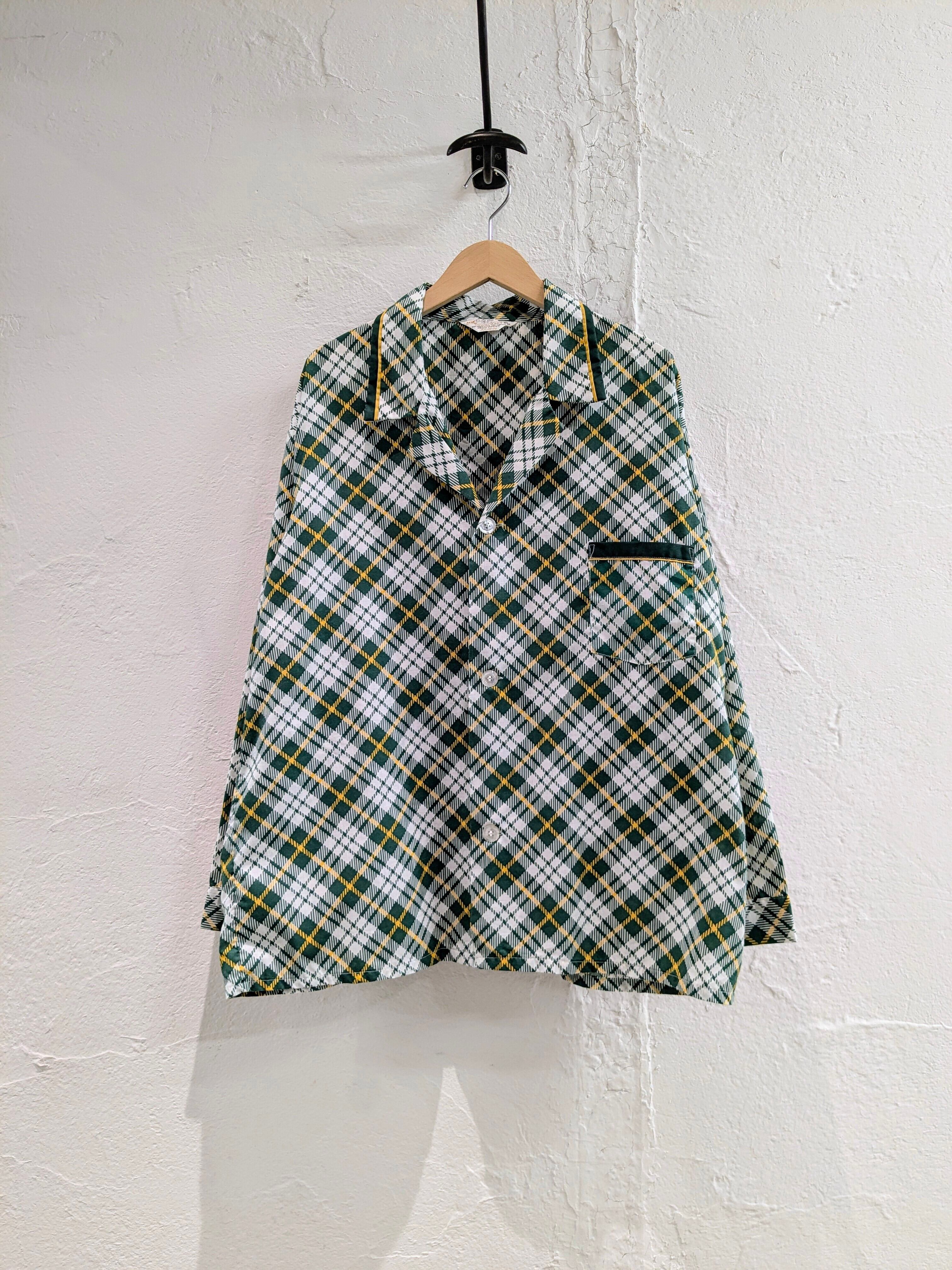1970's Print Check Open Collar Shirt