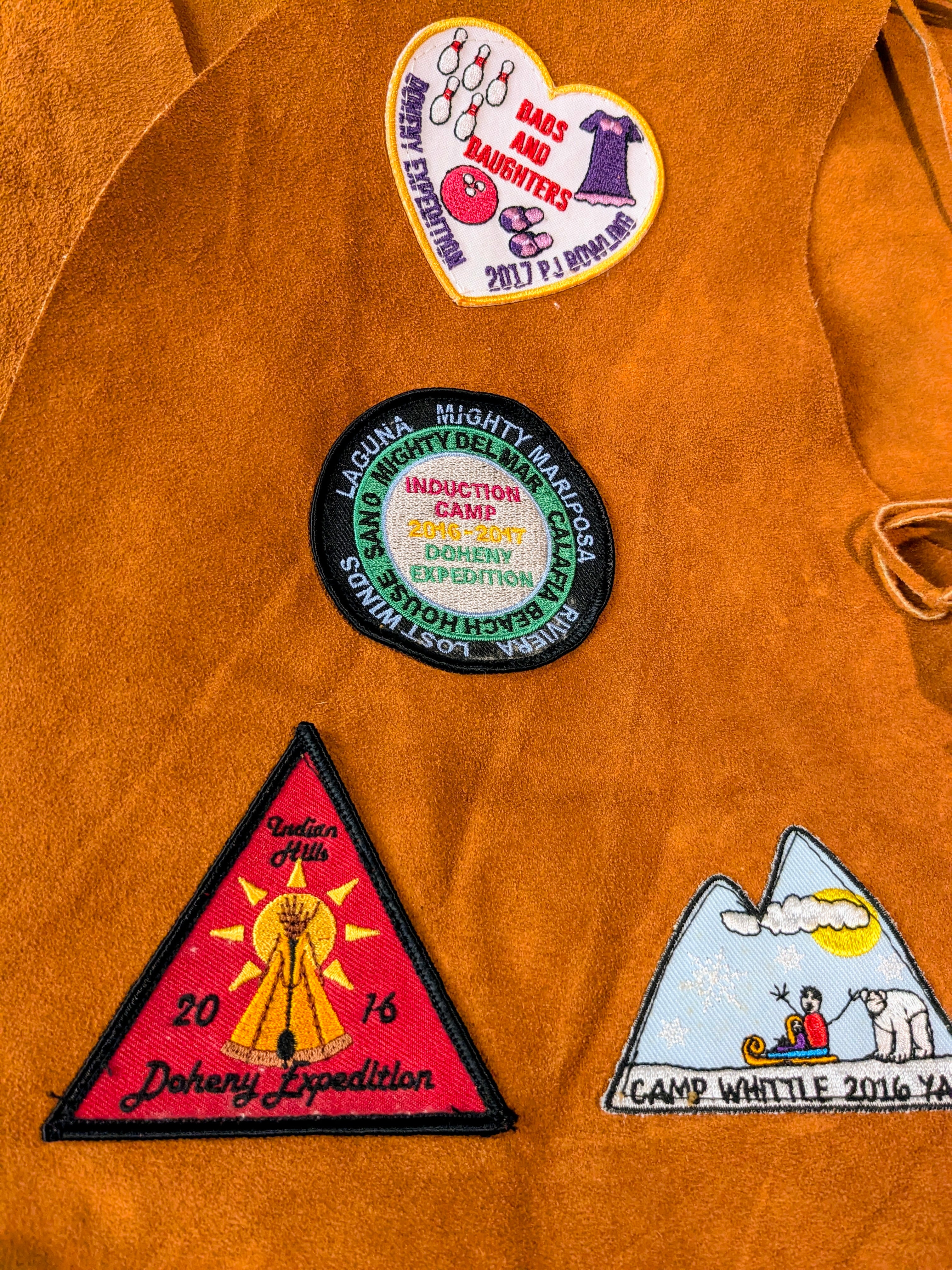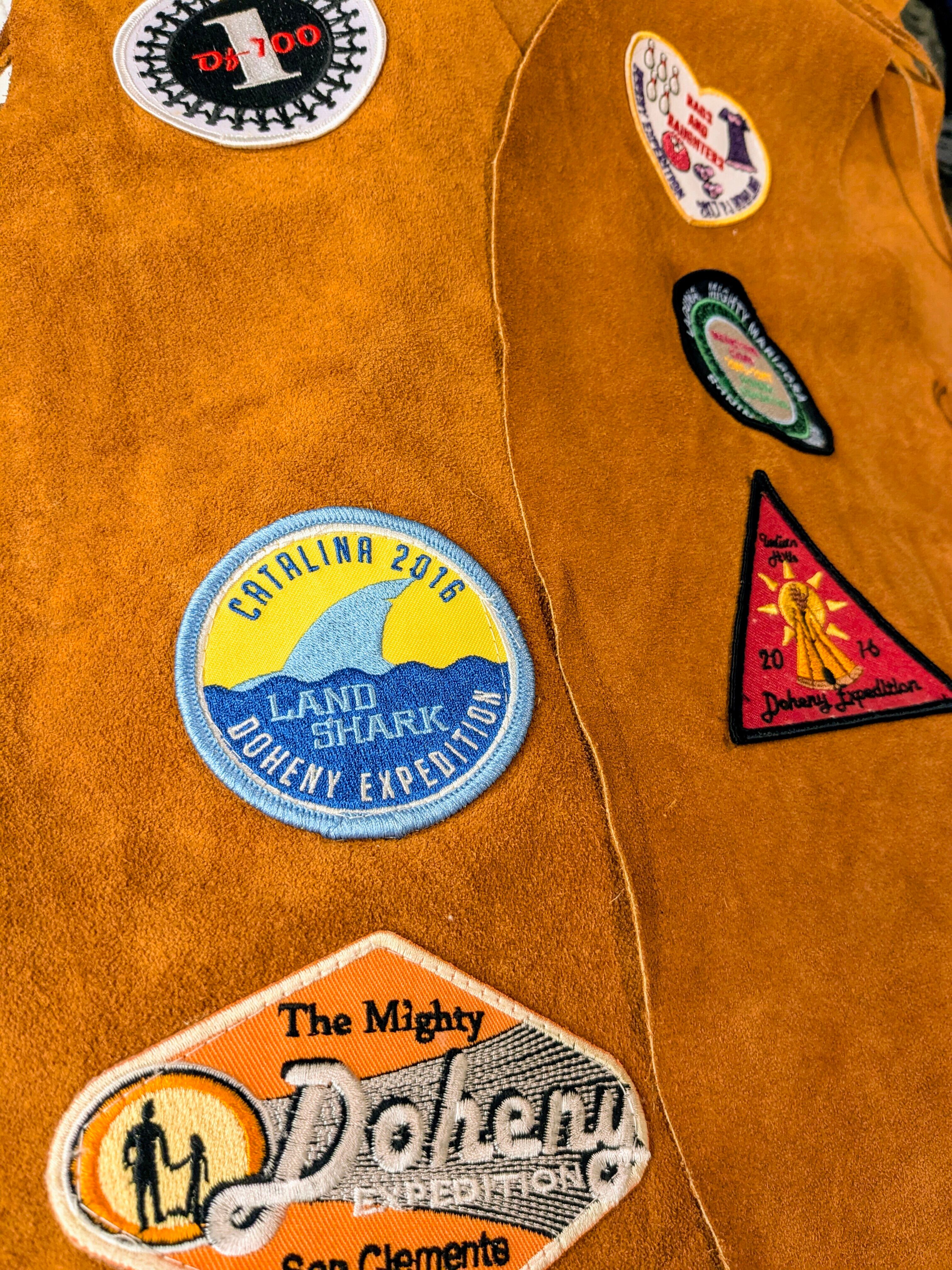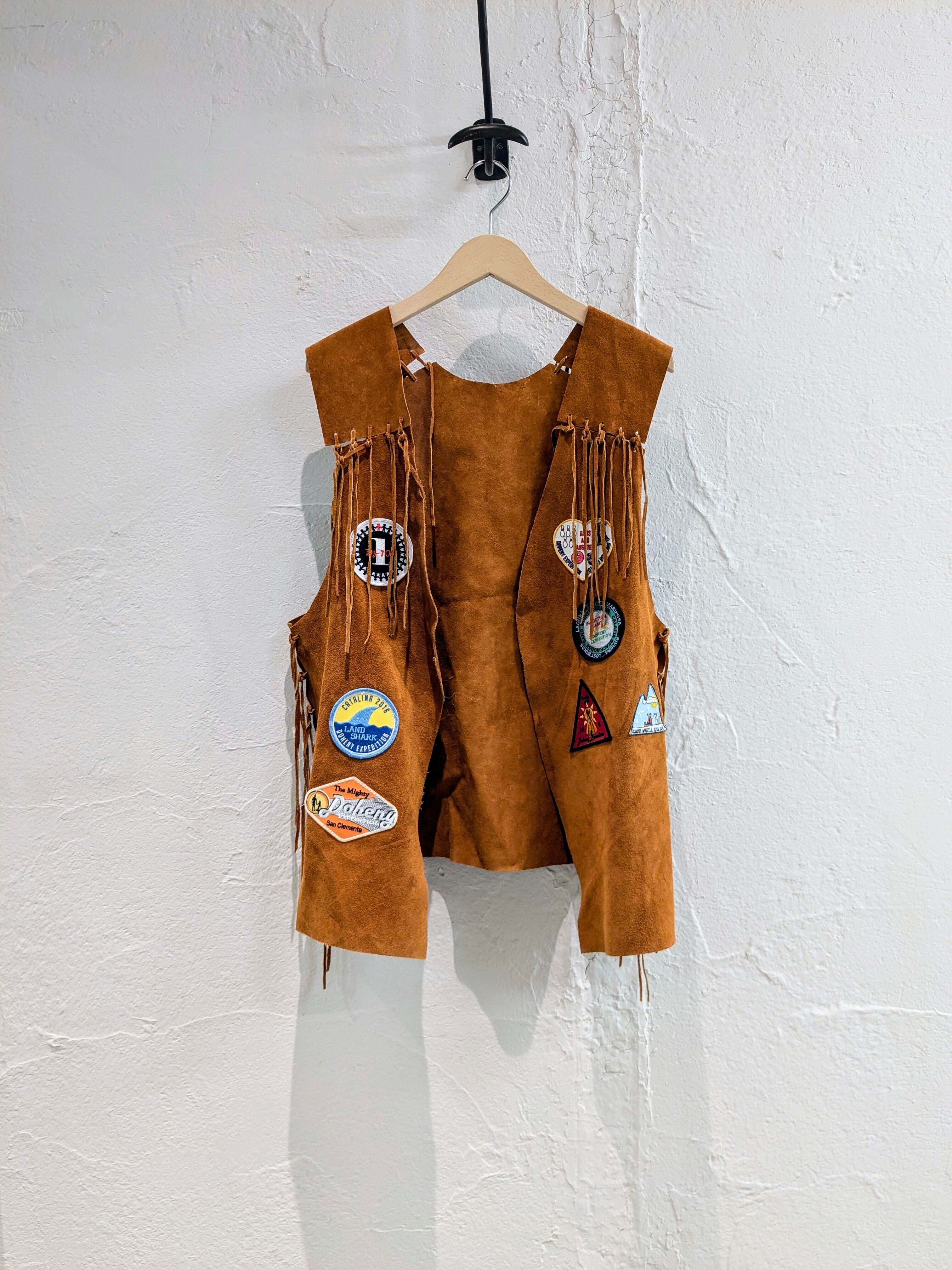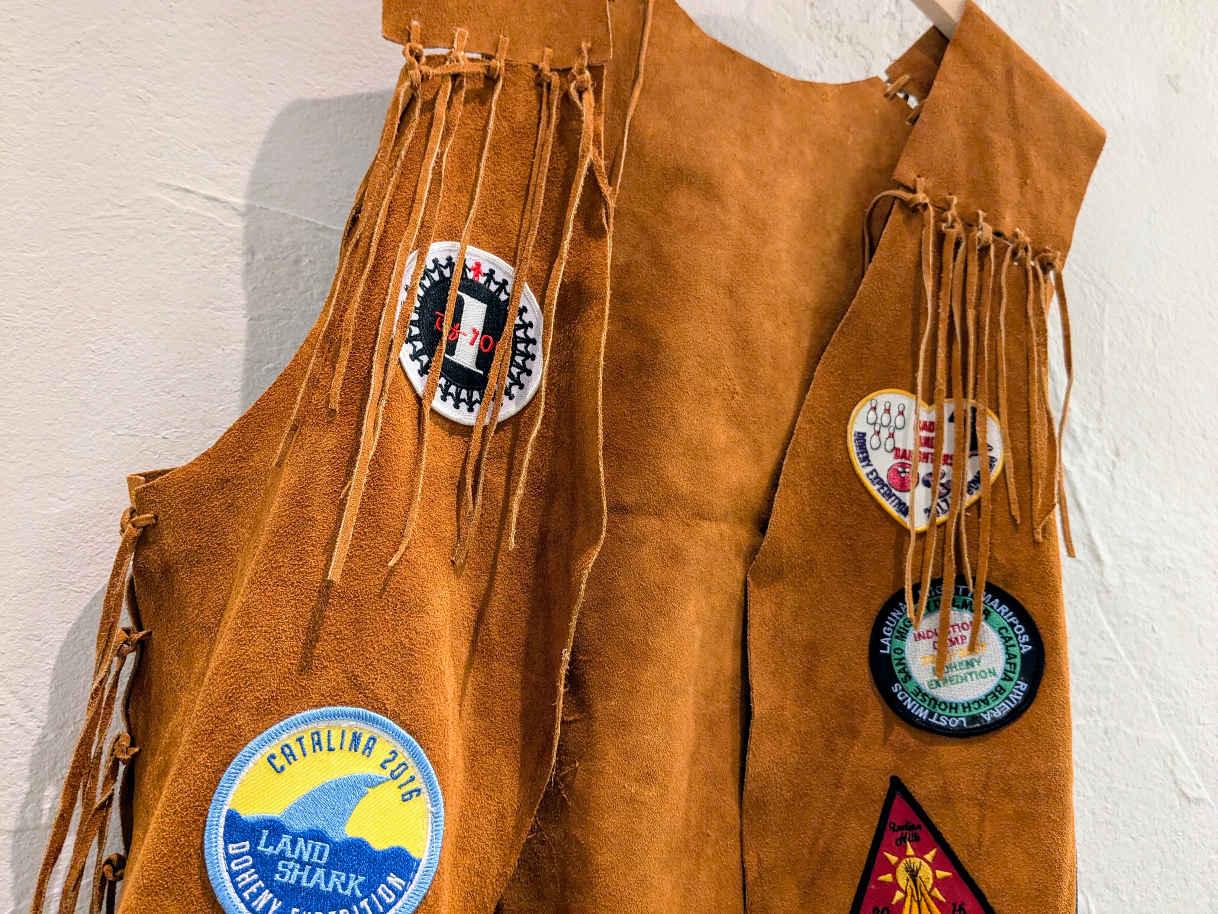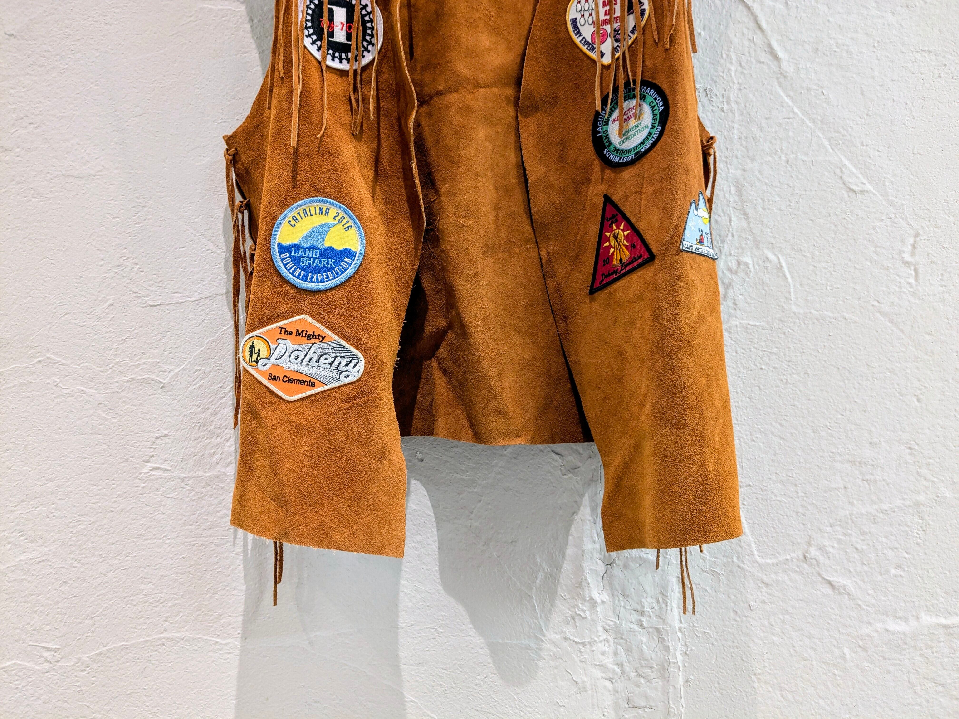 Doheny Expedition(=ドヘニー科学探検家)のワッペンの付いたレザーベスト。科学探検家とは、科学の分野において未知の領域に踏み込み、調査、研究を行う人。