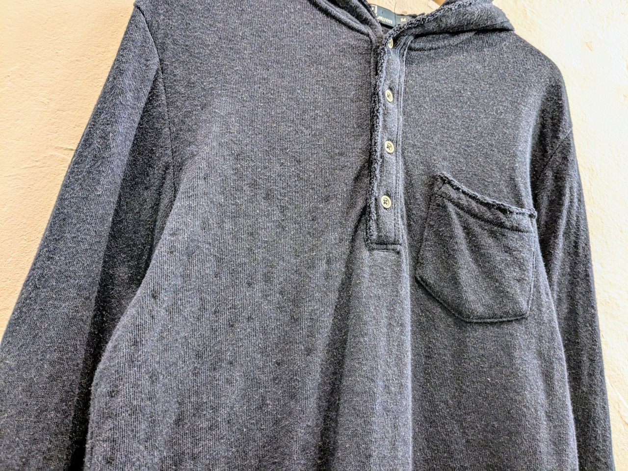 素材が絶妙で、ニット、スウェットどちらかといえばニットかな?という柔らかい素材のフーディ。