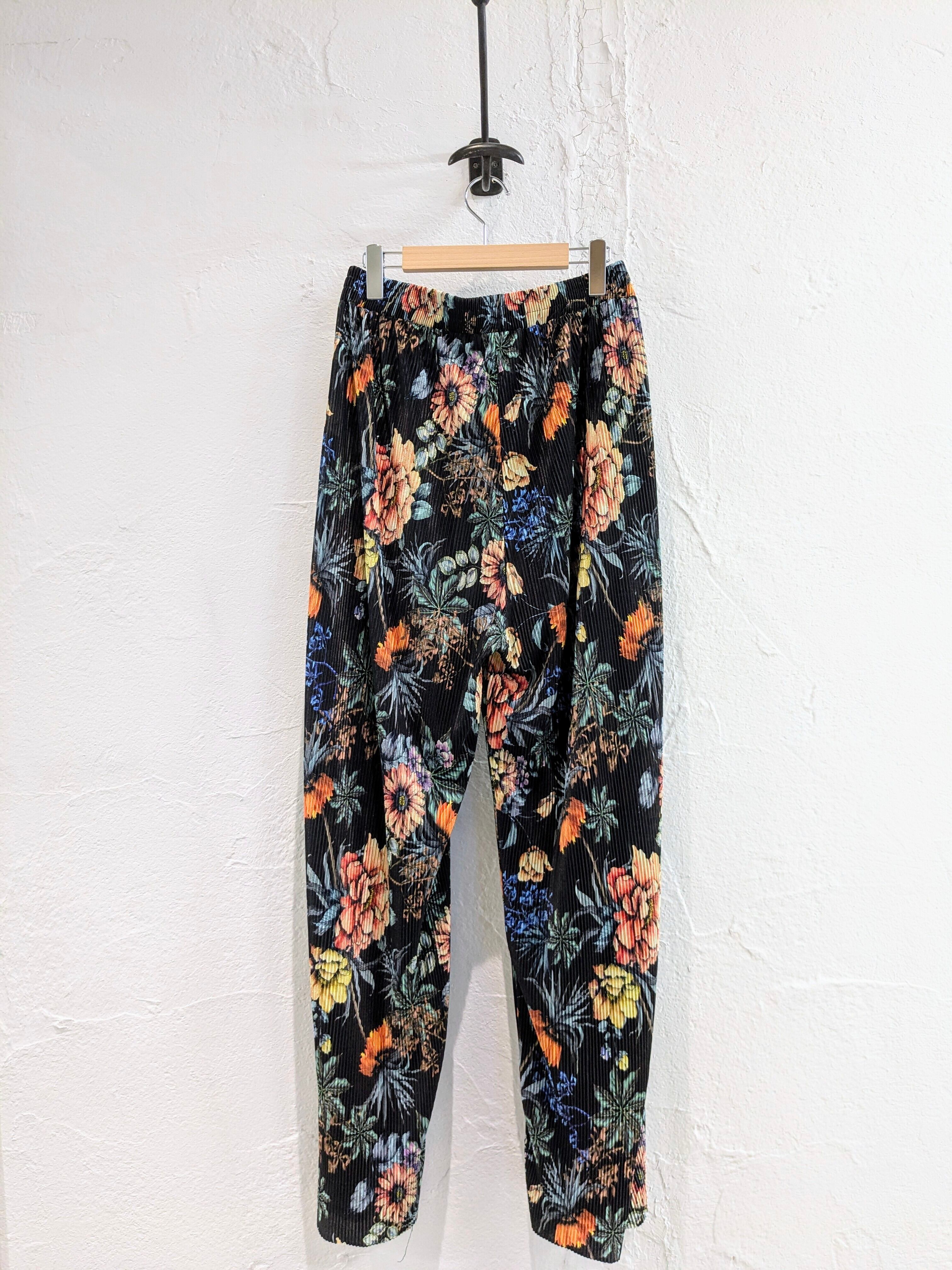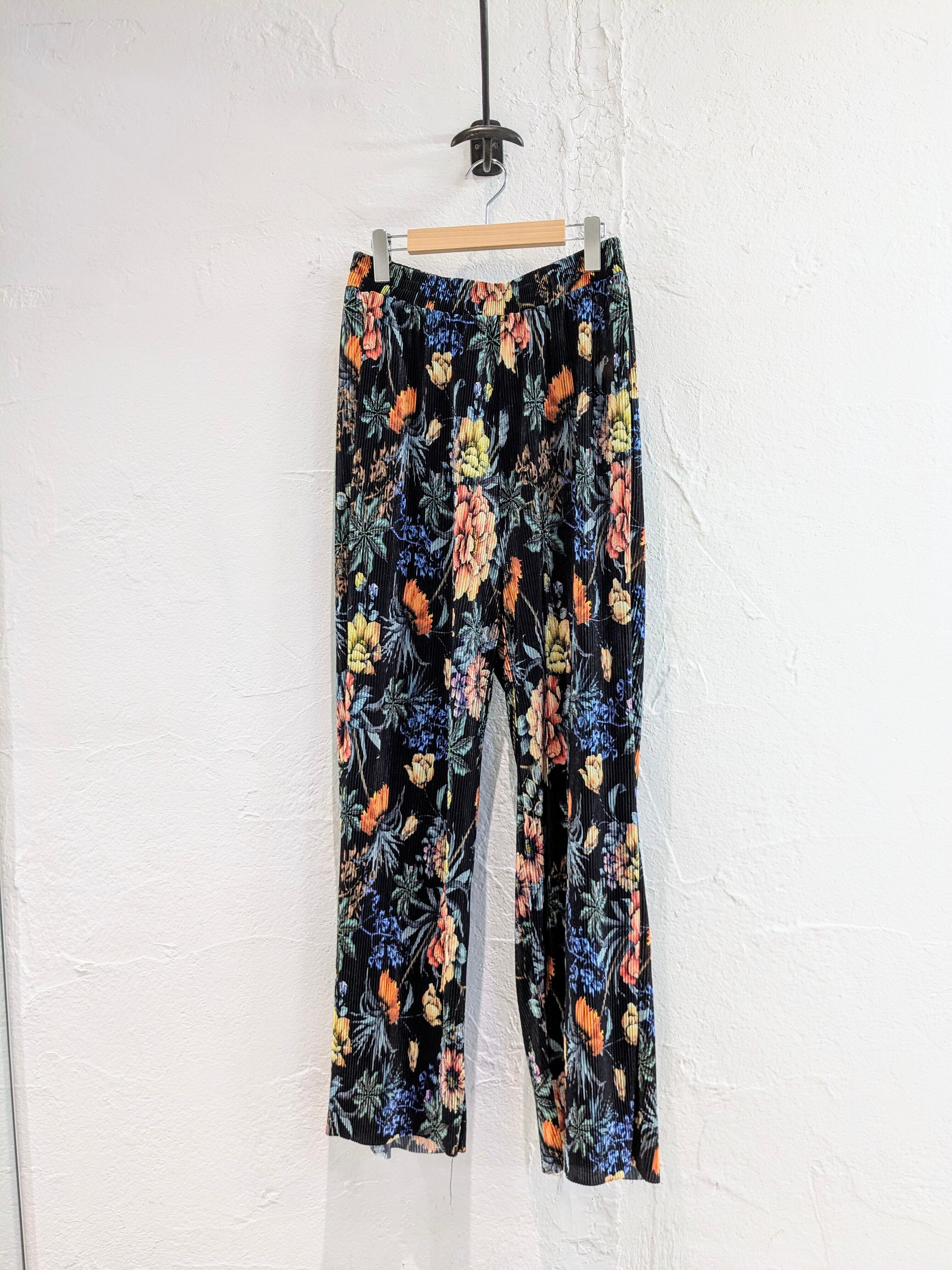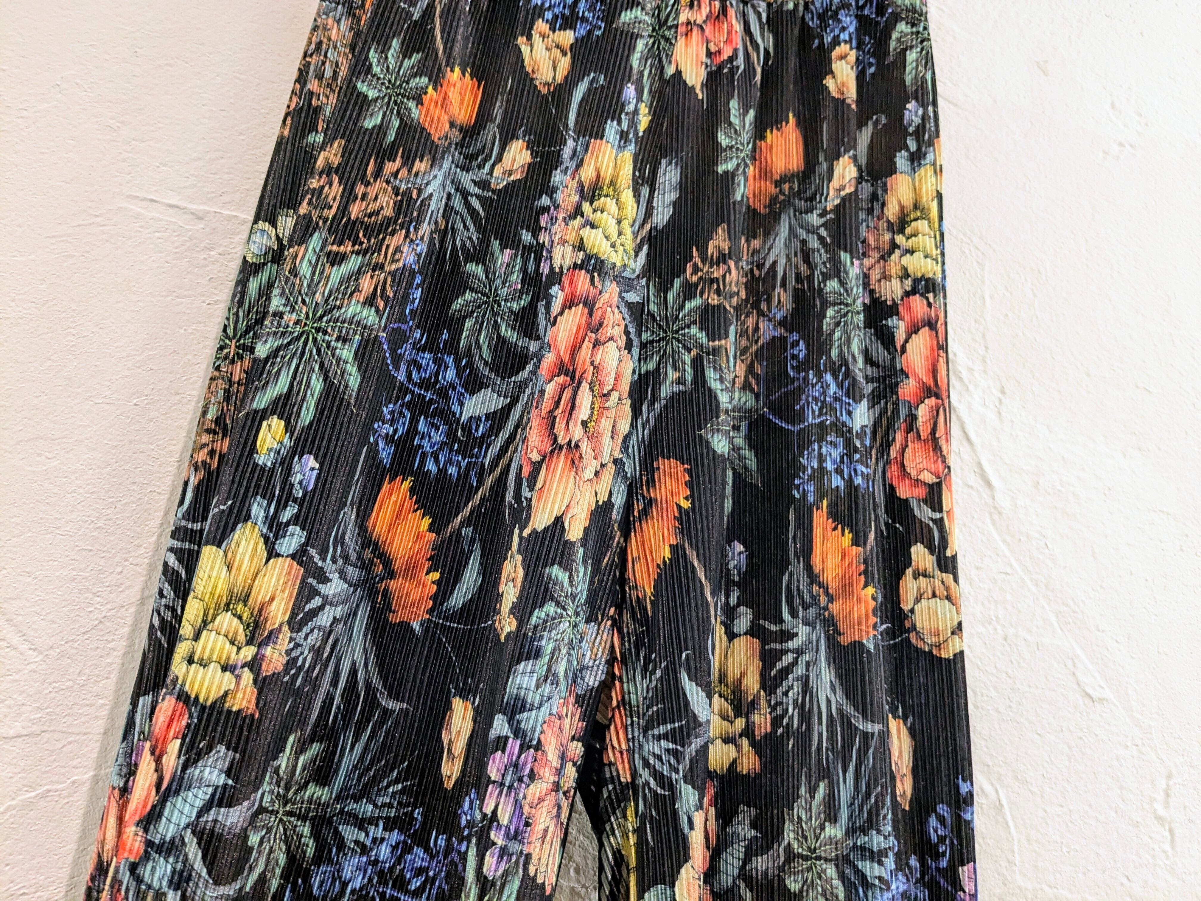 かなり上品なデザインで、デザイナーズとかにありそうなアイテム。ブラックのボディに色の花柄が映える一着。また、プリーツで凹凸感、表面変化があります。シンプルにTシャツに履くだけでも決まってしまう、そんなアイテム。