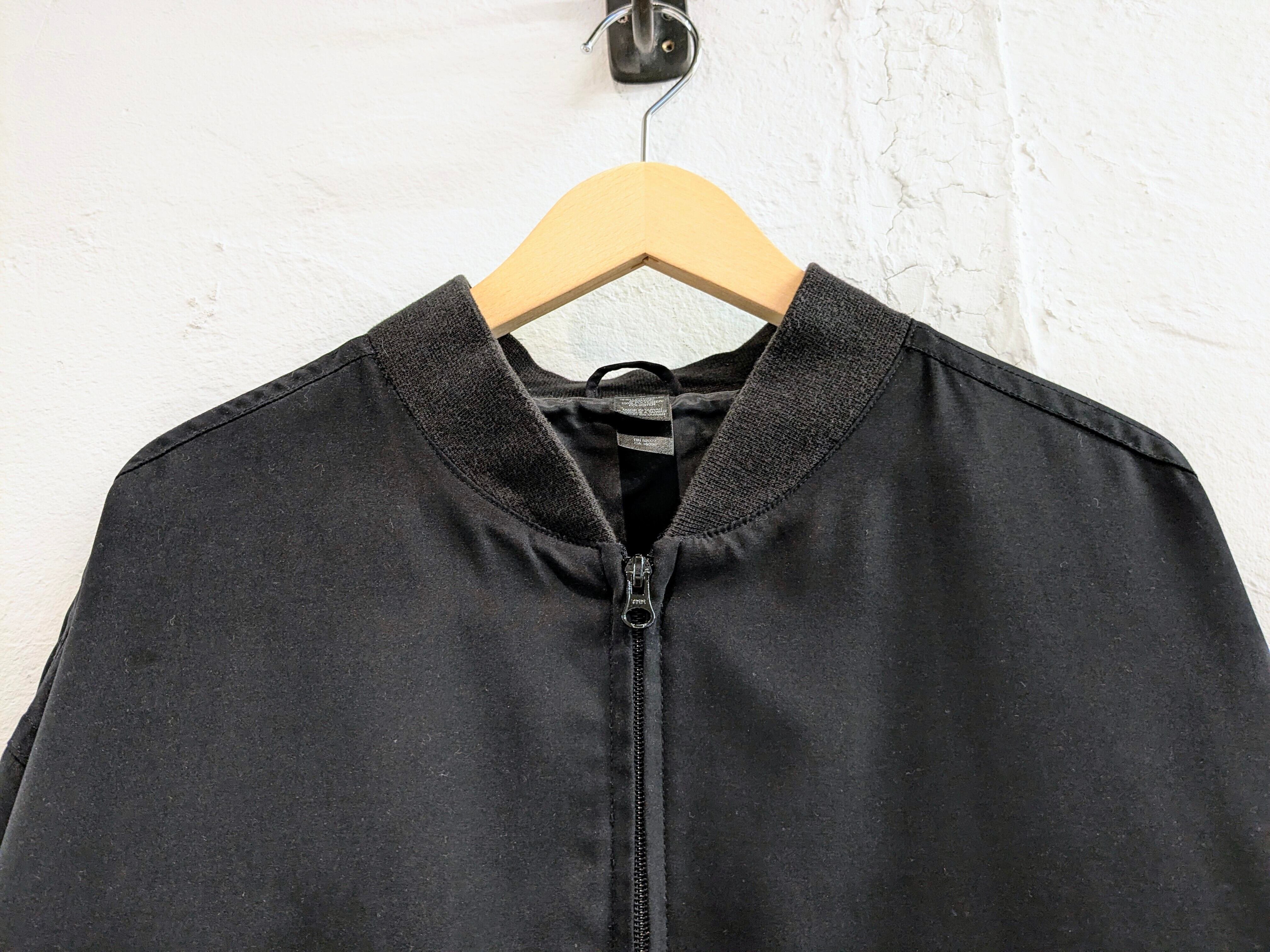 落ち感のある素材のMA-1。裏地は張ってあり、落ち感はありますが、しっかりとし素材感となっています。本来のMA-1のような無骨さはあまりなく、綺麗めな上品さのある面持ちをしています。ウォーターレペレントのタグがあり、撥水性も兼ね備えています。春先の時期から、梅雨時期も活躍してくれます。