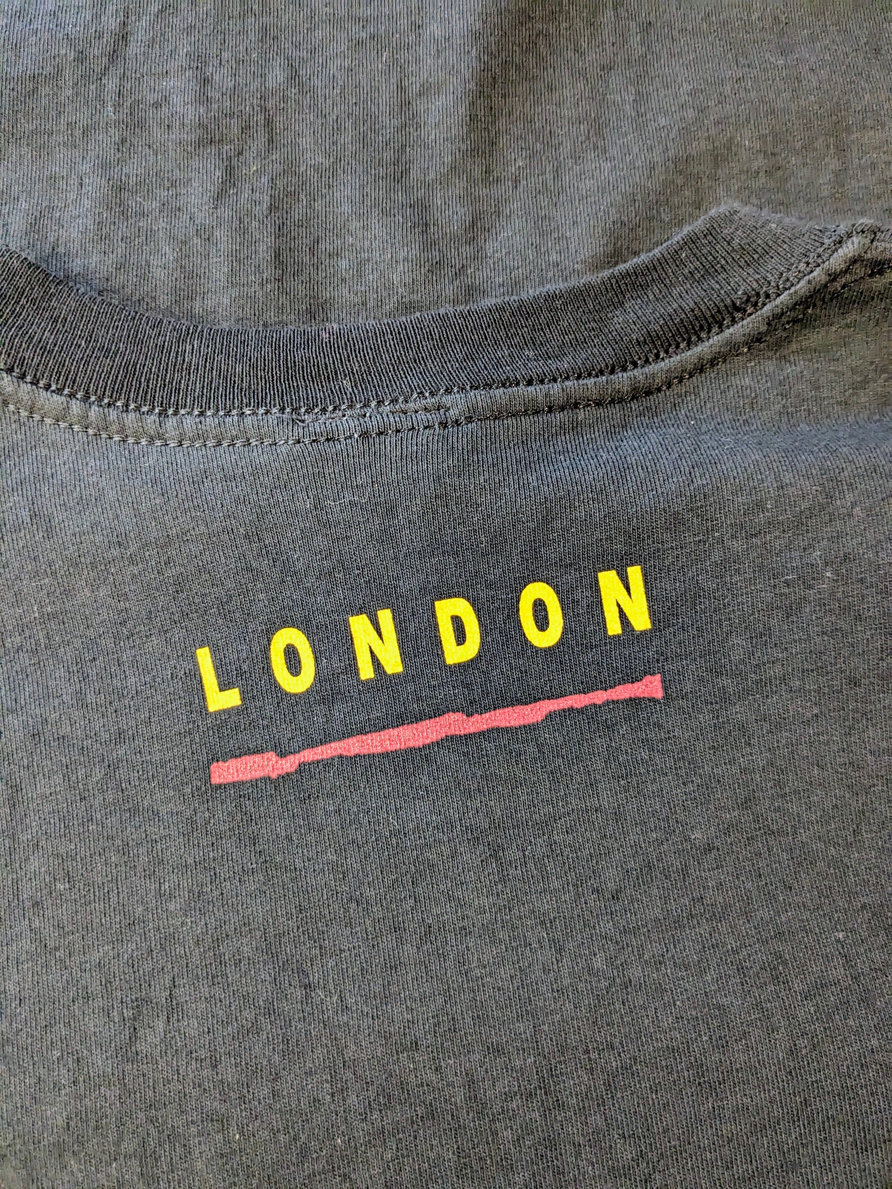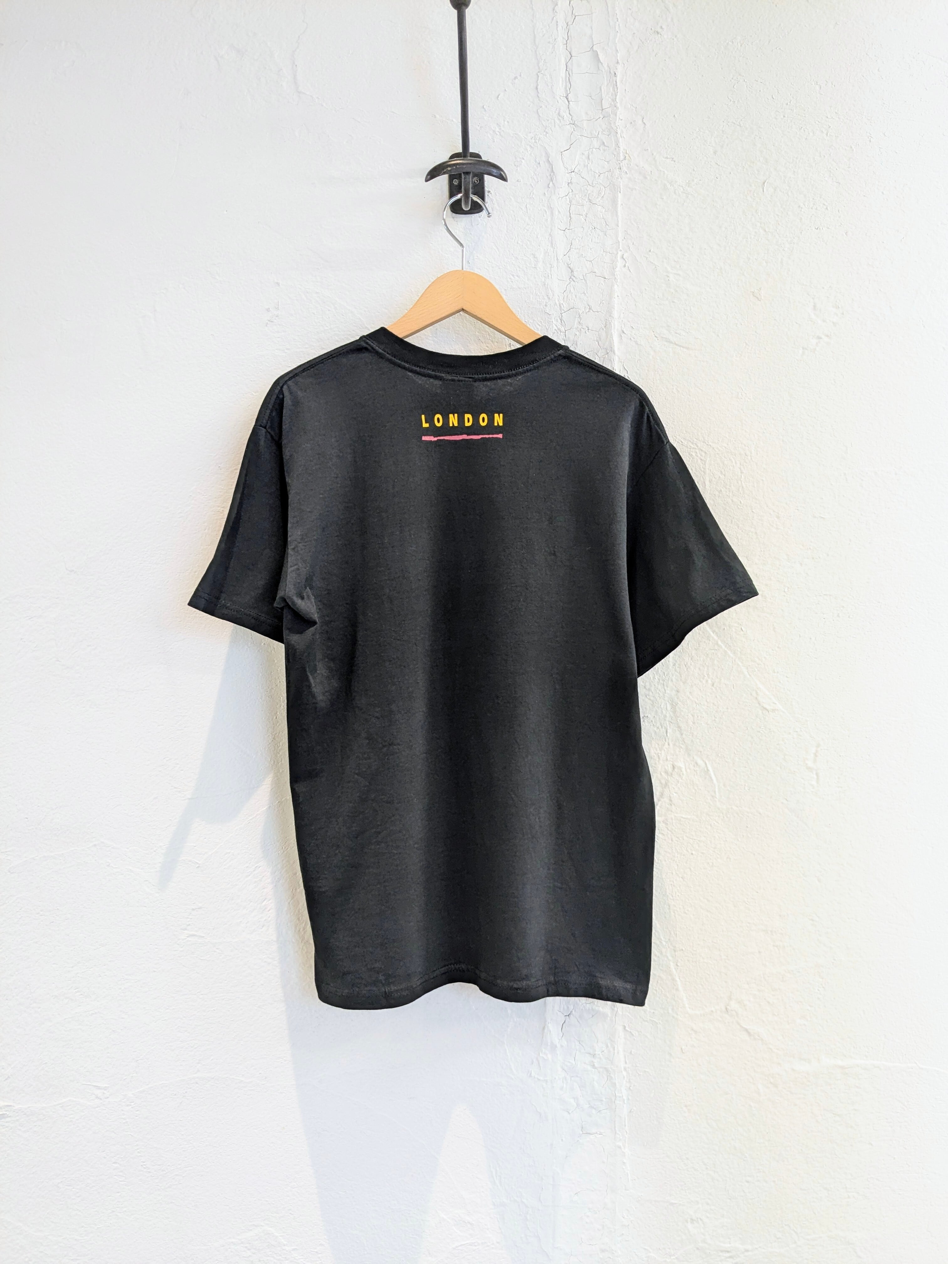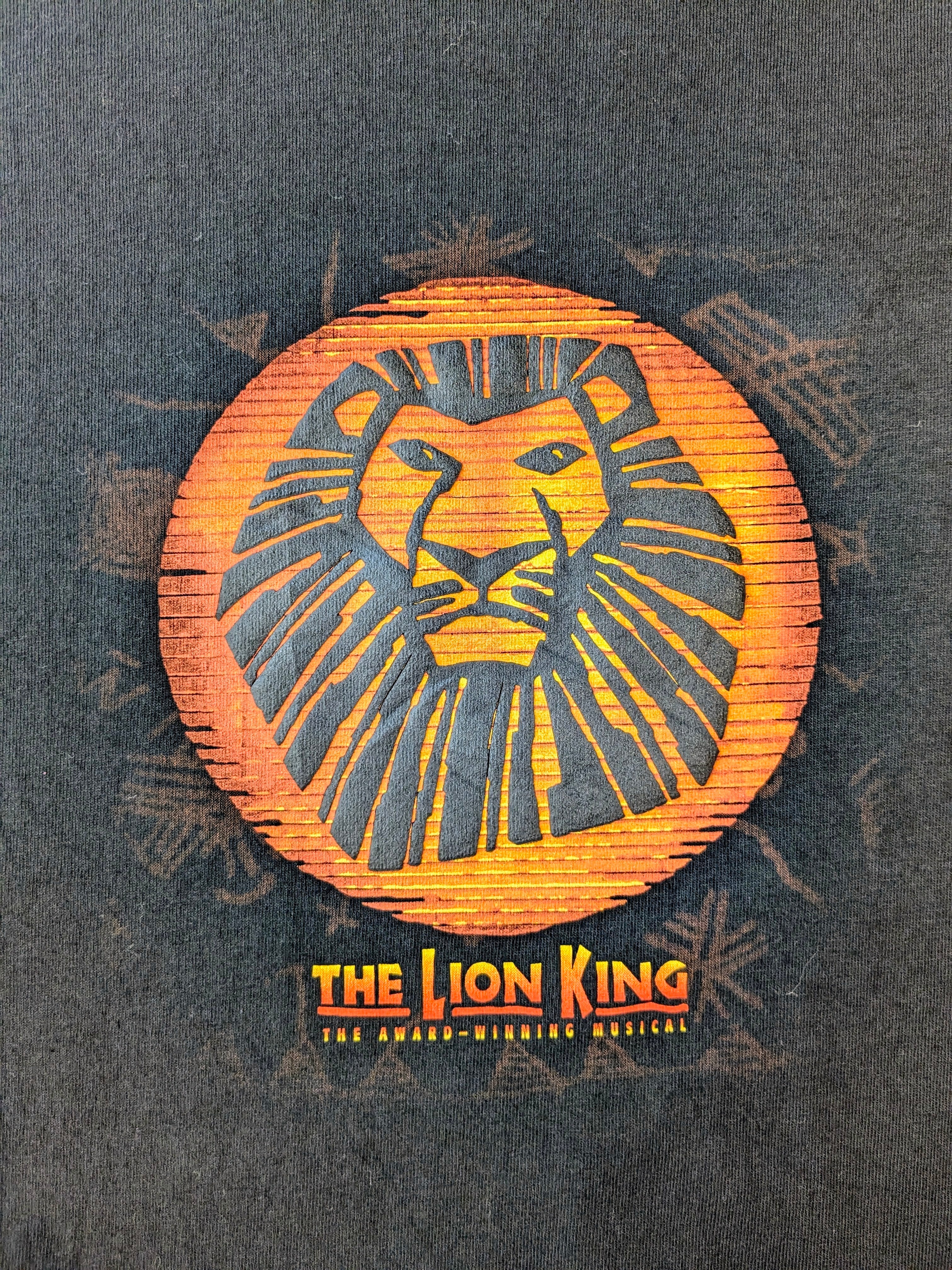 ミュージカル、ライオンキングのロンドン公演のTシャツ。スーベニアもの。フロントはライオンキングと一発で分かるプリント。発泡プリントとなり、凹凸感のあるデザイン。背面にLondonのプリント。ブラックボディにオレンジベースのプリントが目を引く一着。