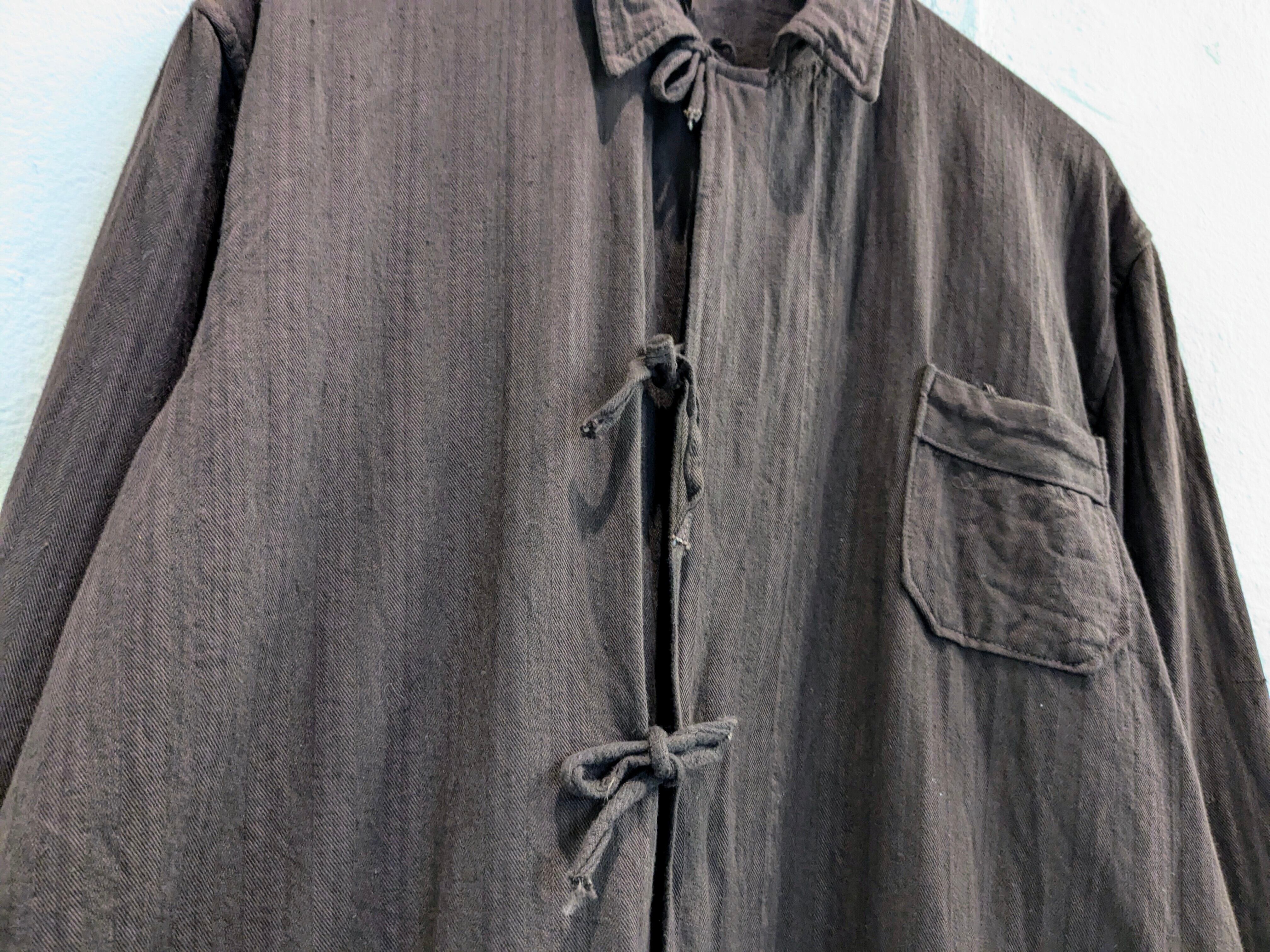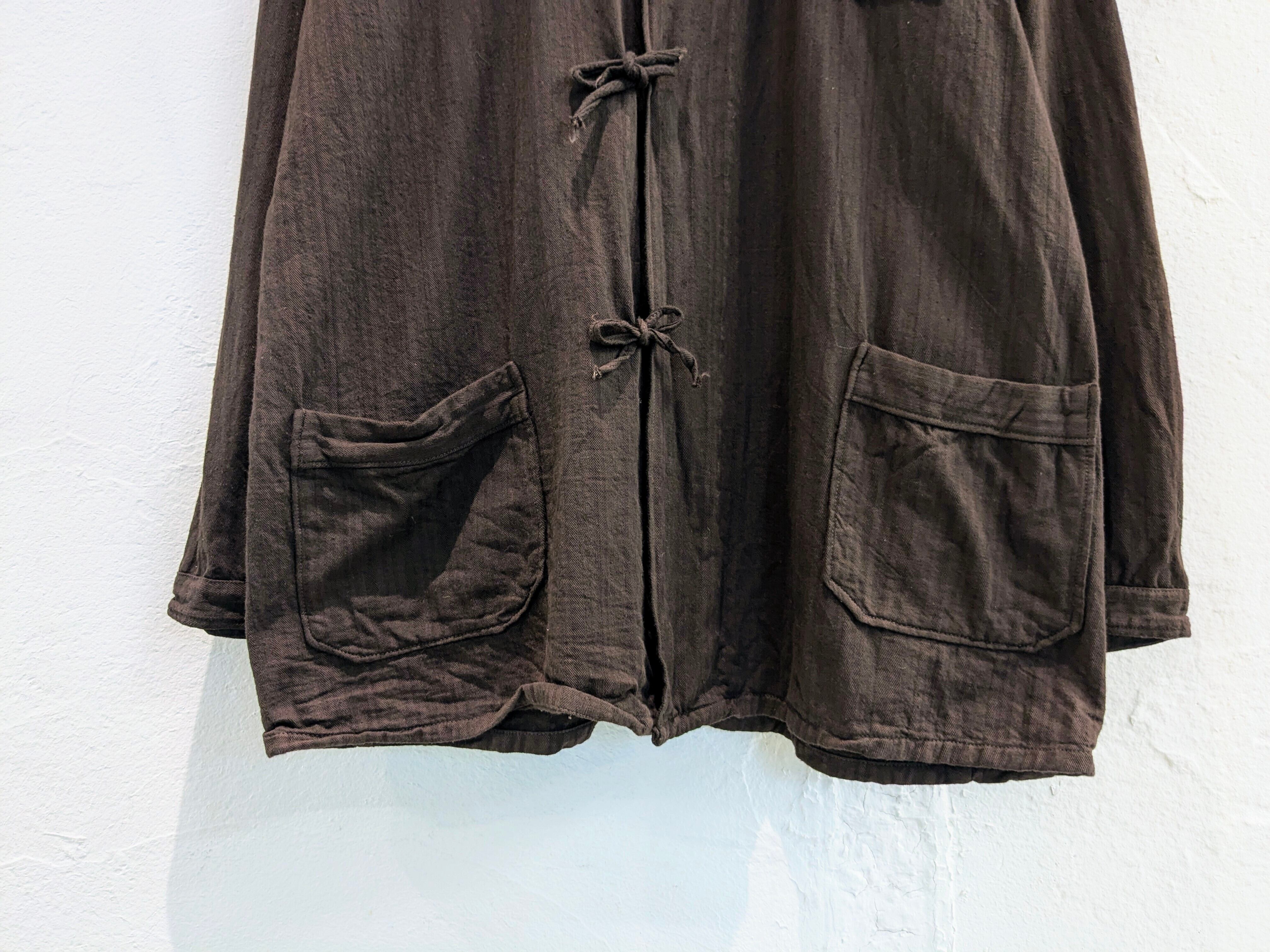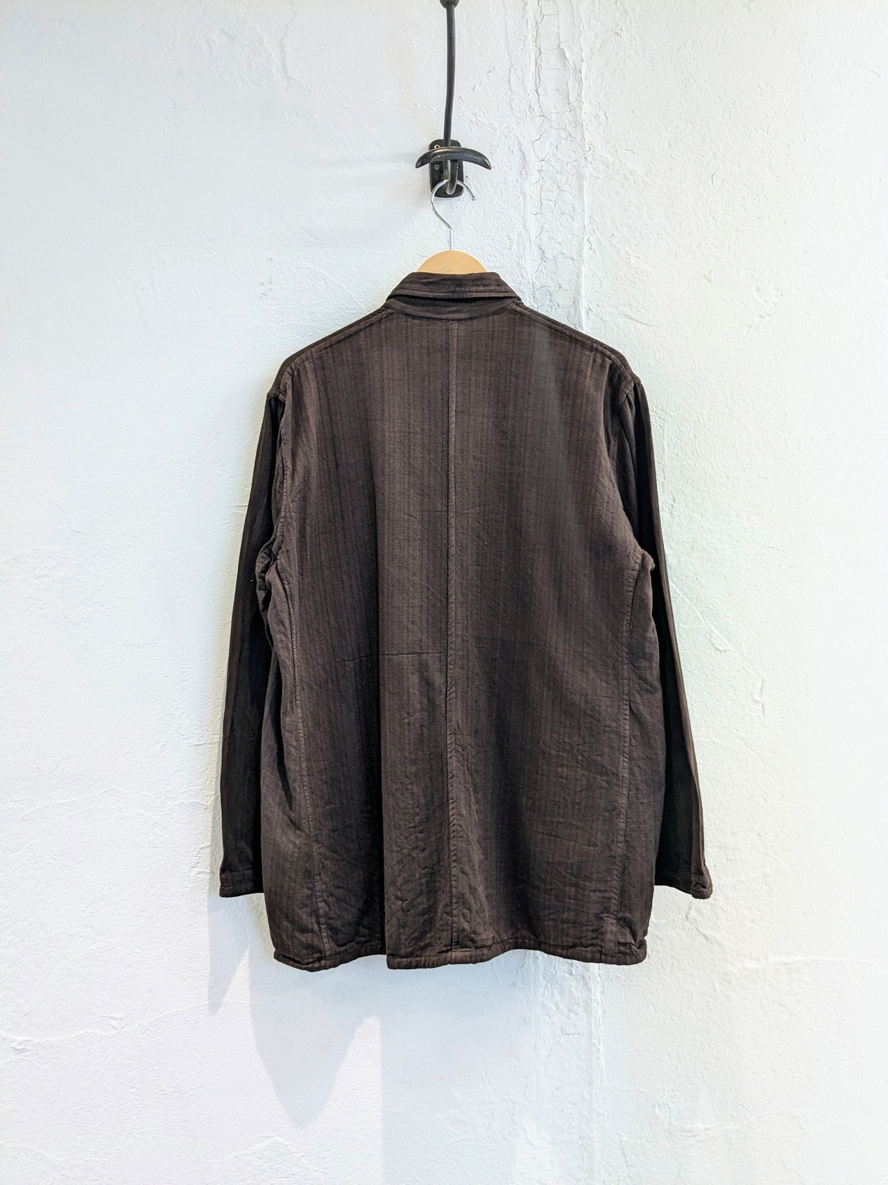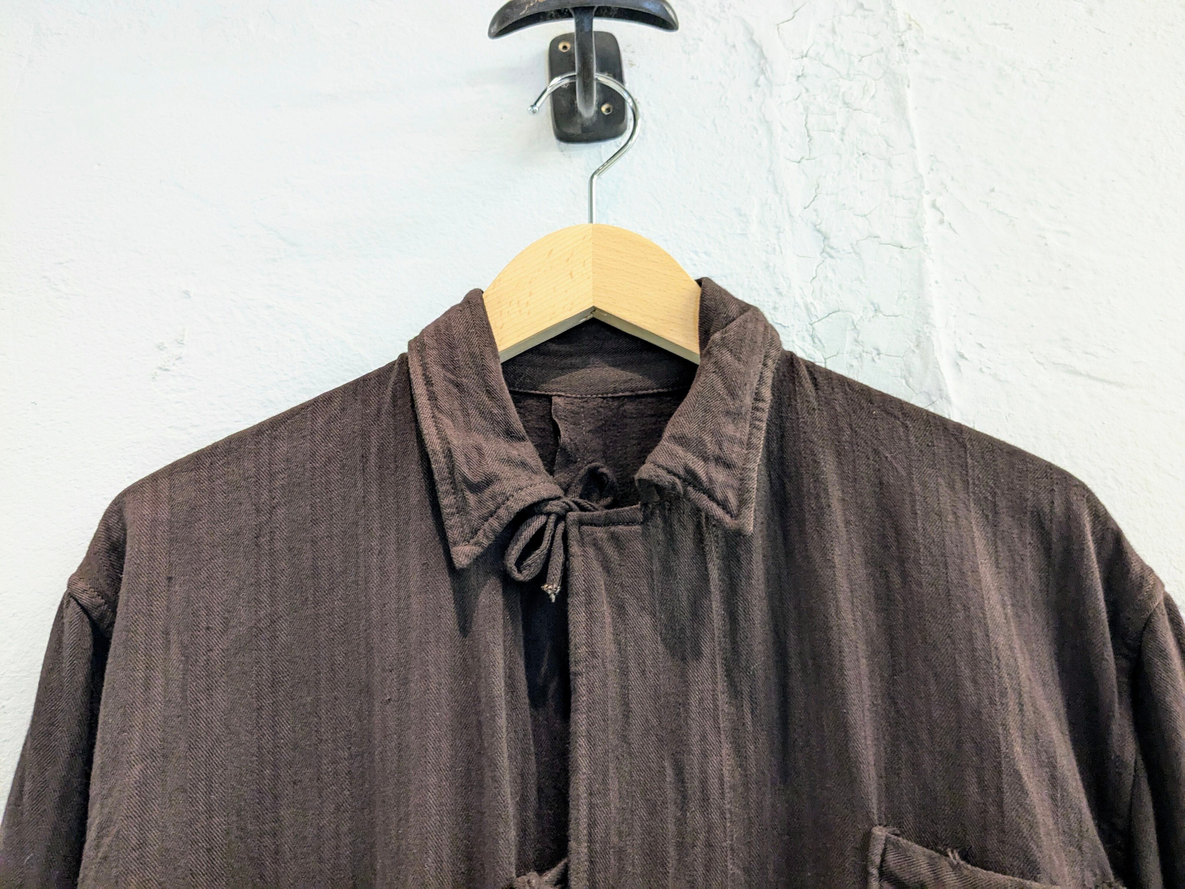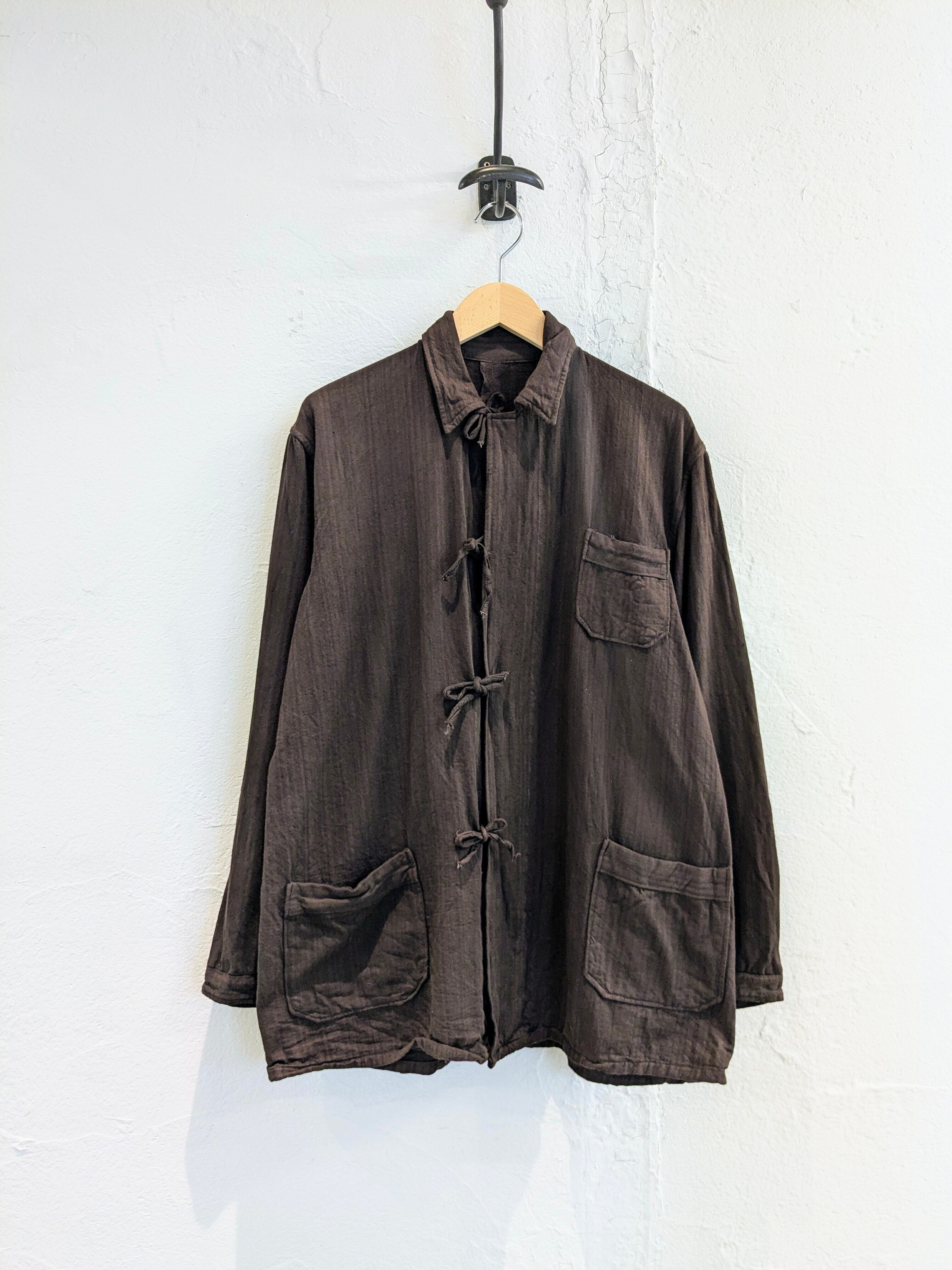 その名前の通りでパジャマなどに使用されていたアイテム。ゆえに、紐で脱ぎやすいようにだったり、生地がガーゼのような生地で柔らかくなっていたりします。ブラウンの色は個人的には初めて見て、元々別の色を染めたのかなと思います。元々ブラウンの可能性ももちろんあります。シャツとジャケットのちょうど間のようなアイテムなので、着れる時期も長く、普通のシャツとちょっと違うのをお探しの方にはオススメ。