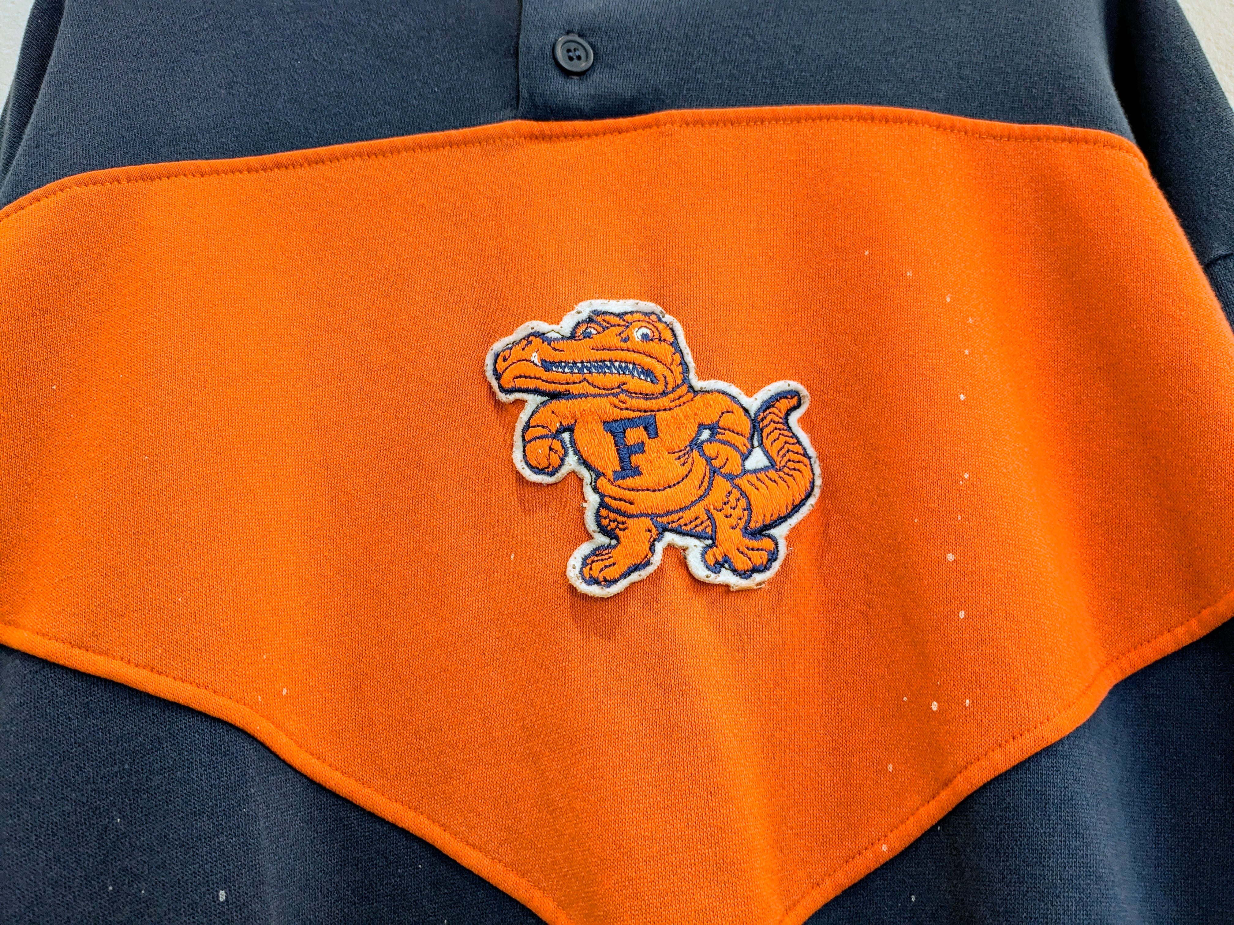 1970年代頃のスウェットシャツ。NFLのフロリダゲイターズのワッペン付き。首元のデザインとしては、ヘンリーネックとなります。配色もレトロな雰囲気という表現が正しいか分からないですが、とても可愛いデザイン。ペンキの汚れがとんでいるのですが、そこはまた味かと思います。