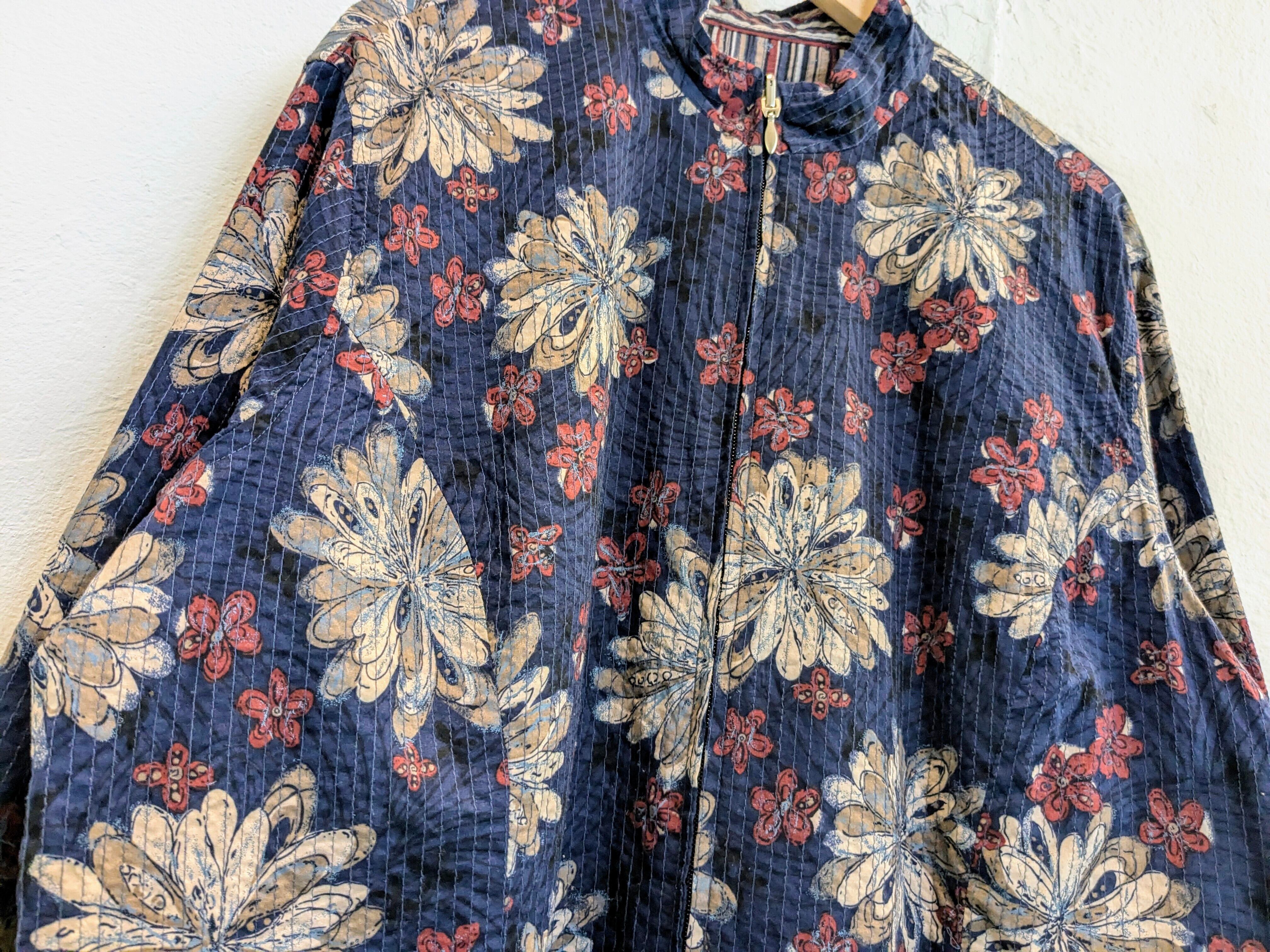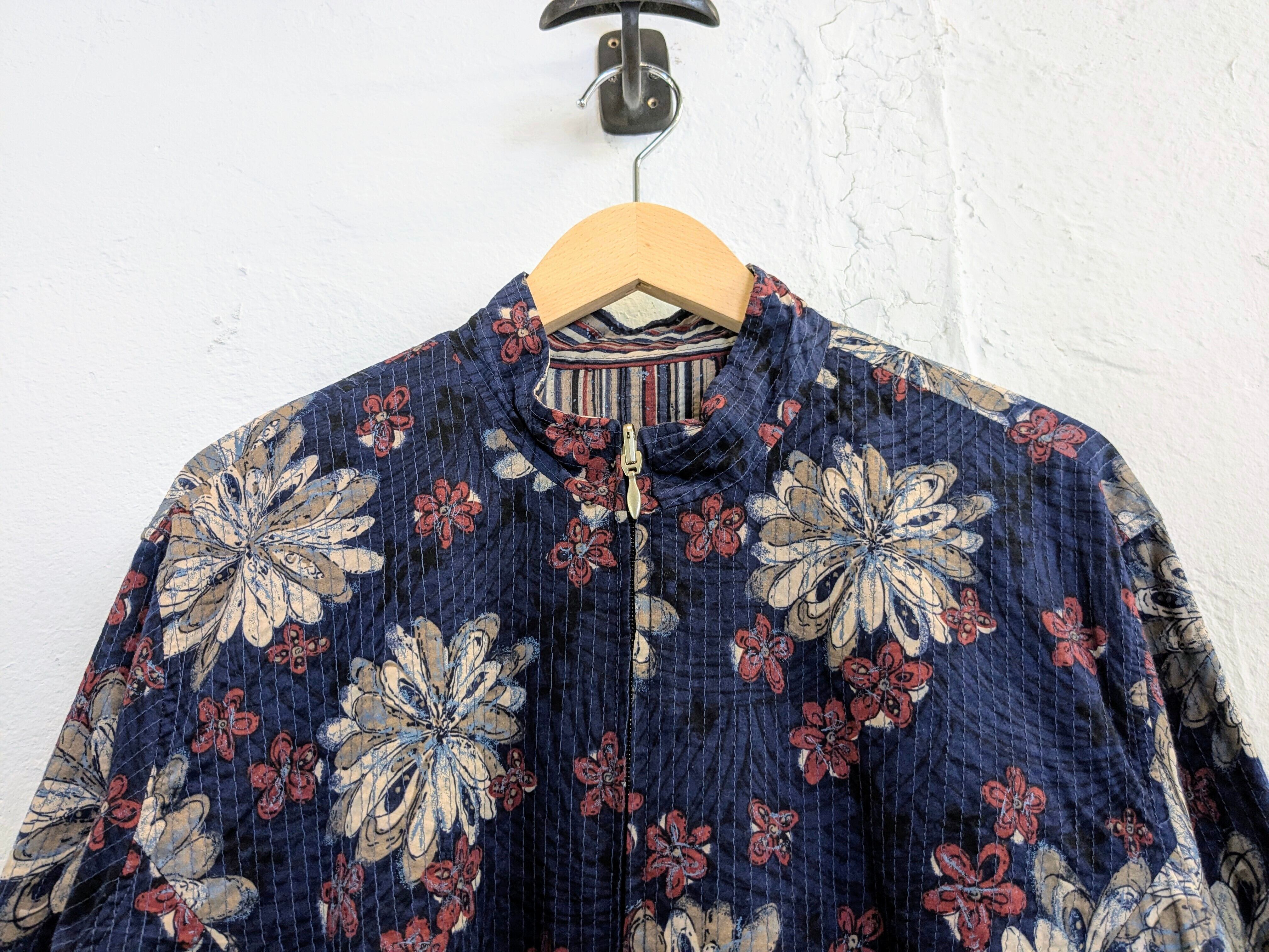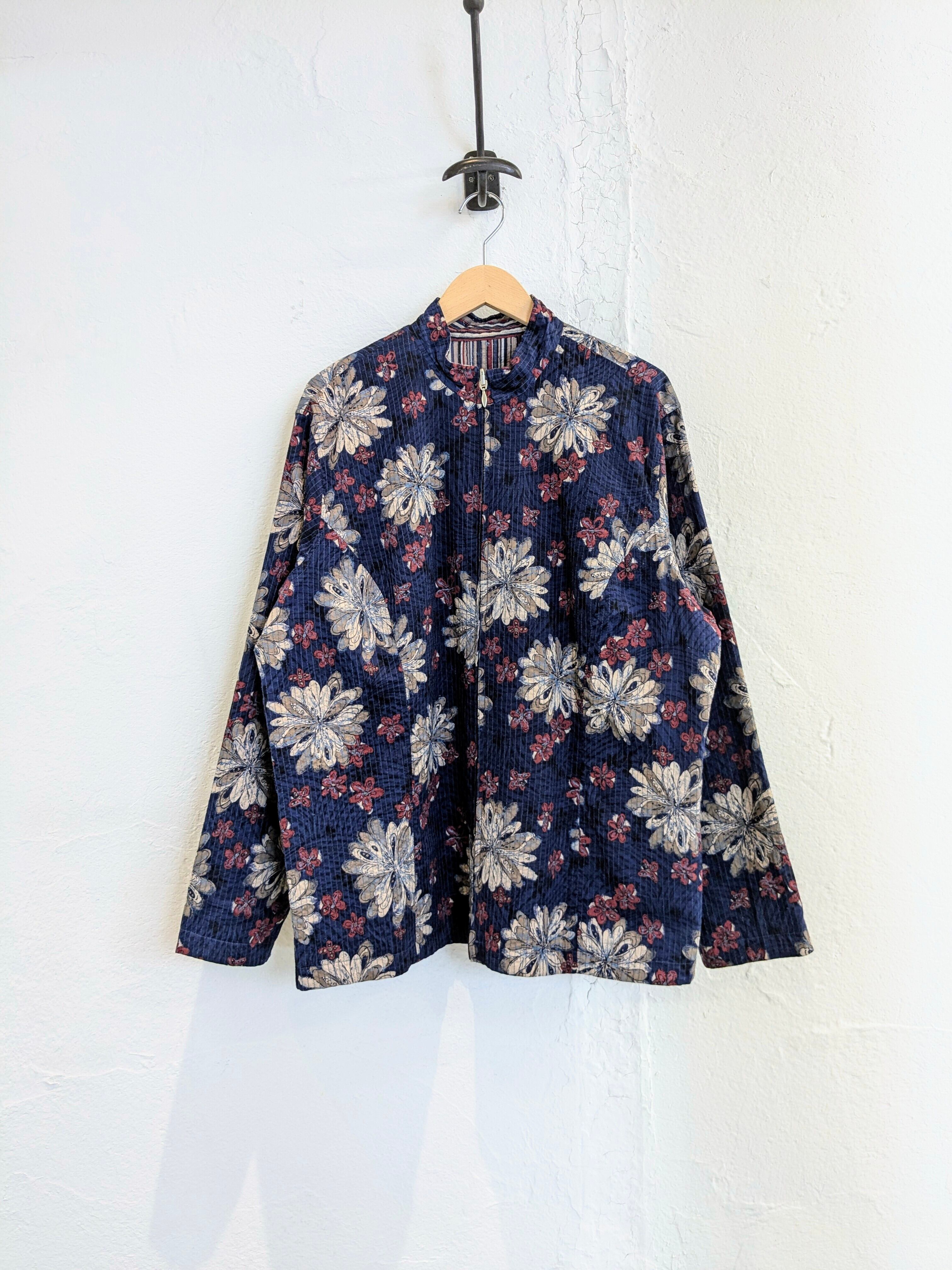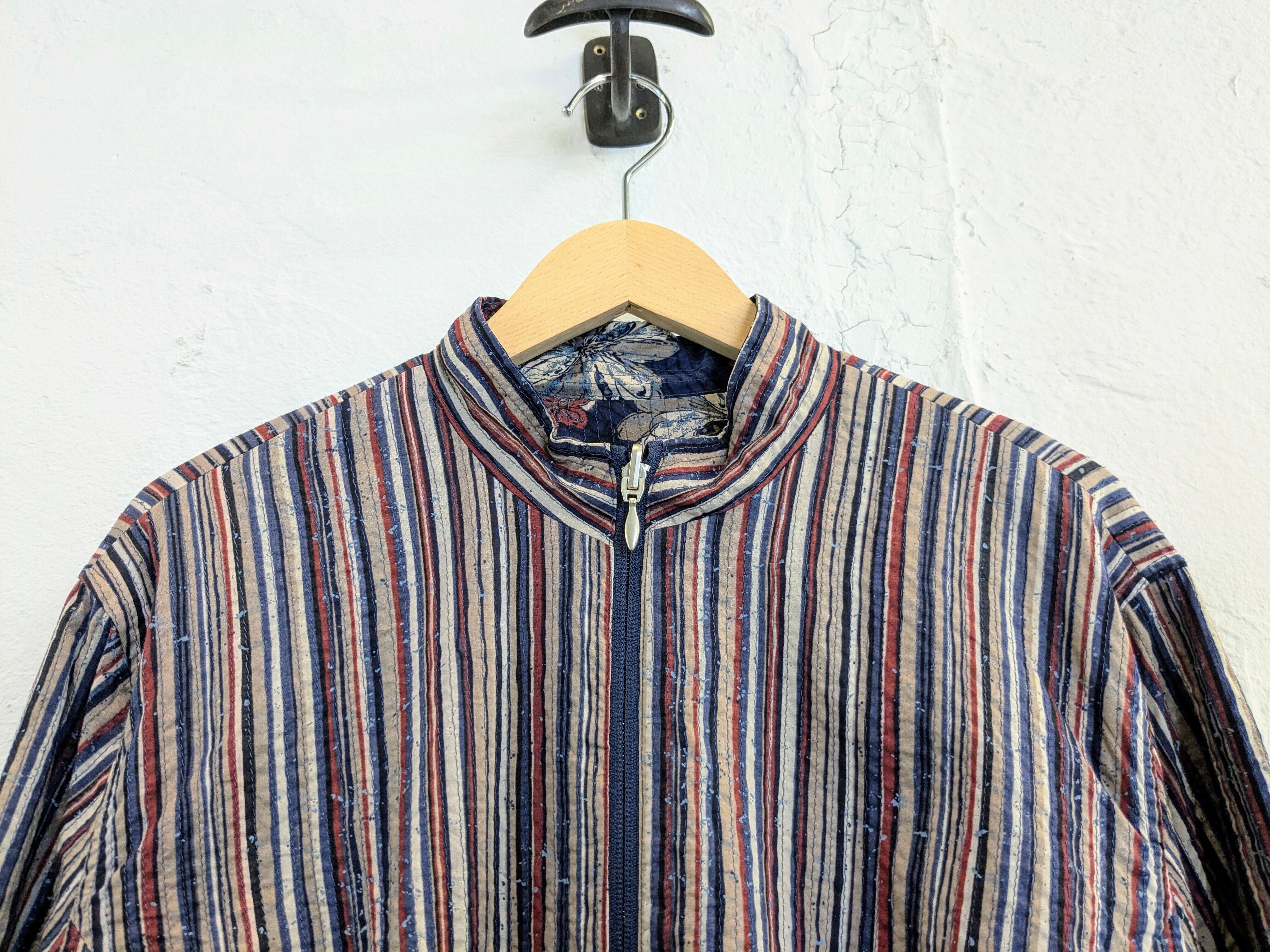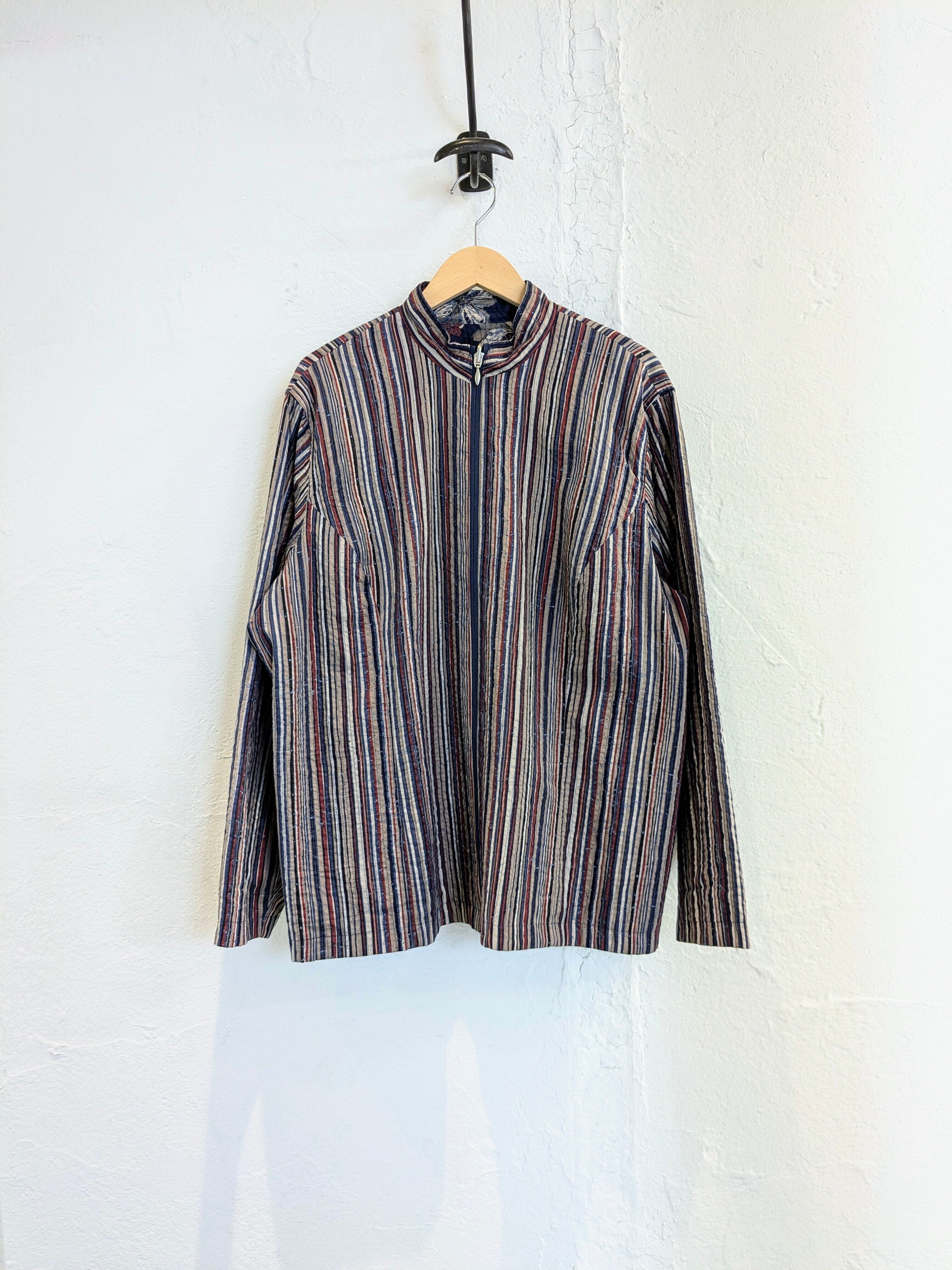 Flower & Stripe Pattern Reversible Blouson