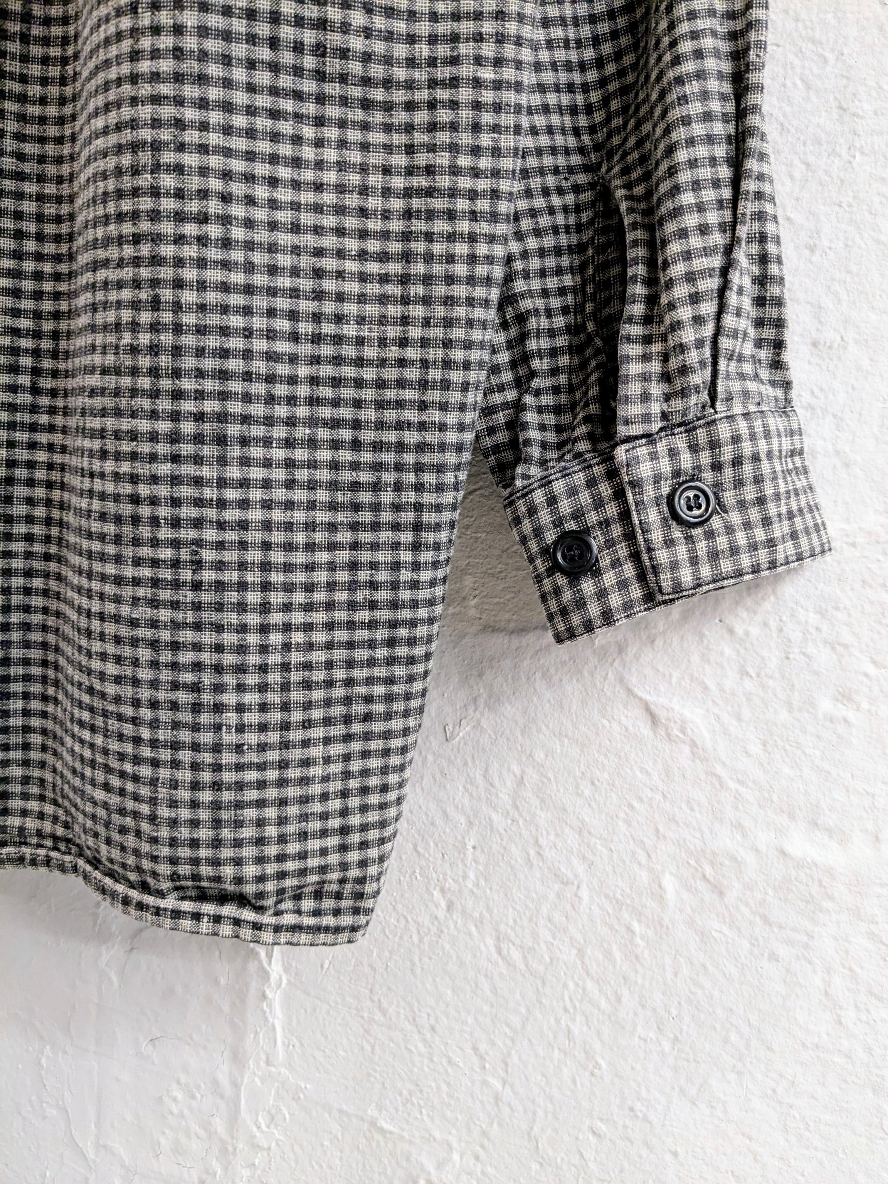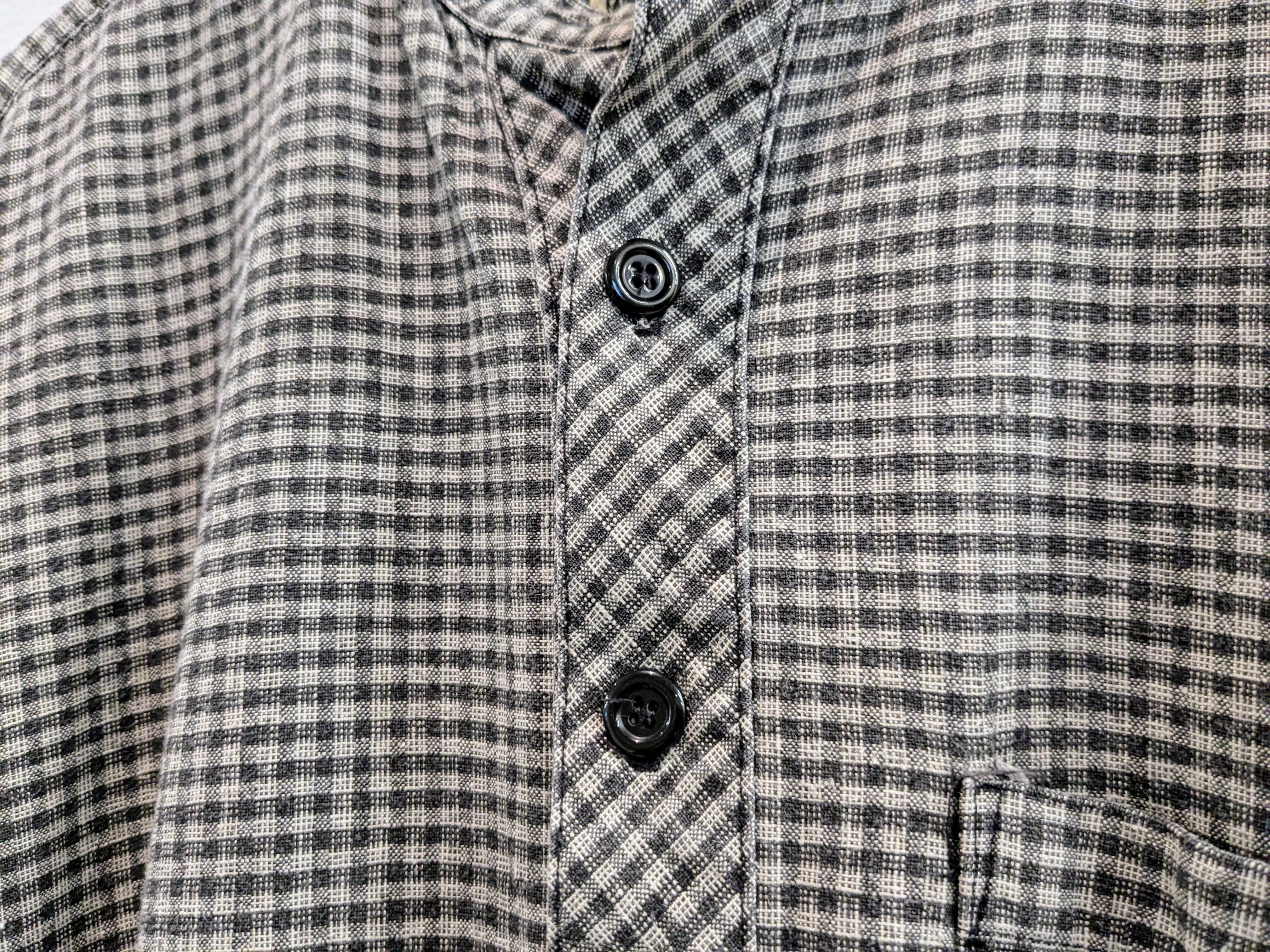 リネン混なので吸湿性、通気性に優れているので、とても快適に着ていただけます。白〜黒の色を使っているので、ベースはグレーに見えますが多色使いとなります。