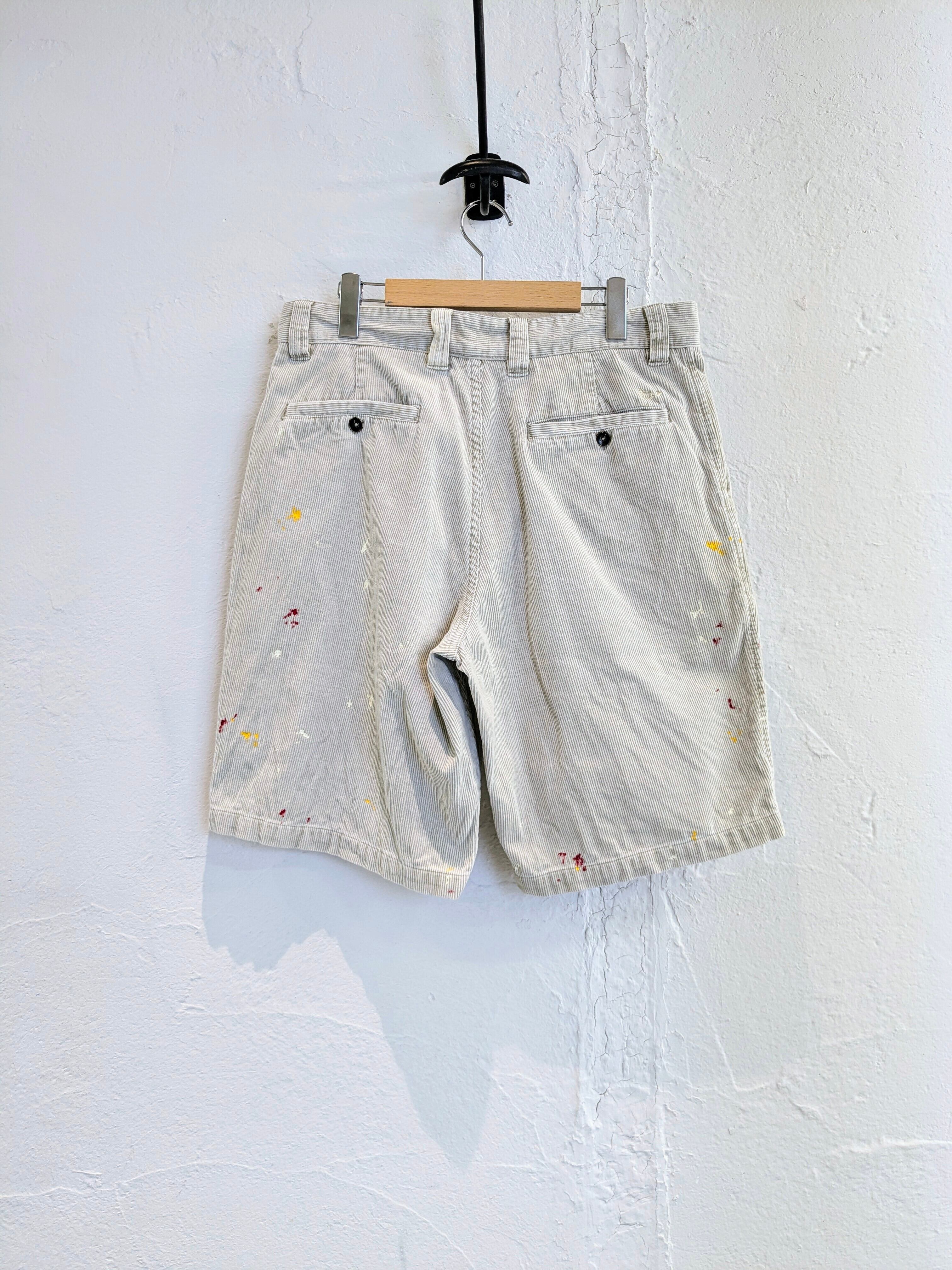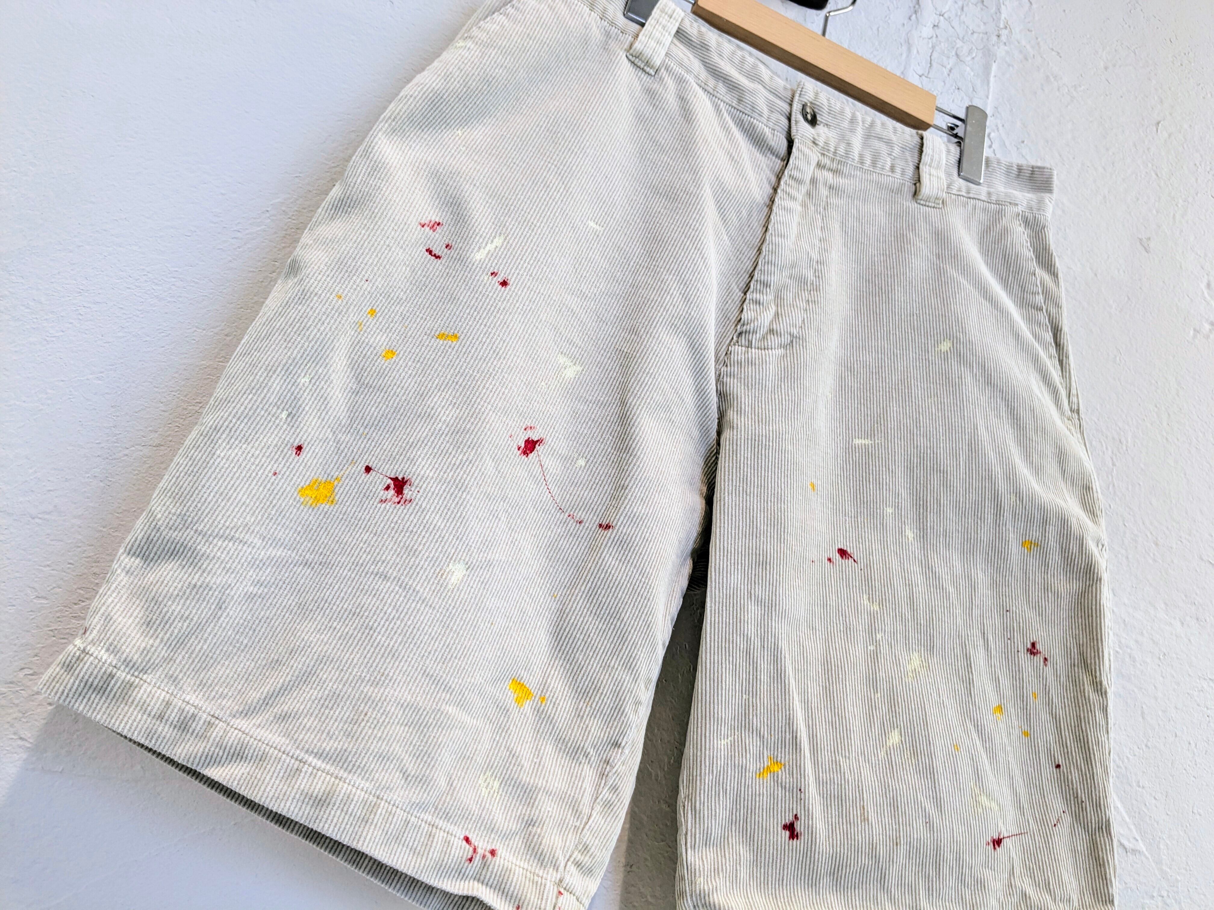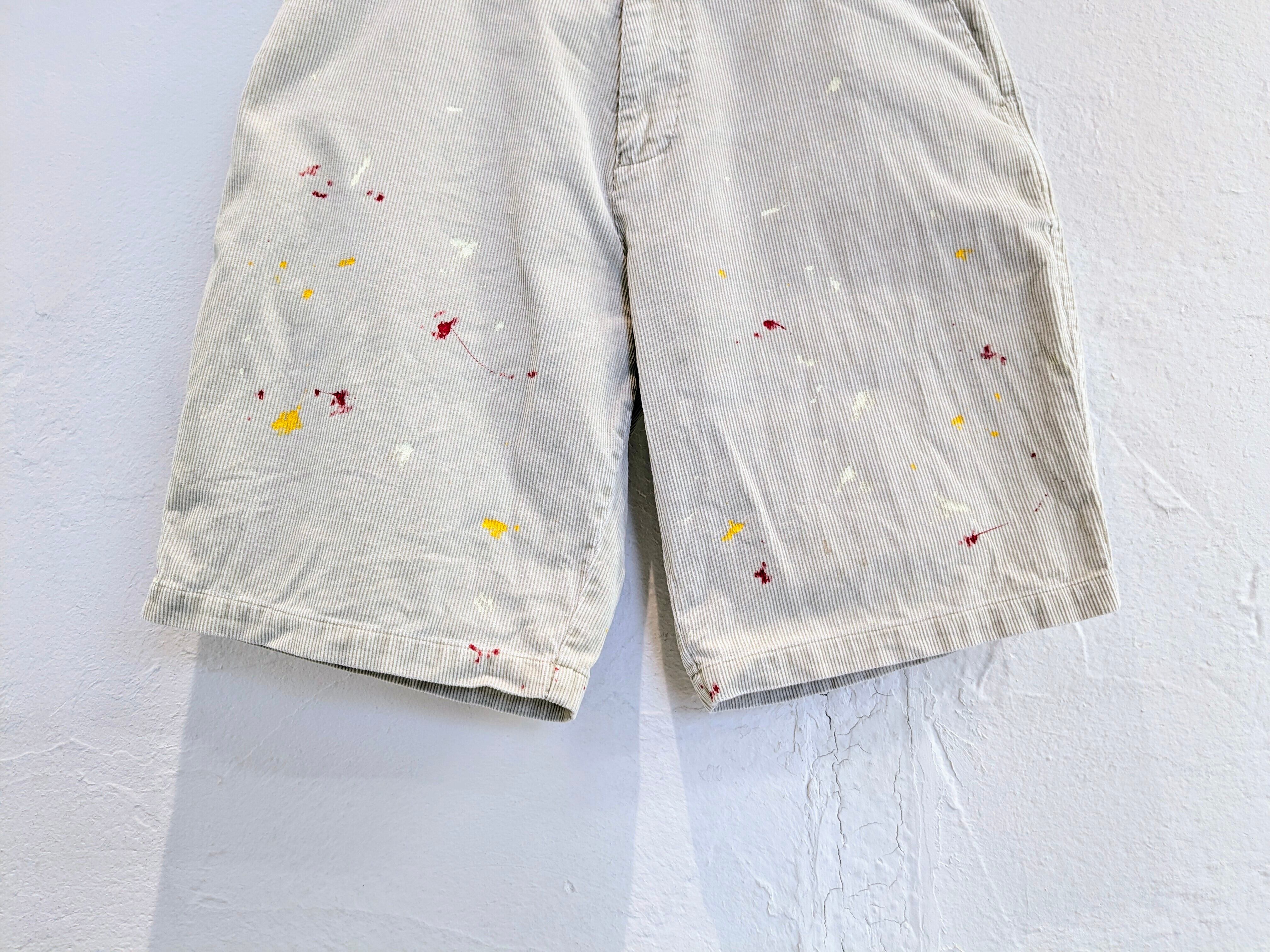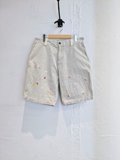 コーデュロイショーツにペイントをしてもらったアイテム。元々の汚れもありますが、全体的に雰囲気抜群のアイテム。ワイドなシルエットがとても履きやすく、肌触りもいいのでペイントデザインもさることながら、単純にショーツとしてもオススメ。