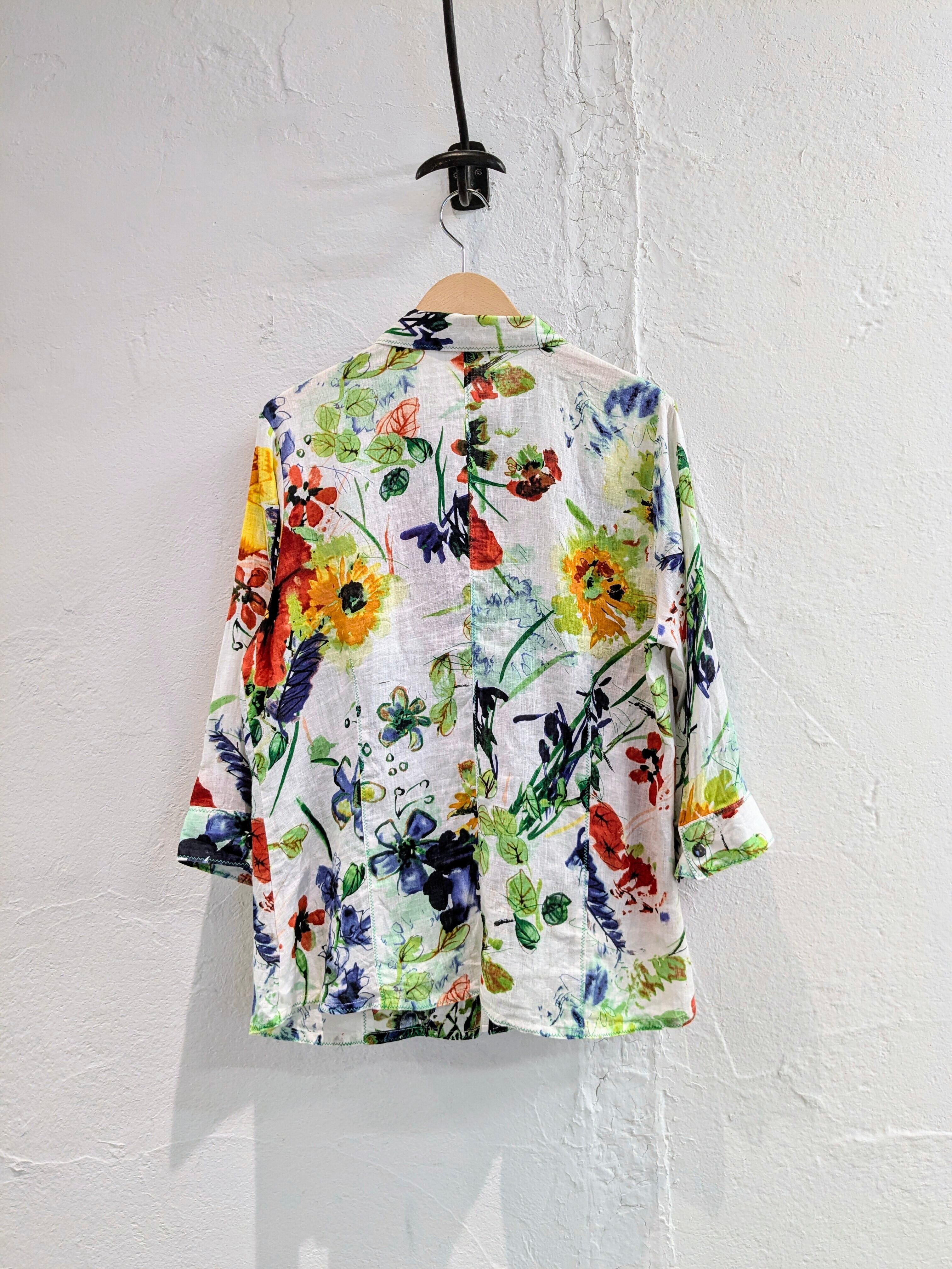 Handwritten Style Flower Print Linen Blouson