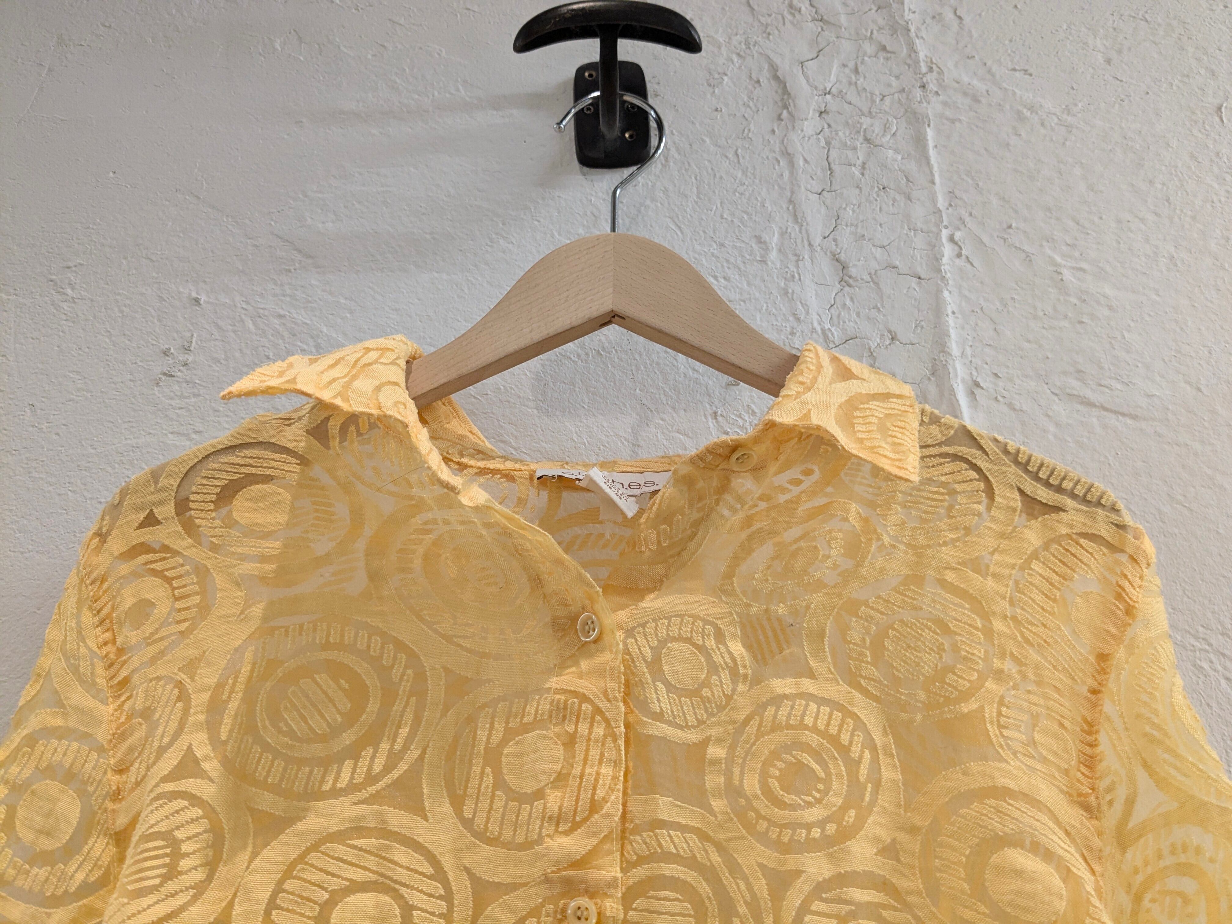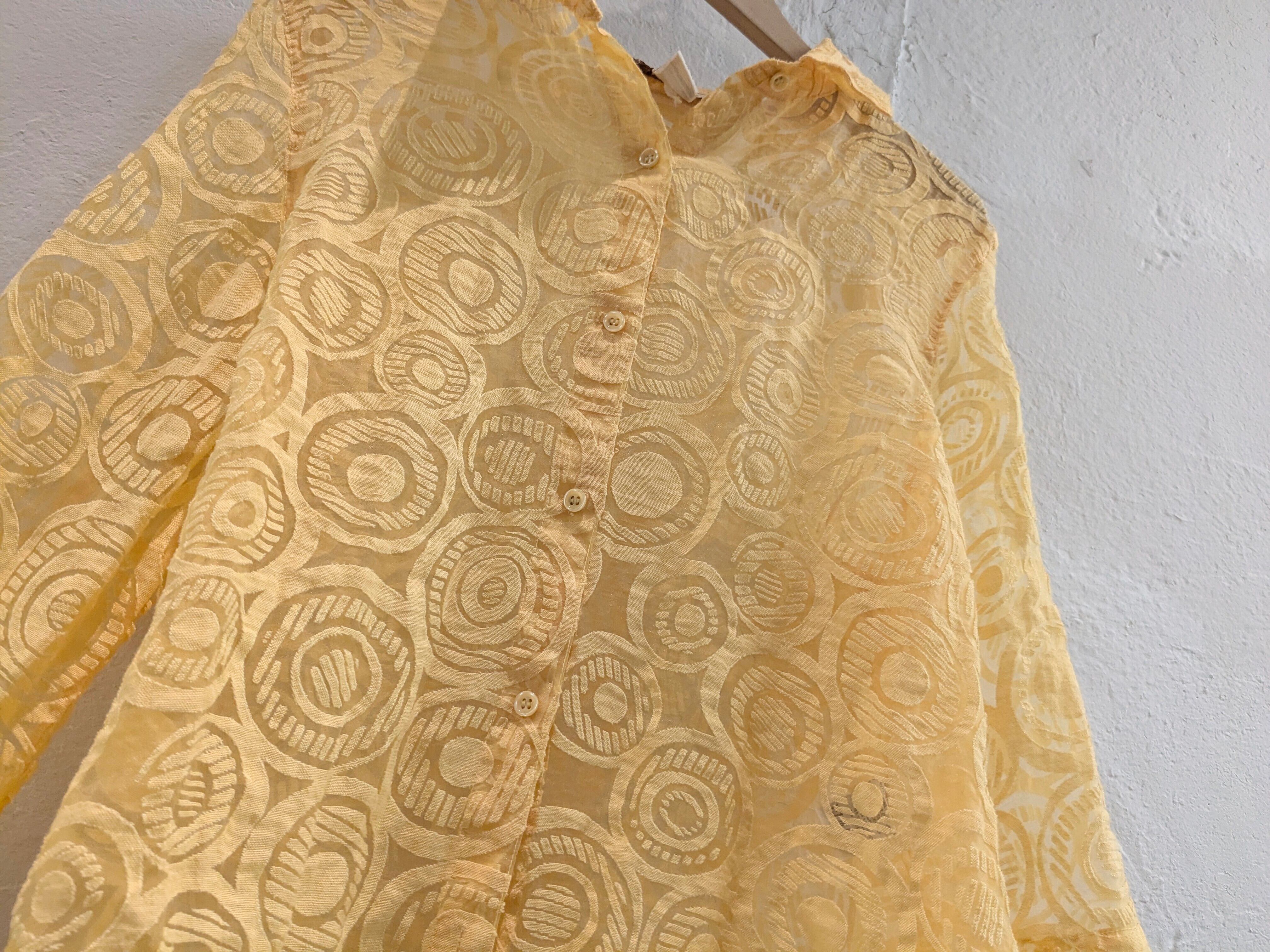 人気のシアーシャツ。色合いとデザインがとても可愛い一着。タンクトップなどにさらっと羽織りたいそんなアイテム。キズあり。