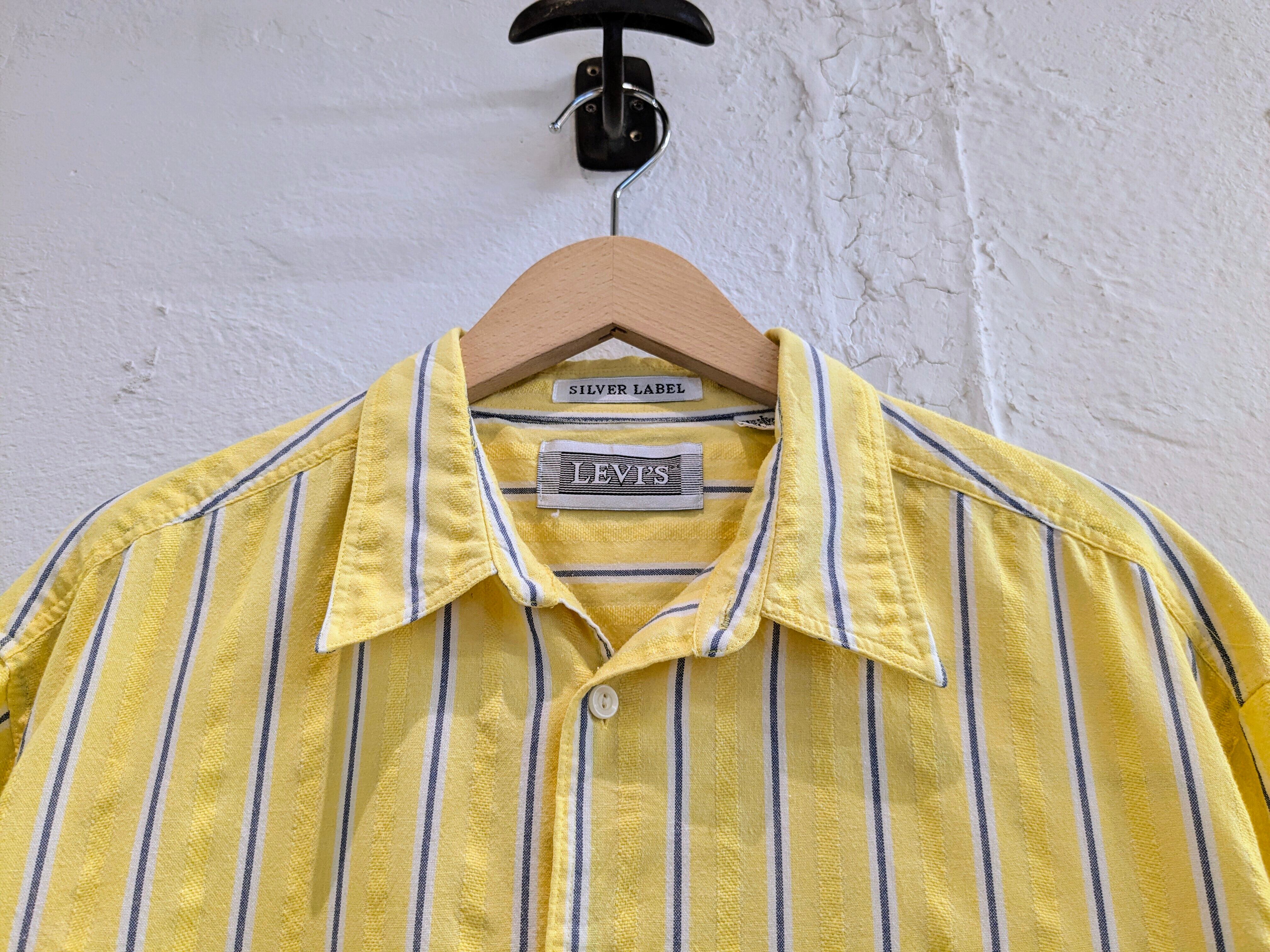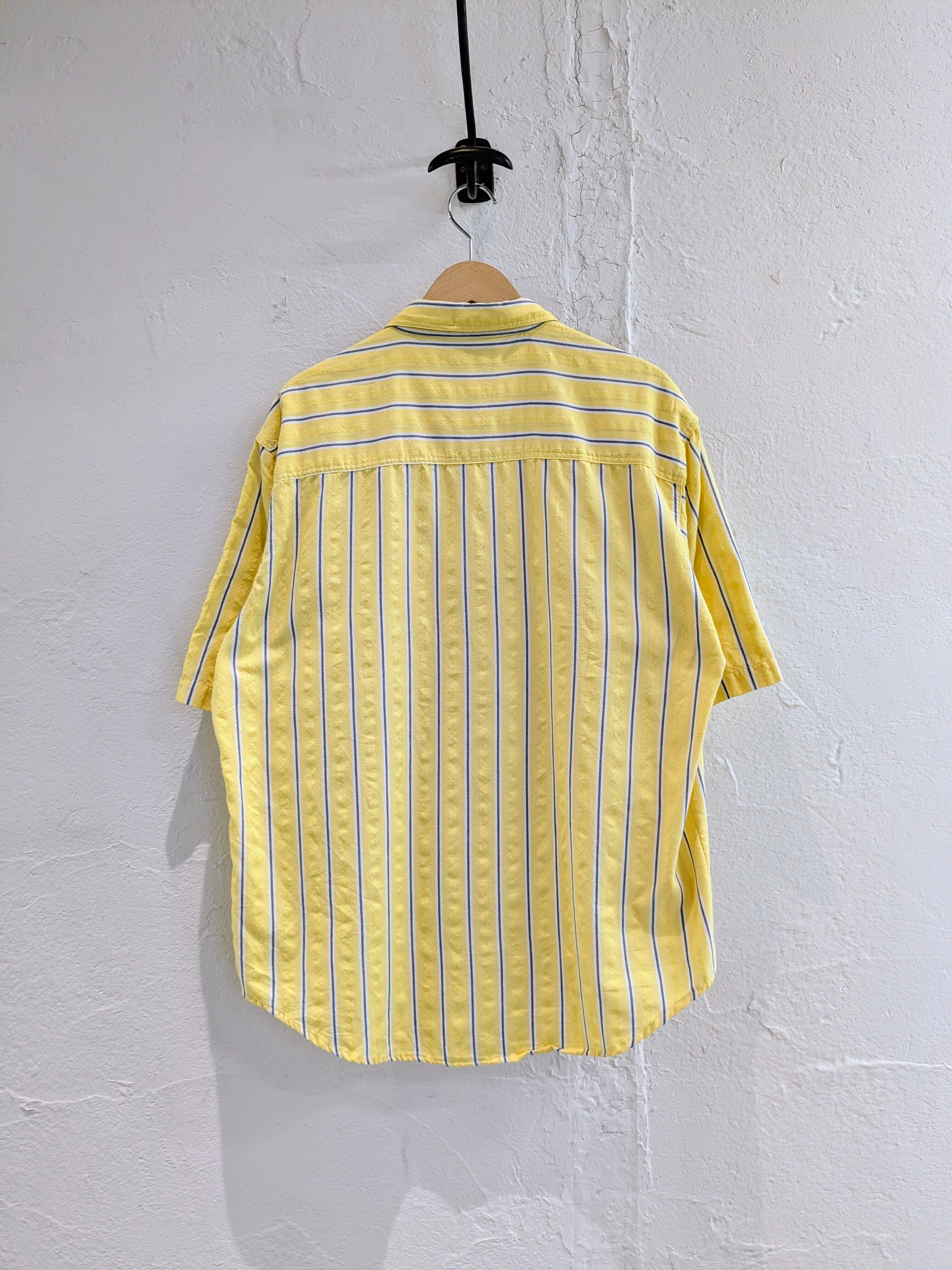 黄色の部分にシャドウストライプとして、立体感のあるデザインが施されています。さらっとしており羽織りやすい。汚れあり。