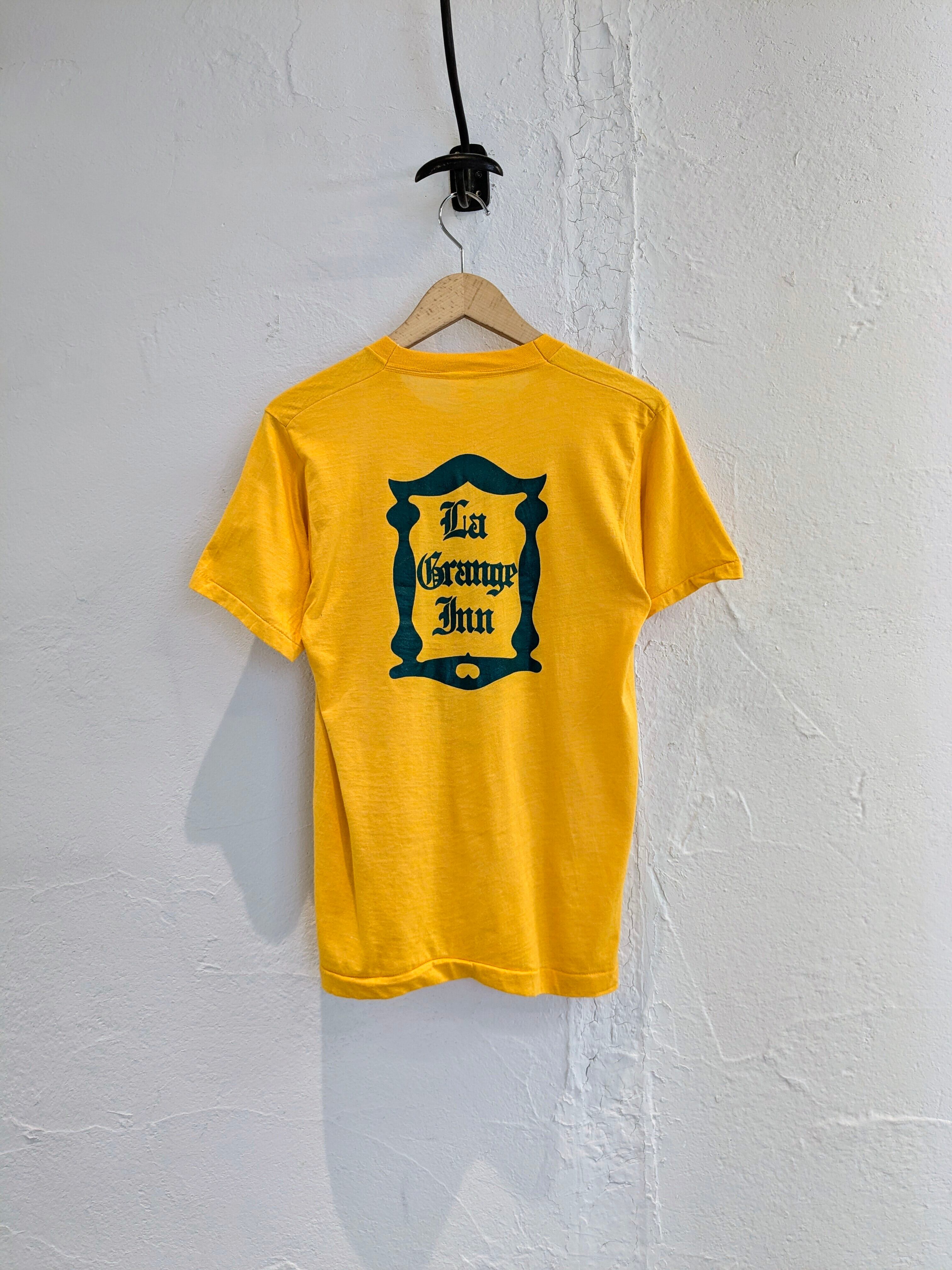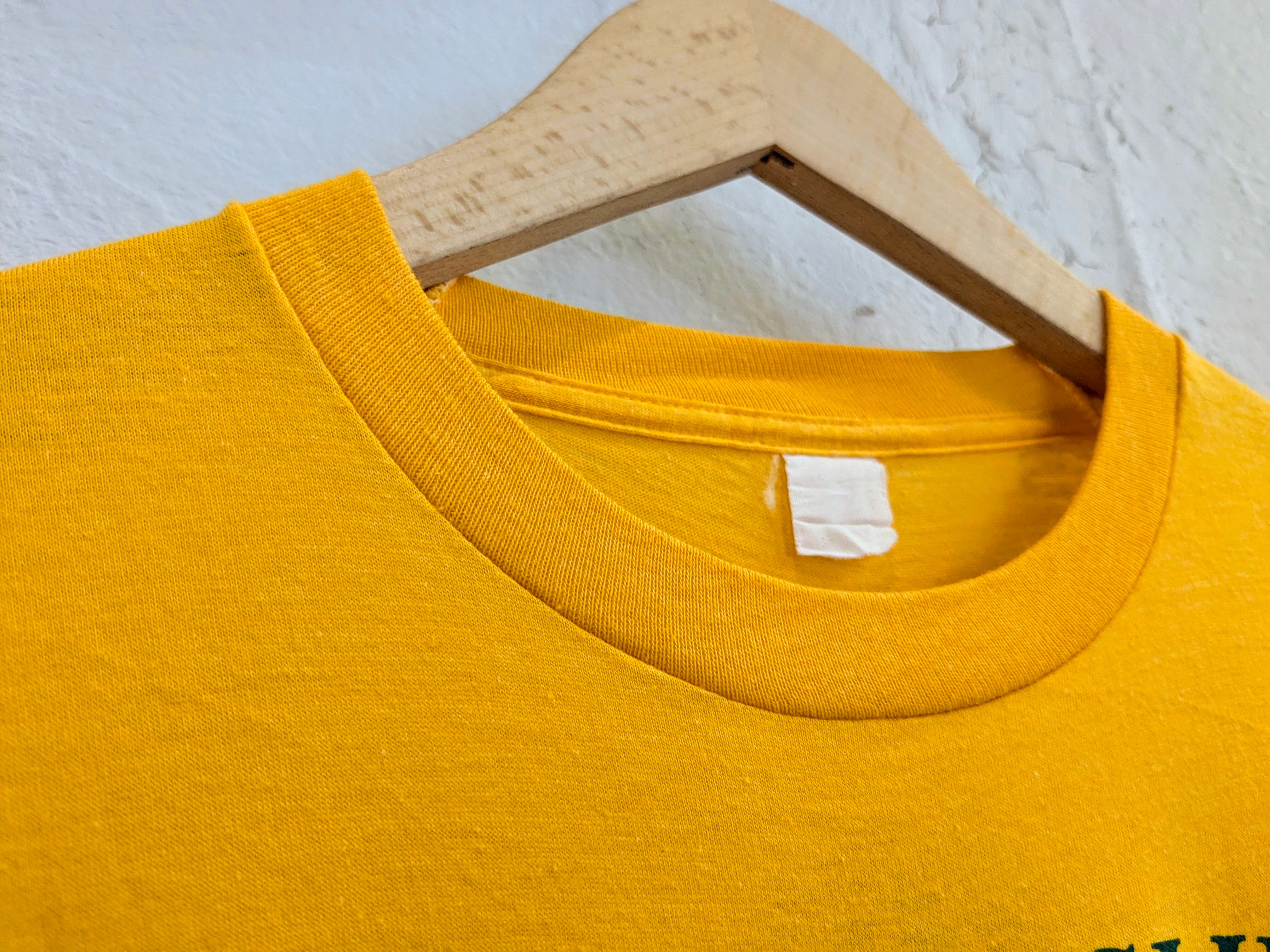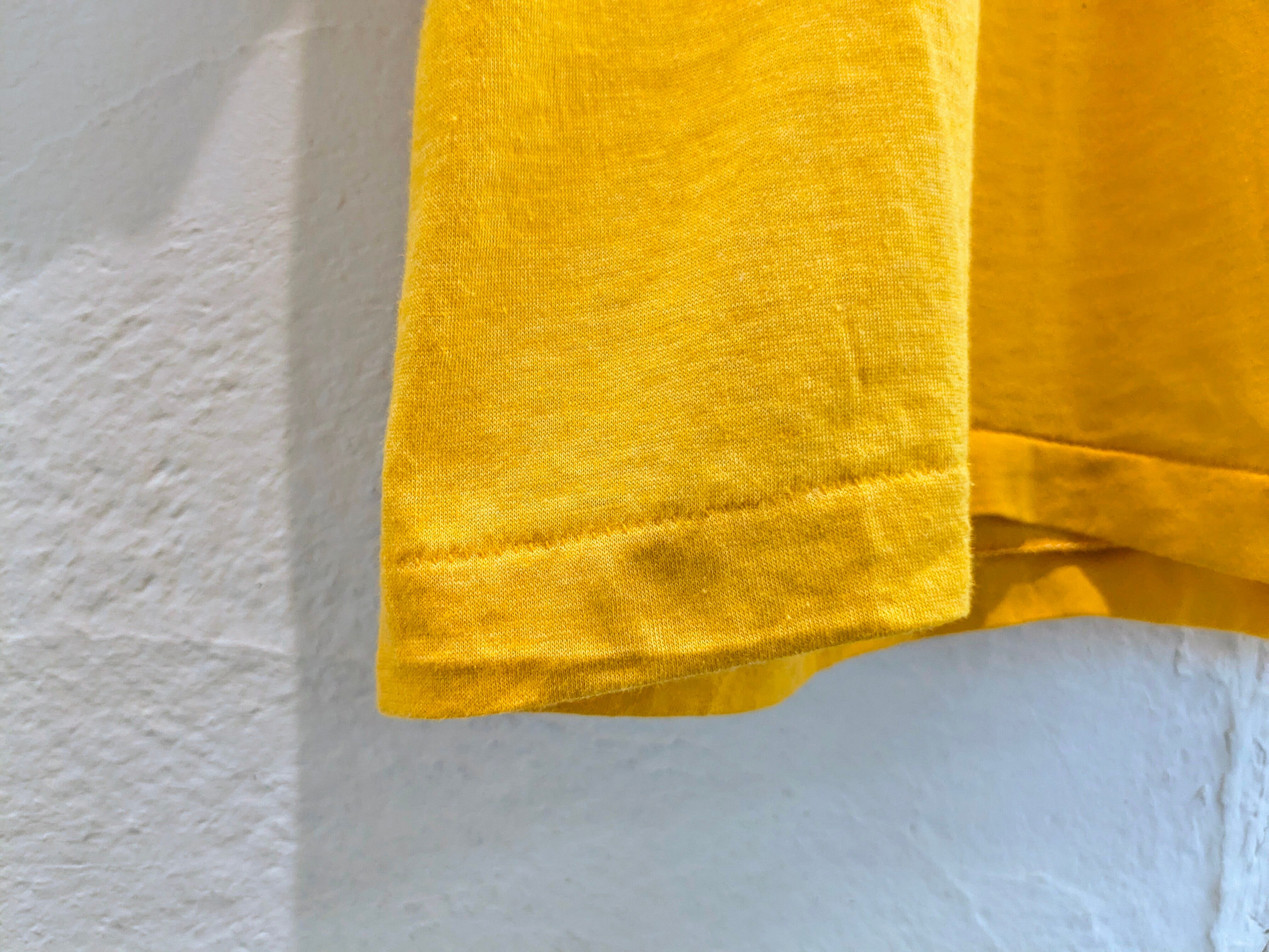 人気の両面プリント。アップだと色が分かりづらいですが、黄色ボディに緑色のプリントとなります。汚れあり。