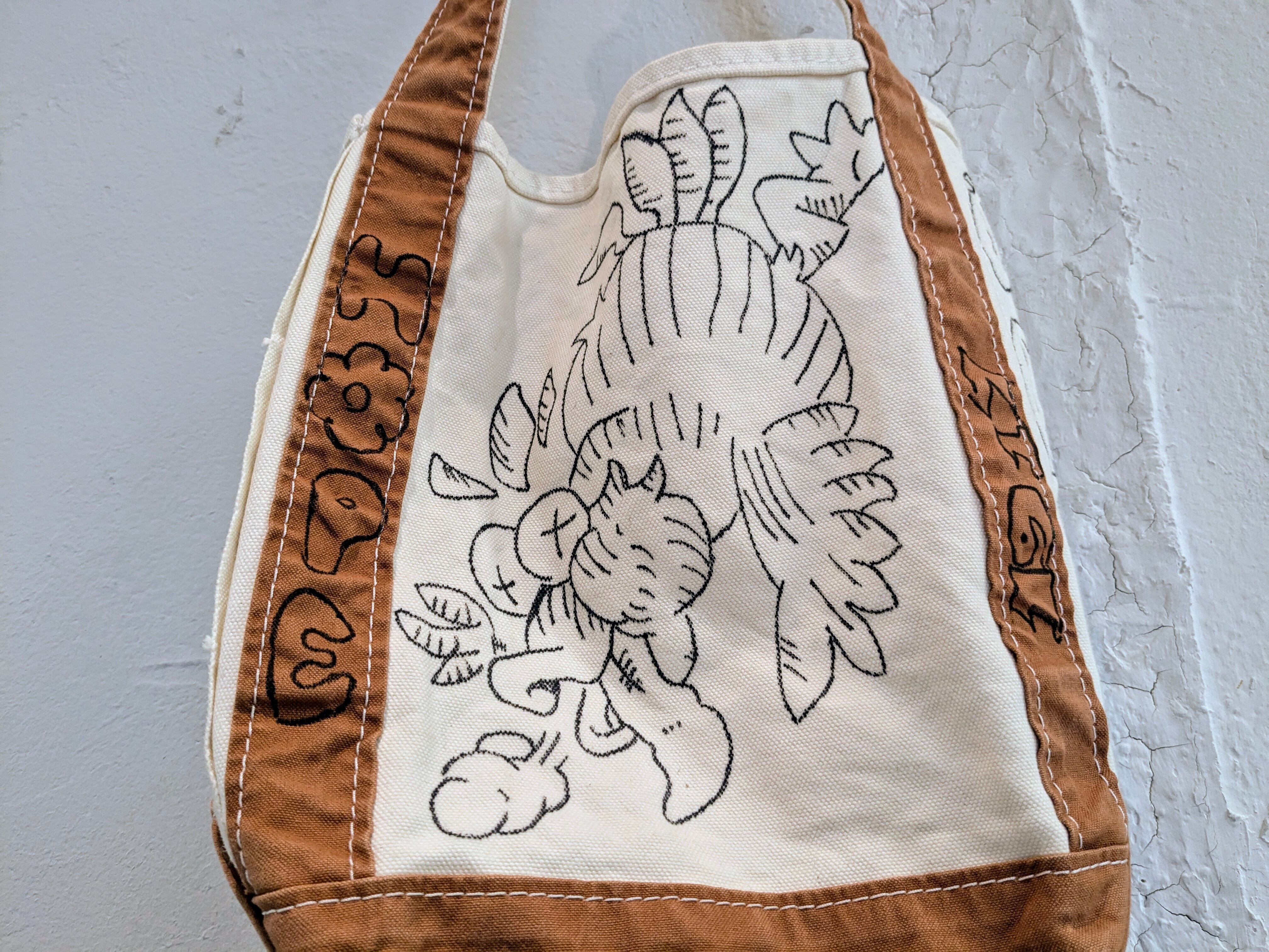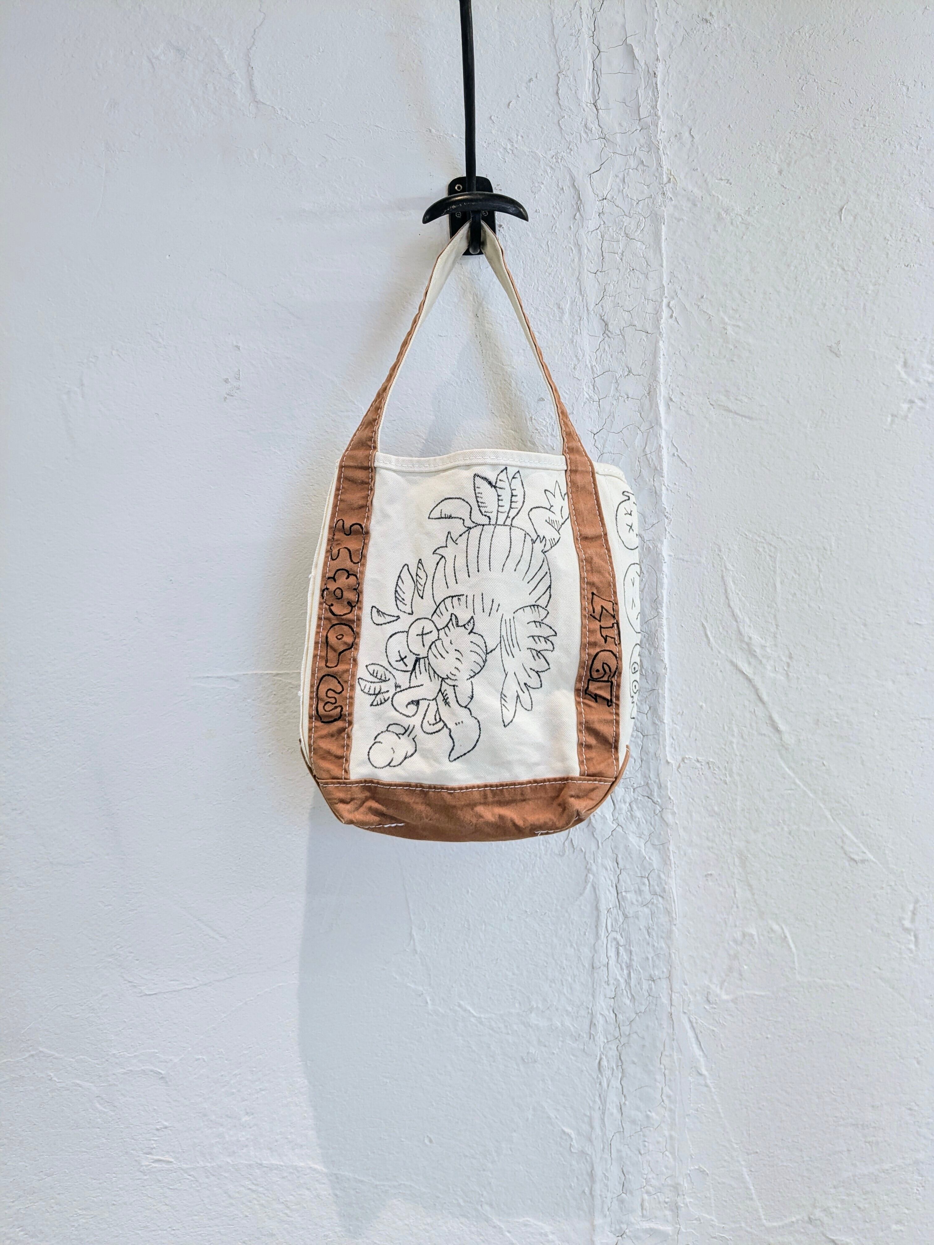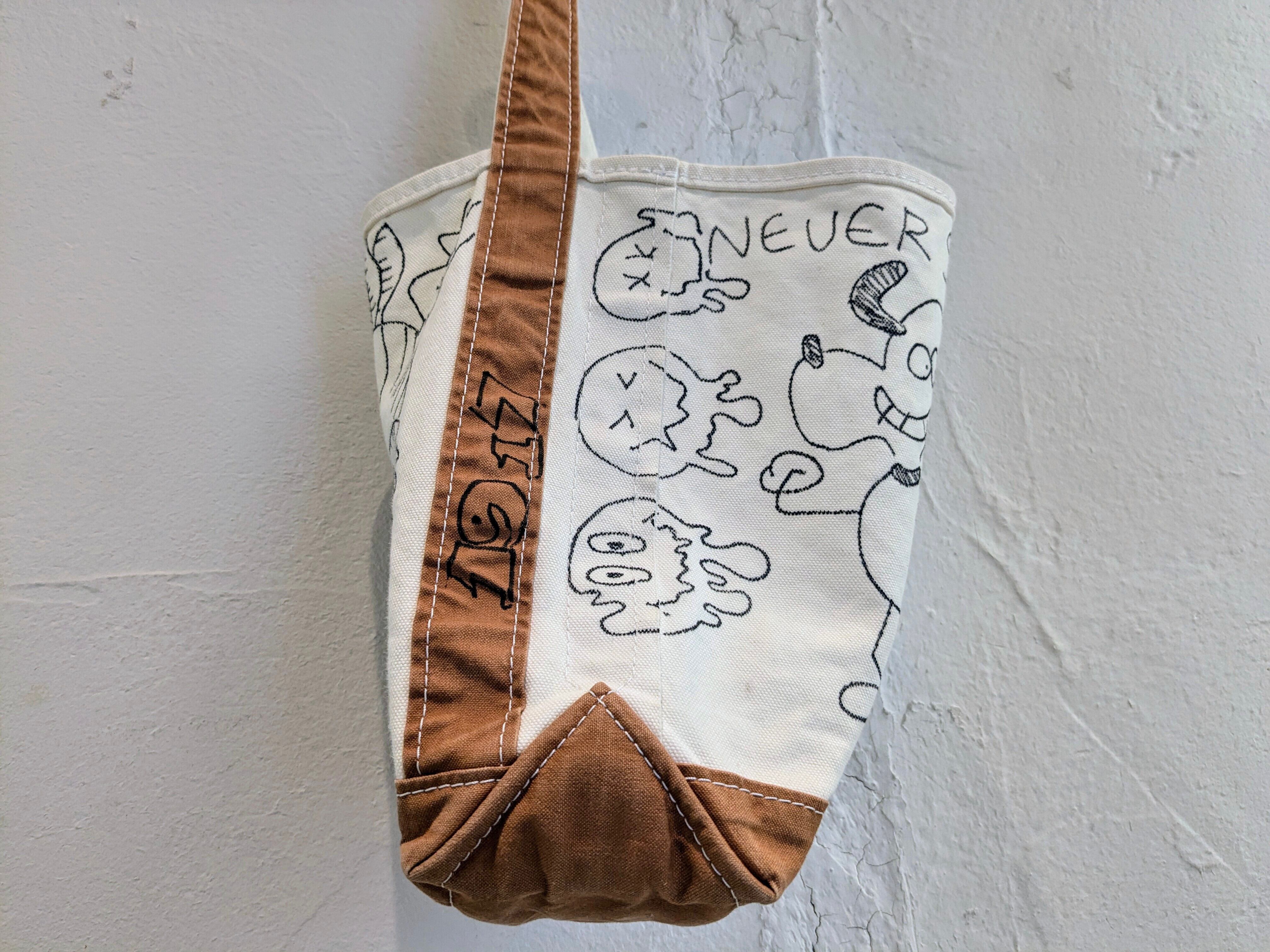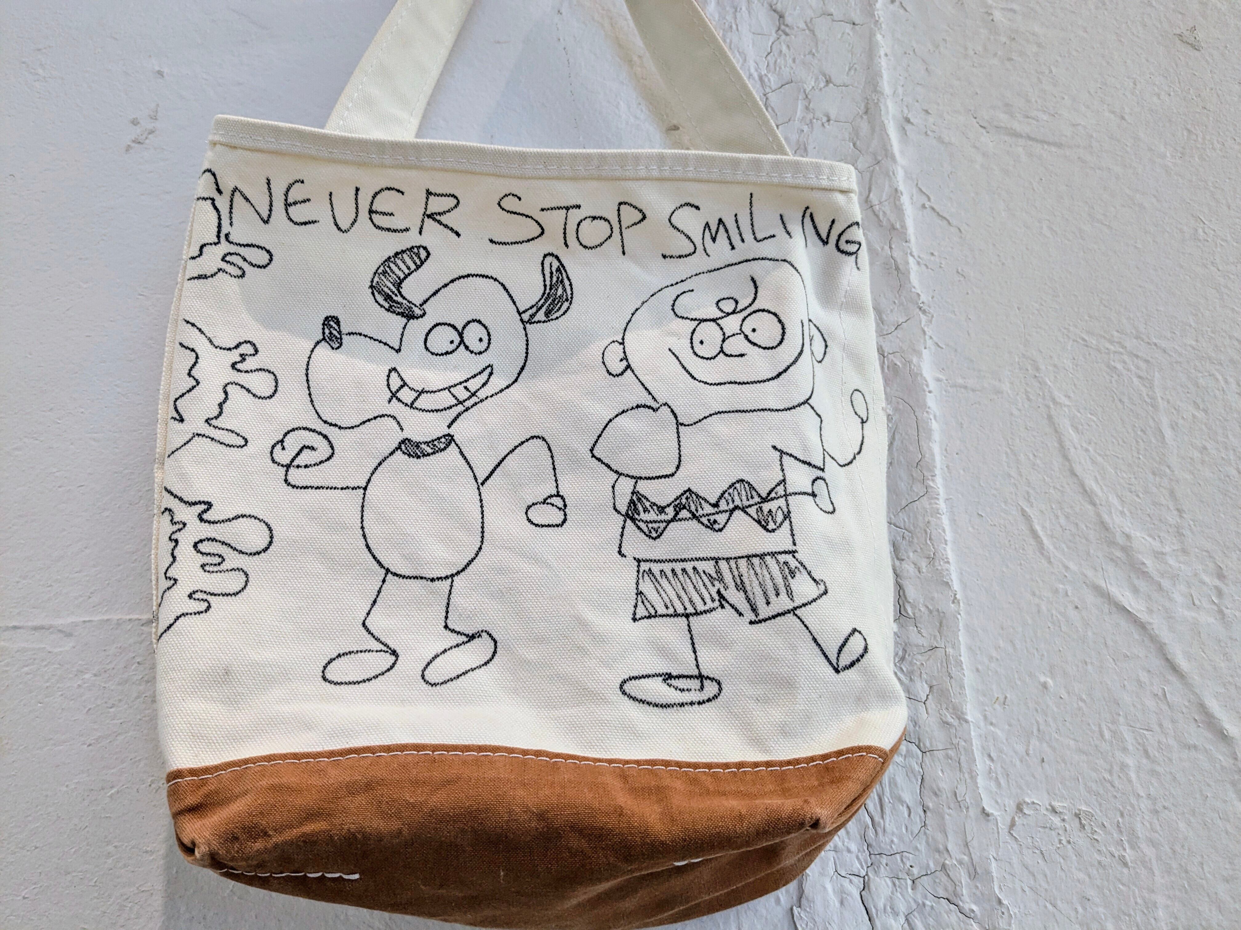 手描きデザインのキャンバストートバッグ。メモリアルアイテムのような雰囲気もあり、とても可愛いアイテム。大きさなども丁度よく、今気分なバッグ。