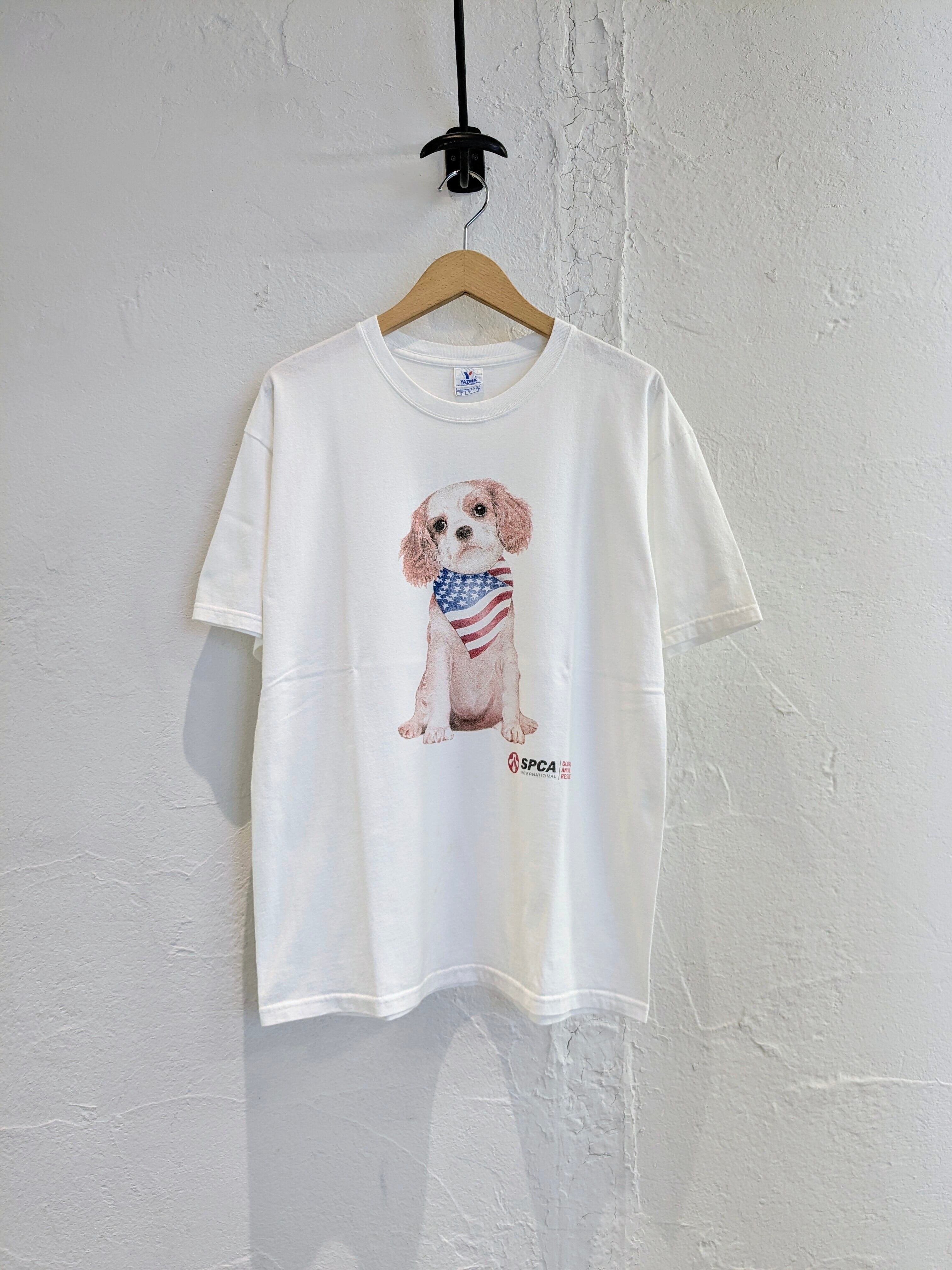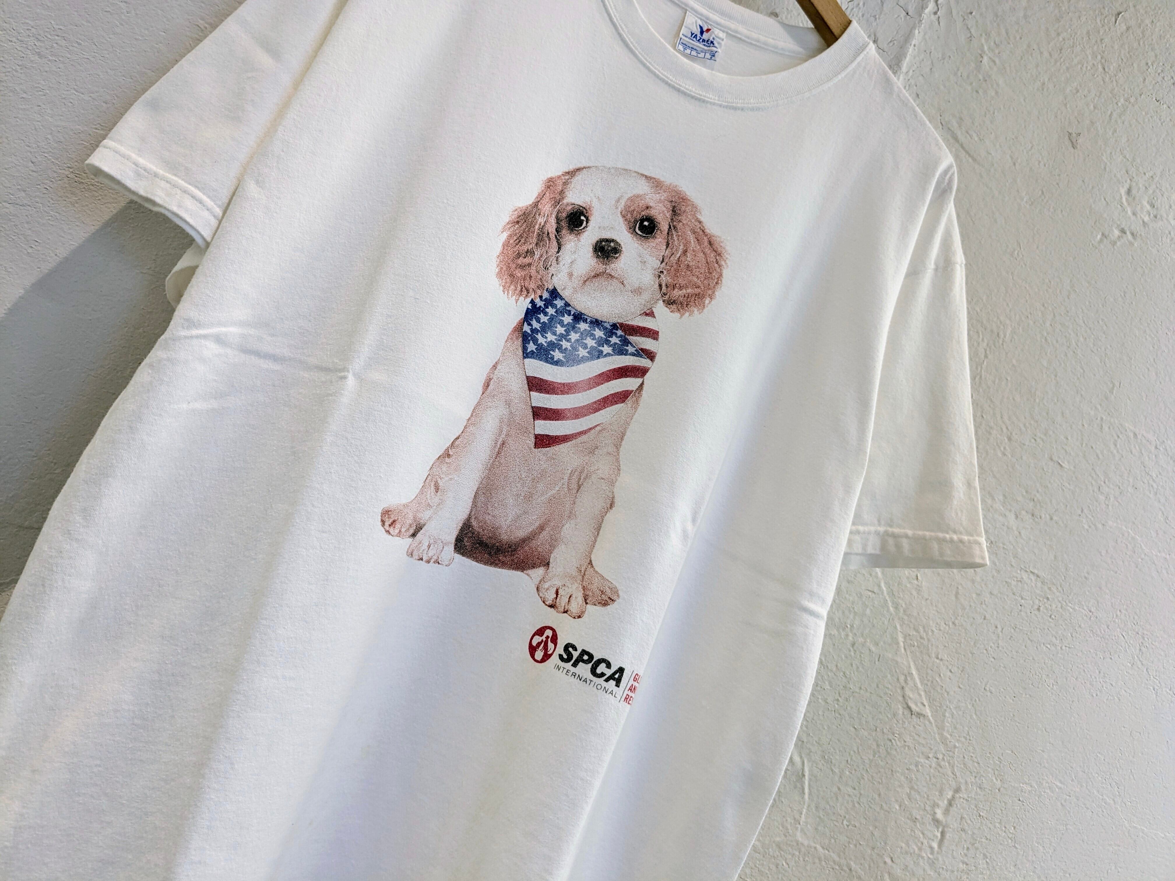星条旗のスカーフを巻いた犬のプリントTシャツ。