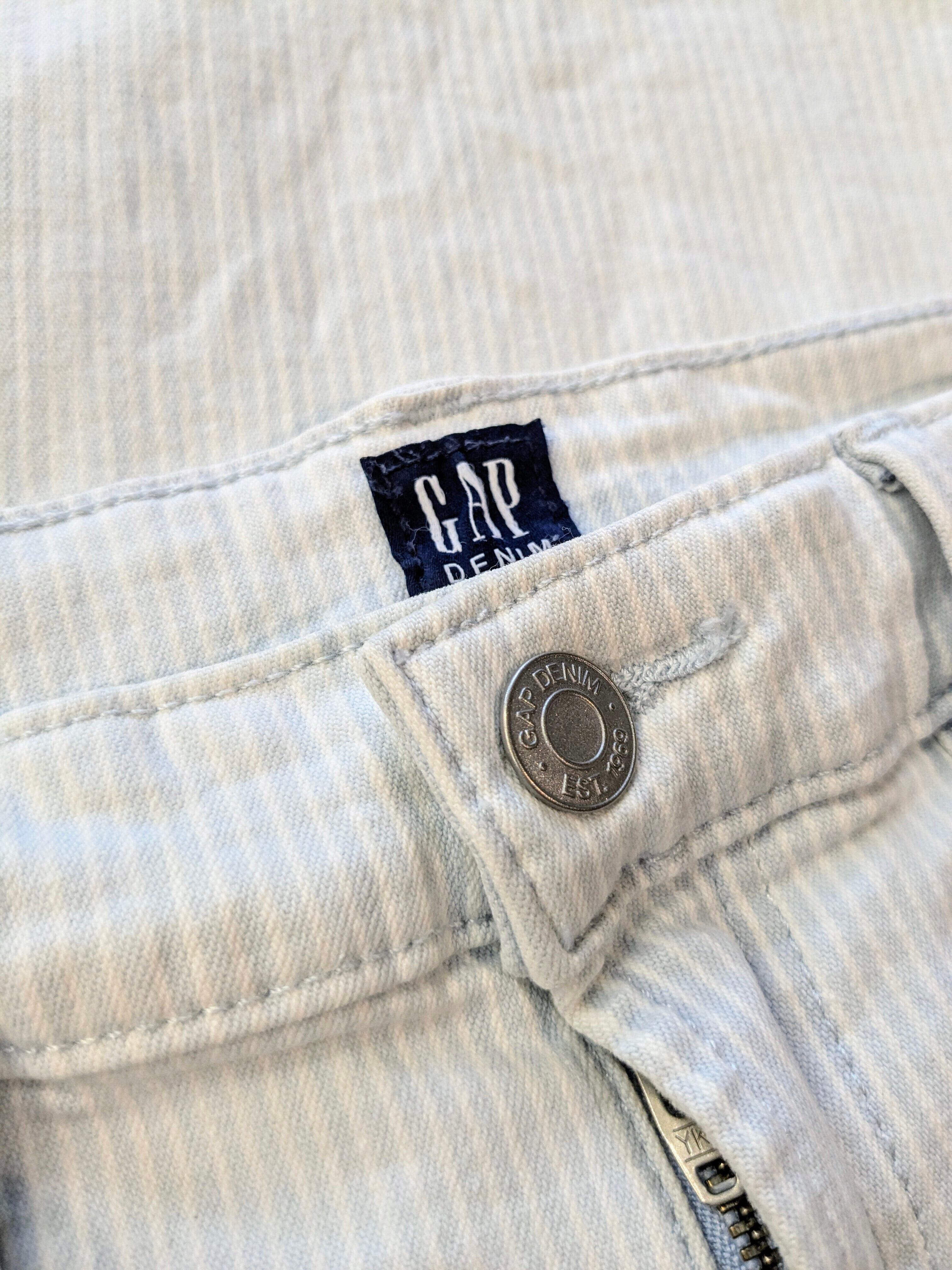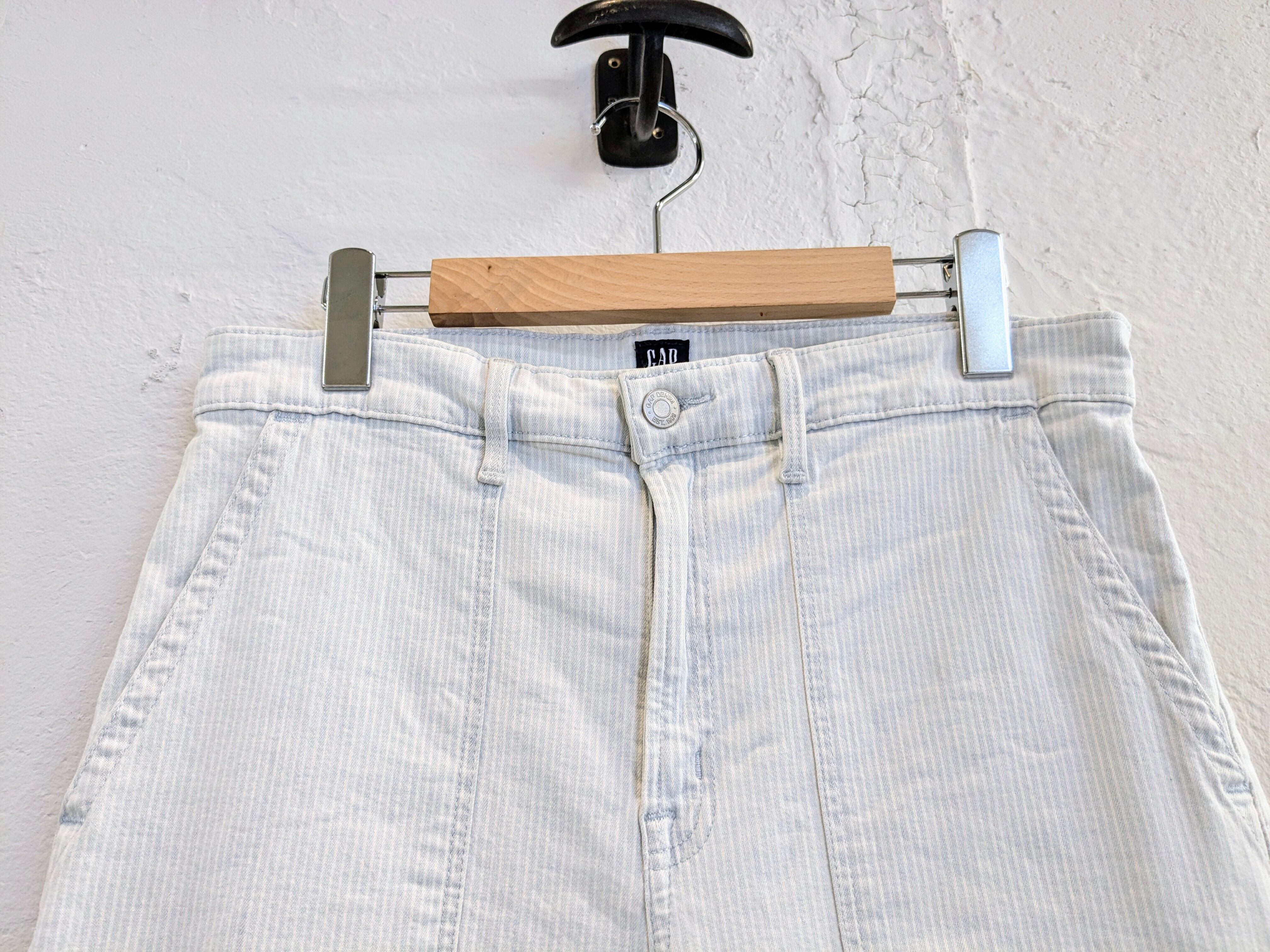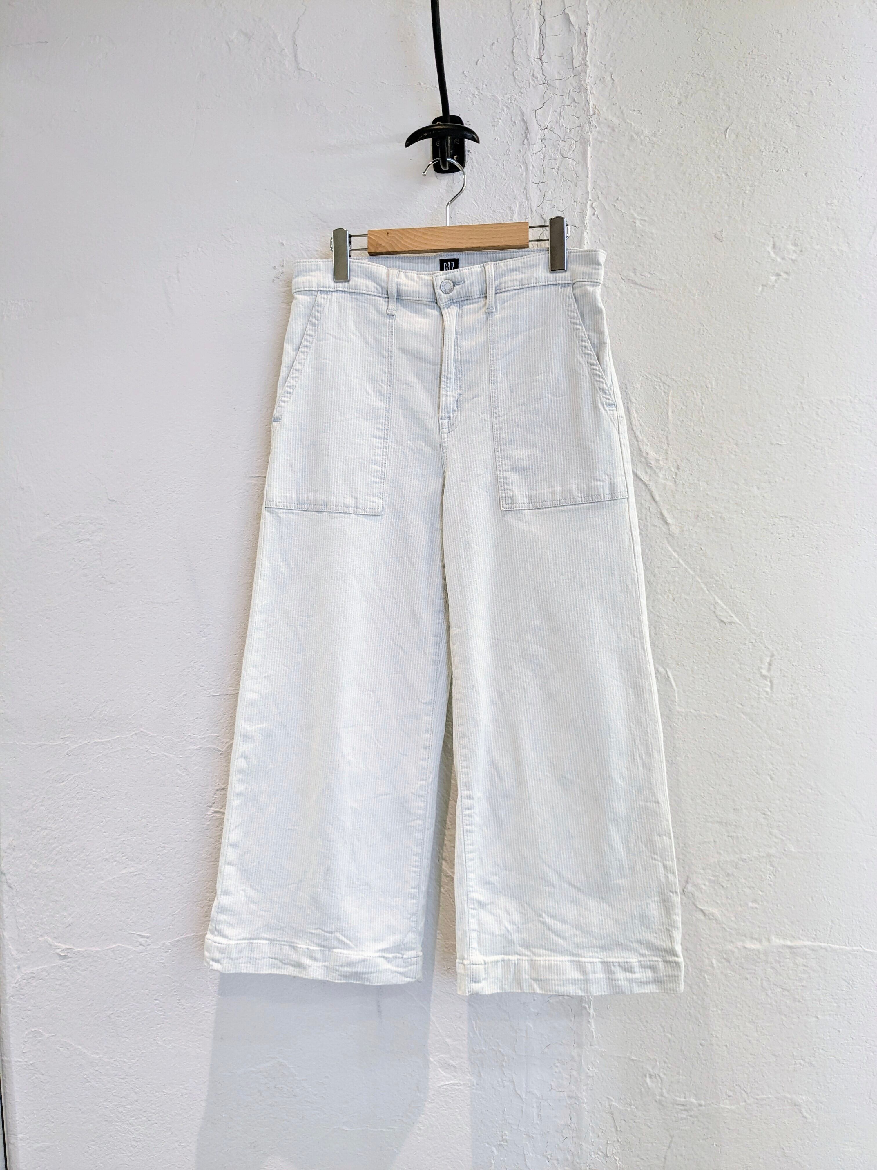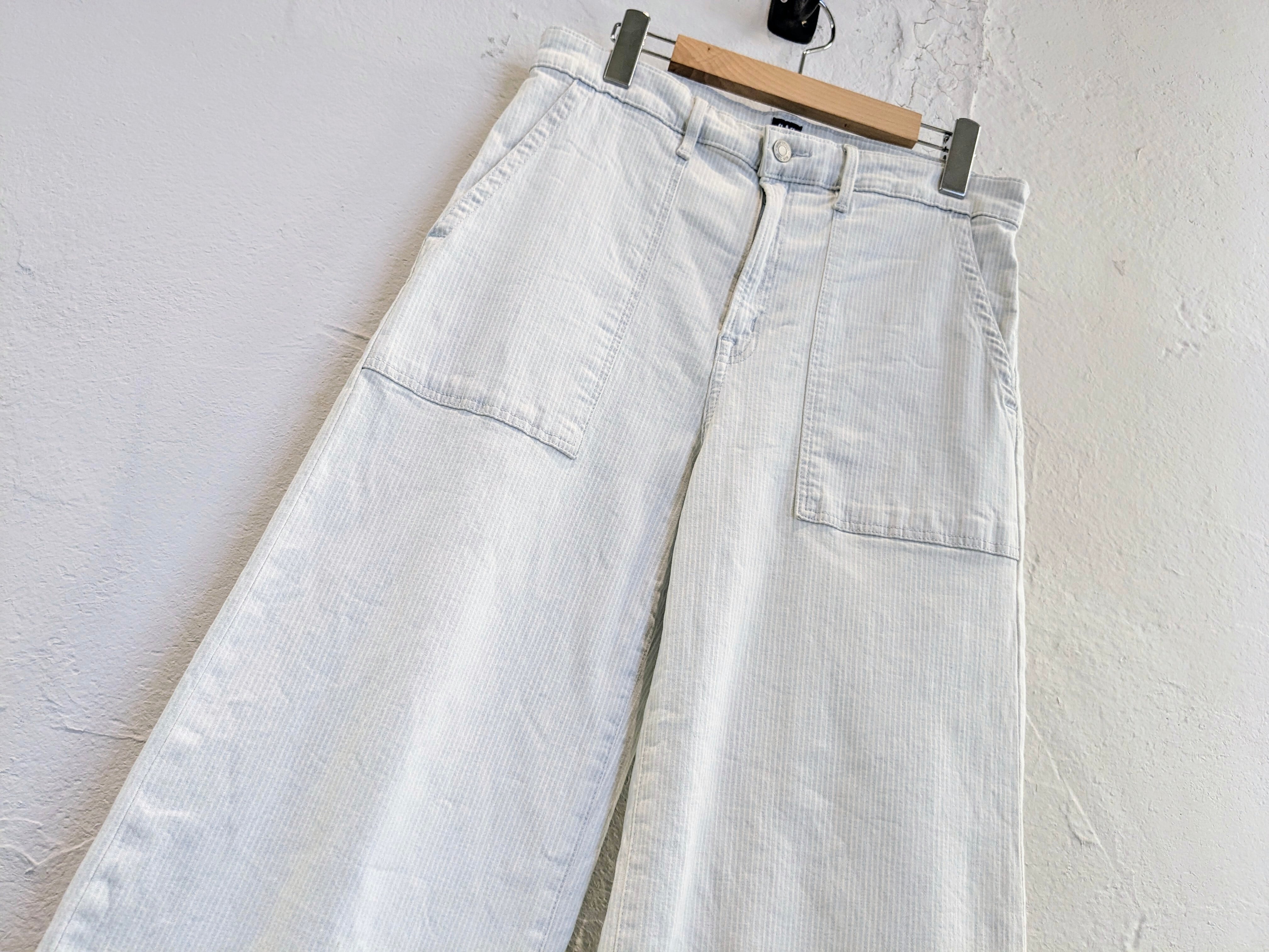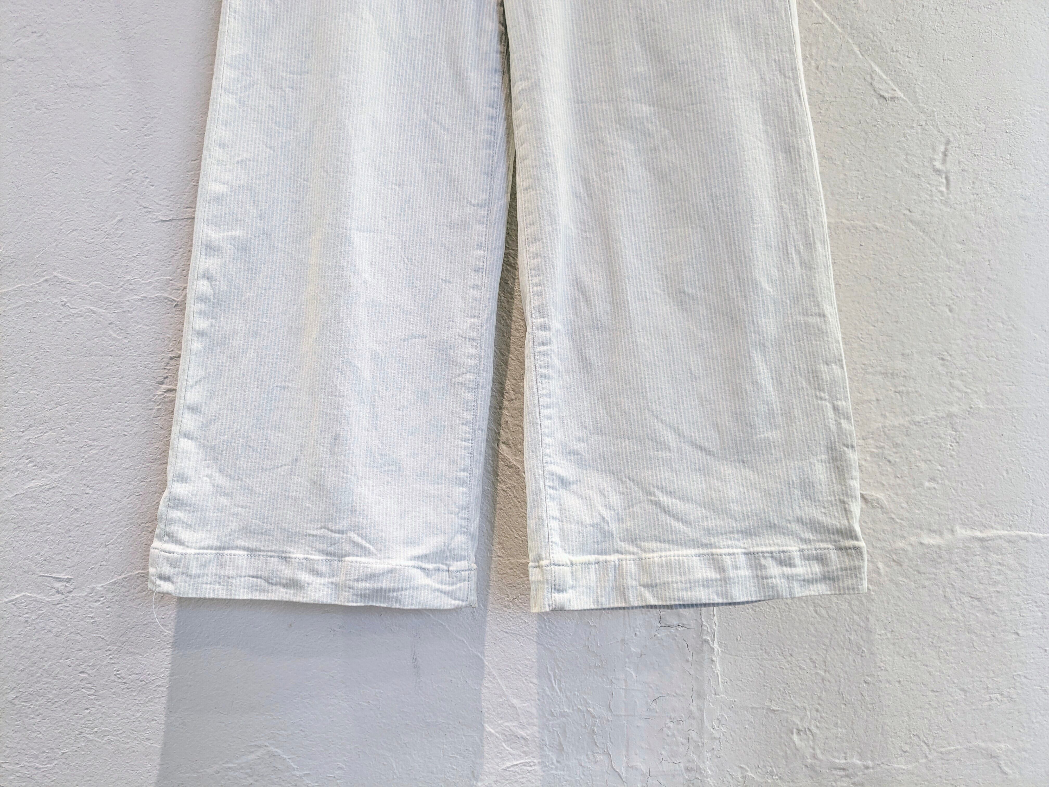 ワイドシルエットでとても履きやすいようになっています。ヒッコリーの柄も薄く入っており、さり気ないデザインがスタイリングに落とし込みやすく、使いやすいアイテム。汚れあり。