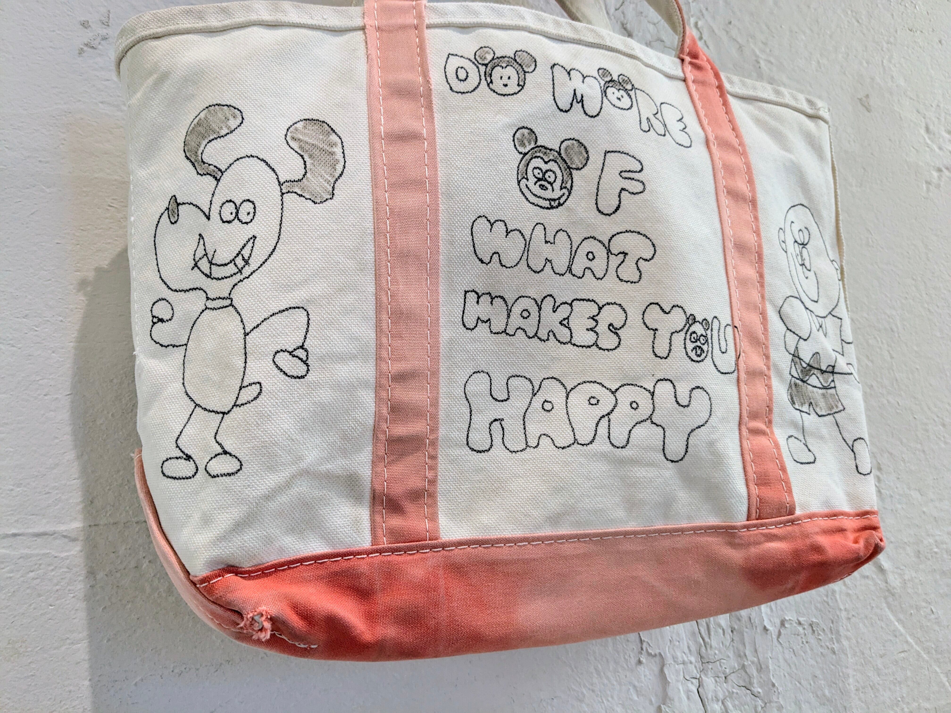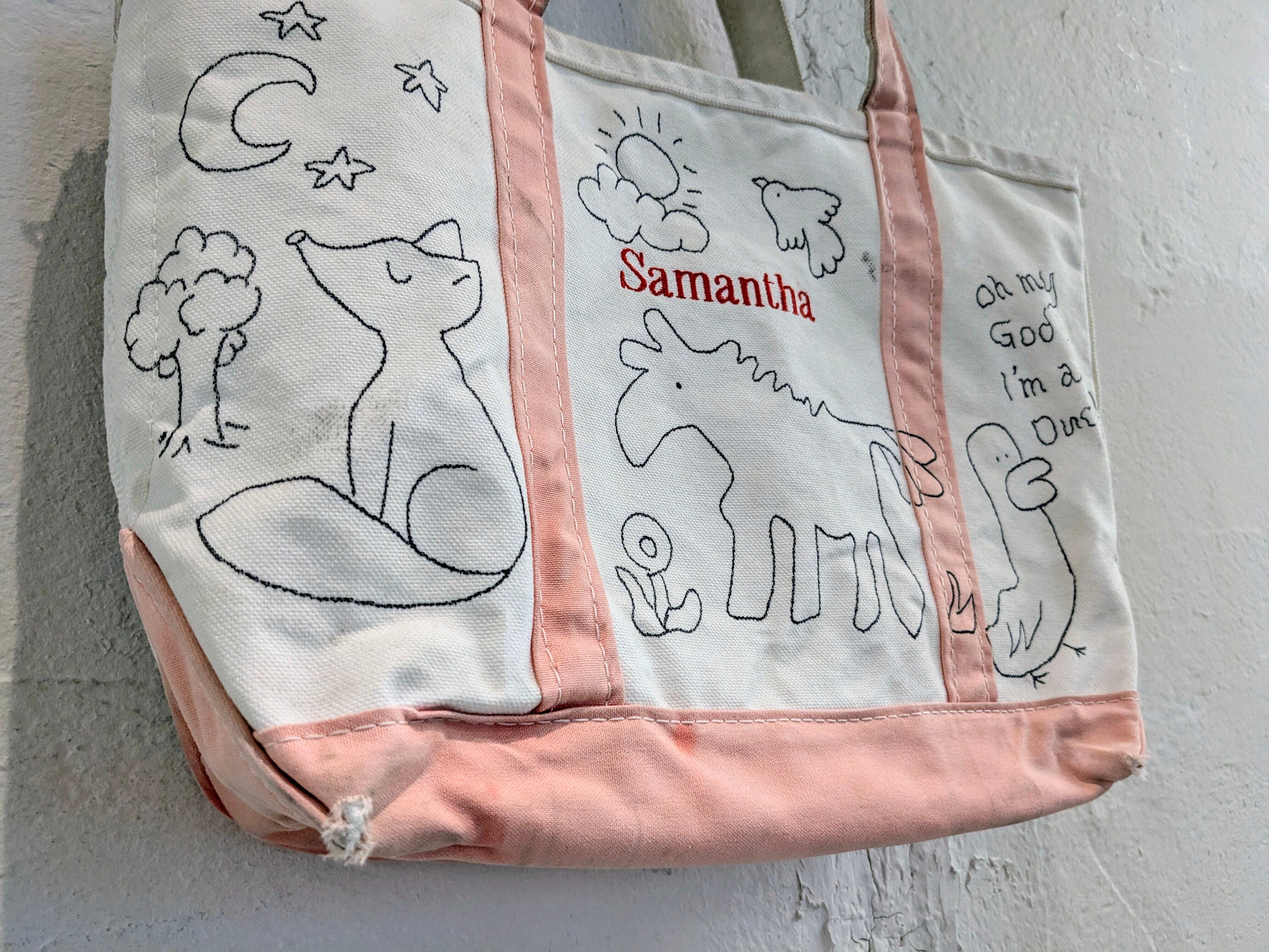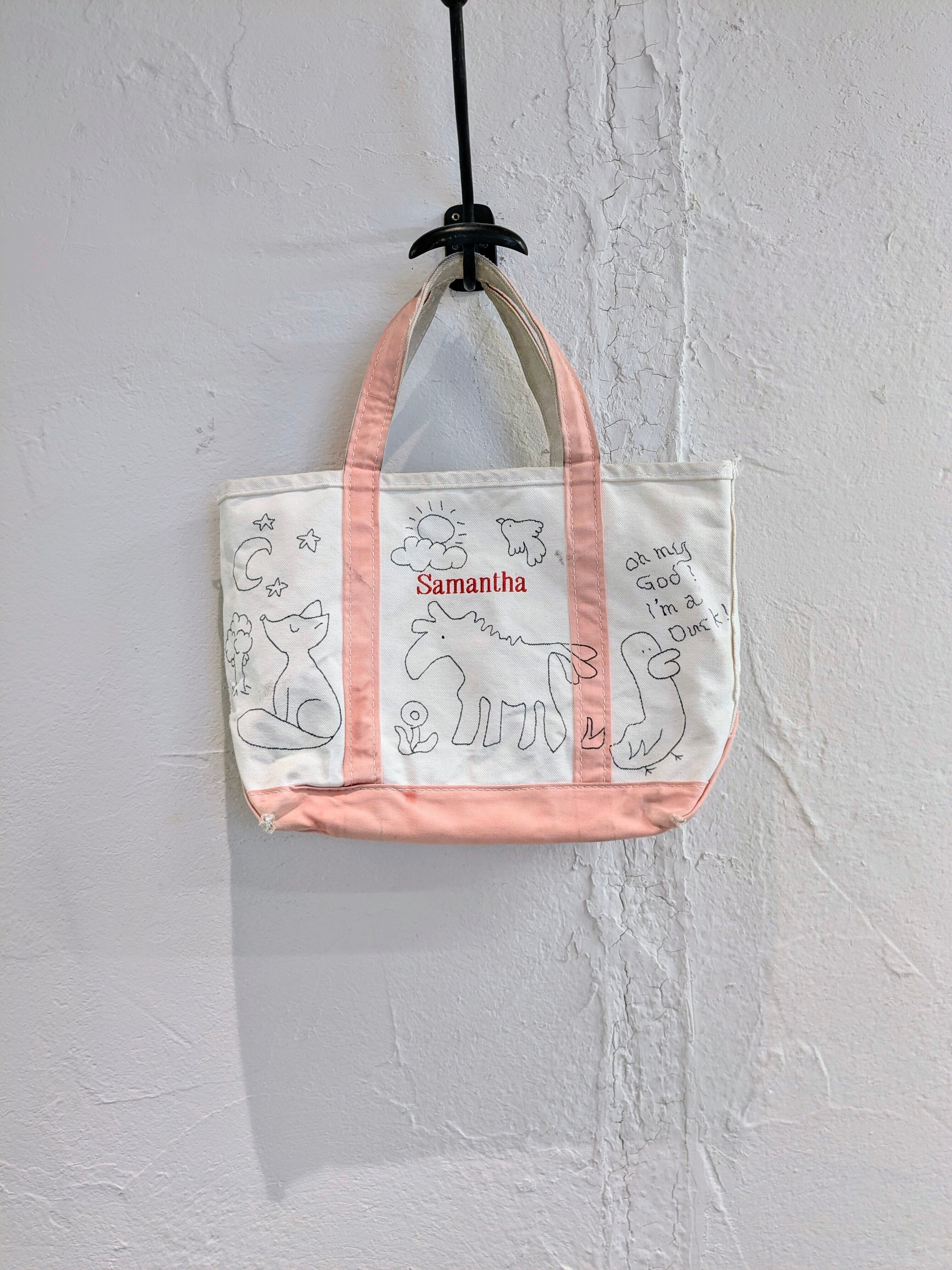 今回はアメリカ製、L.L BEANのボートトートバッグを使用。どこか見たことあるようなキャラクターがいたりと、とにかく可愛いアイテム。同じものは2つと存在しませんので、この機会にぜひ。キズ、汚れが元々あり、色も抜けています。