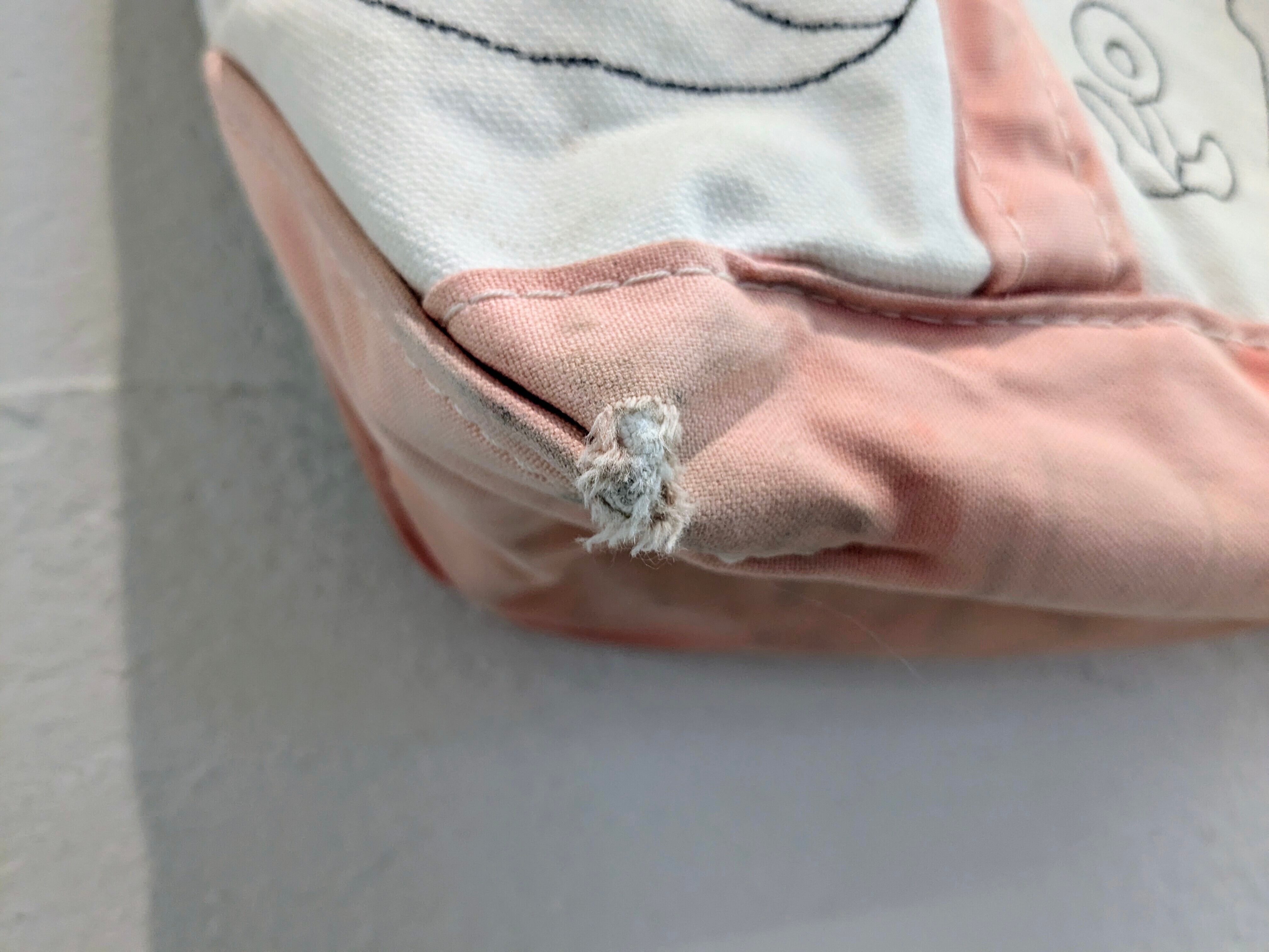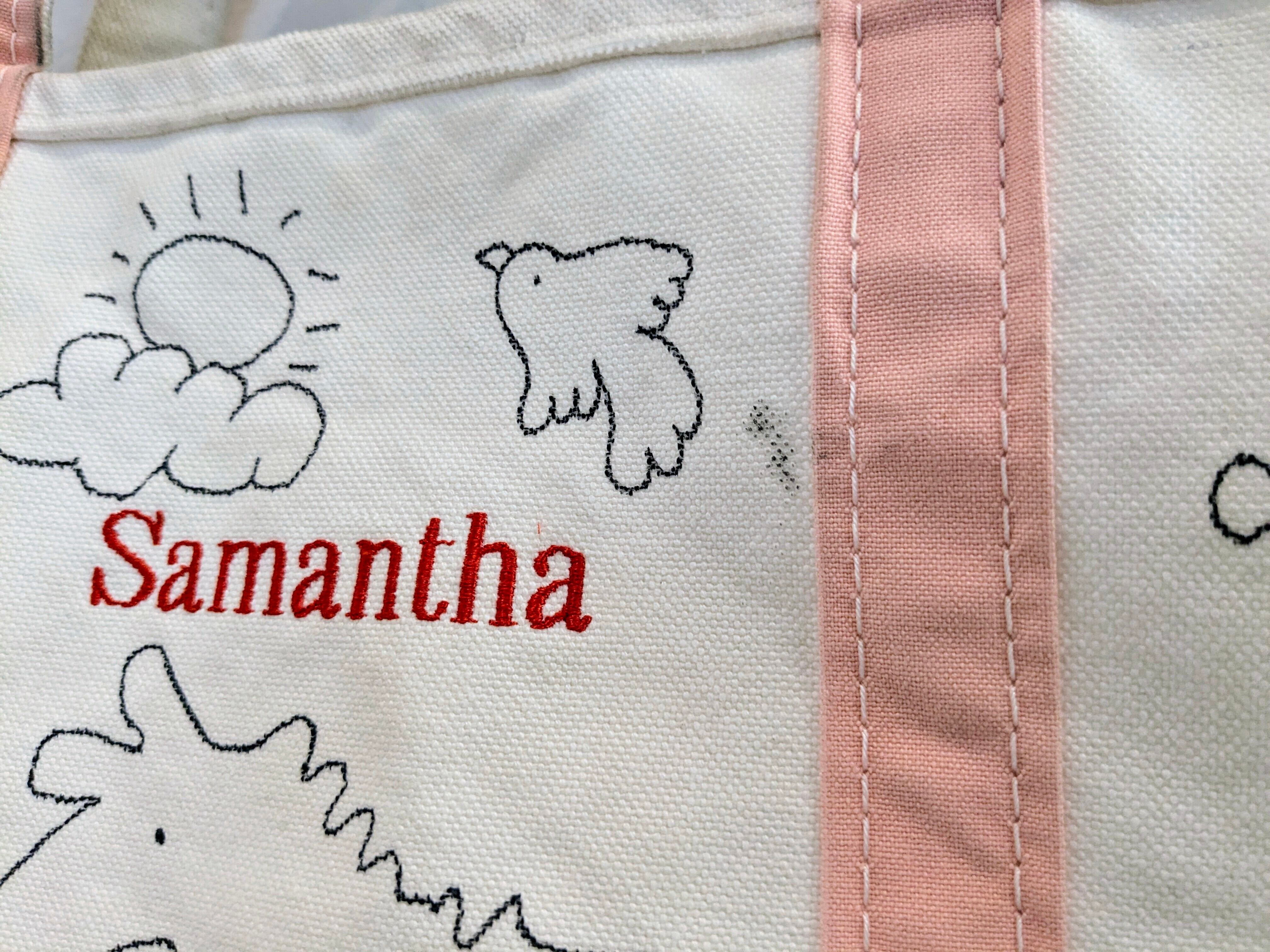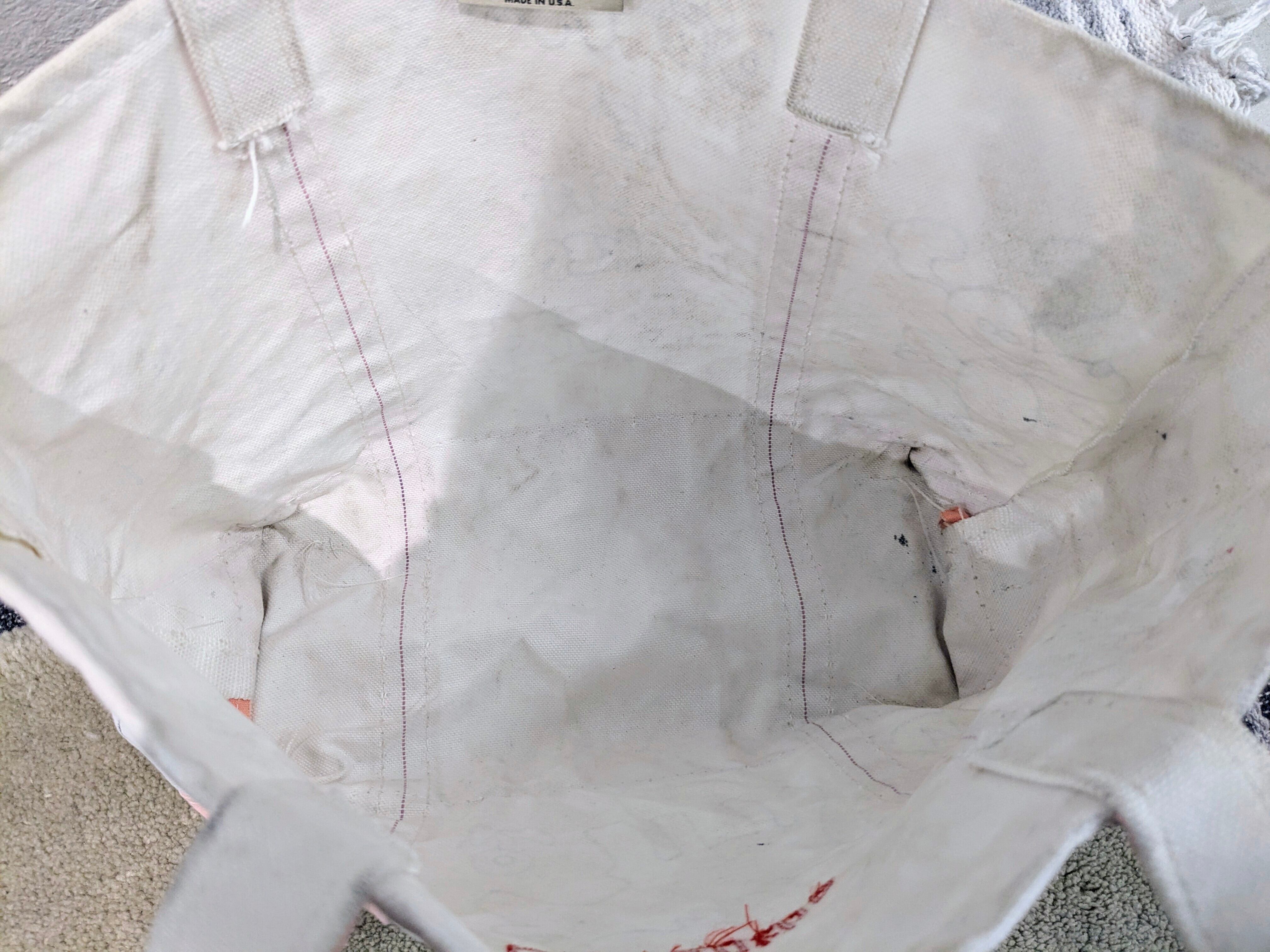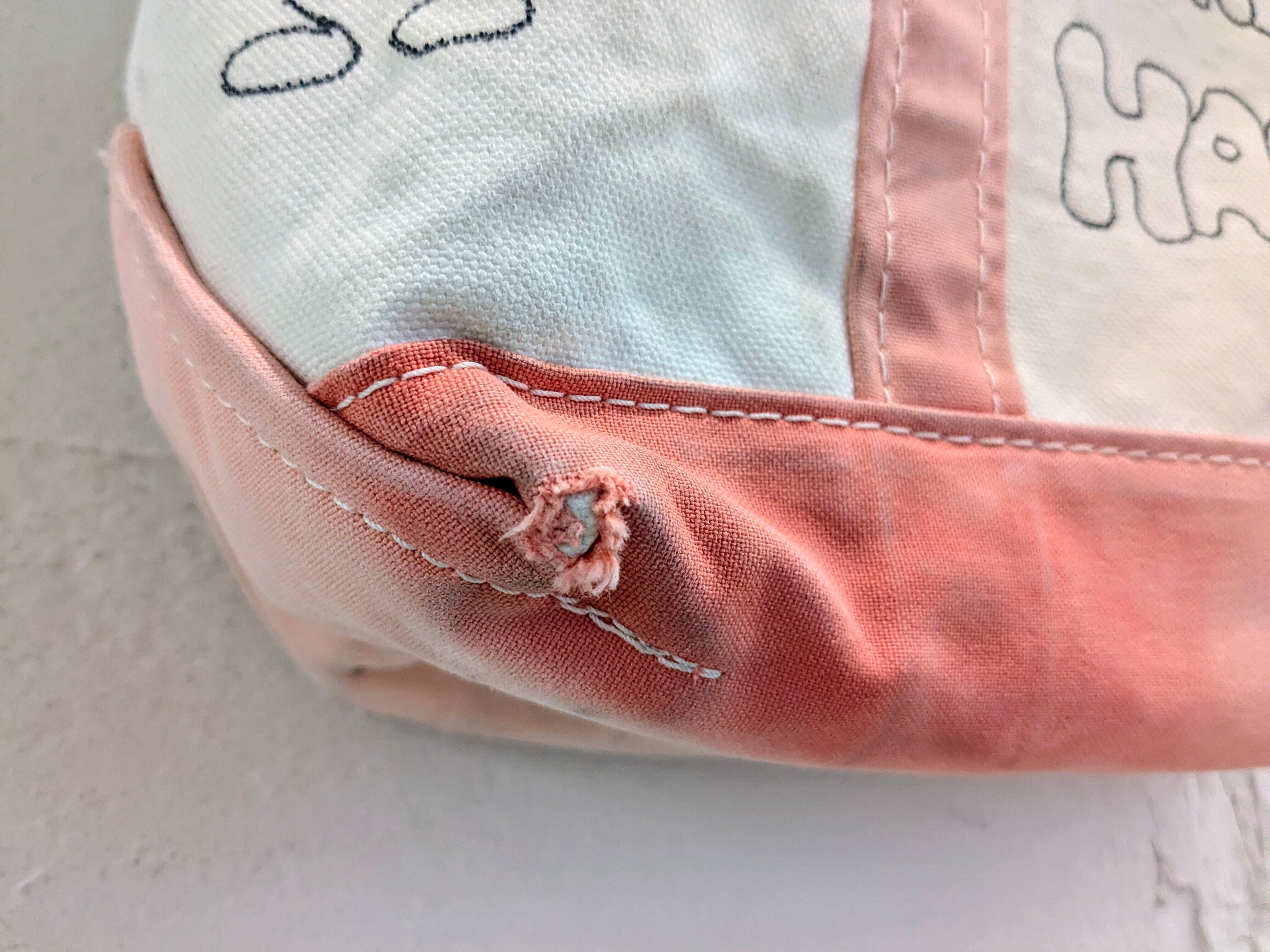 今回はアメリカ製、L.L BEANのボートトートバッグを使用。どこか見たことあるようなキャラクターがいたりと、とにかく可愛いアイテム。同じものは2つと存在しませんので、この機会にぜひ。キズ、汚れが元々あり、色も抜けています。
