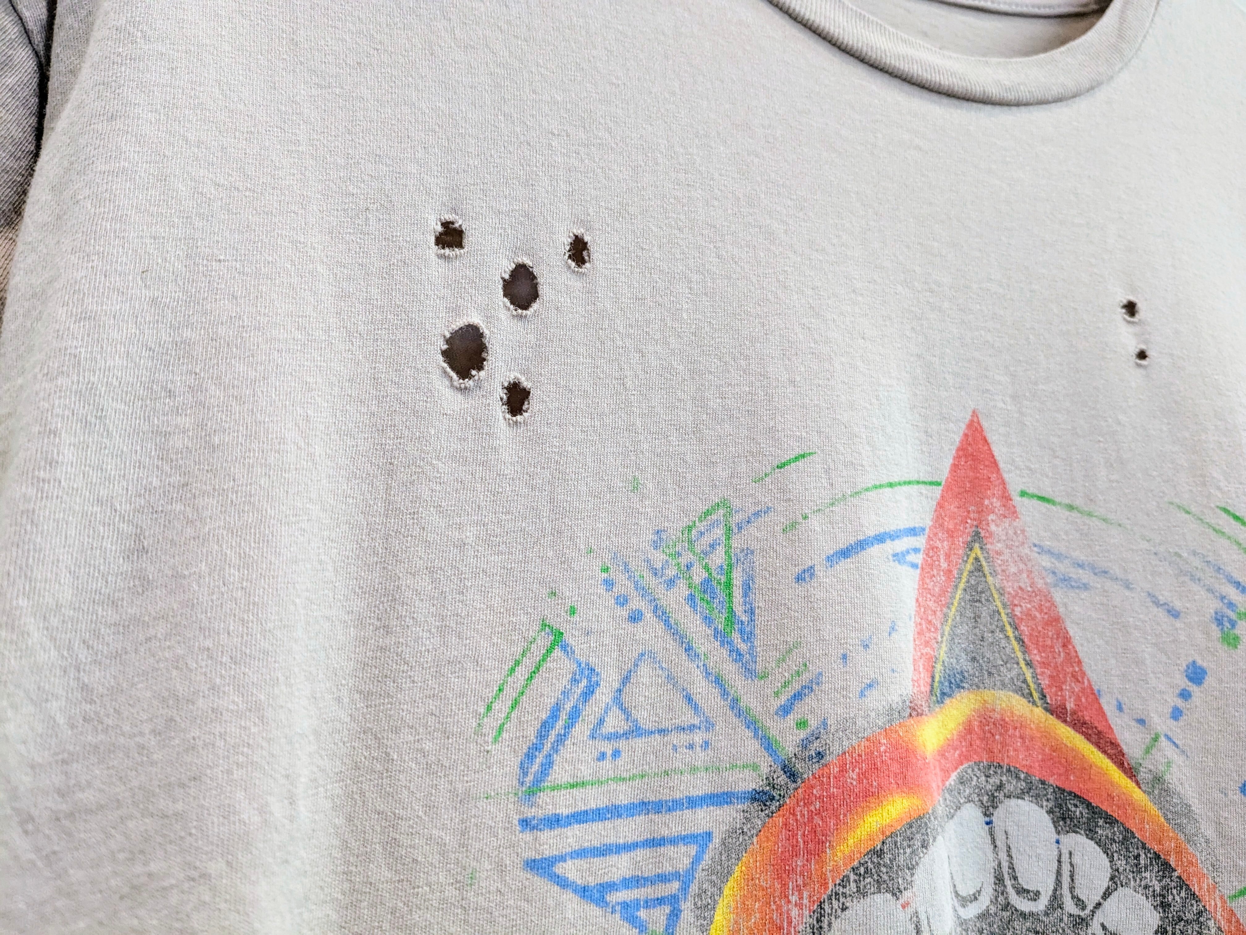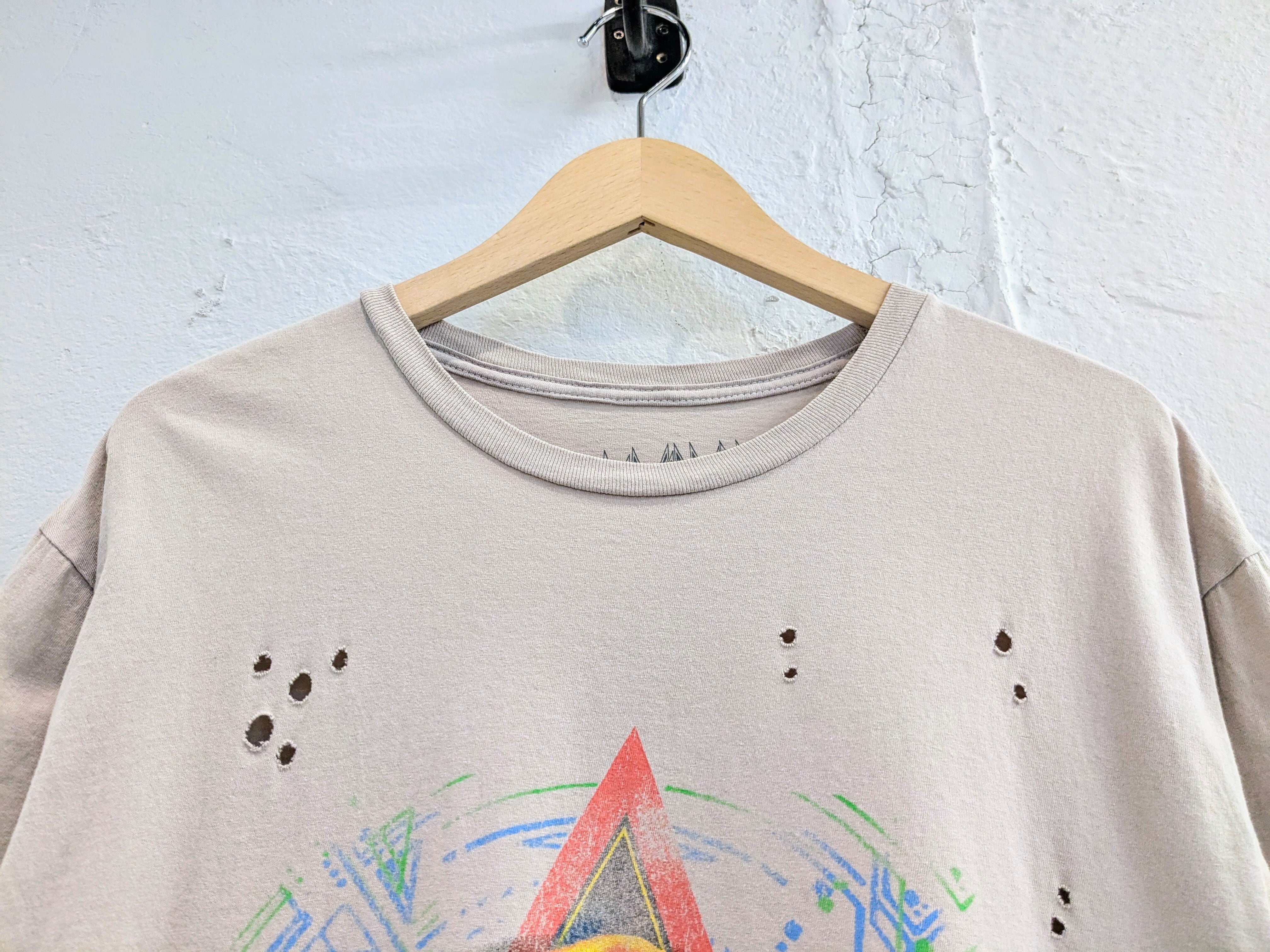 バンドTシャツらしいダメージがあり、雰囲気抜群の一着。やりすぎてないくらいのクラッシュ感がファッションとしても落とし込みやすい。インナーの色だったりを少し見せるだけで雰囲気変わるアイテム。