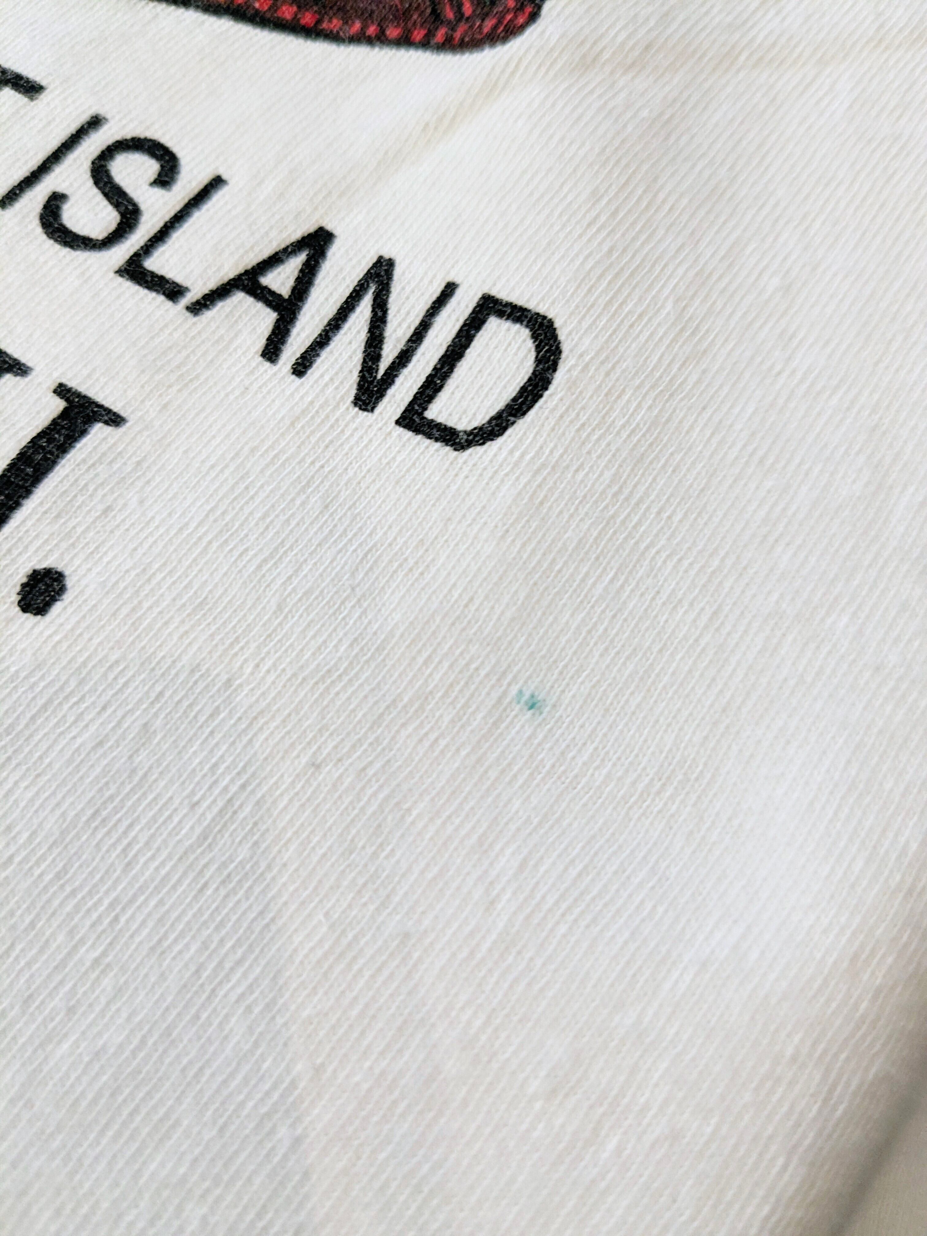 スーベニアアイテムかなと思います。色使いが鮮やかでとても目を引く一着。ボックスのシルエットもとても使いやすい。汚れあり。