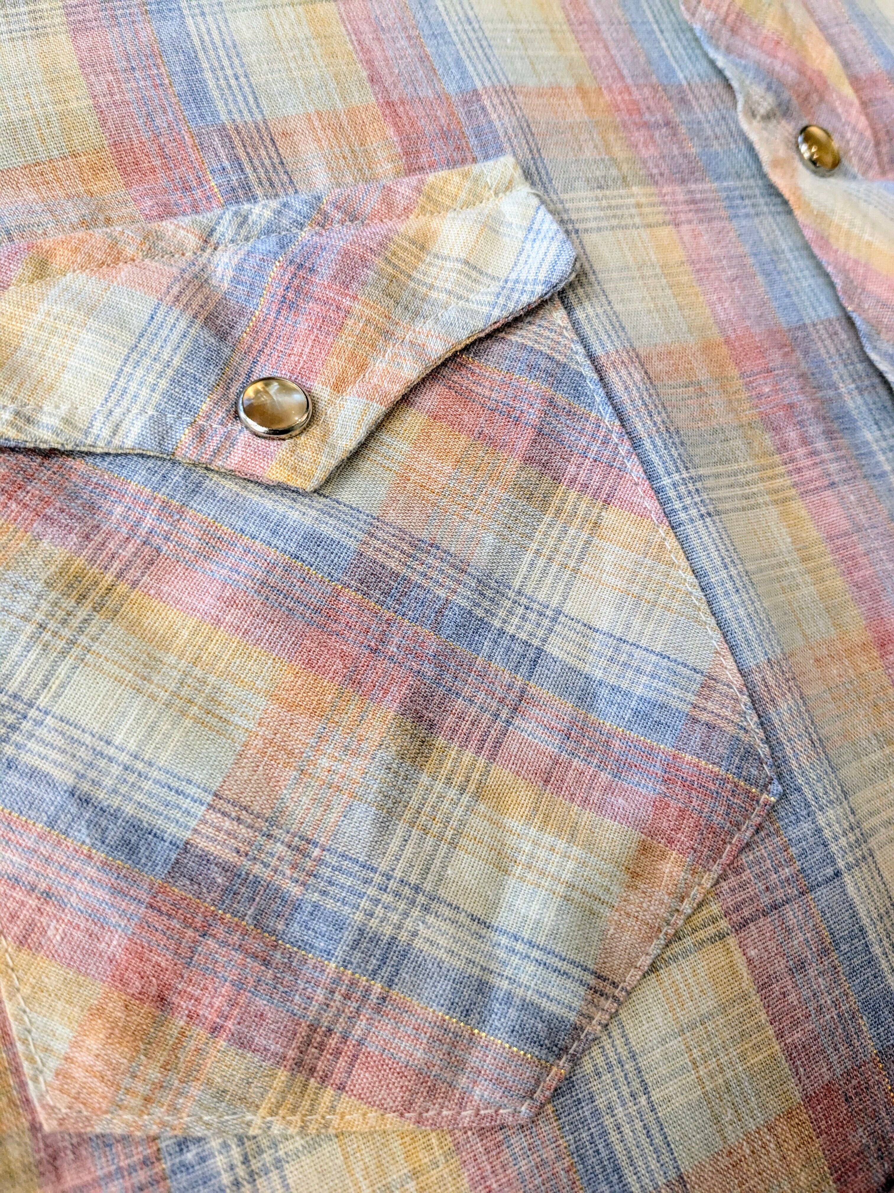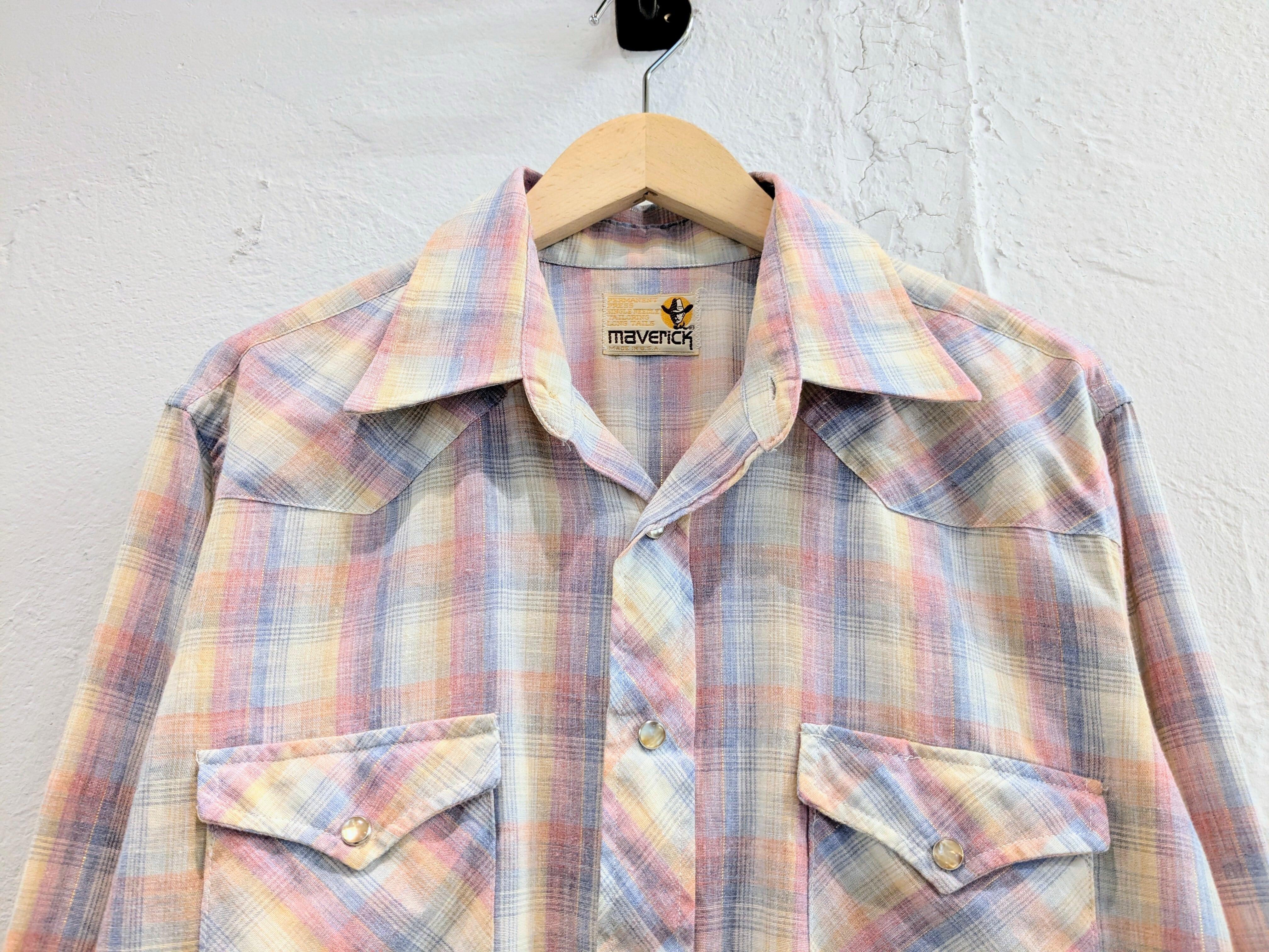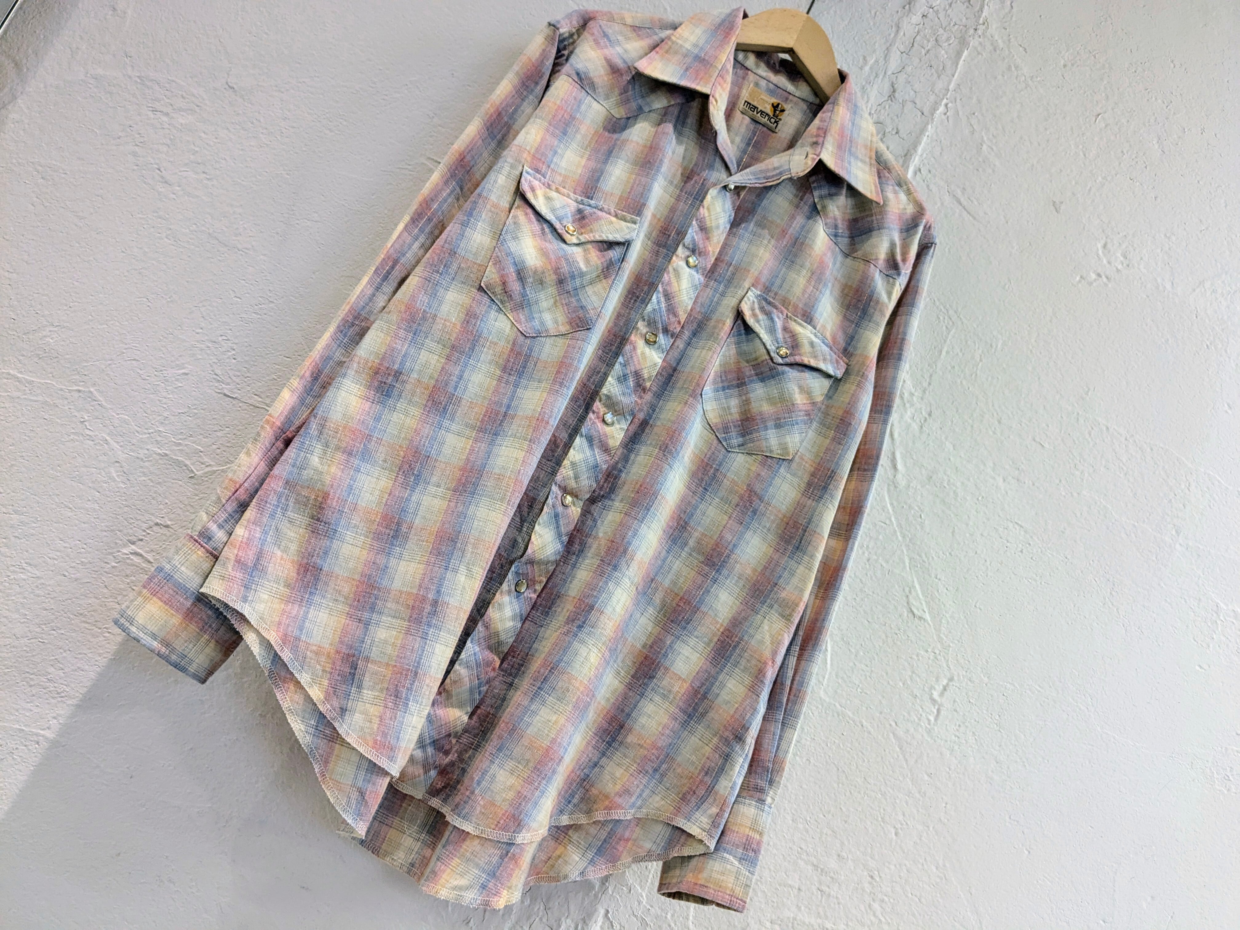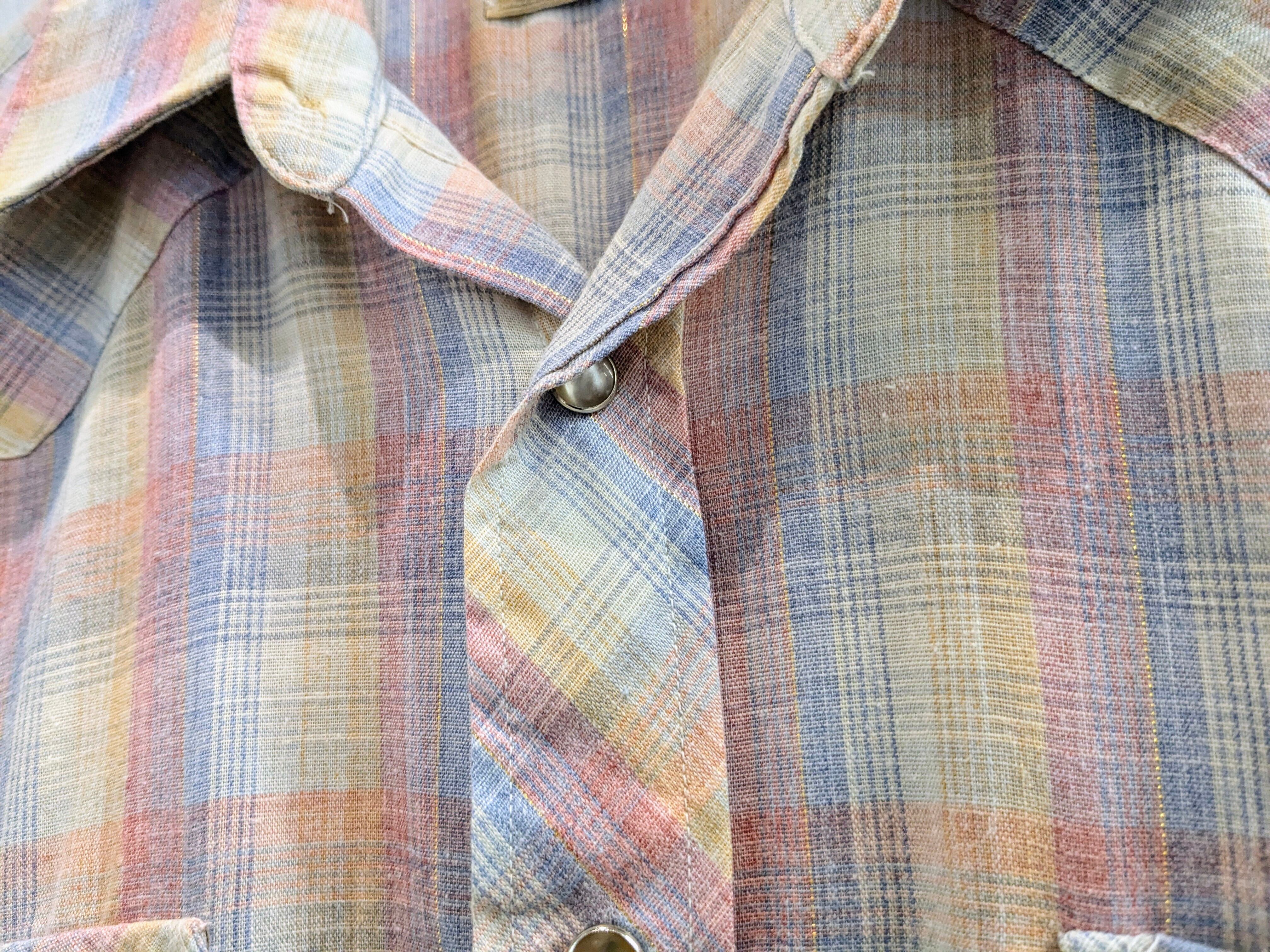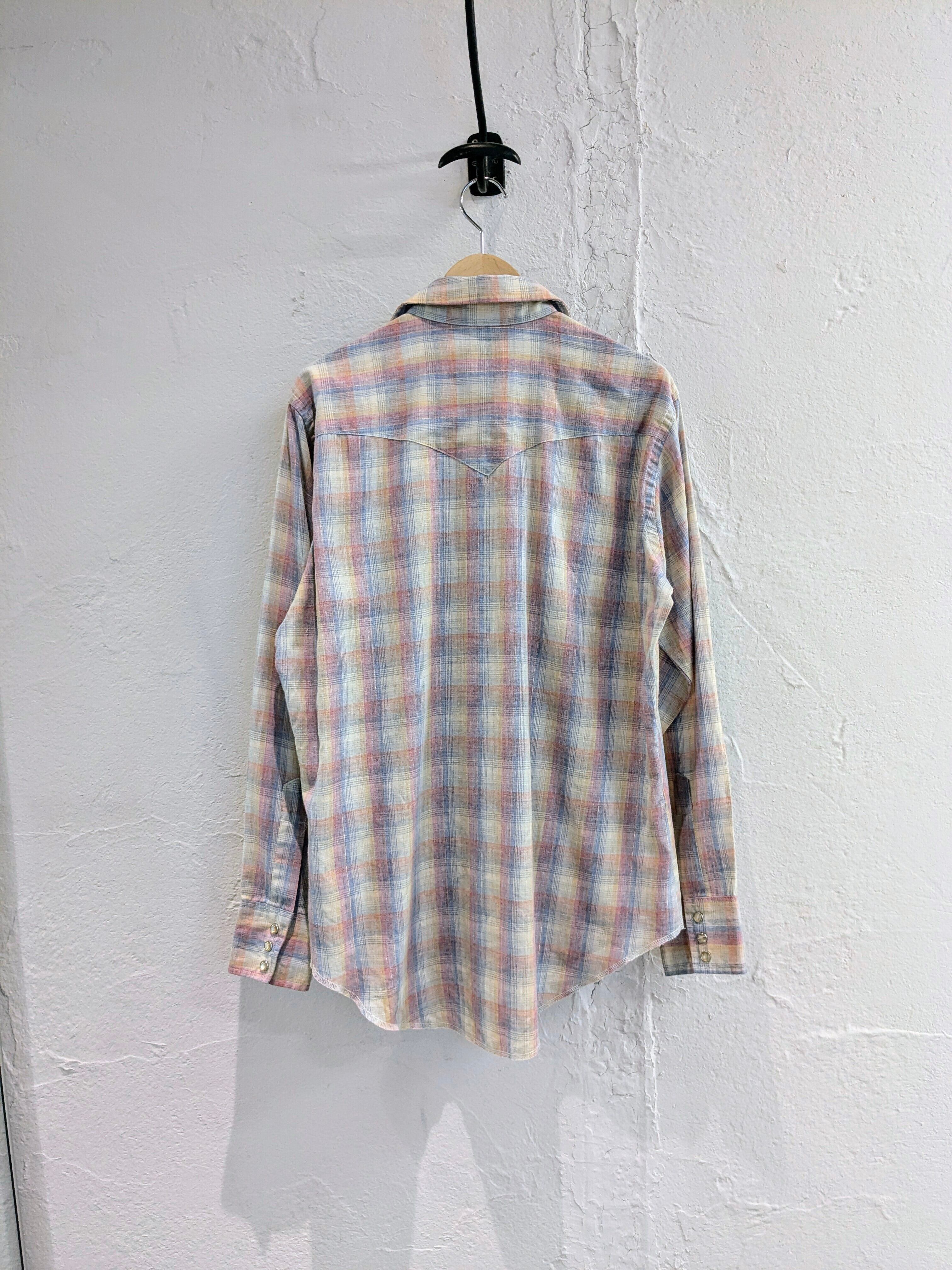 淡いペールカラーのチェック柄のウエスタンシャツ。
