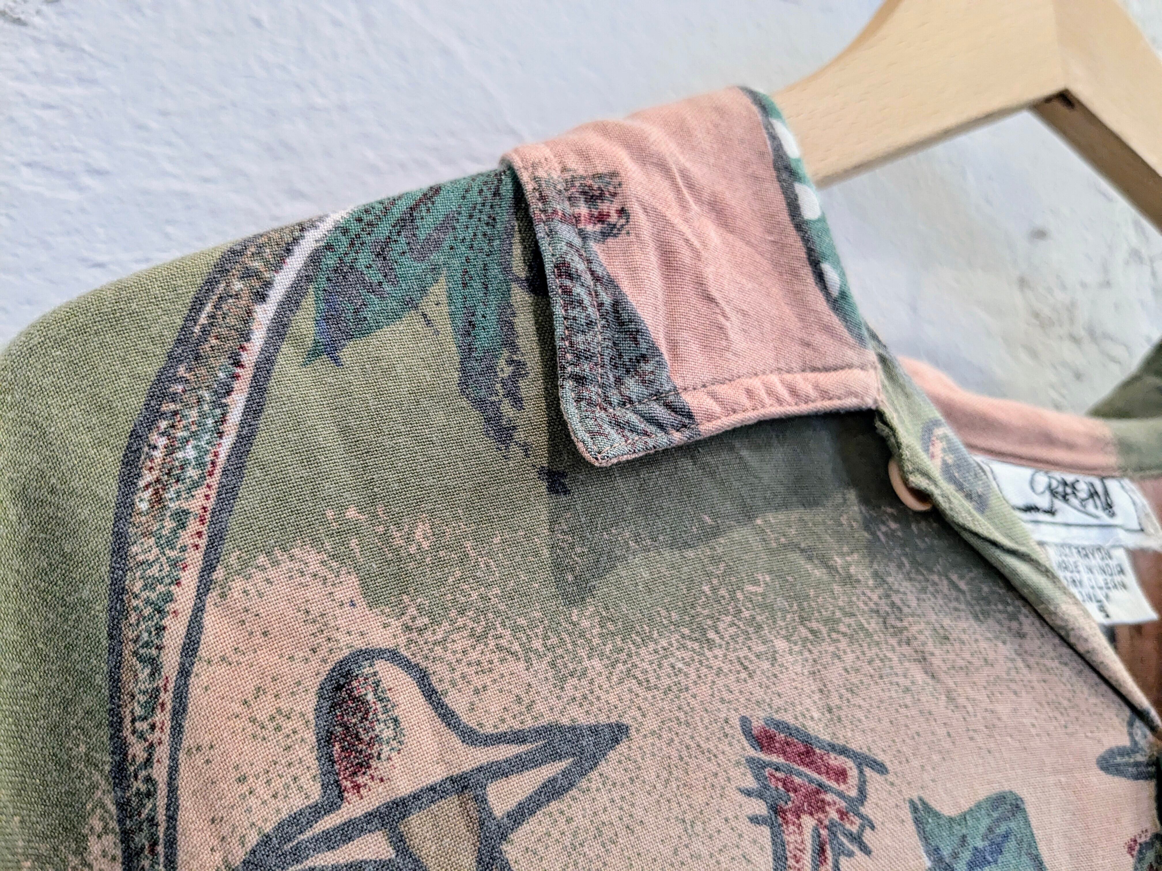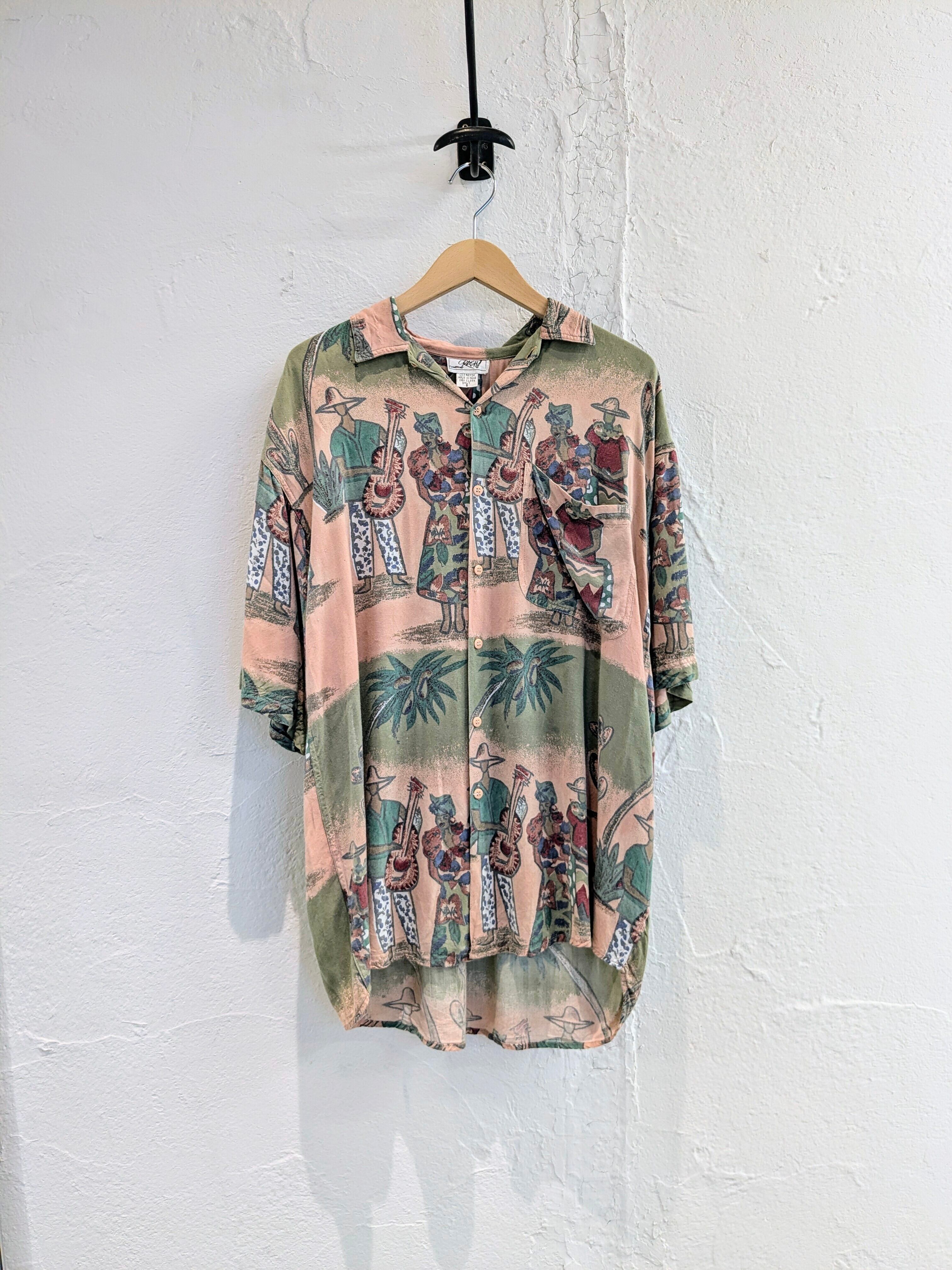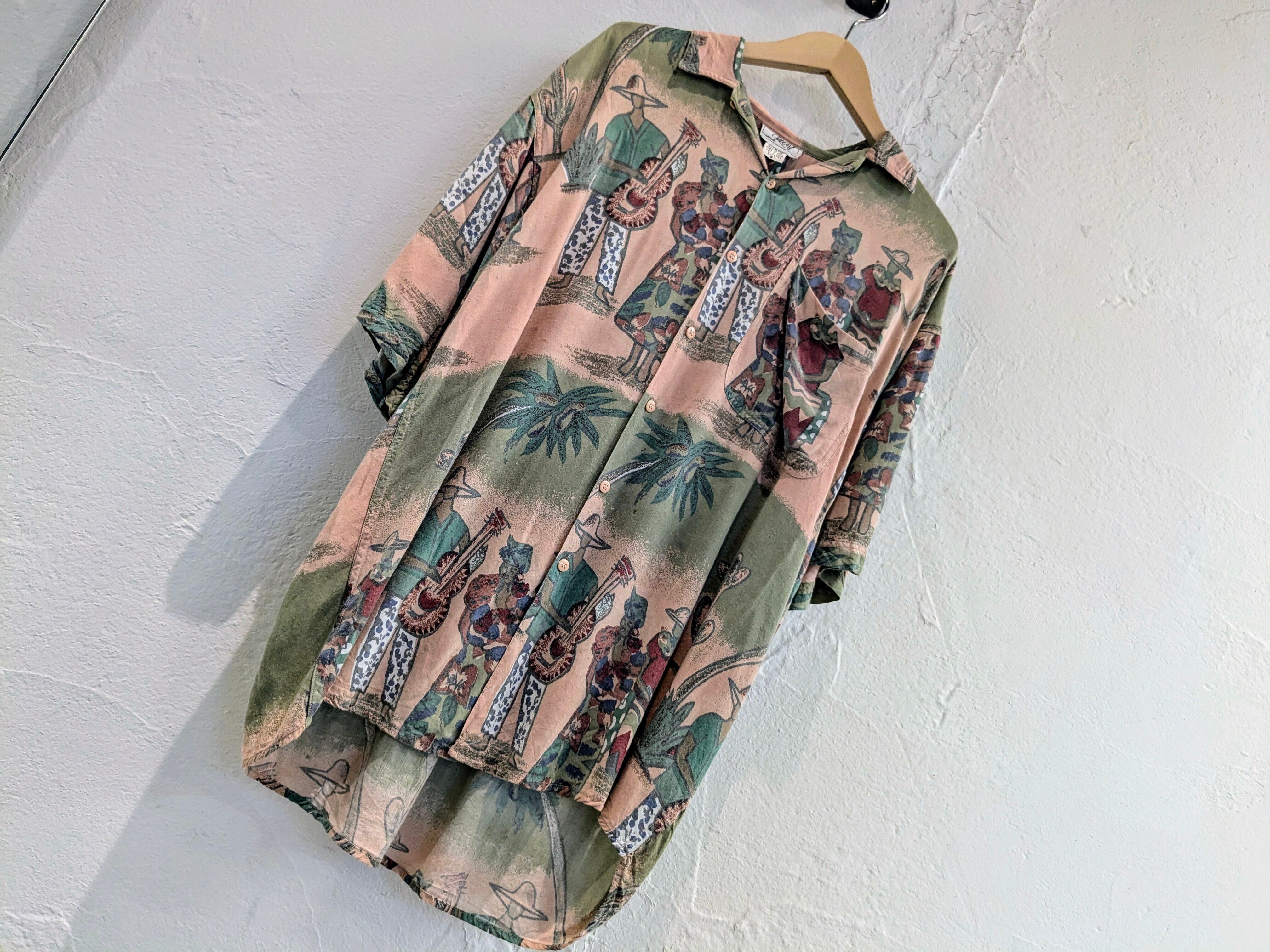 なんか味のあるプリントが可愛い一着。レーヨンで落ち感があり、とても軽く着やすいアイテム。