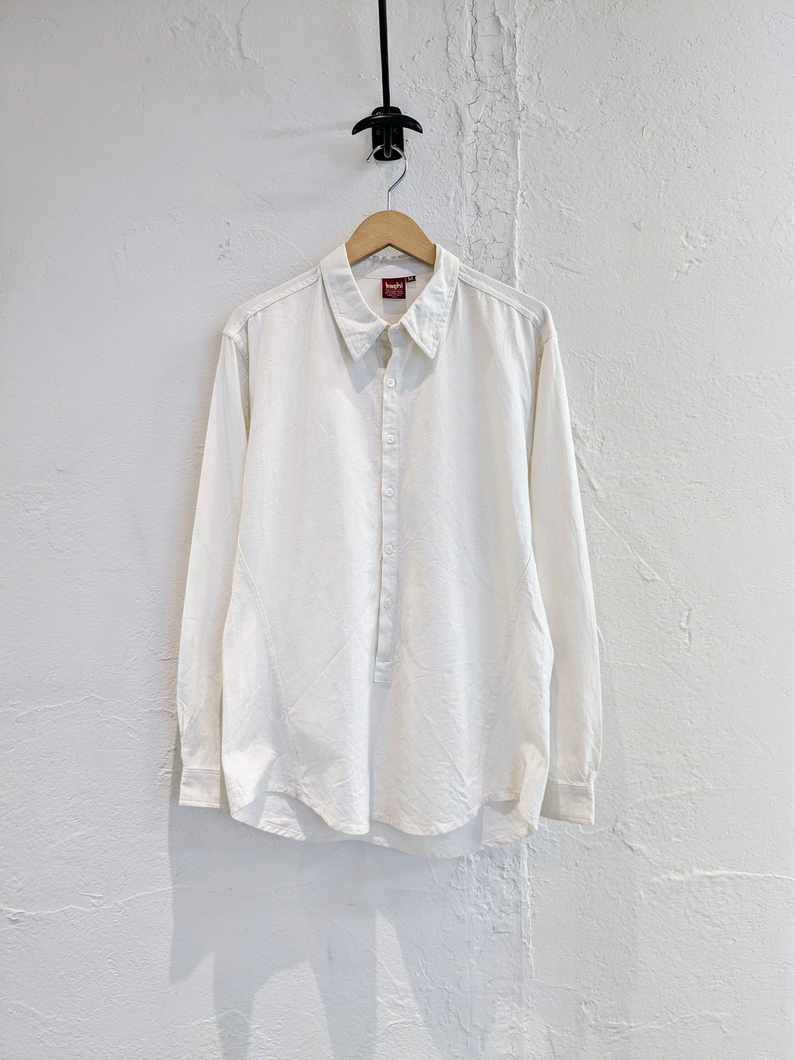 ハンドクラフトのヘンプ、コットン混のプルオーバーシャツ。