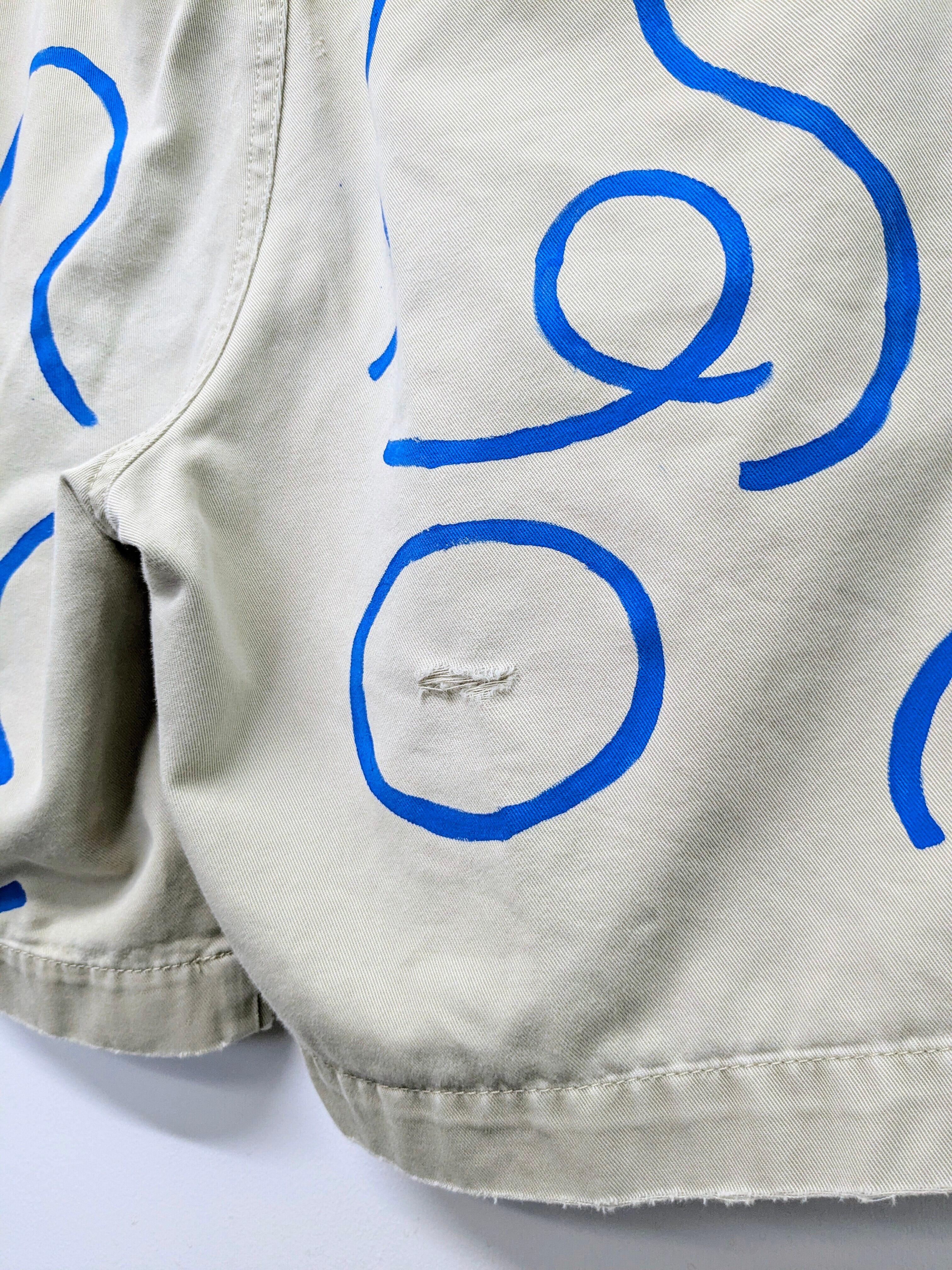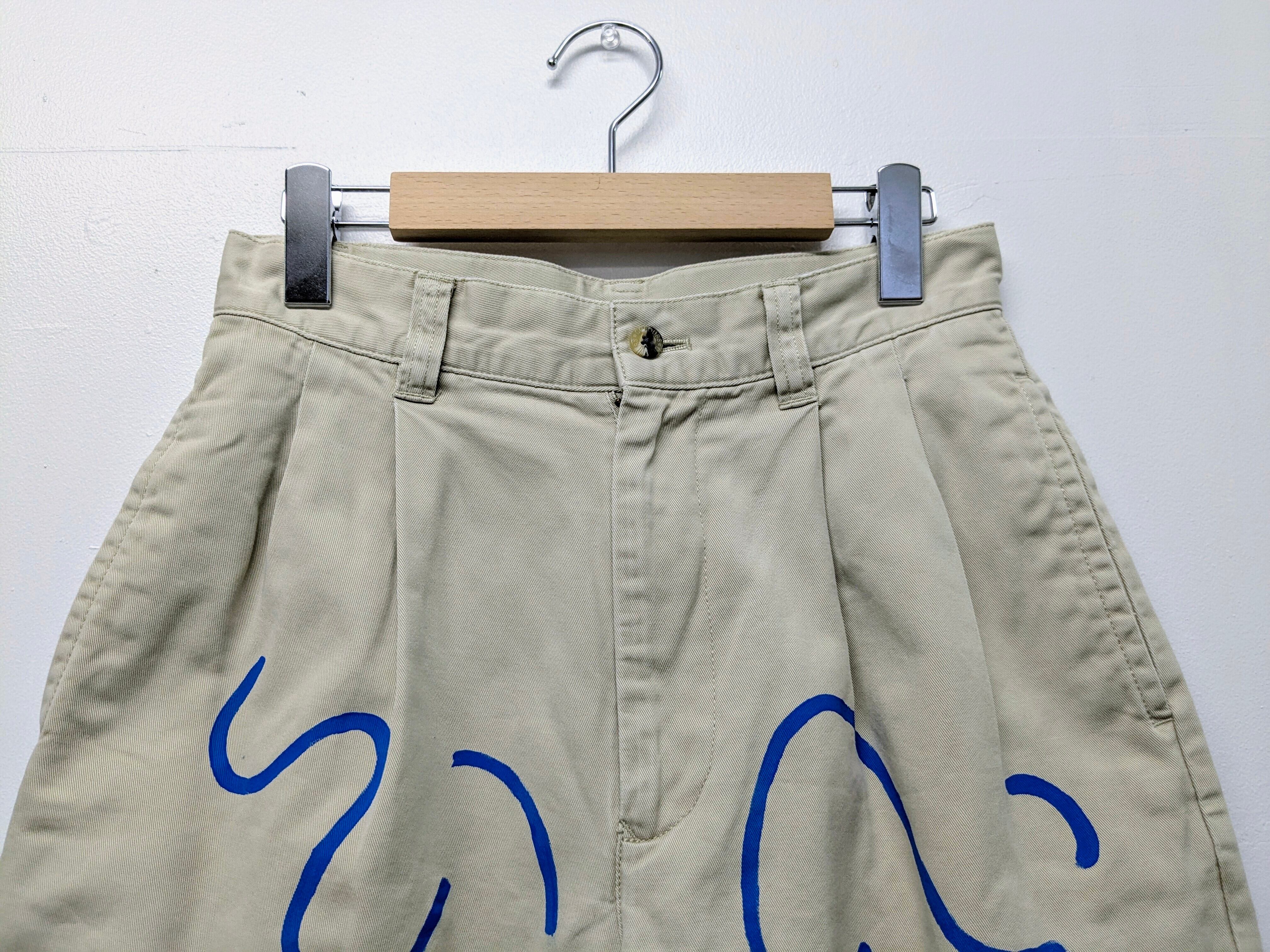 アートな要素を加えたデザインパンツ。やりすぎてない、程よいデザインが心地よいアイテム。キズ、ヨゴレあり。