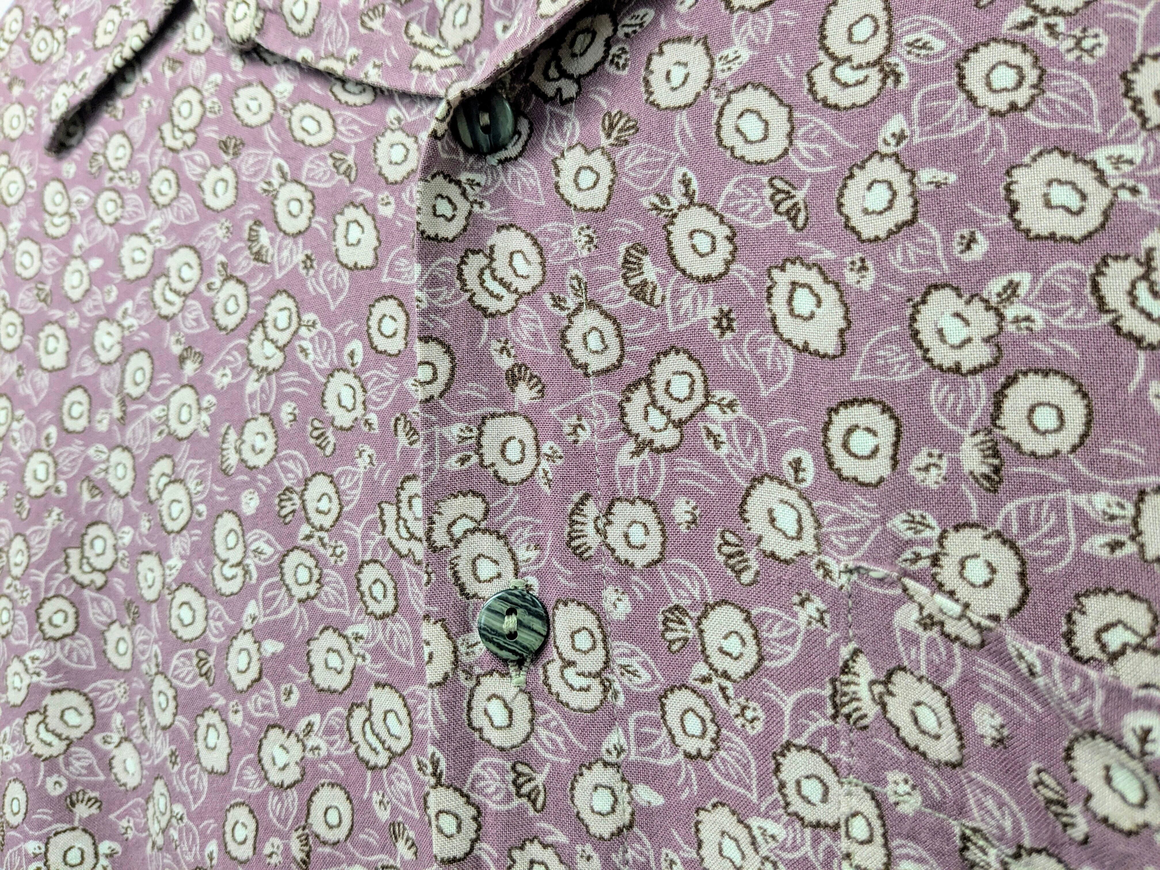 素材表記がないので、おそらくですがレーヨンシャツになるかと思います。落ち感、軽さがとてもあるシャツ。