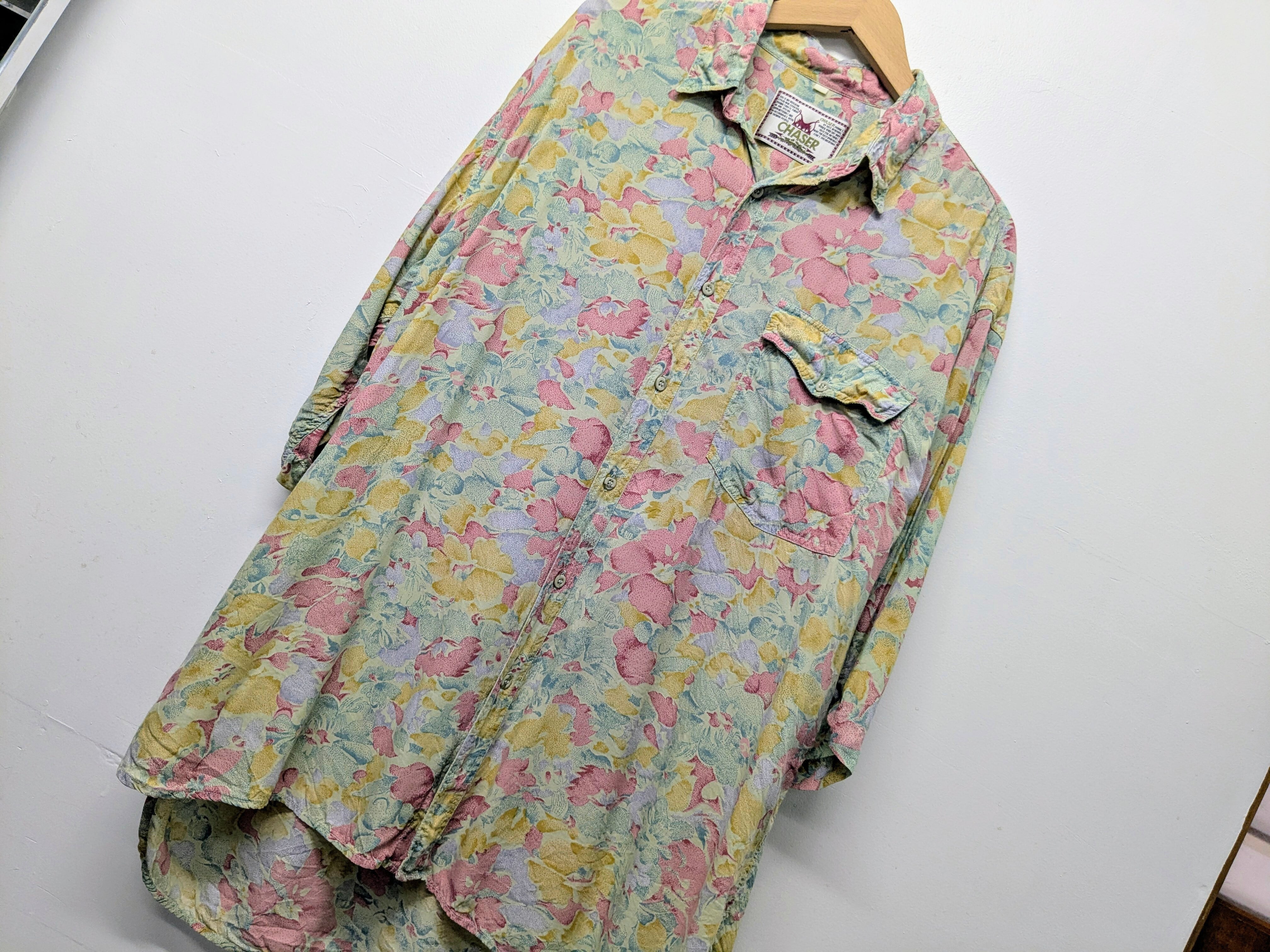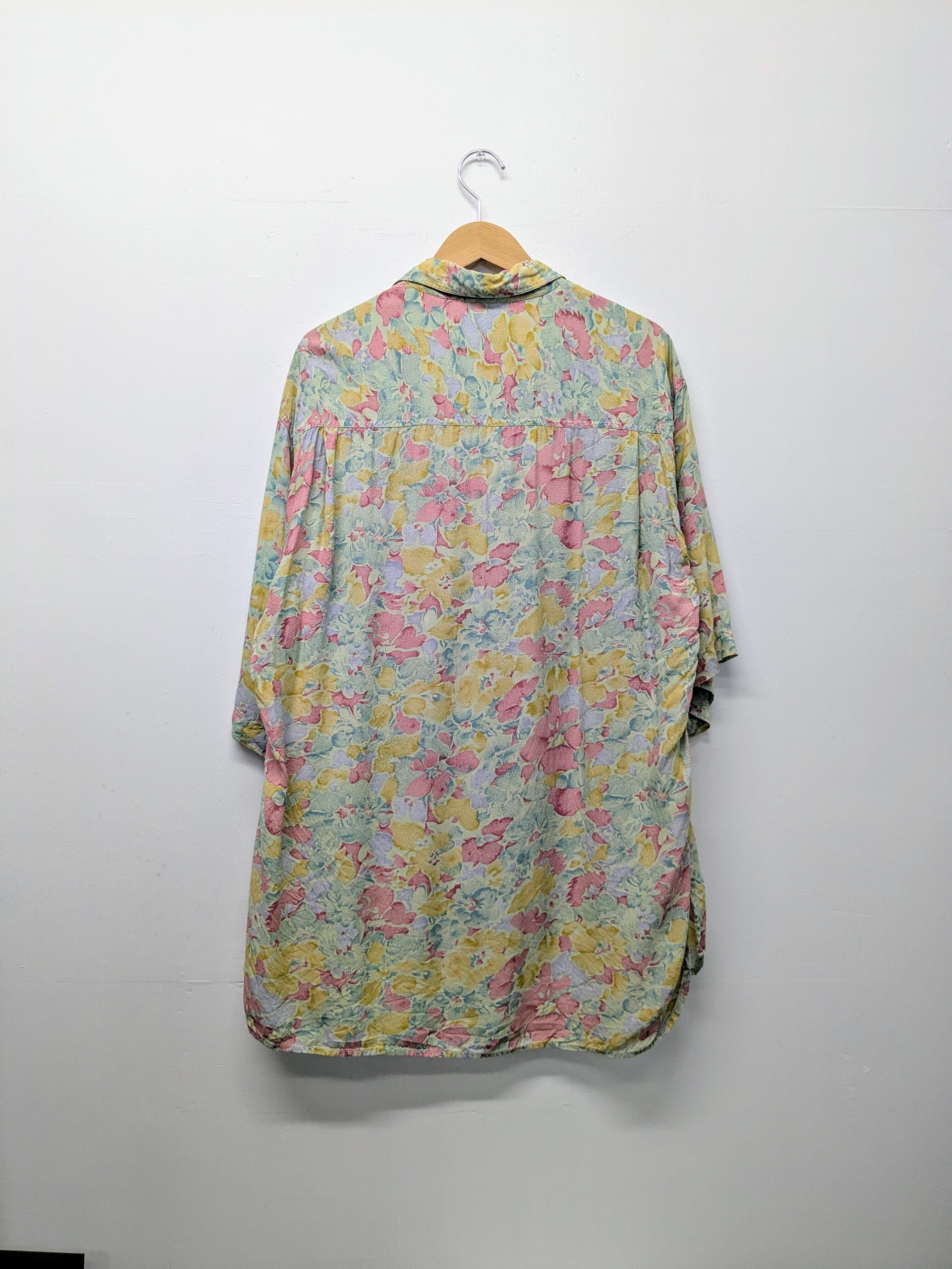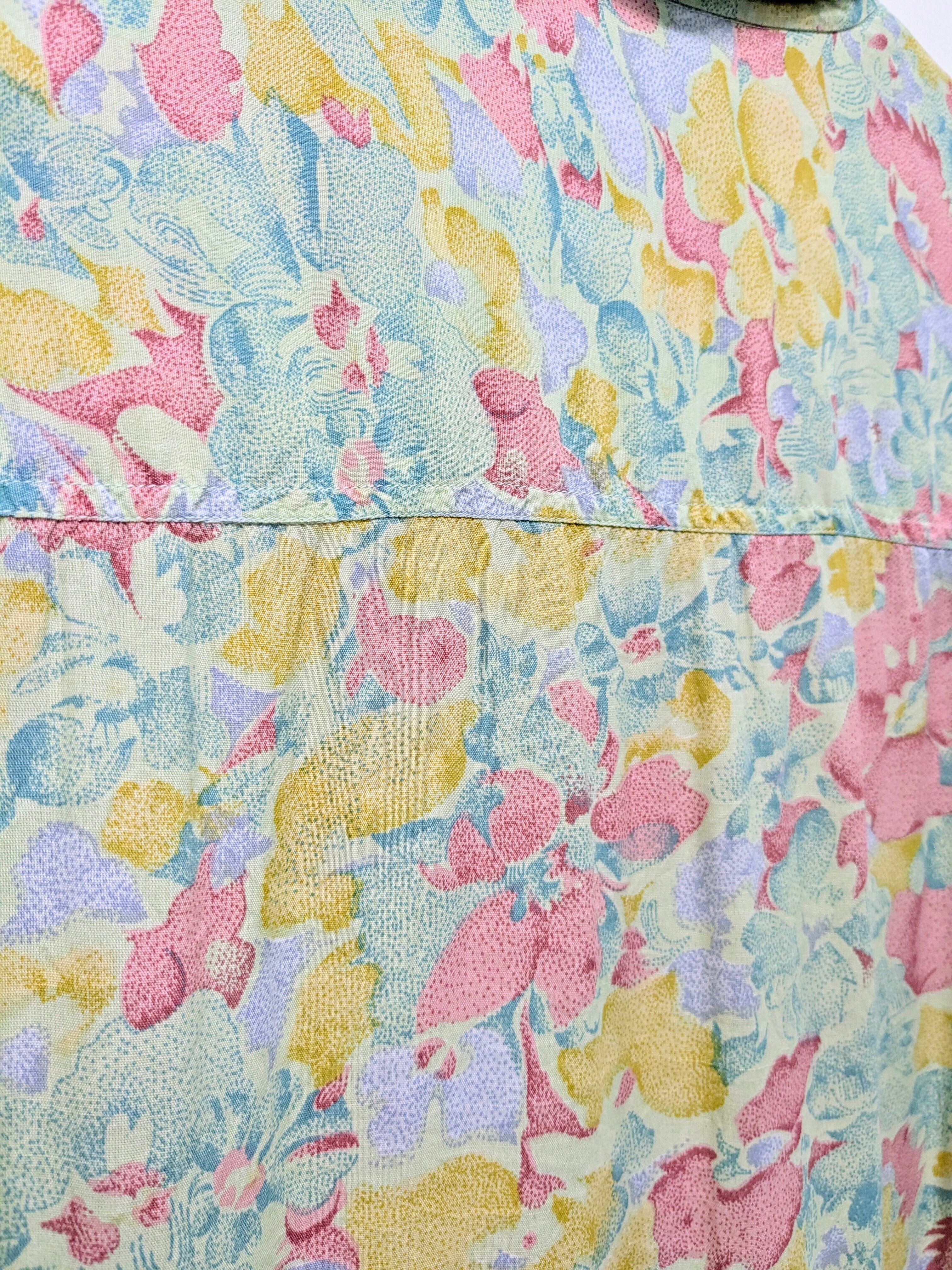 Pale Color Flower Pattern Open Collar Shirt