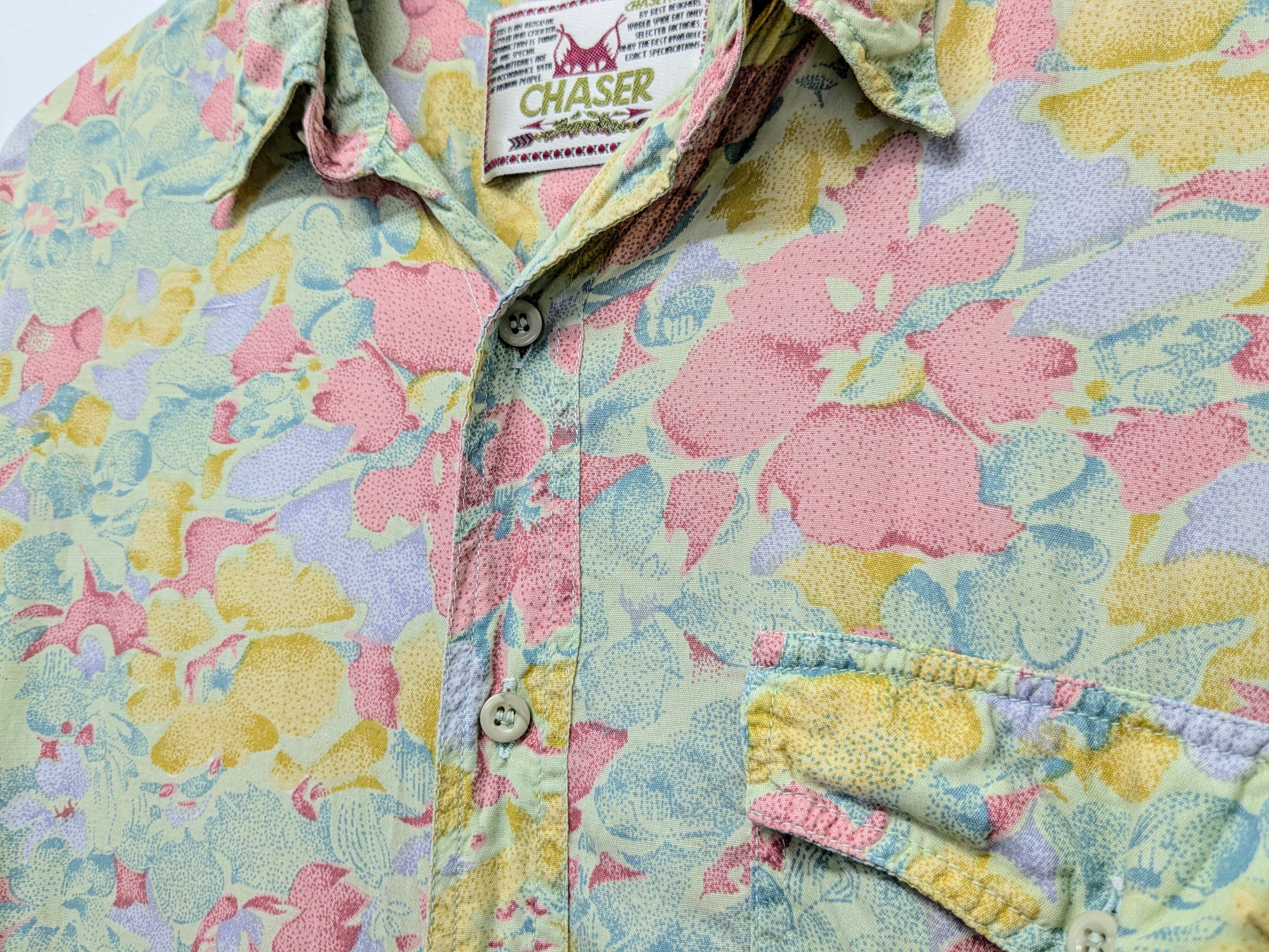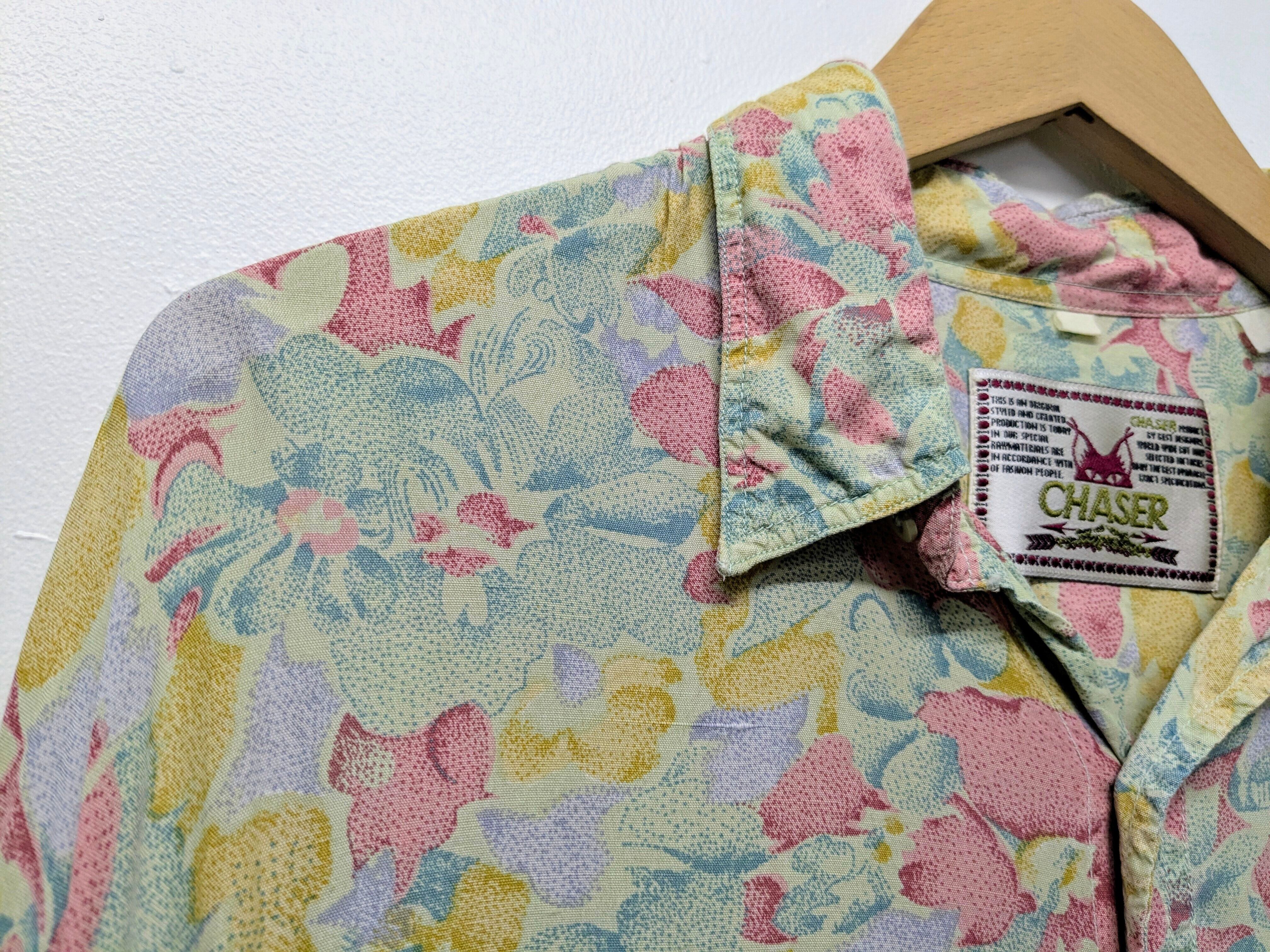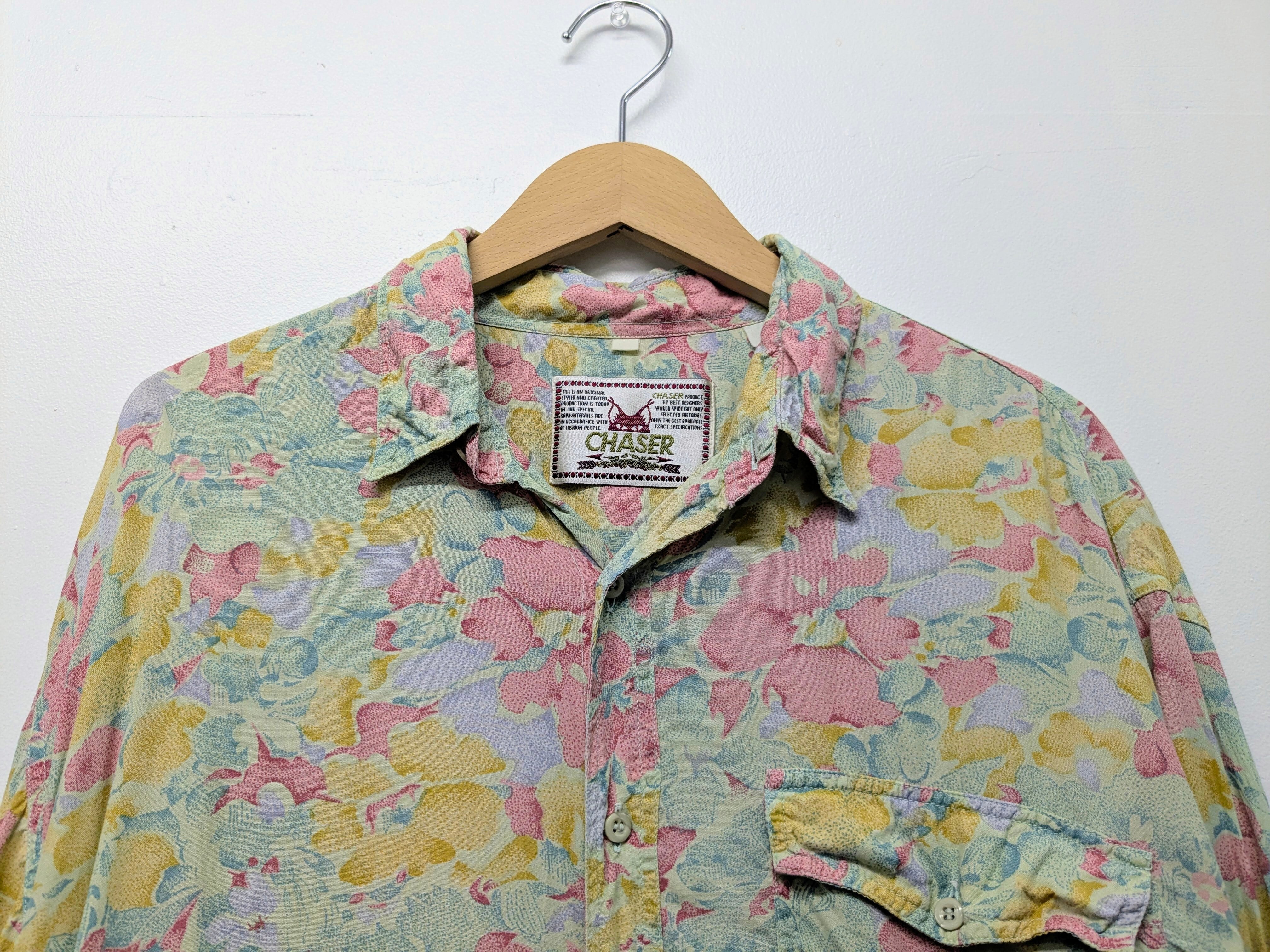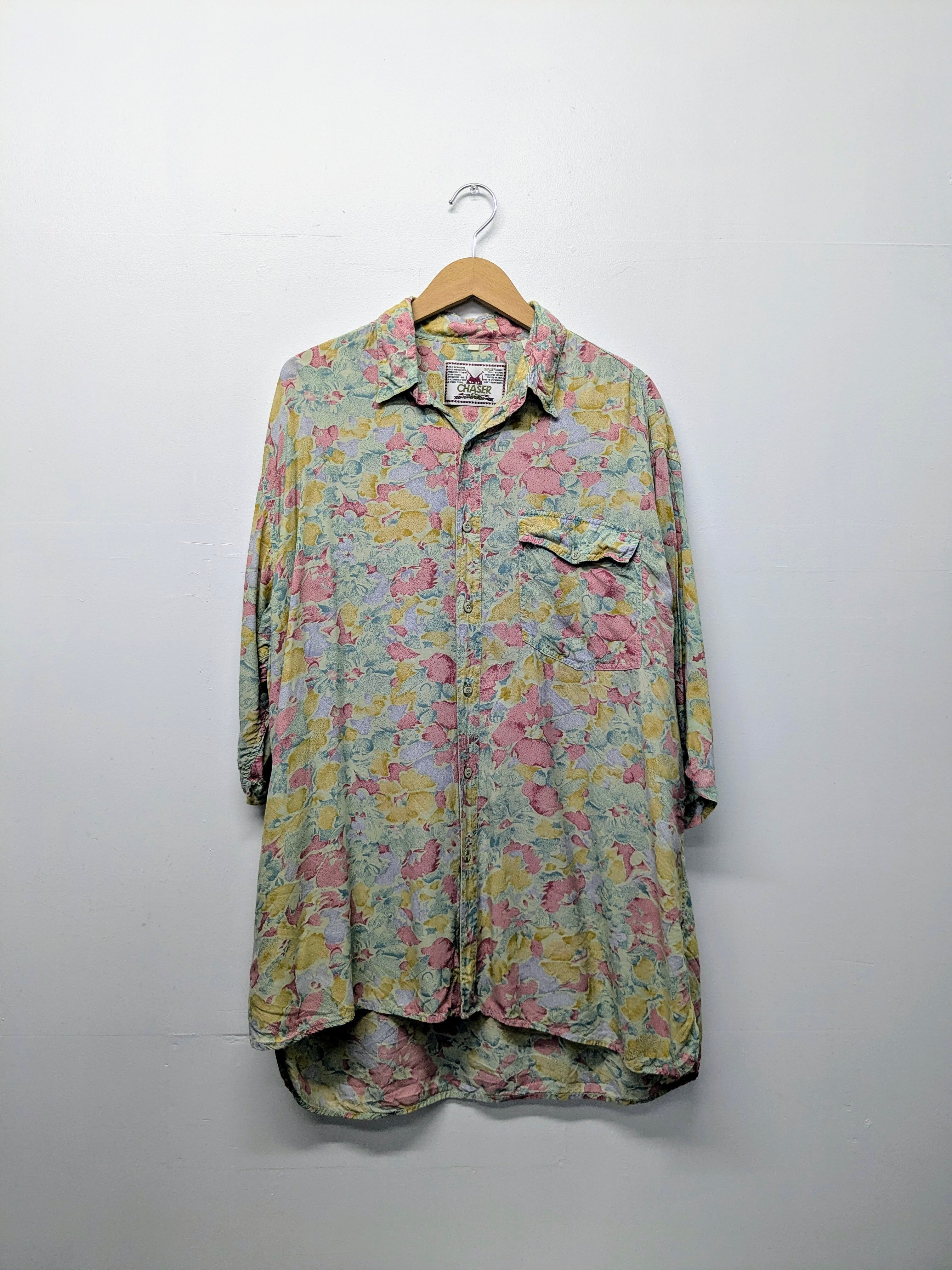 Pale Color Flower Pattern Open Collar Shirt