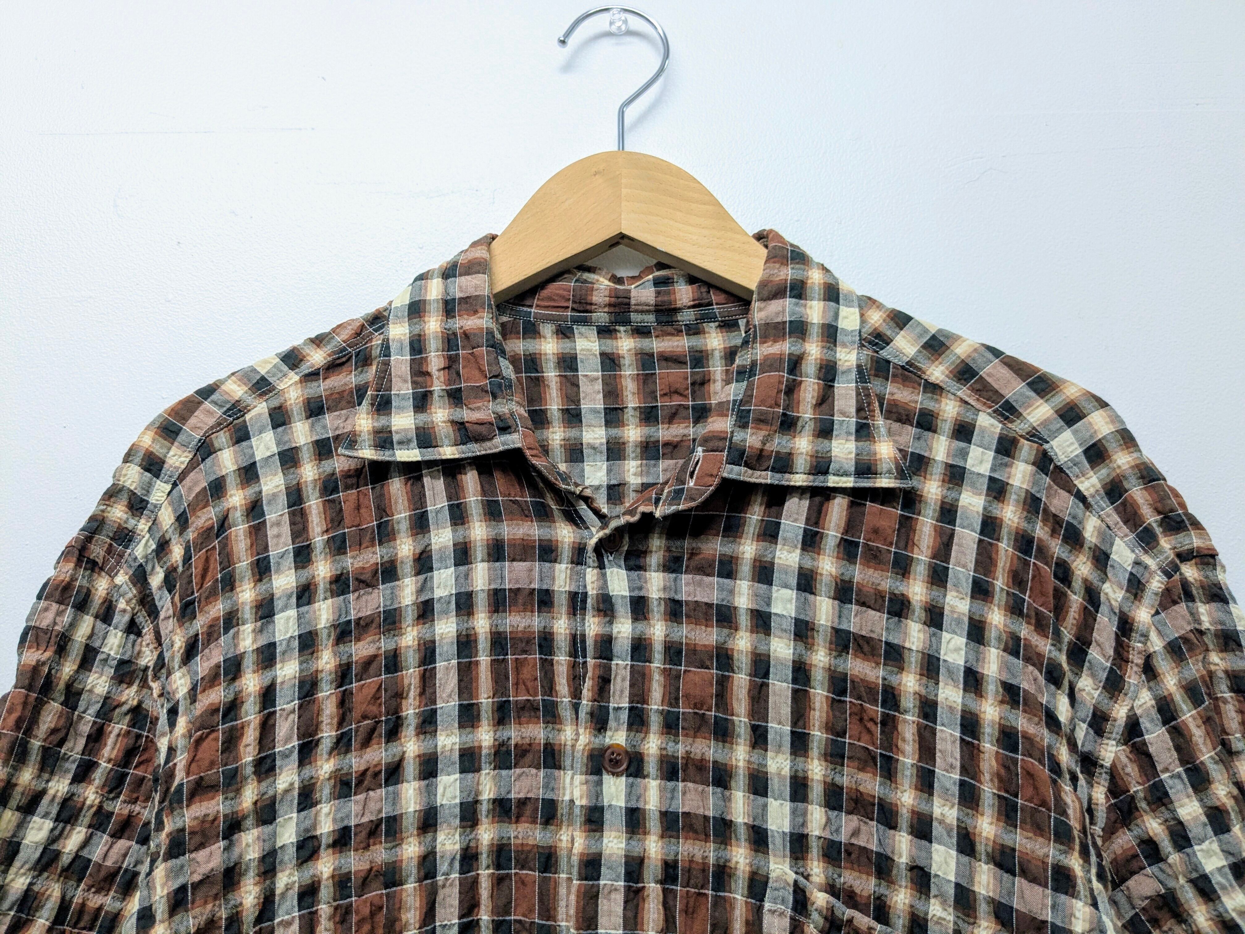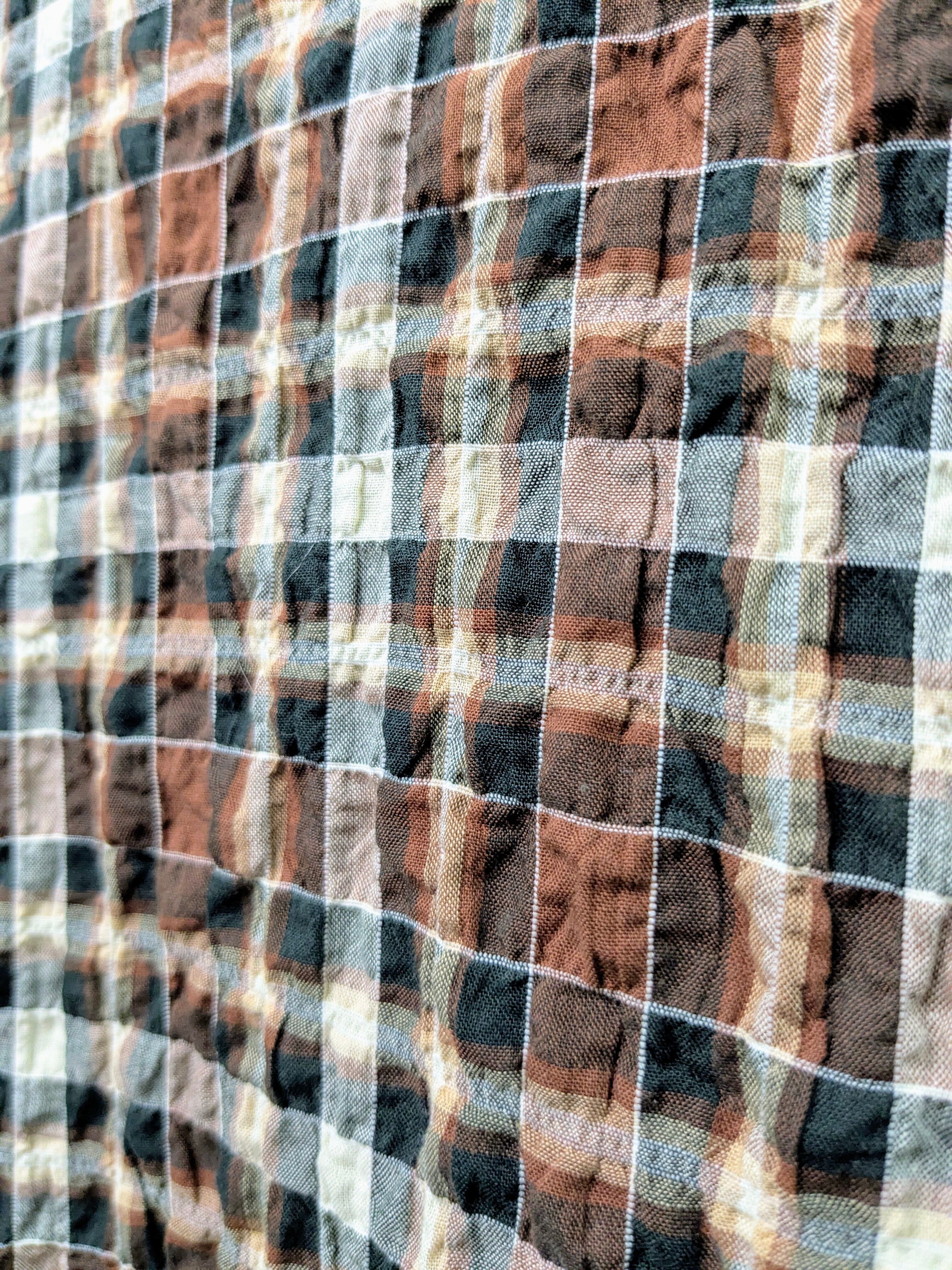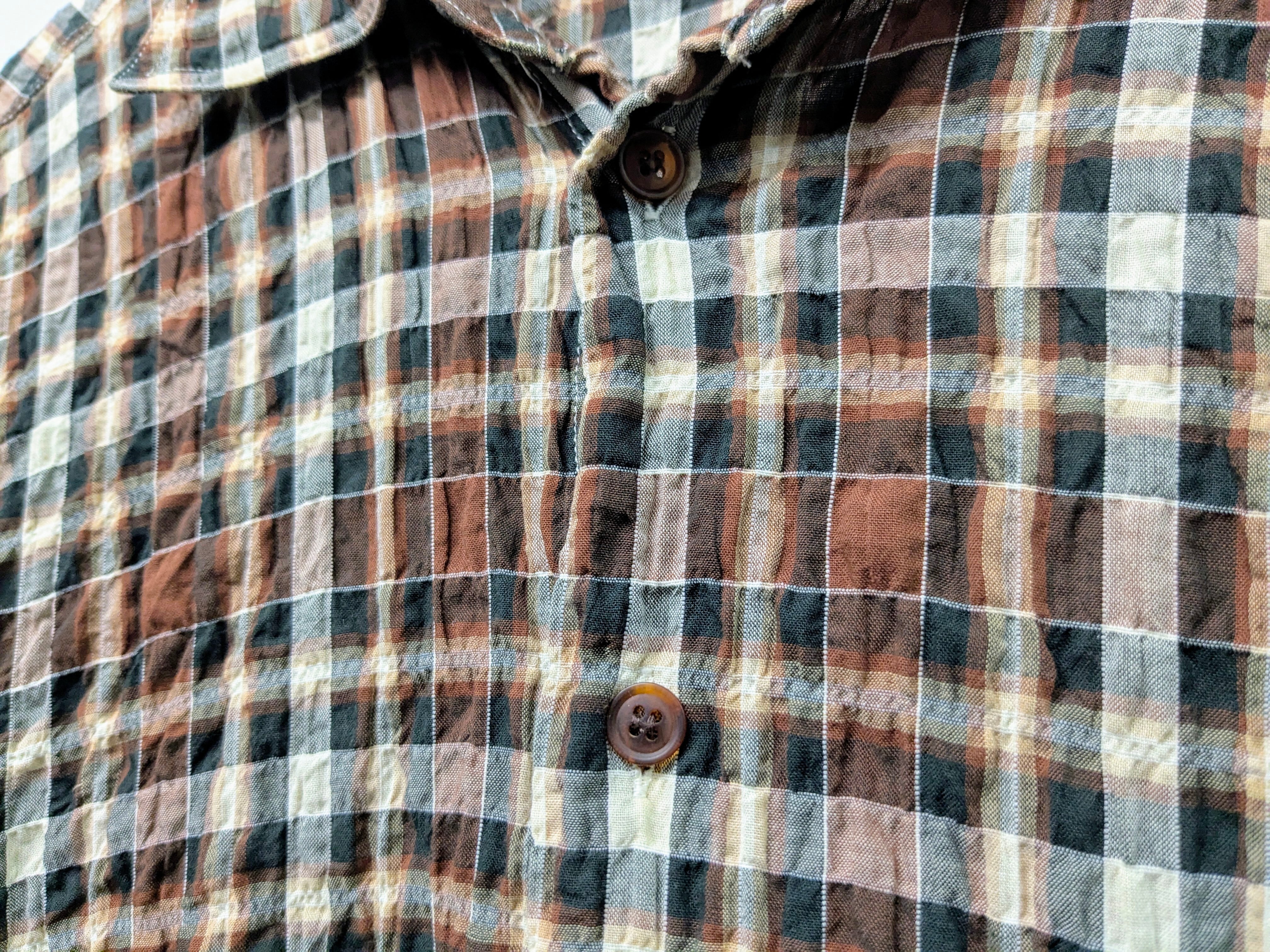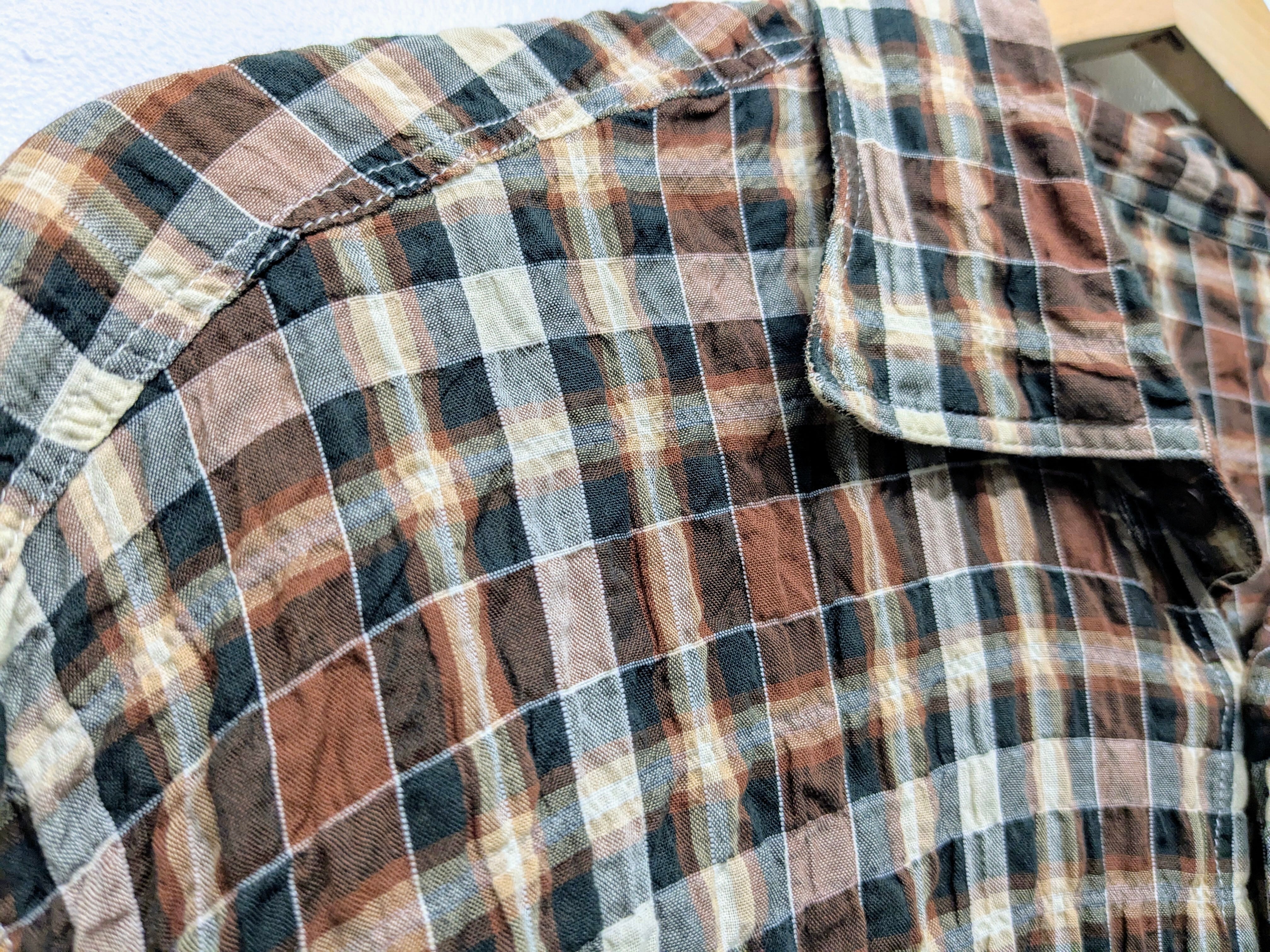 サッカー生地のチェックシャツ。