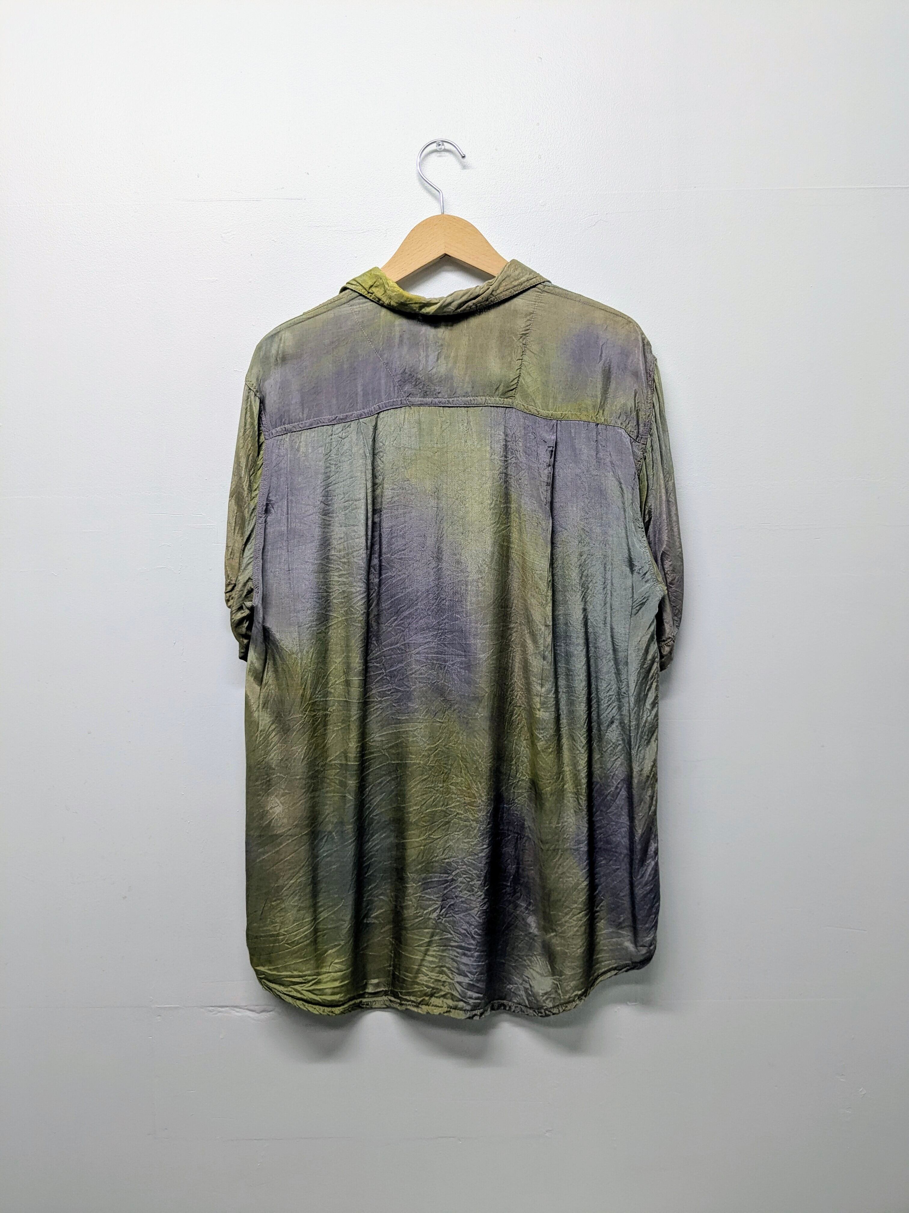 ビスコース素材で柔らかく、涼しく着ていただけます。光沢感があり、上品さも兼ね備えたシャツ。ヨゴレあり。