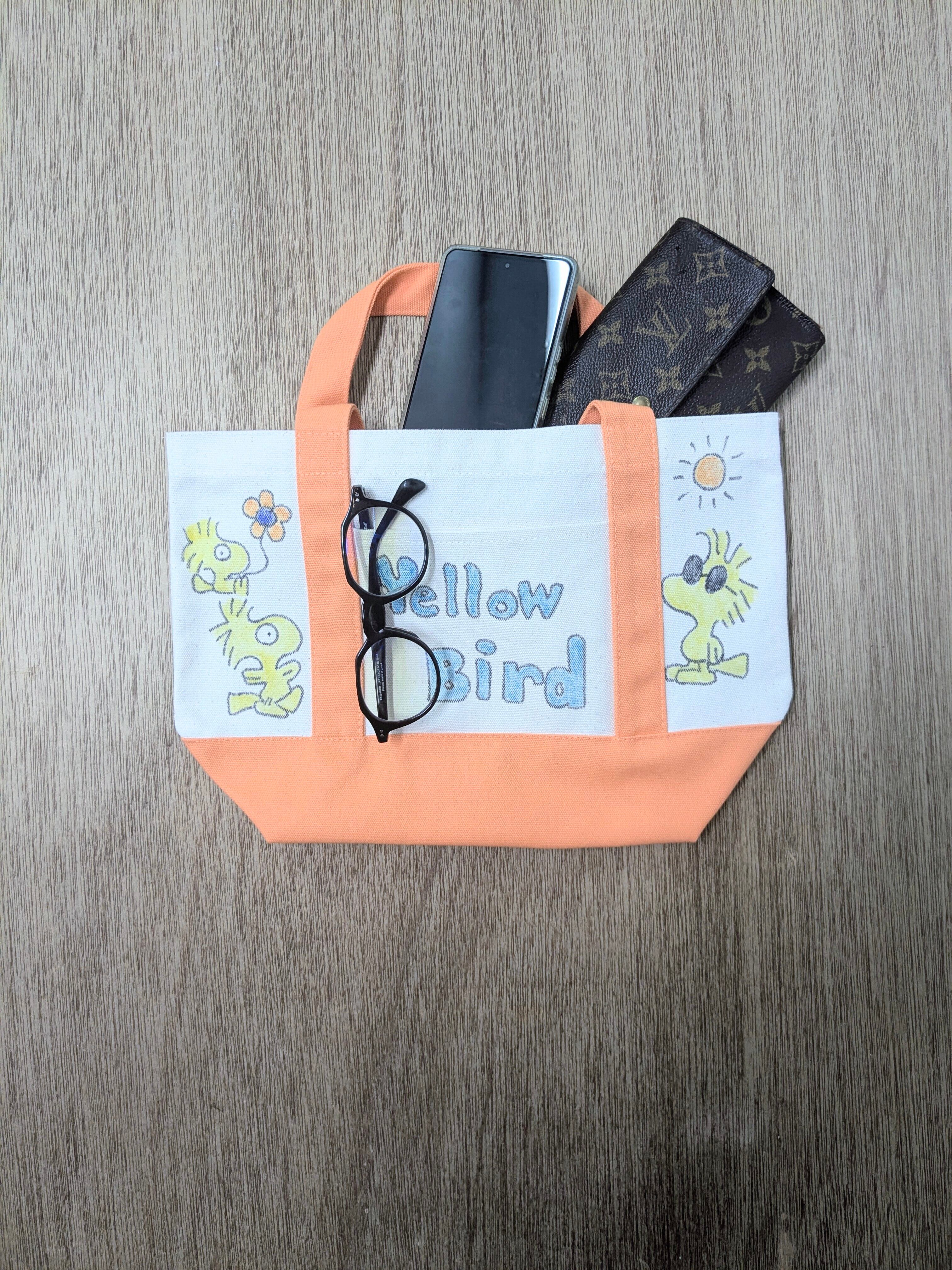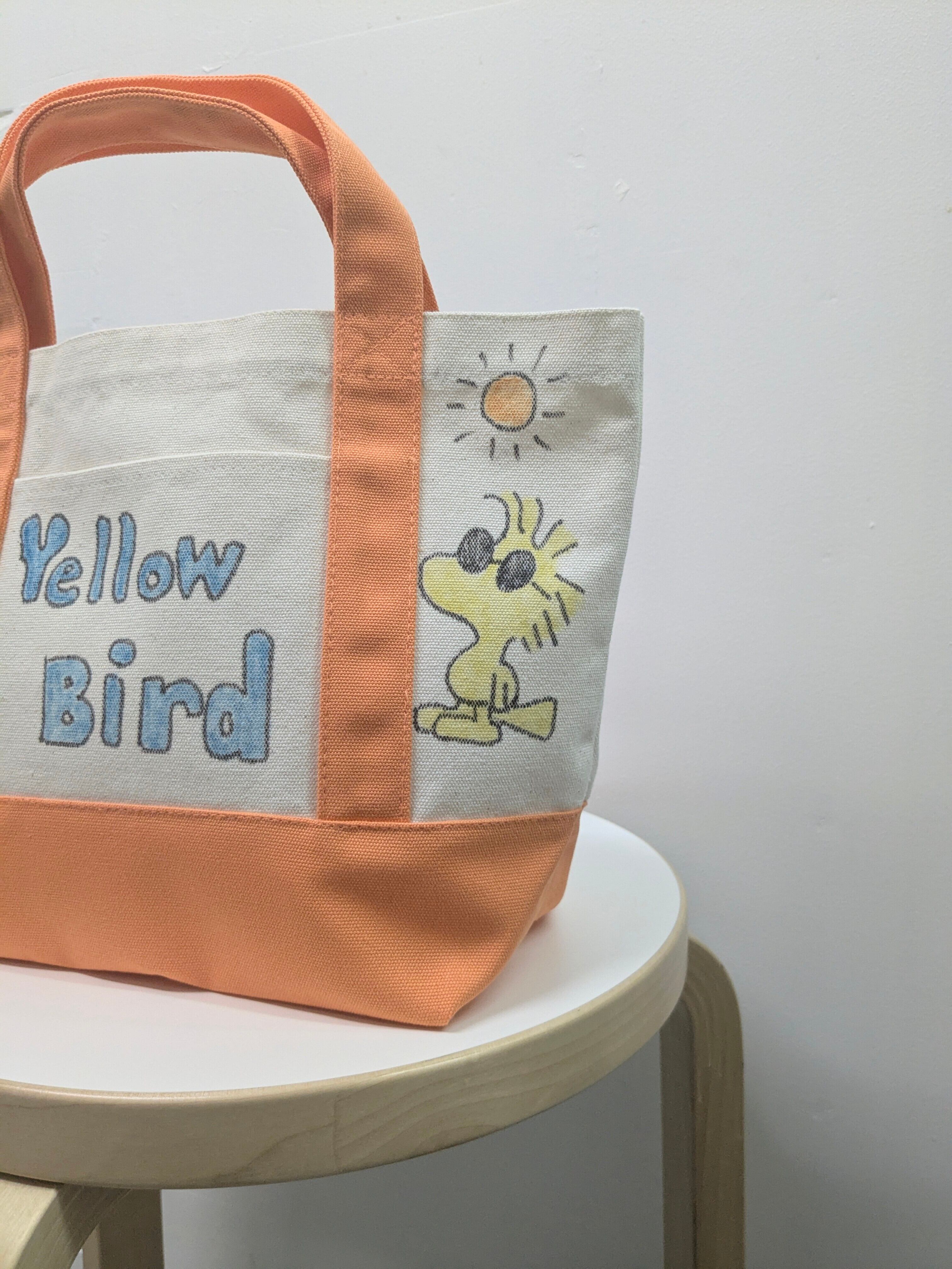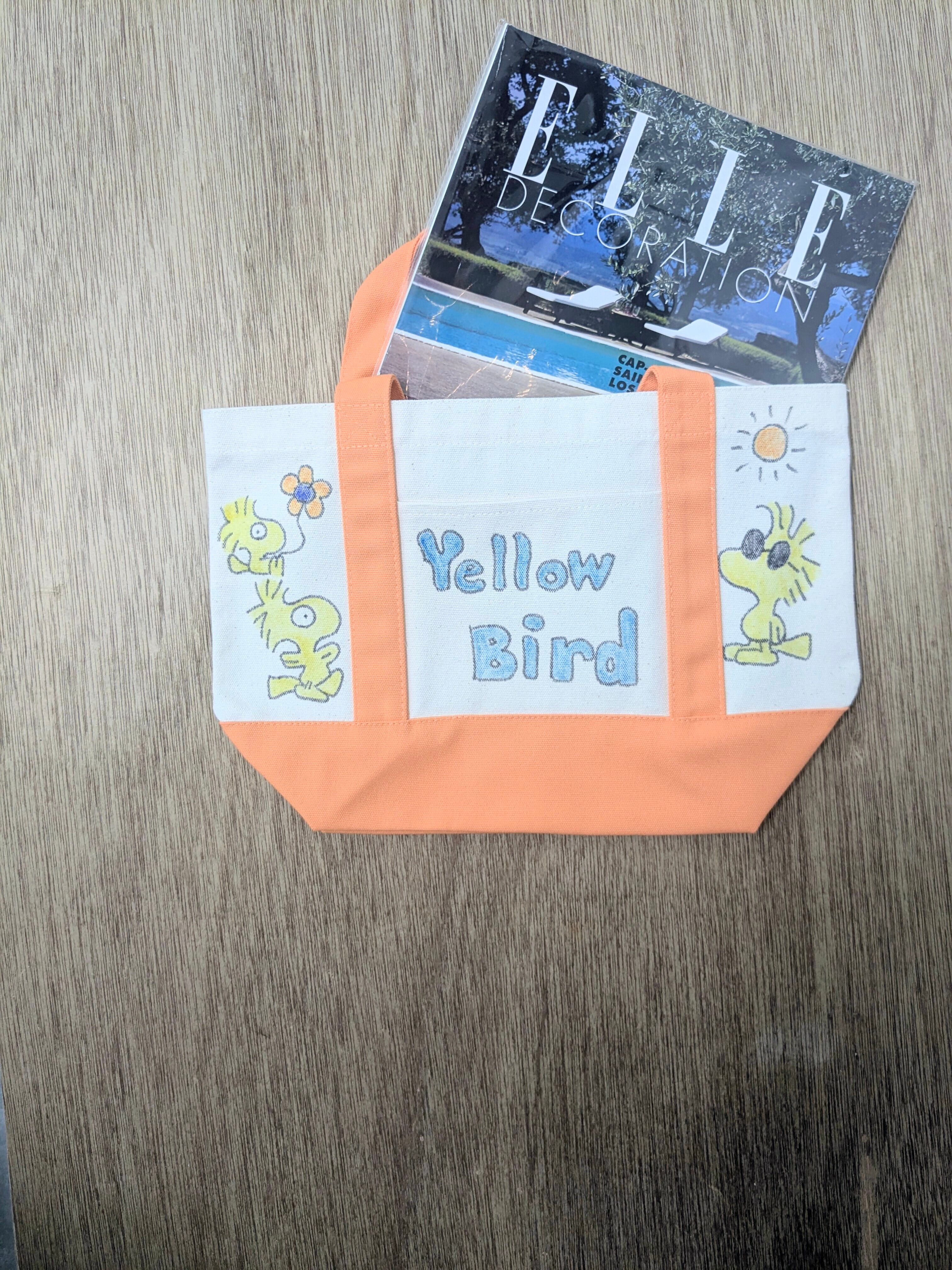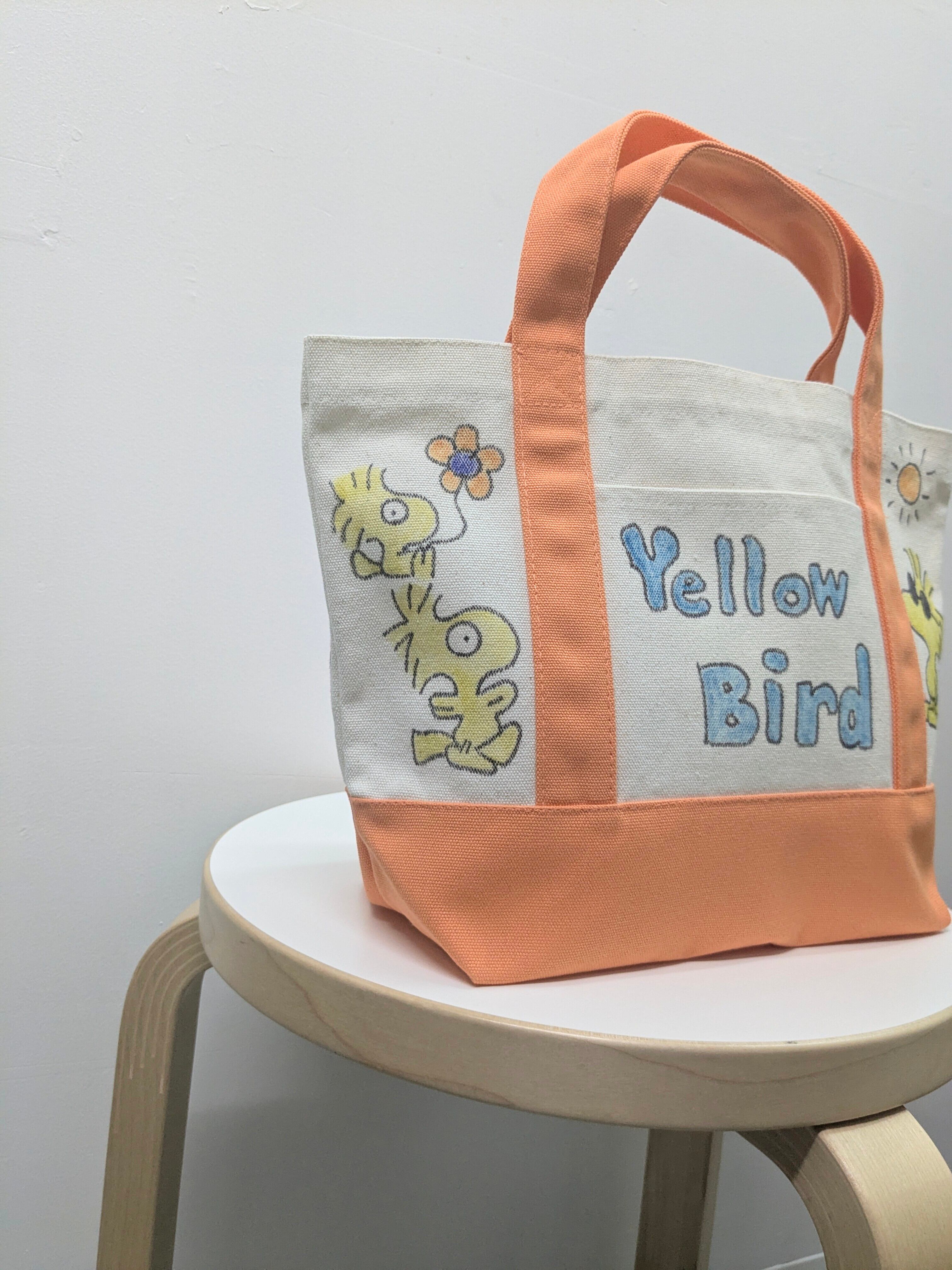 Hand Drawing Canvas Tote Bag Middle "yellow bird"
