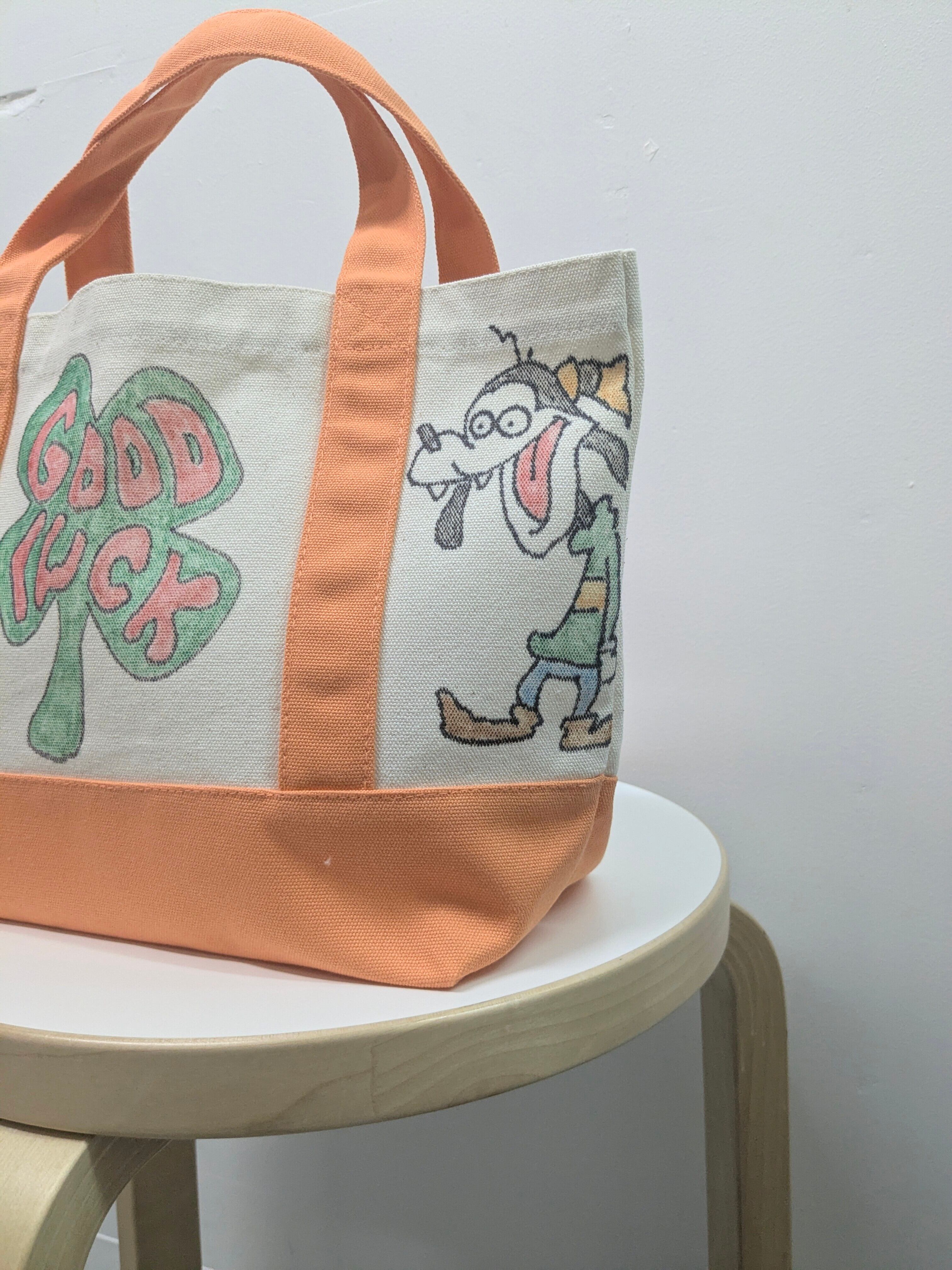 Hand Drawing Canvas Tote Bag Middle "good luck"