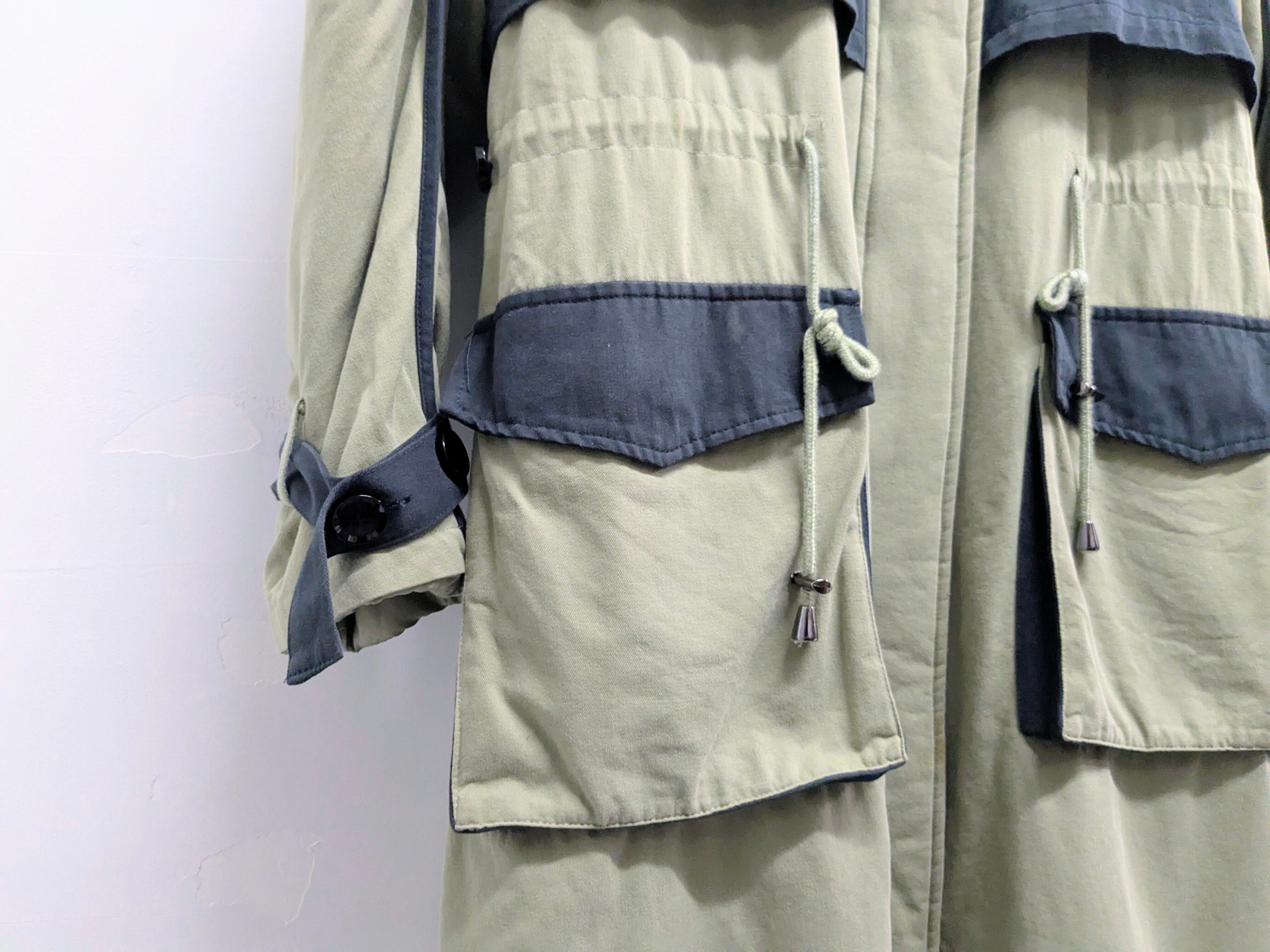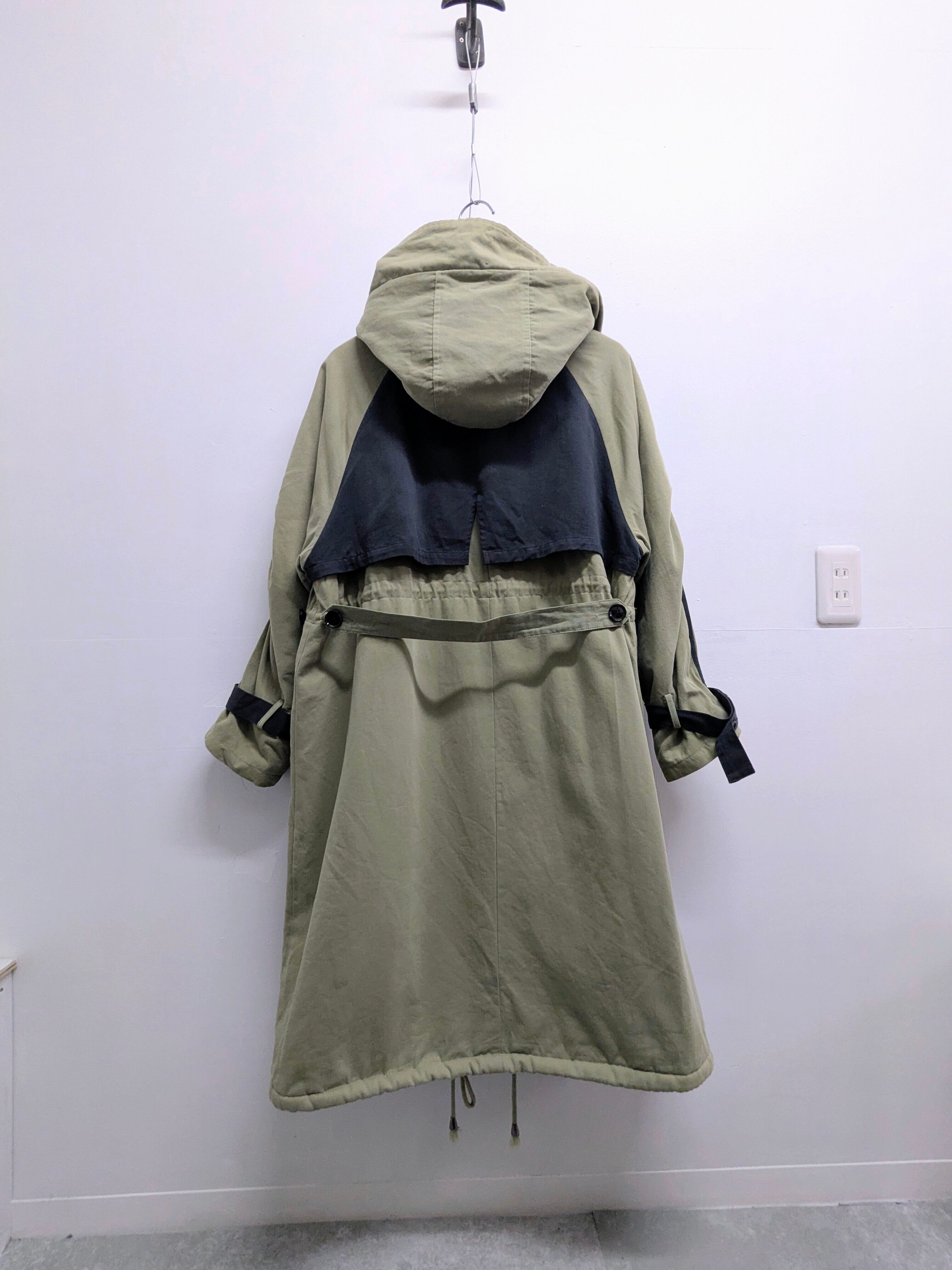 カラー配色のミリタリーロングコート。