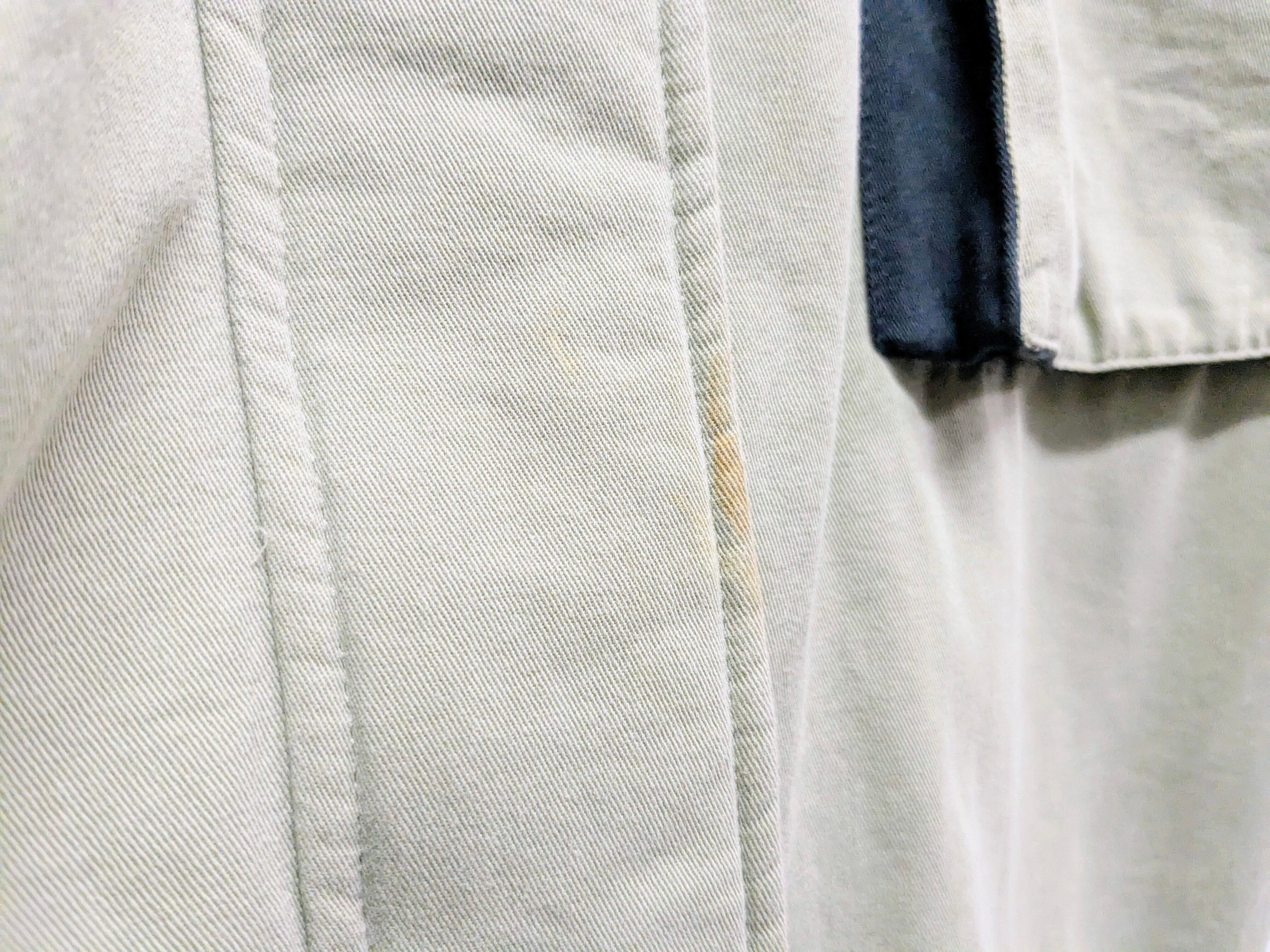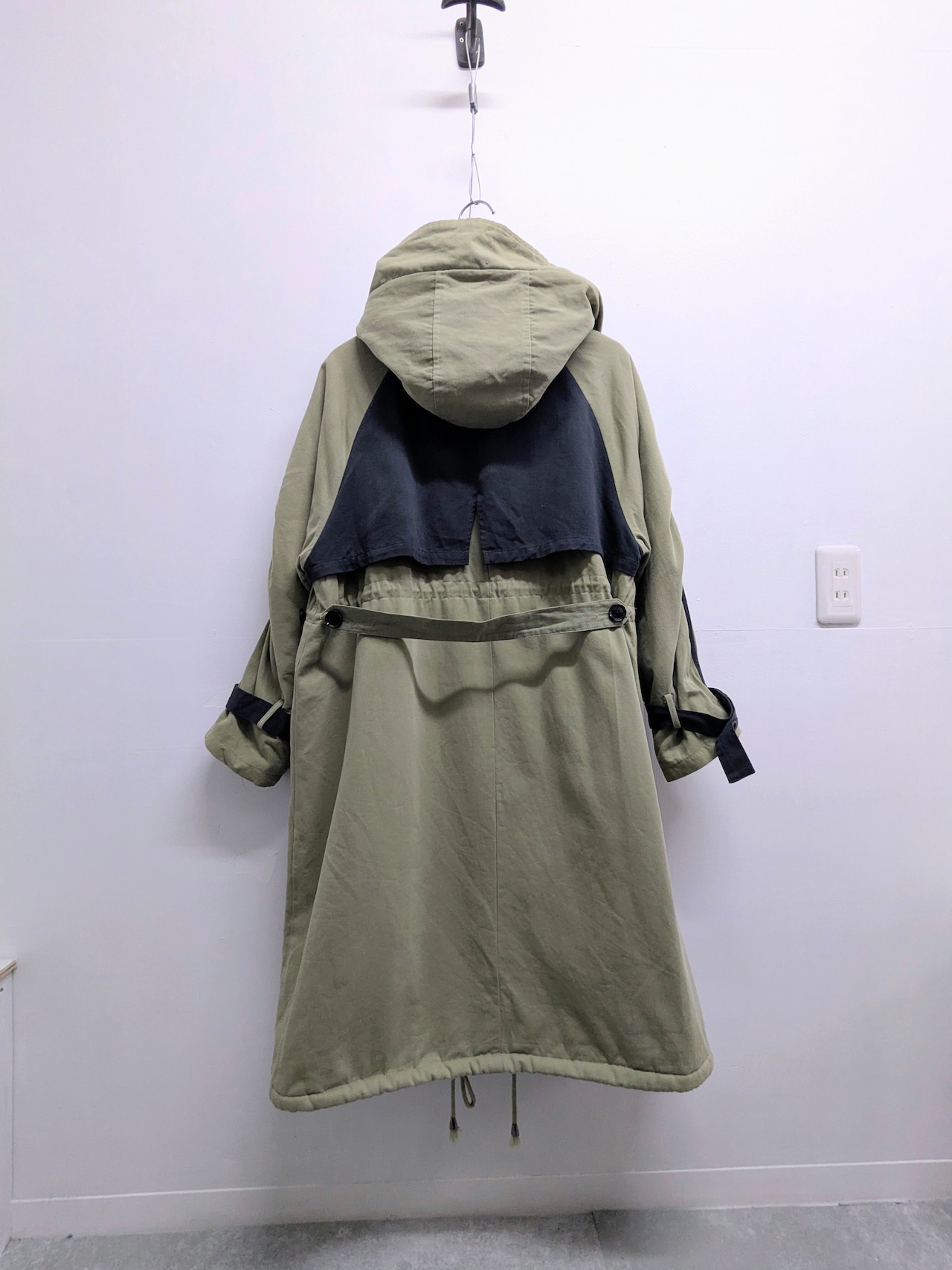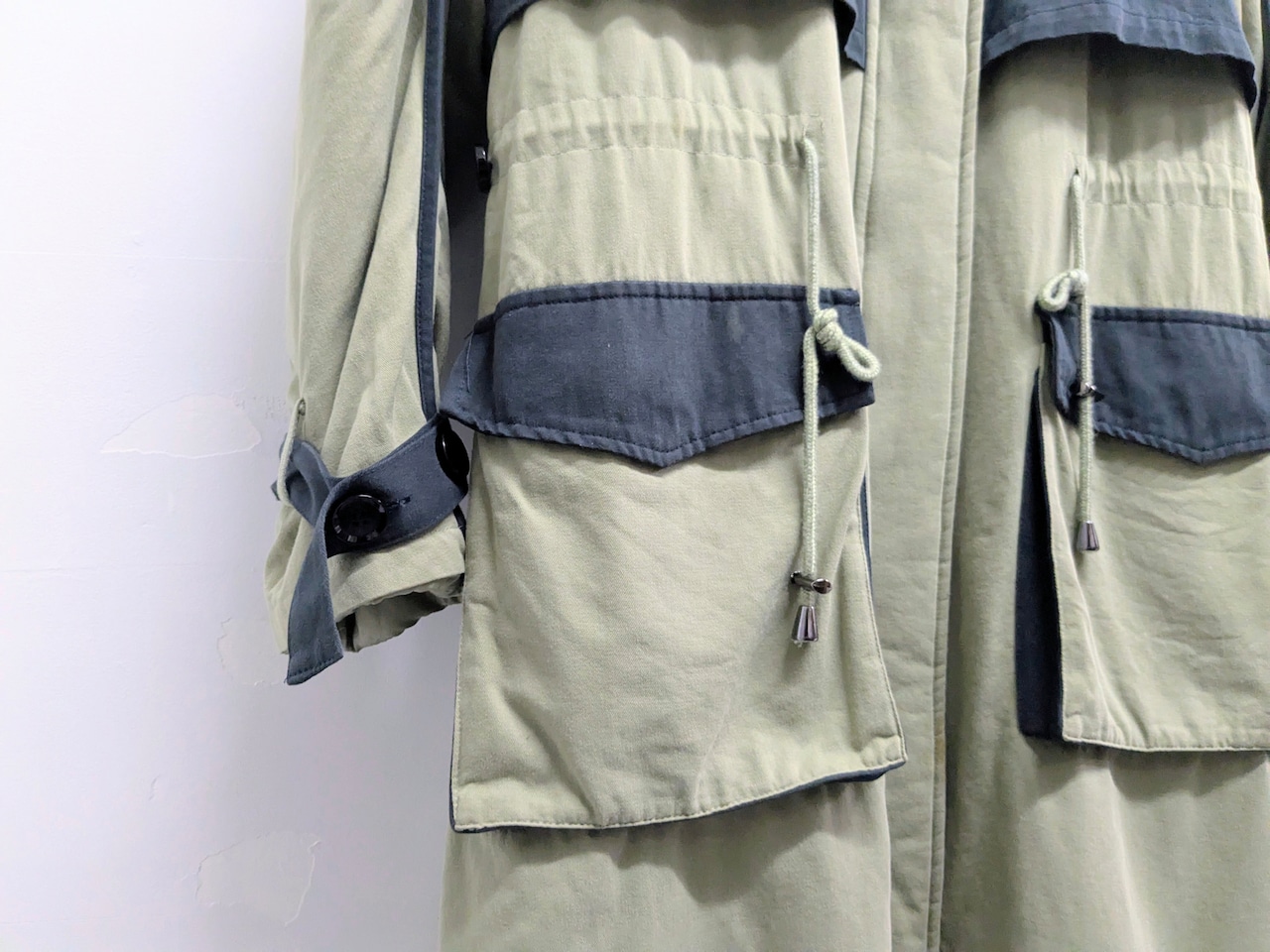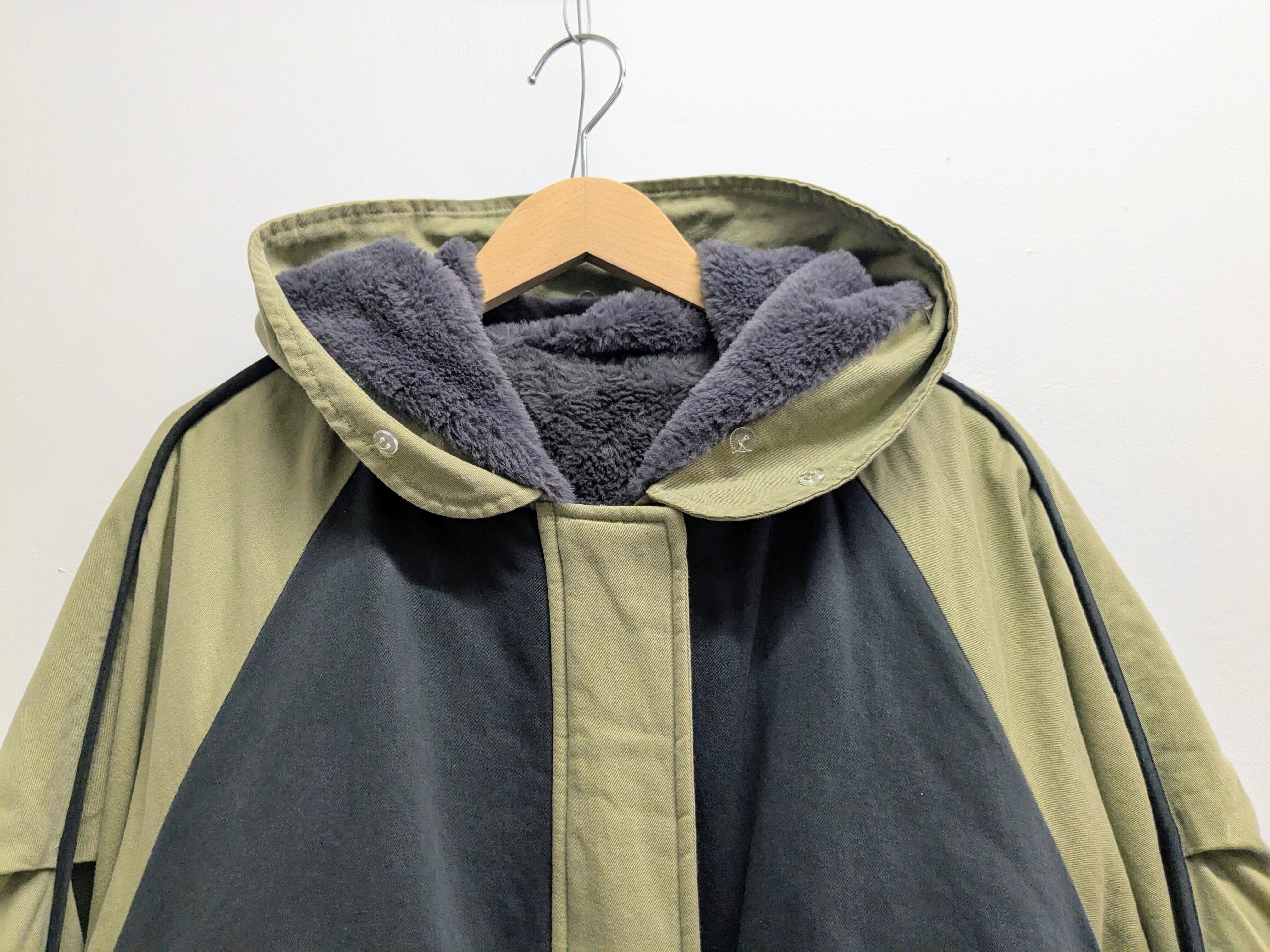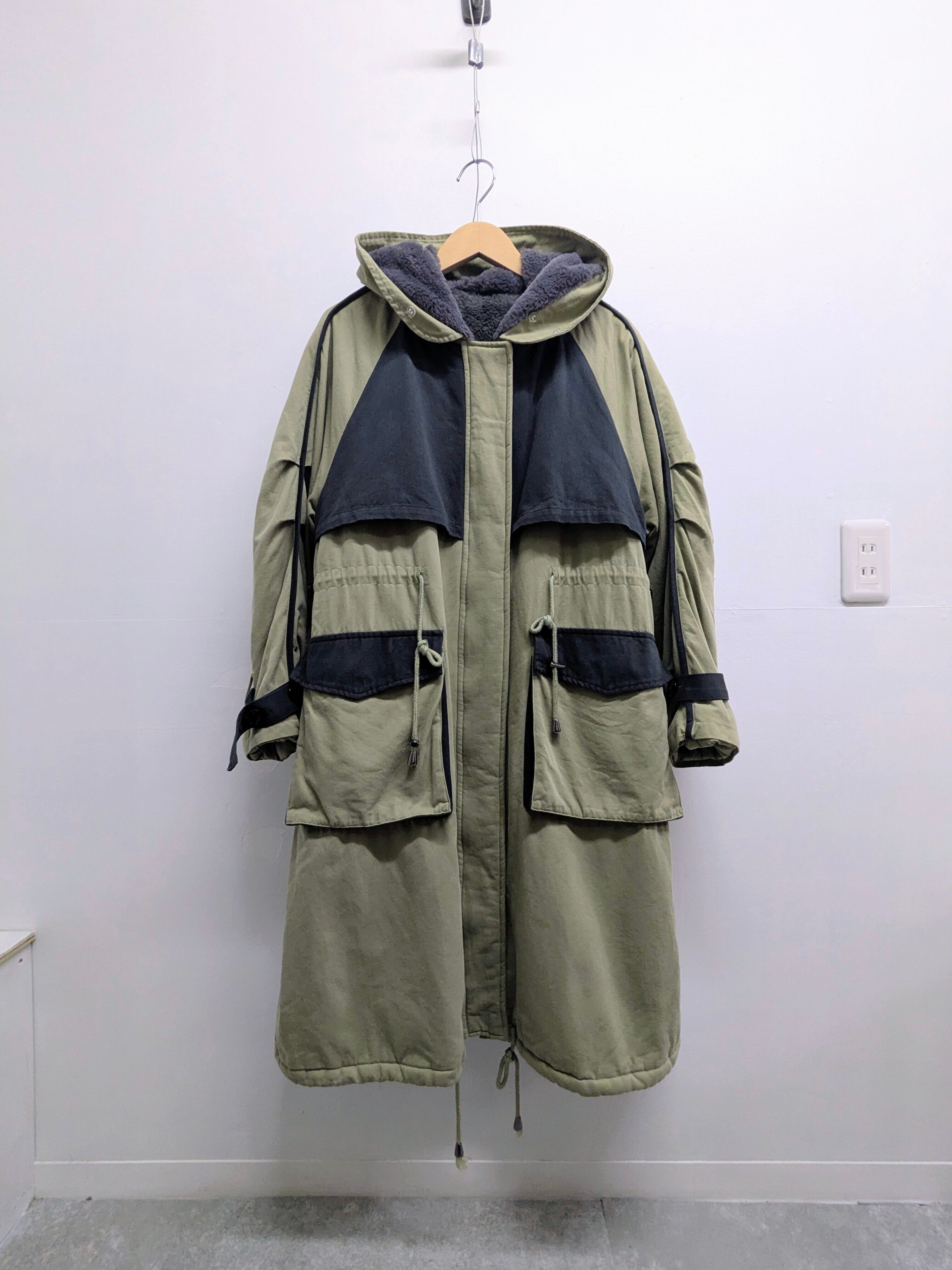 裏はファー、袖はキルティングになっており、防寒面でも頼れる一着。リバーシブルではないですが、ベルトなど外したら着ていただけるかと思います。汚れあり、おそらく襟のところ付属品欠損。