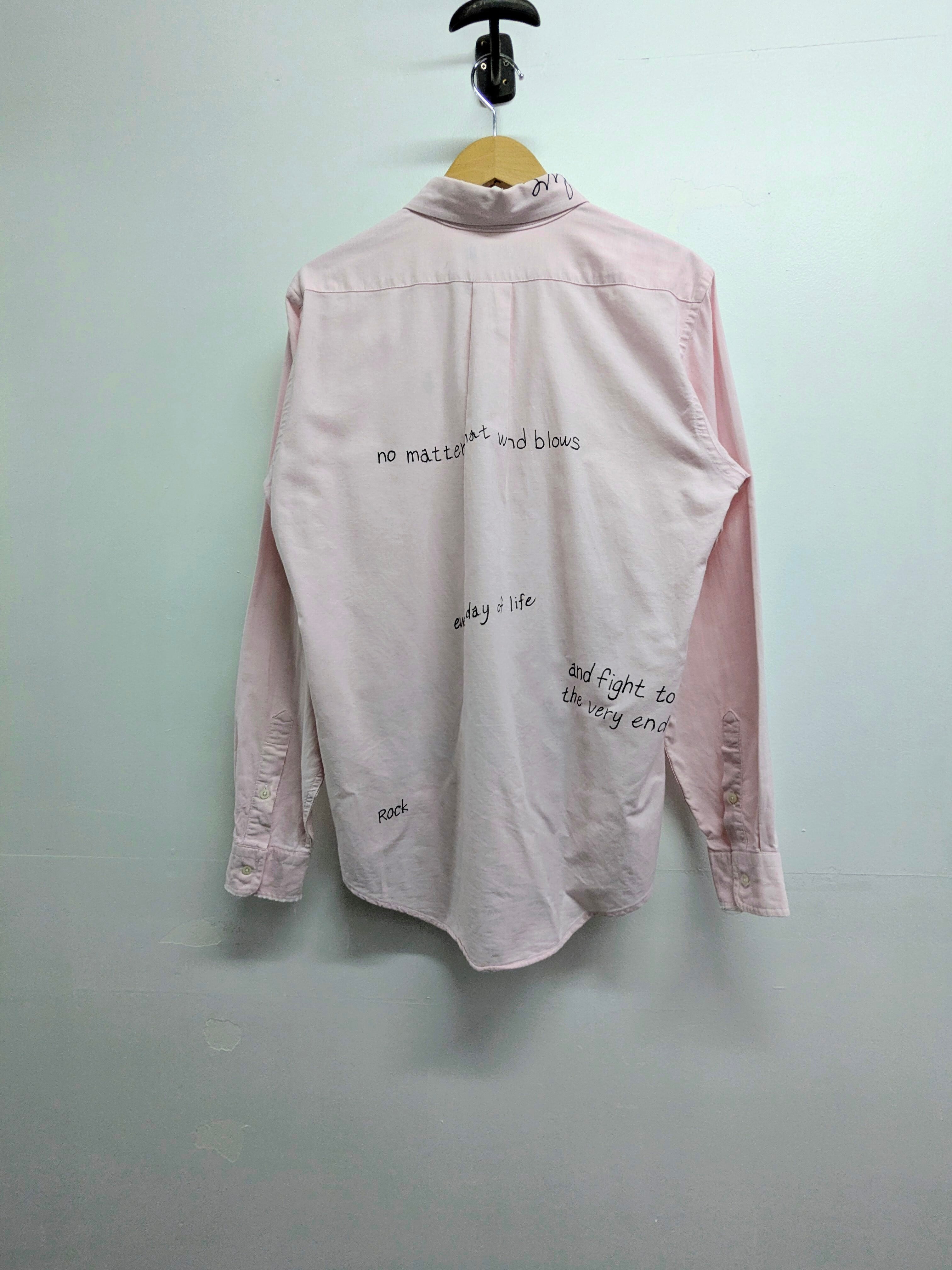 ユーズドのラルフローレンのシャツにイラストを加えています。メモリアルの要素があり、どこか見たことあるキャラクターがいたりと、とにかく可愛いアイテム。全て手作業になるので、唯一無二の一点物となります。