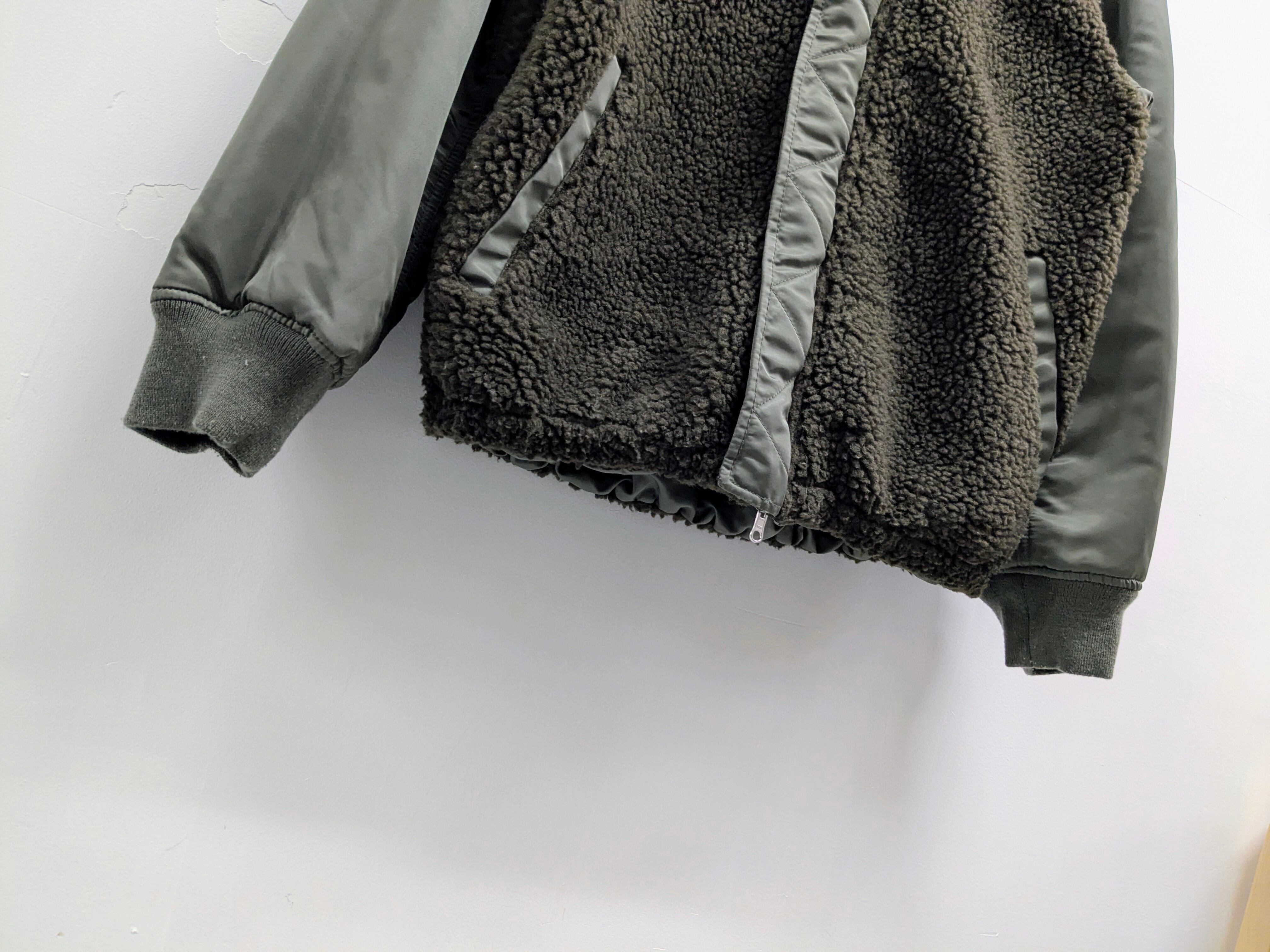 ボアのベストを着たようなデザインと、ソリッドな定番のMA-1の両面で使えるアイテム。丈短め、コンパクトめなシルエットがちょうどいいアイテム。