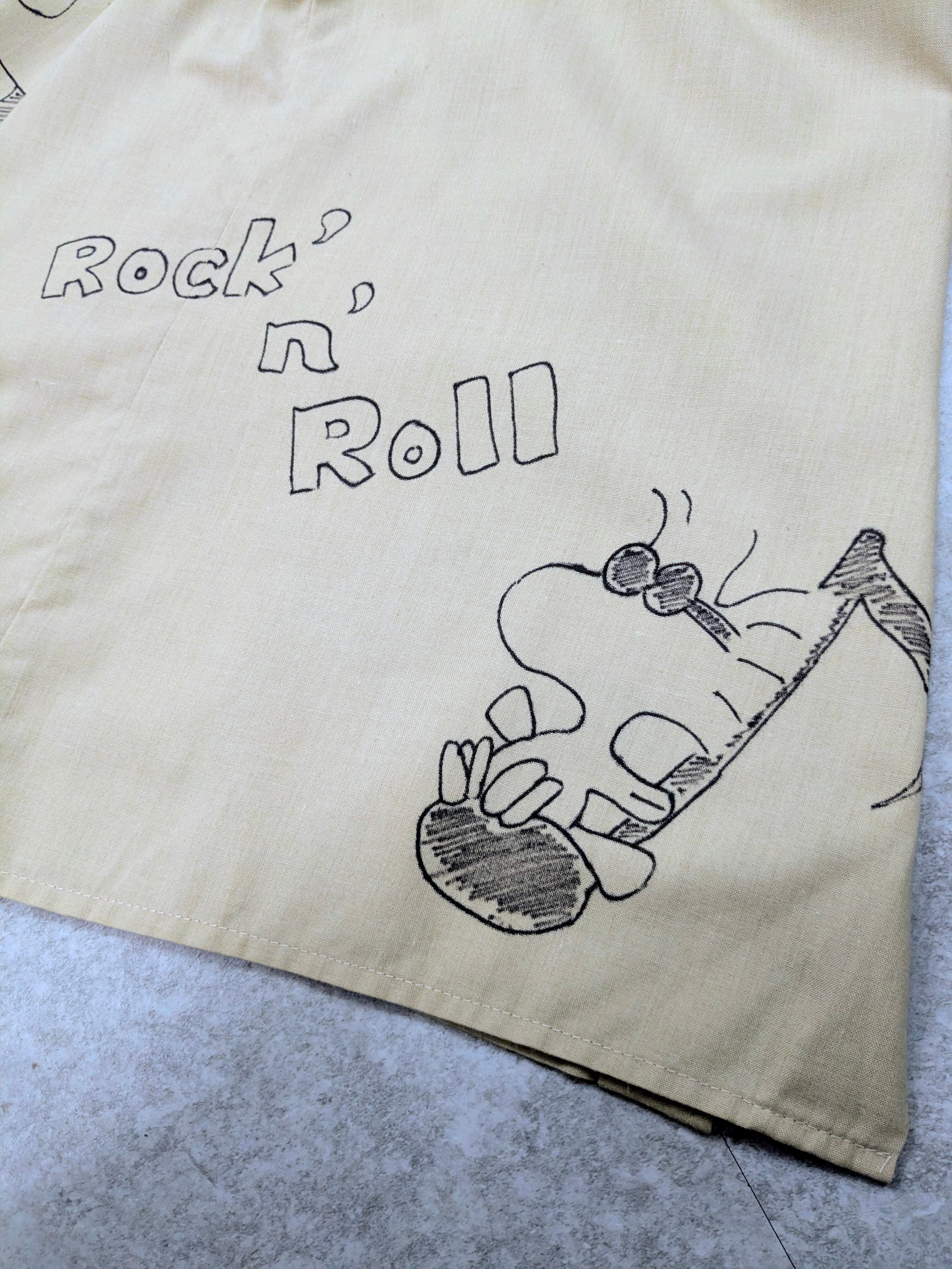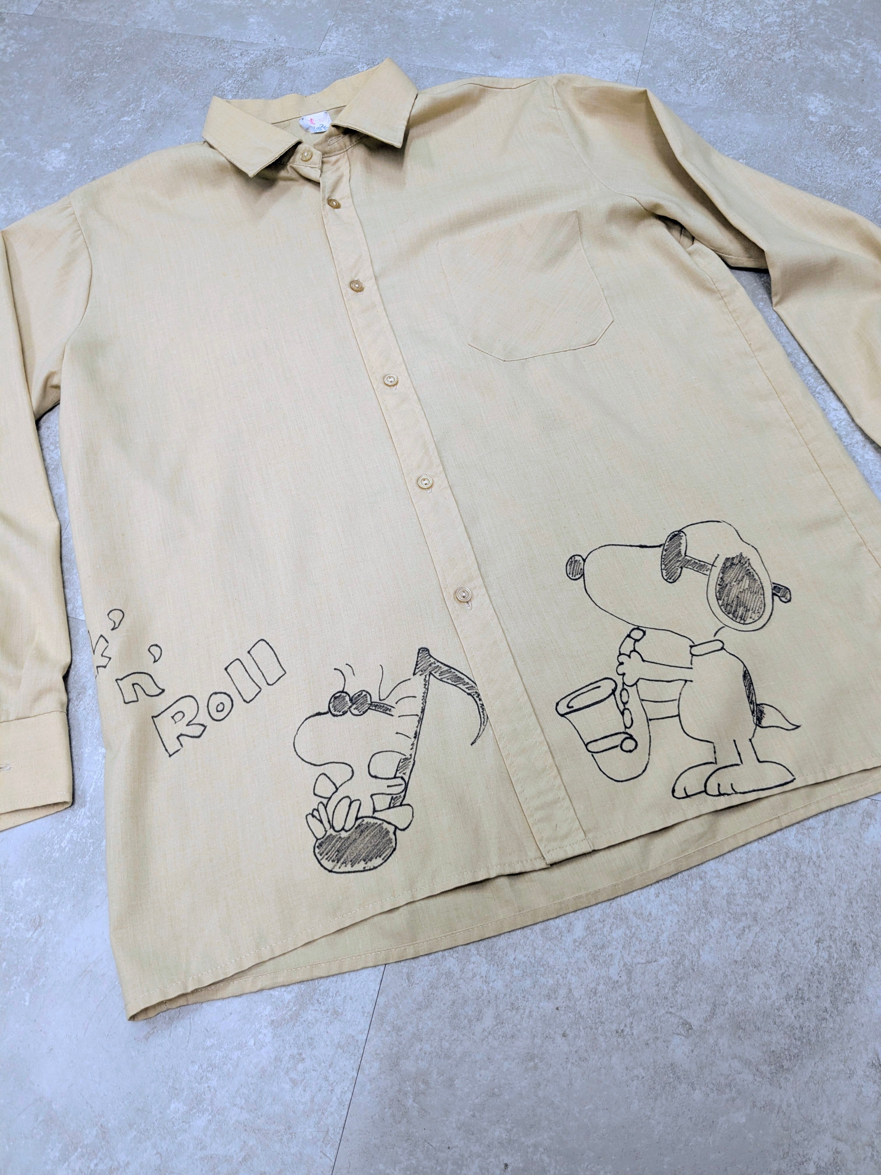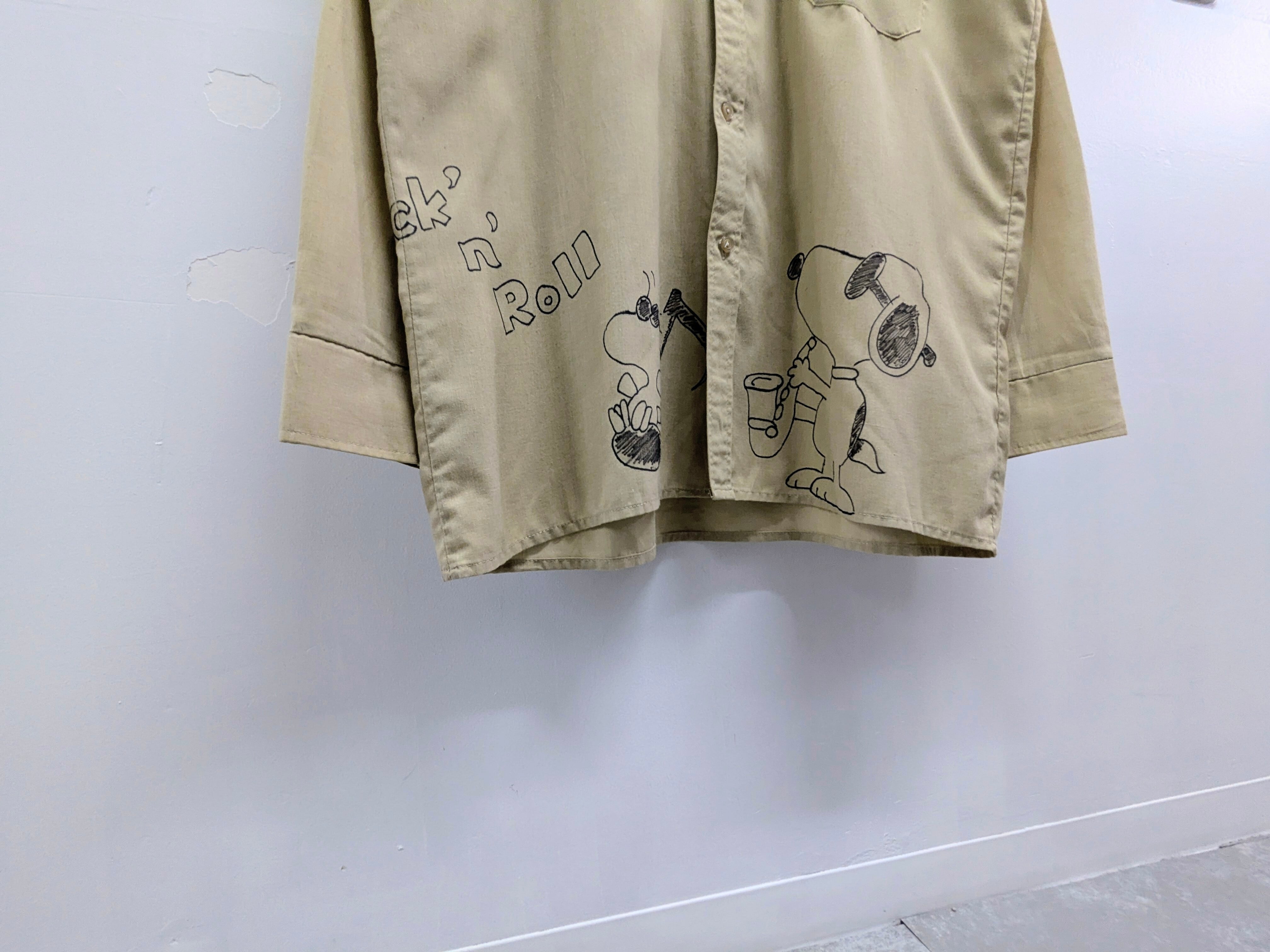今回はユーロヴィンテージのシャツの背中に大きく、どこか見たことあるようなミュージシャンがイラストされています。全て手描きなので、一点物となります。キズあり。