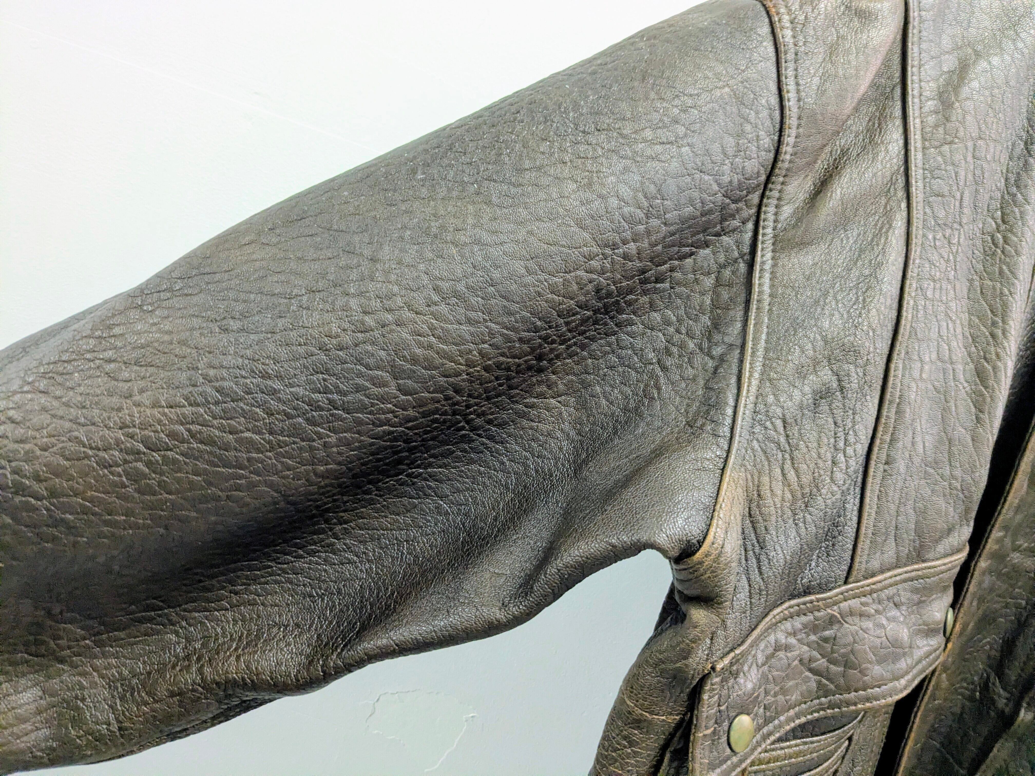 このシルエットなど好きな方多いのではないかと。革質も厚く、しっかりとした状態。アームホールも太めで、着合わせしやすいデザインなのが嬉しい。ライナーが欠損してしまっています。キズあり。