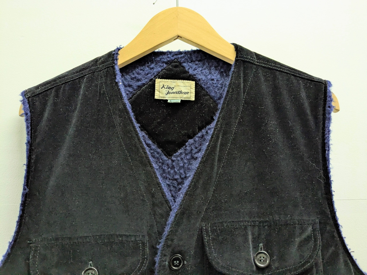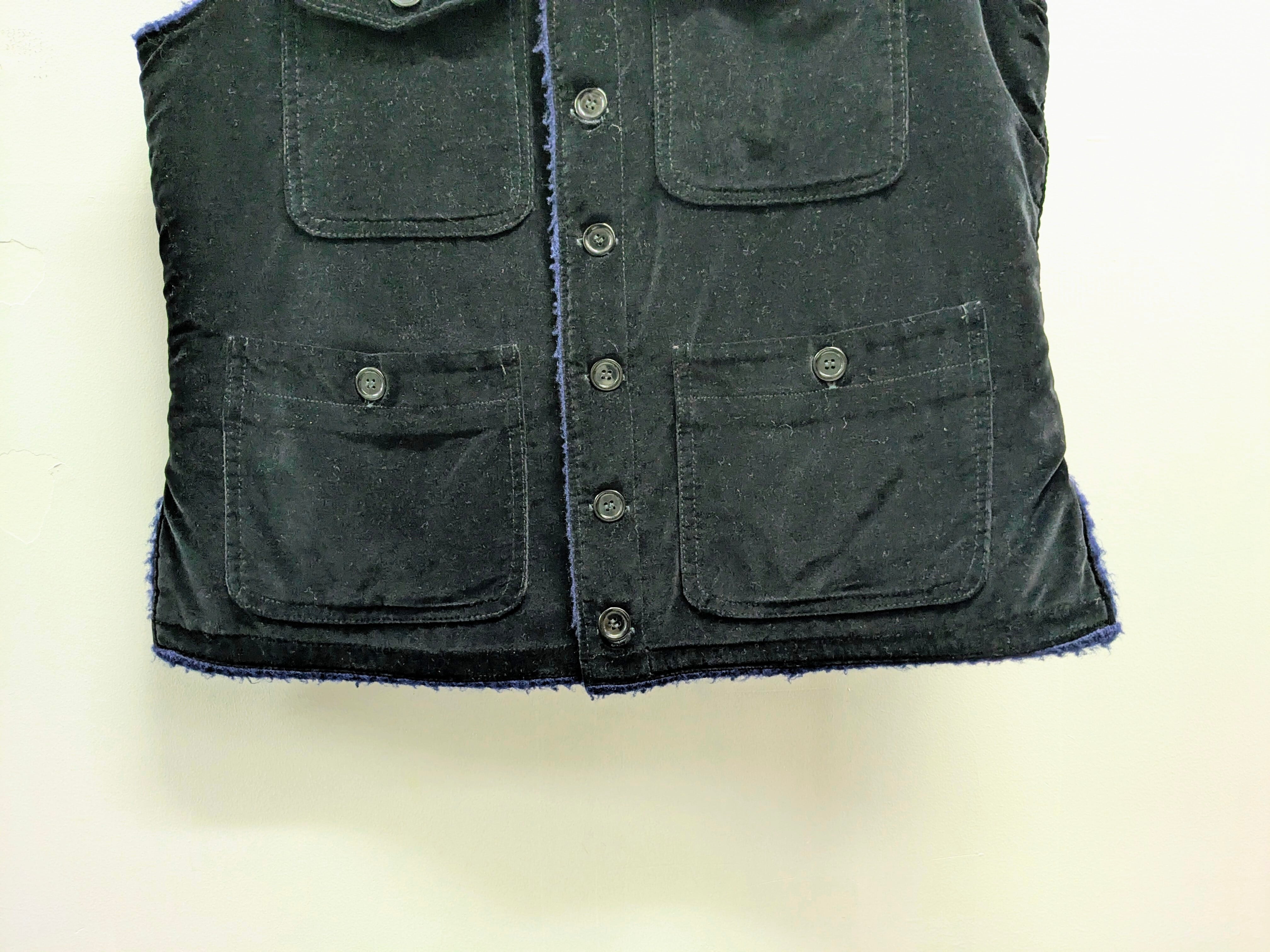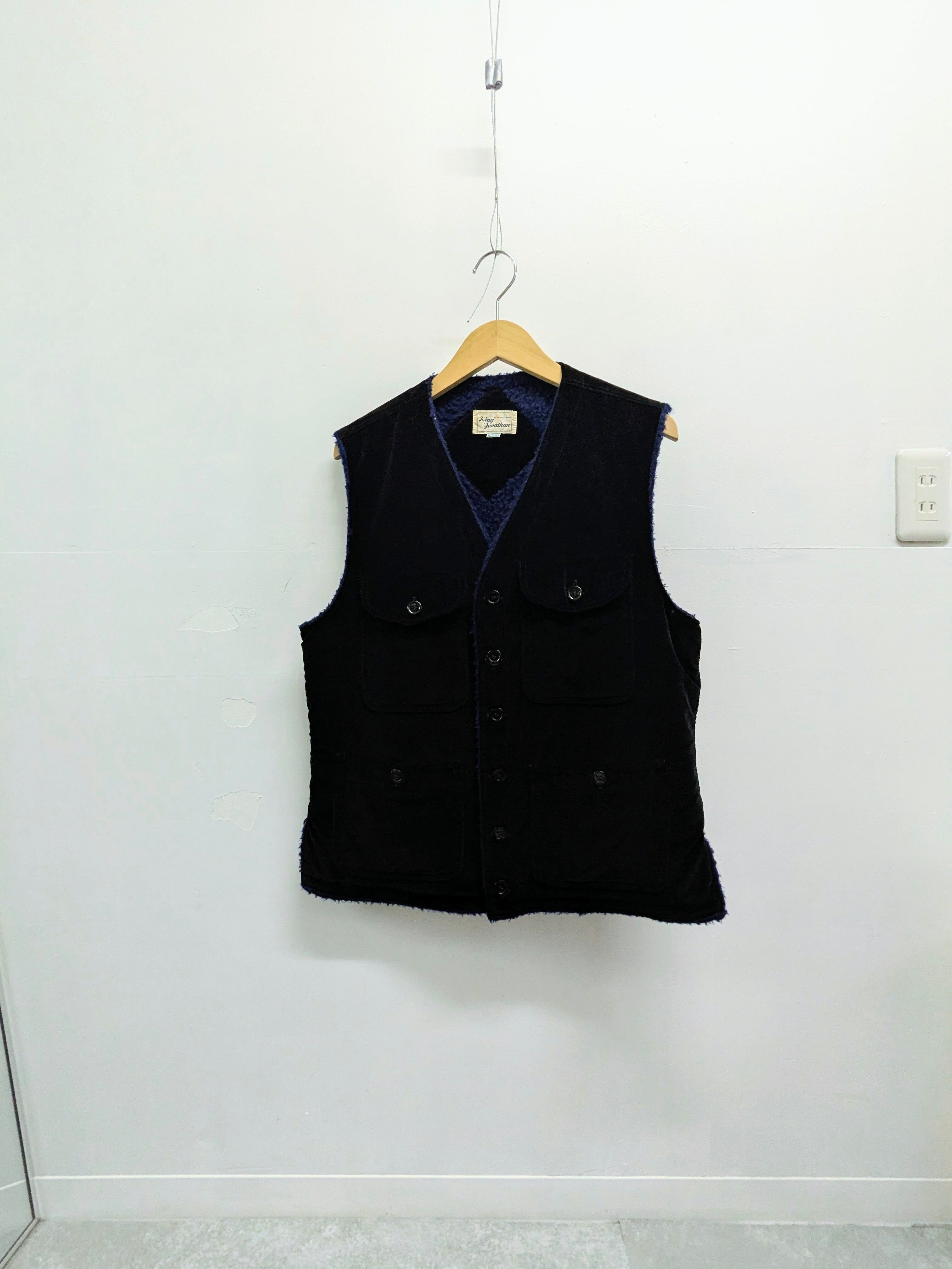 ワーク型のベストなのにベロア素材を用いた異端のアイテム。キャンバス、ダックなどはありそうな形ですが、あえてのベロア生地。違和感がまたいい感じに一着。裏のボアはネイビーととても綺麗な配色となっています。キズあり。