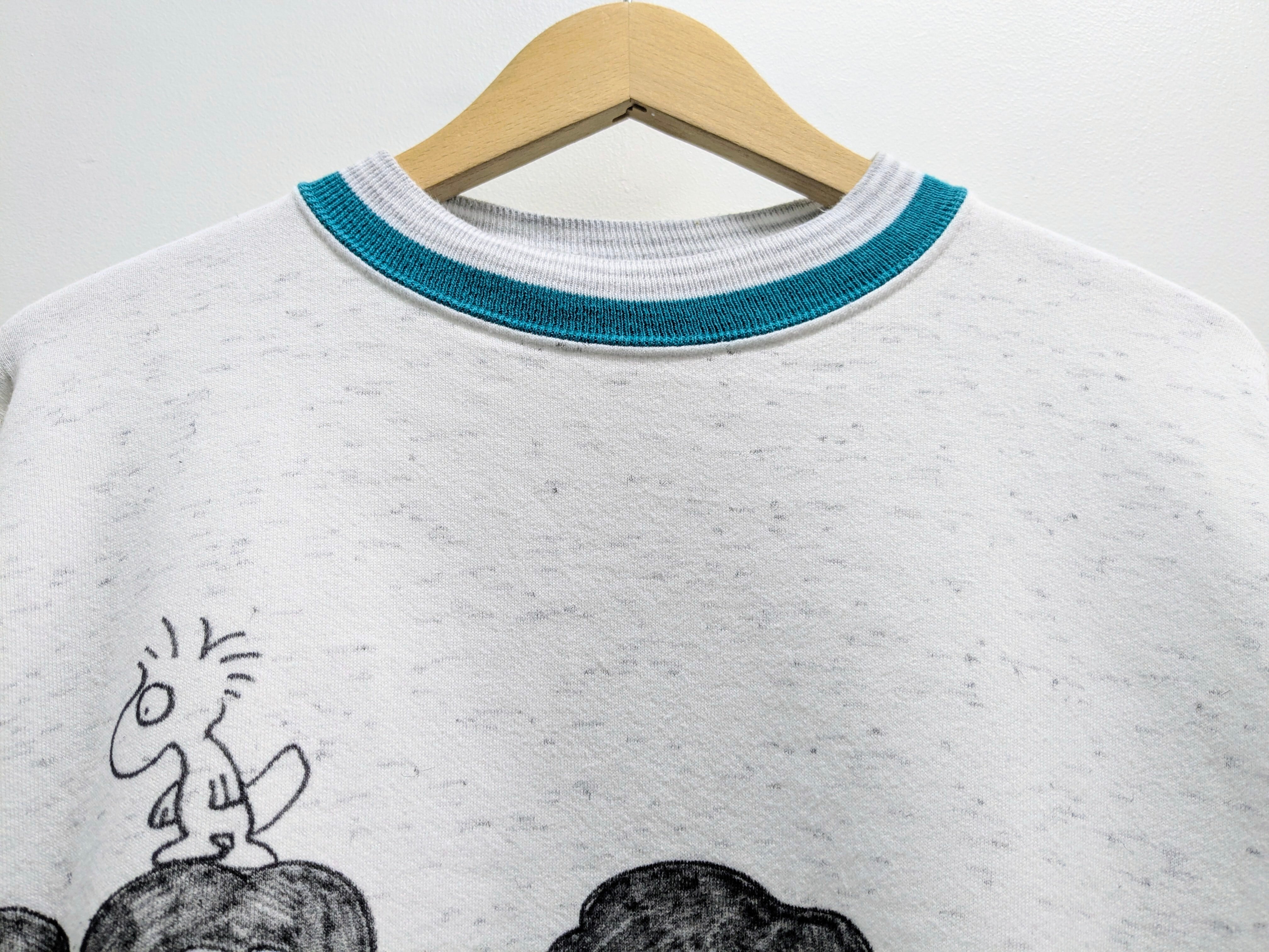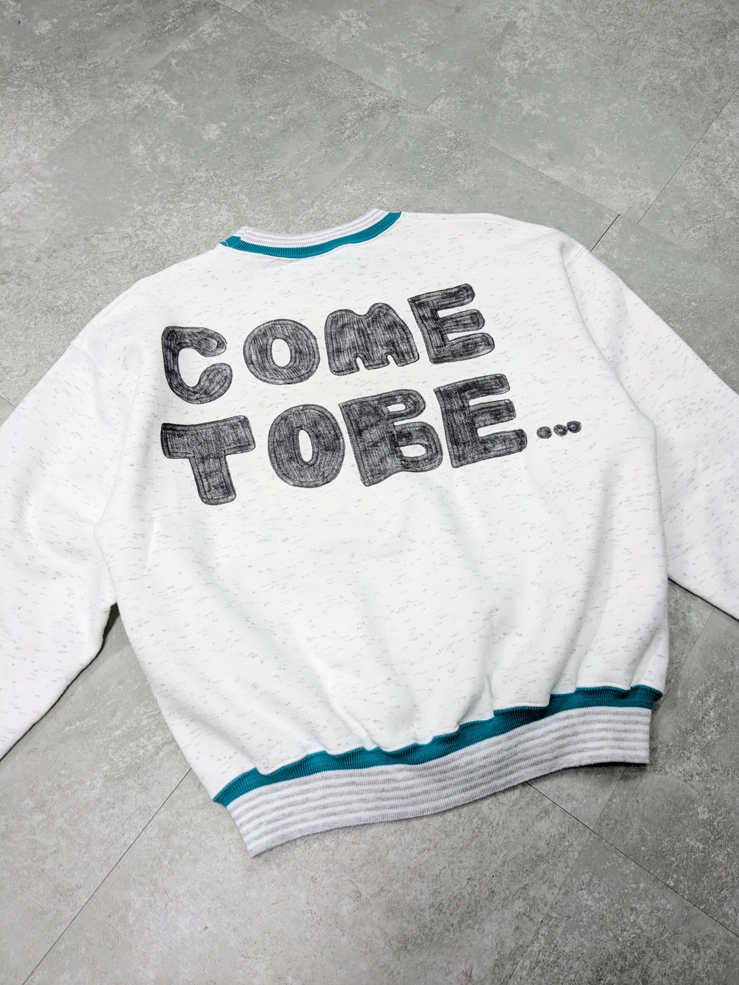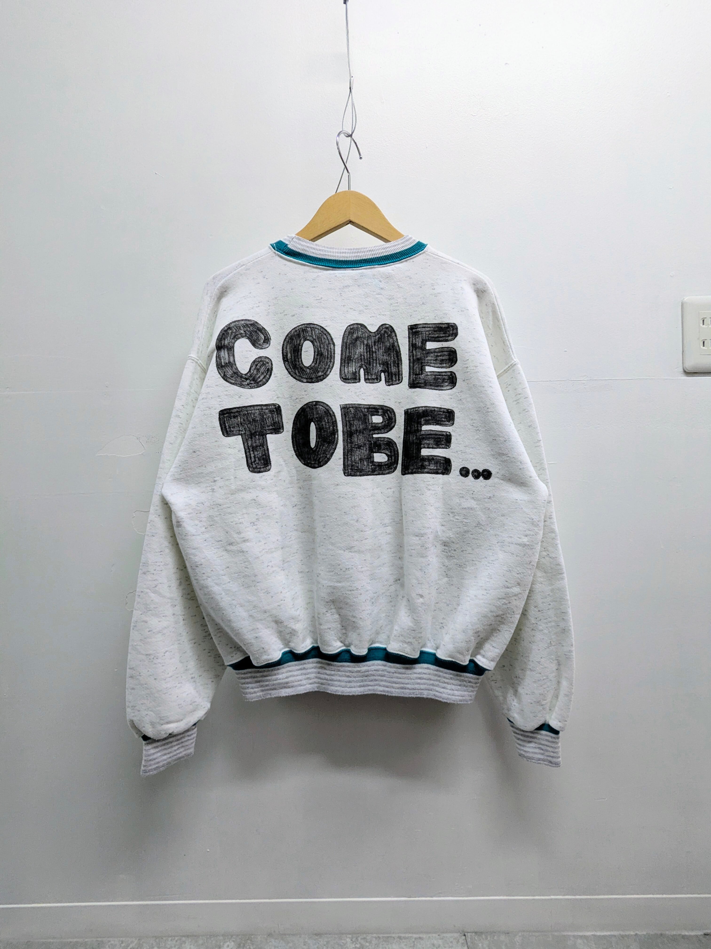ユーズドのスウェットを使用しています。アメリカ製。襟、袖、裾のカラーラインが特徴的な一着。ヴィンテージのアイテムを彷彿とさせるデザイン。手描きなので、唯一無二の一点物となっております。若干移染あり。