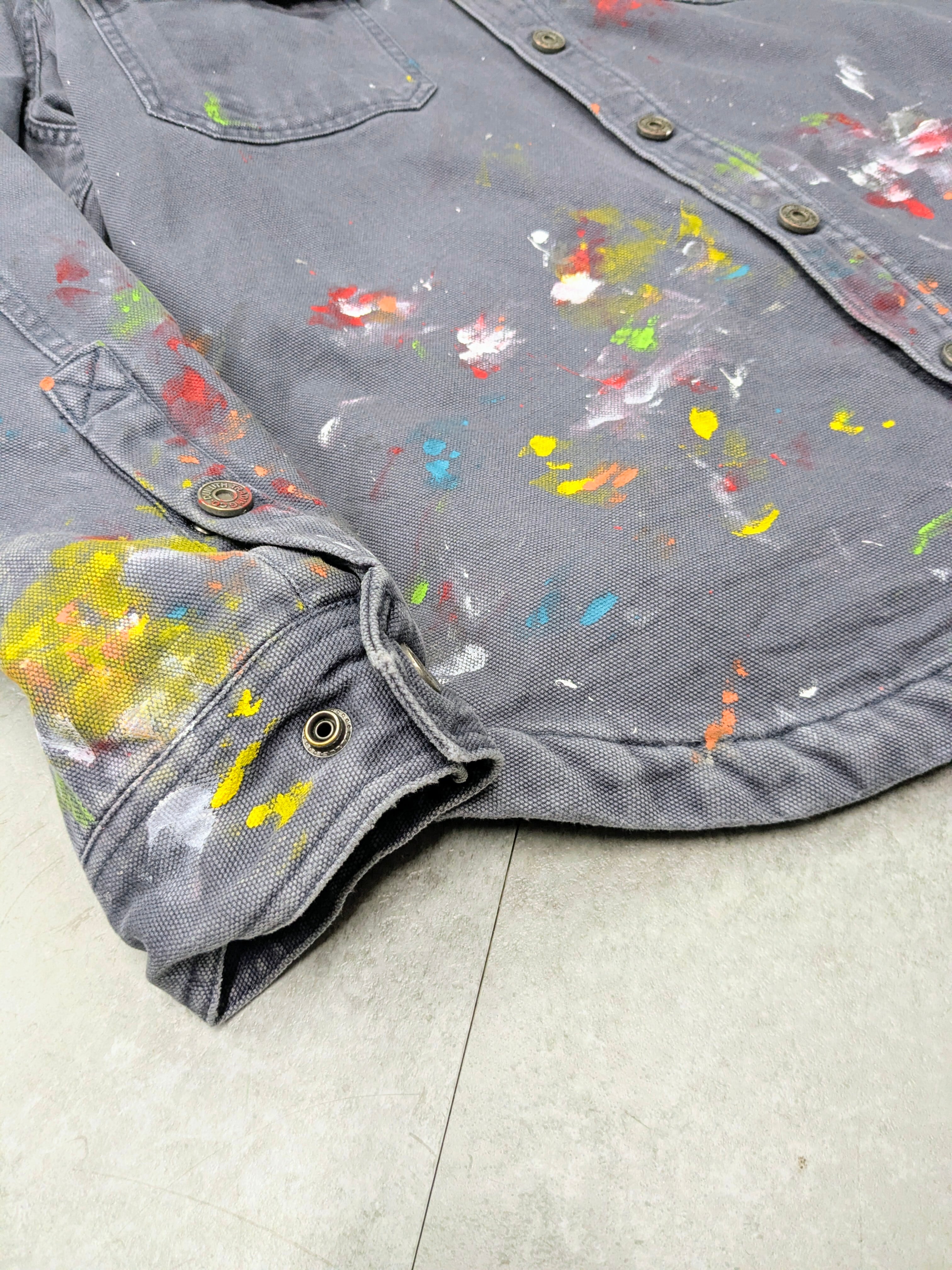 リアルワークでもありそう?多色がペイントされたアイテム。ダック生地でタフな作りが、色使いにてちょっとアートピースな仕上がりに。ブランケット付きで防寒性も高くこれからの時期に重宝します。